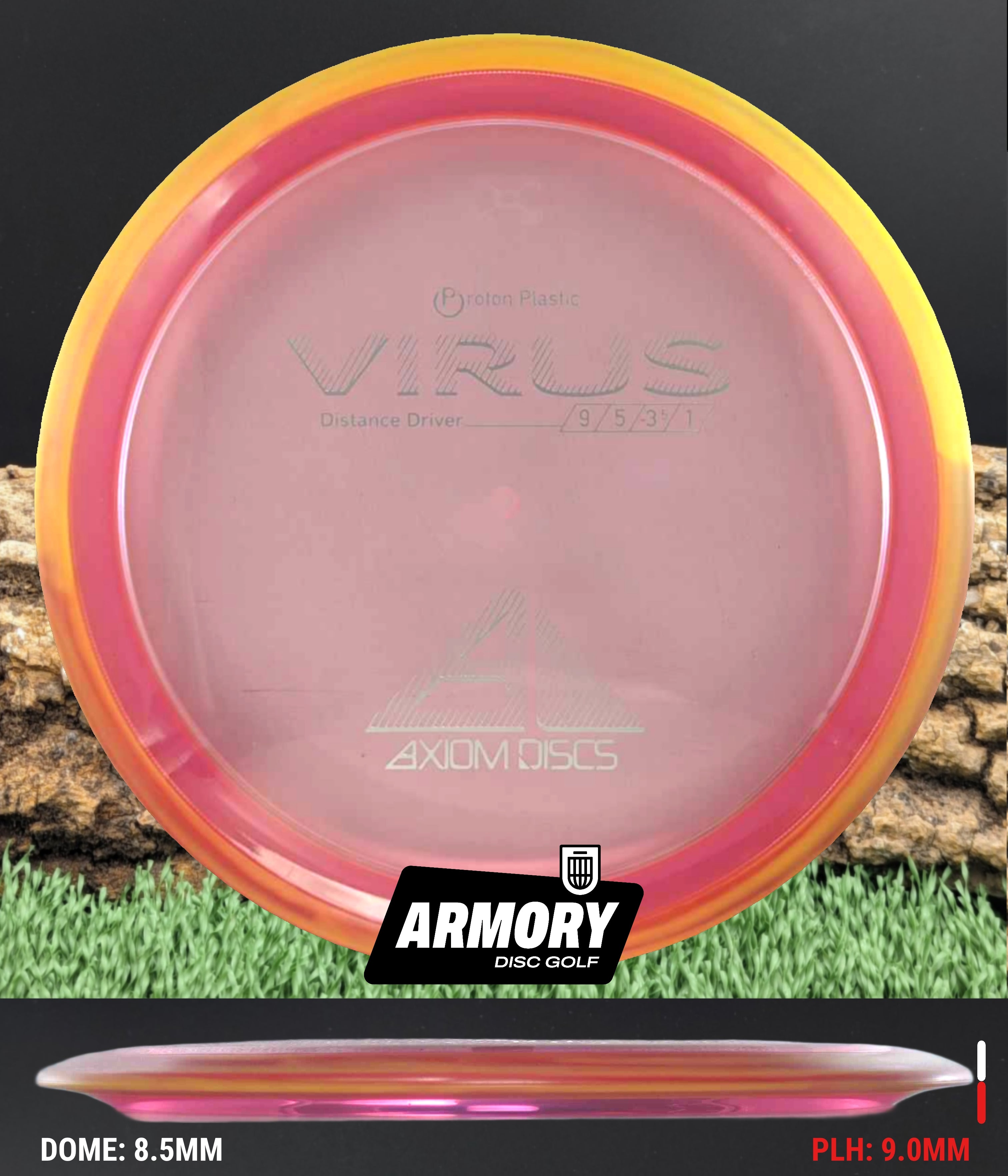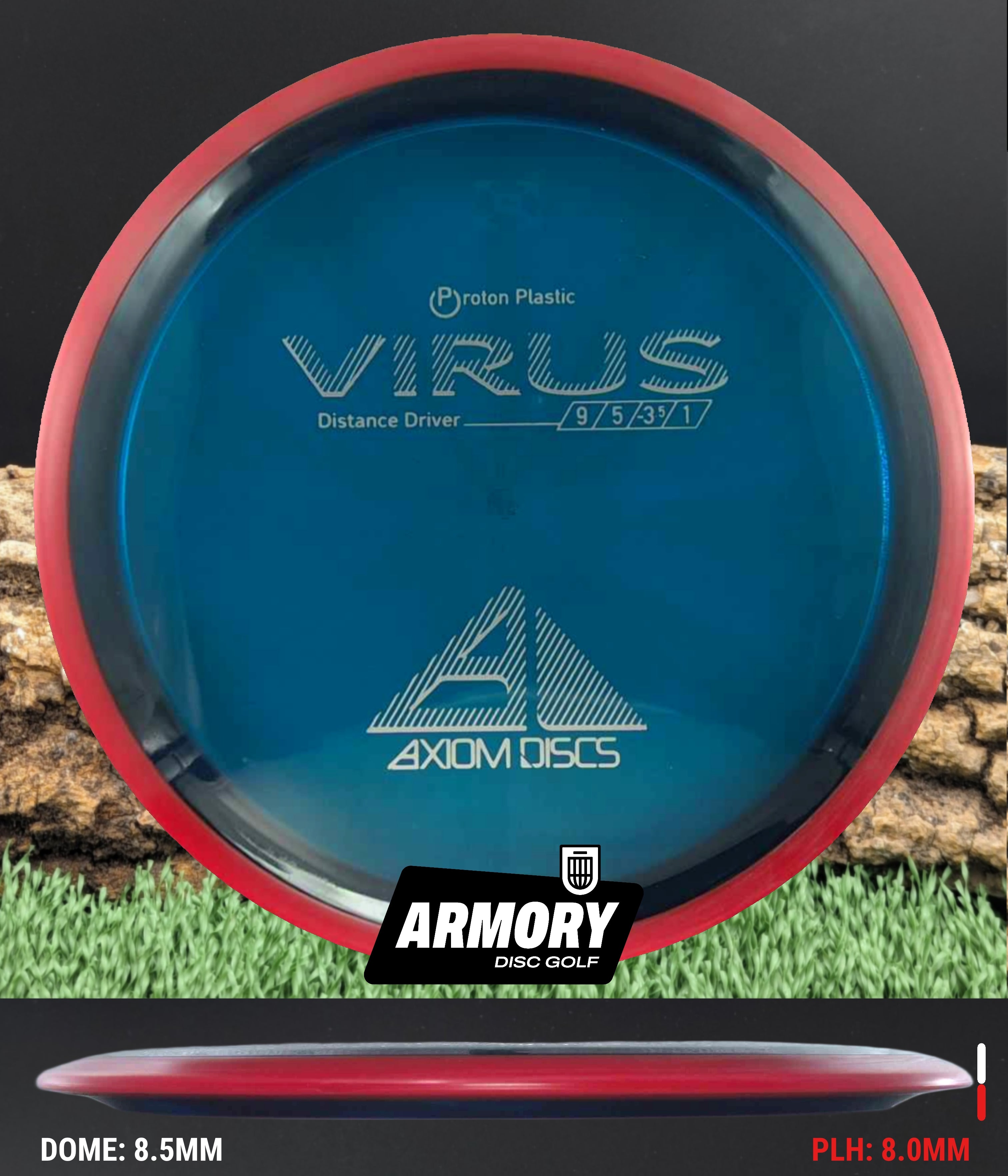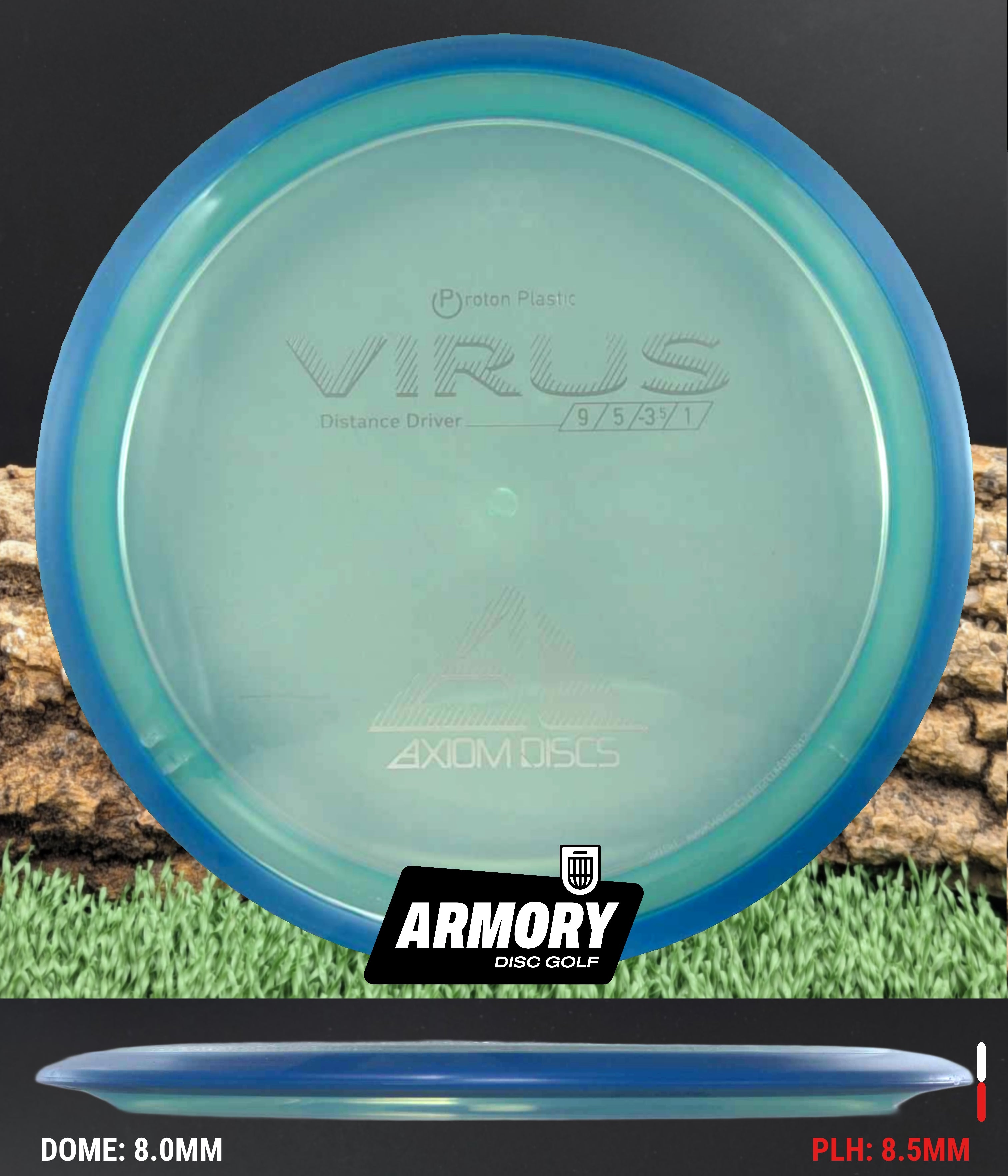 The Virus is Axiom’s easiest to throw distance driver, with a glide and responsive understability that keeps it in the air. Power throwers will be able to flex huge turnover shots with straight forward fade. Average throwers will be able to extend and shape lines using the Virus’ turn and gentle fade. Compared to the MVP lineup, the Virus resembles a worn-in Impulse.