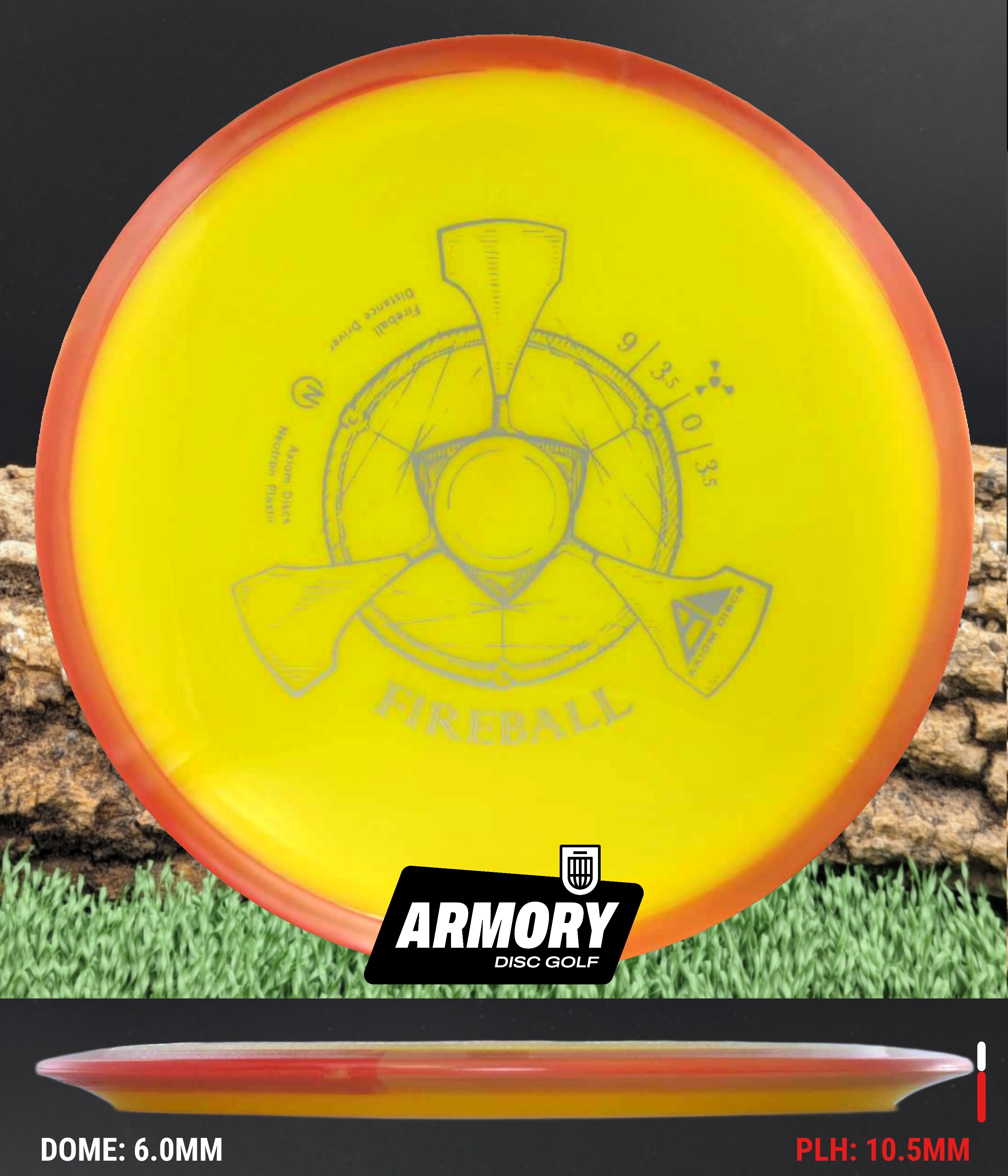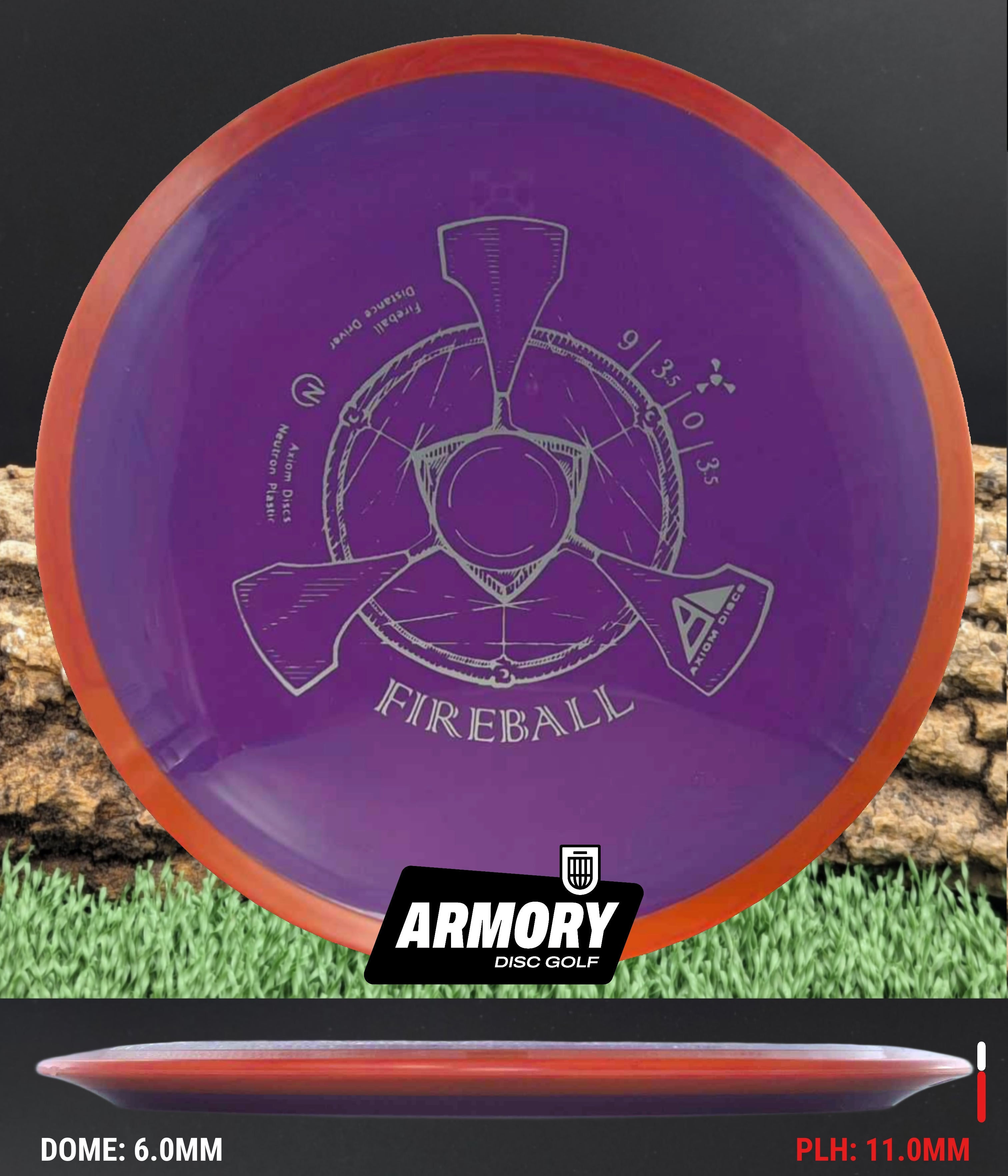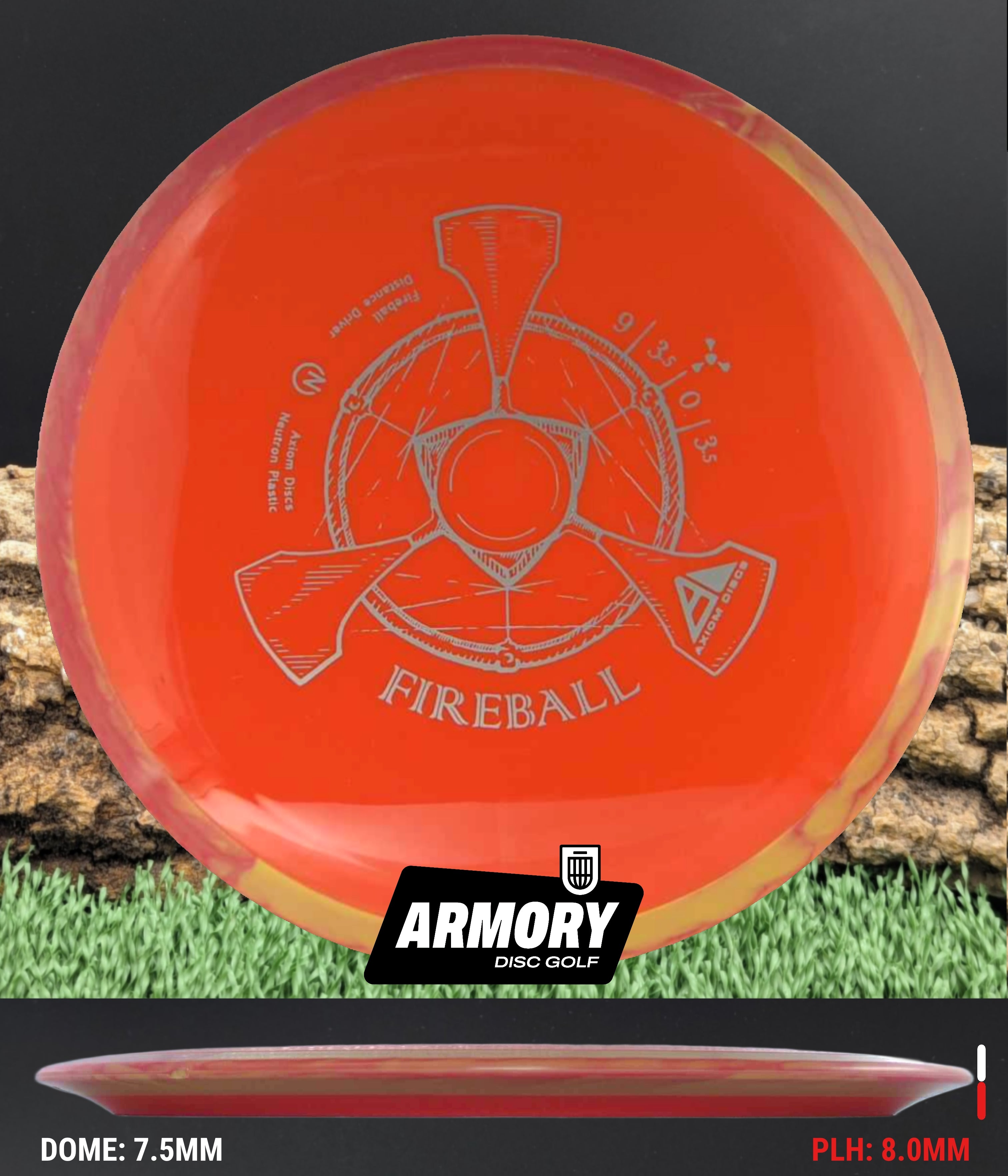 The Axiom Fireball is a 9 speed, overstable distance driver engineered for power throwers and reliable fade. Featuring a 9-speed rim with exceptional overstability and wind-fighting capabilities, the Fireball excels at forehand throws, thumbers, powerful backhand drives, and predictable flex shots. Its overstable flight path and substantial fade make it an essential disc for handling headwinds and executing consistent spike hyzers.