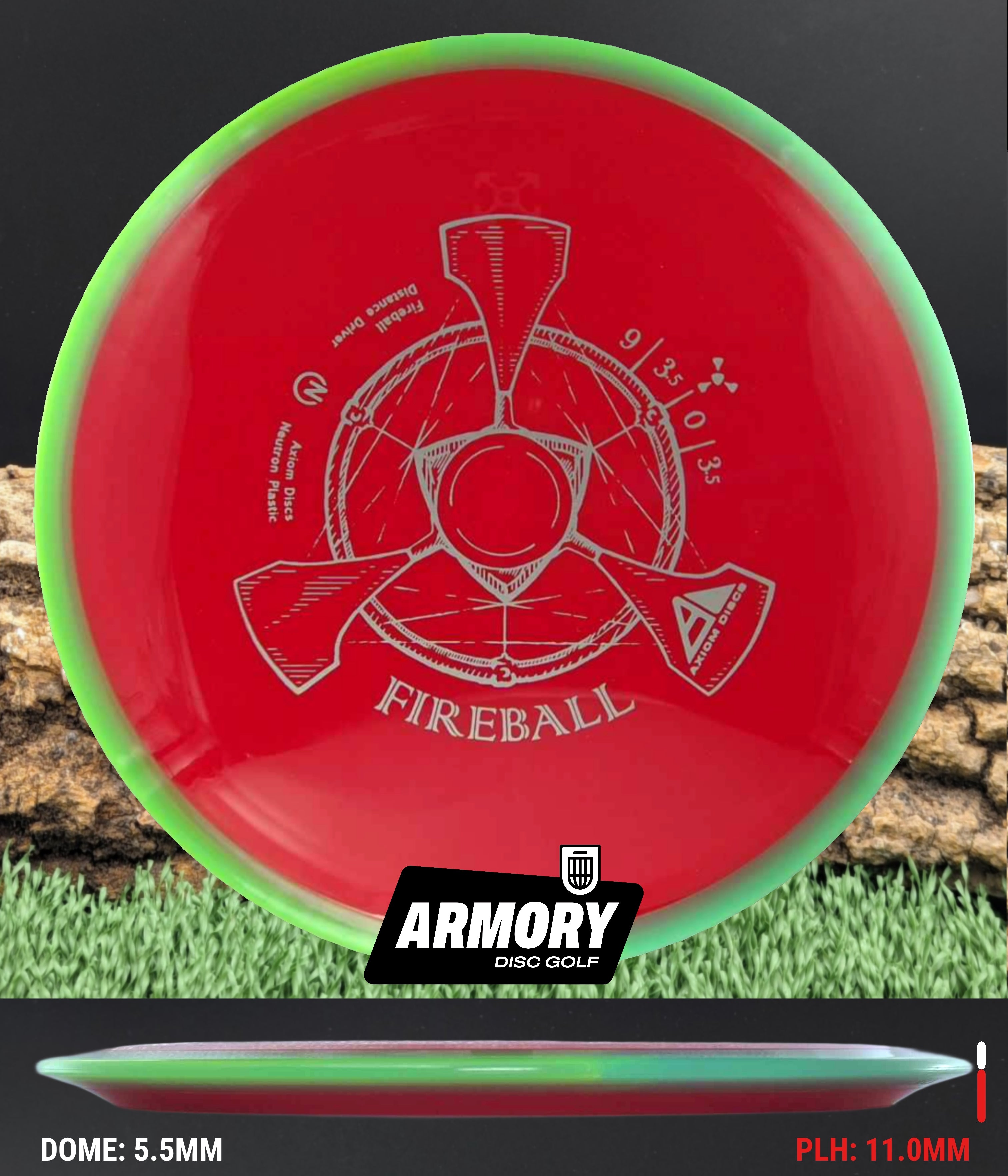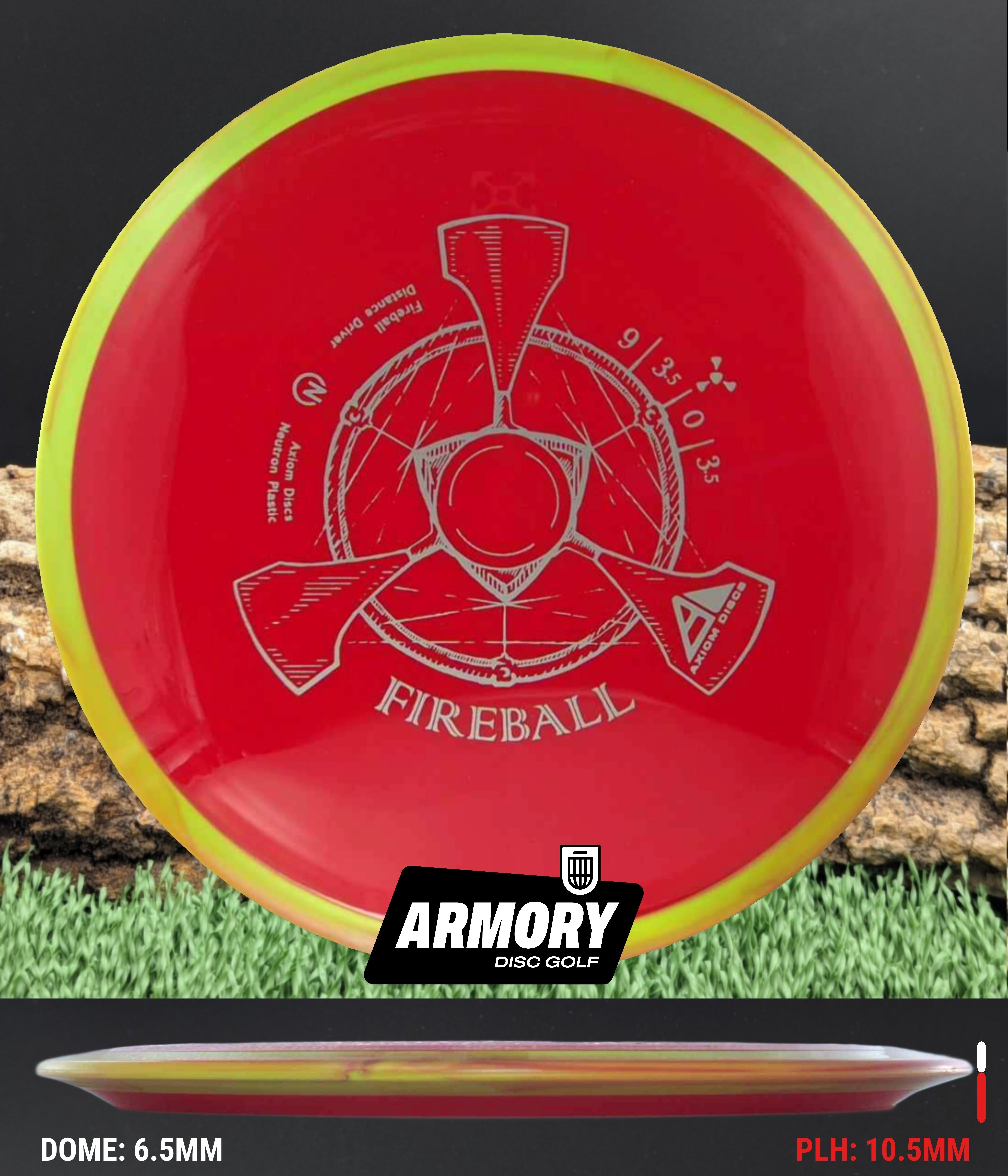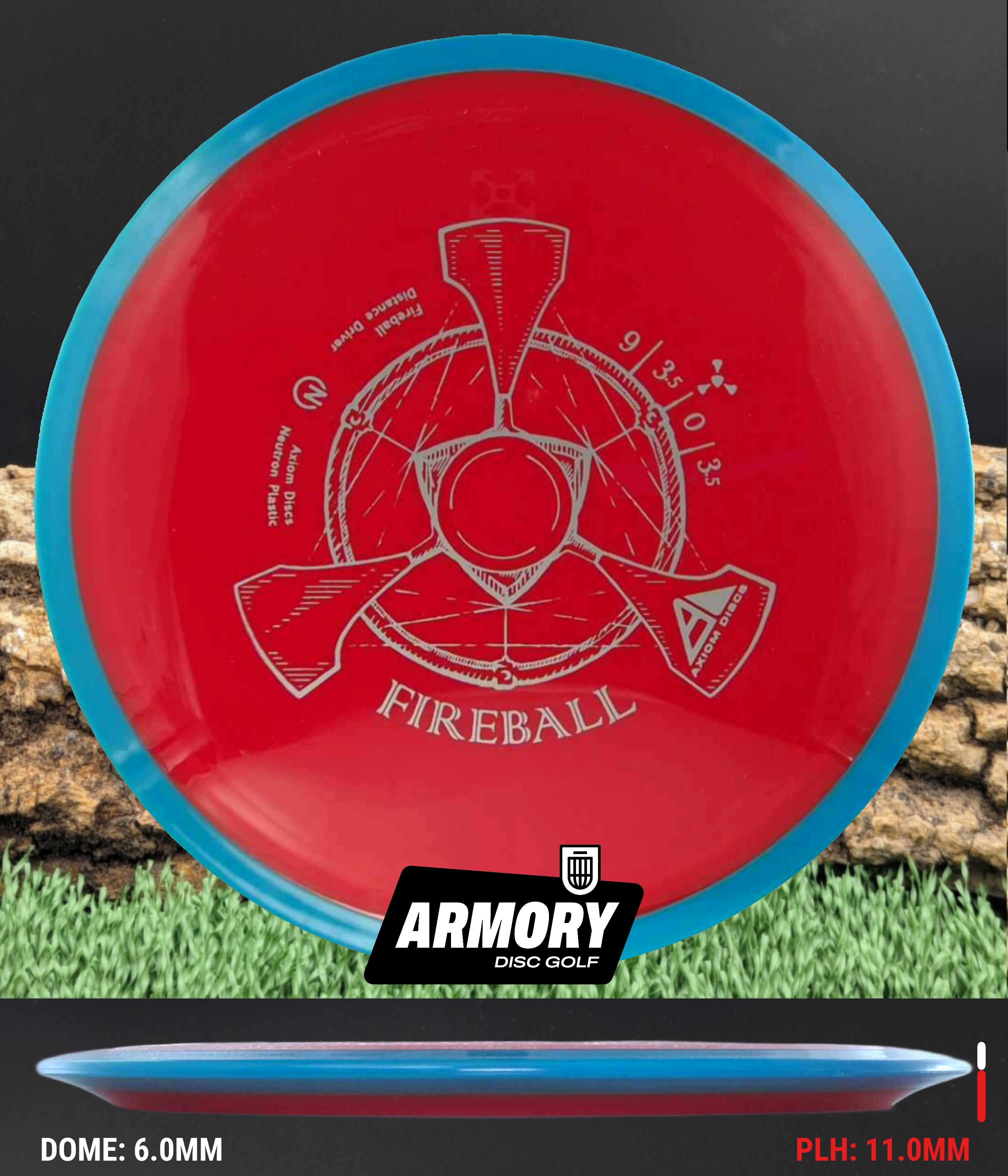 The Axiom Fireball is a 9 speed, overstable distance driver engineered for power throwers and reliable fade. Featuring a 9-speed rim with exceptional overstability and wind-fighting capabilities, the Fireball excels at forehand throws, thumbers, powerful backhand drives, and predictable flex shots. Its overstable flight path and substantial fade make it an essential disc for handling headwinds and executing consistent spike hyzers.