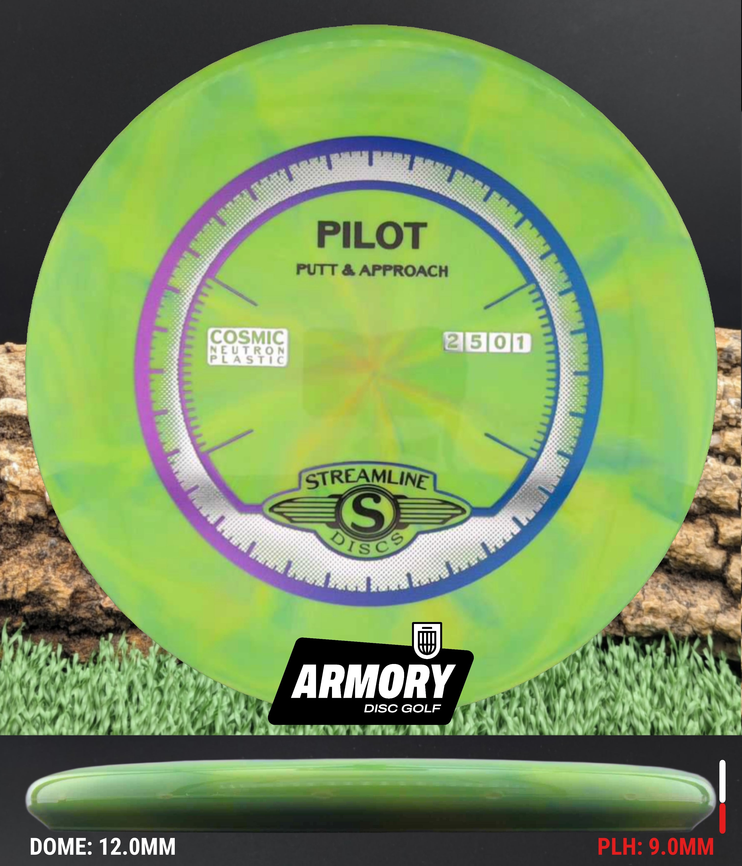 The Streamline Discs Pilot is a straight-flying putter designed for clean releases and dependable glide. With a neutral flight and subtle finish, the Pilot excels on the green and off the tee when precision is the priority.