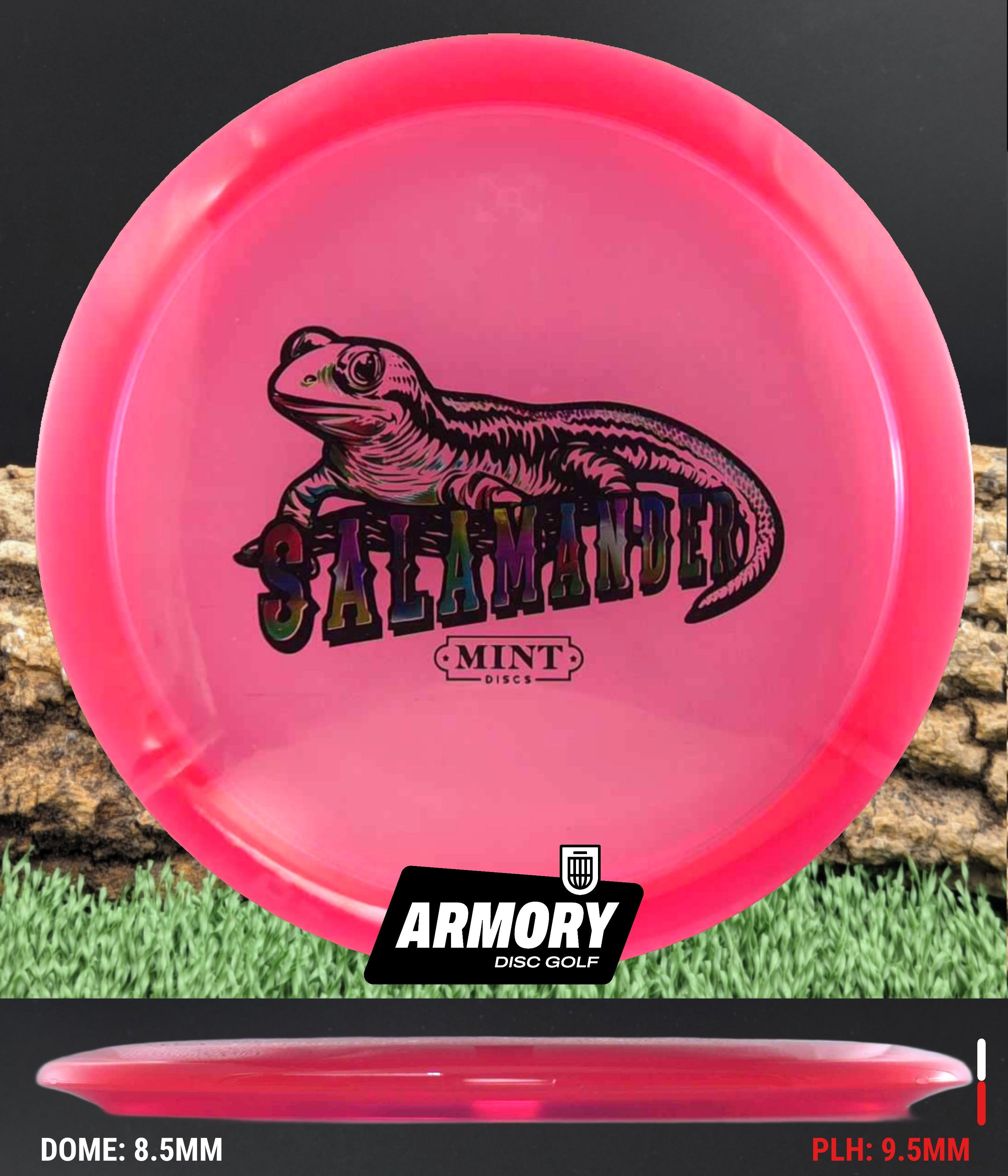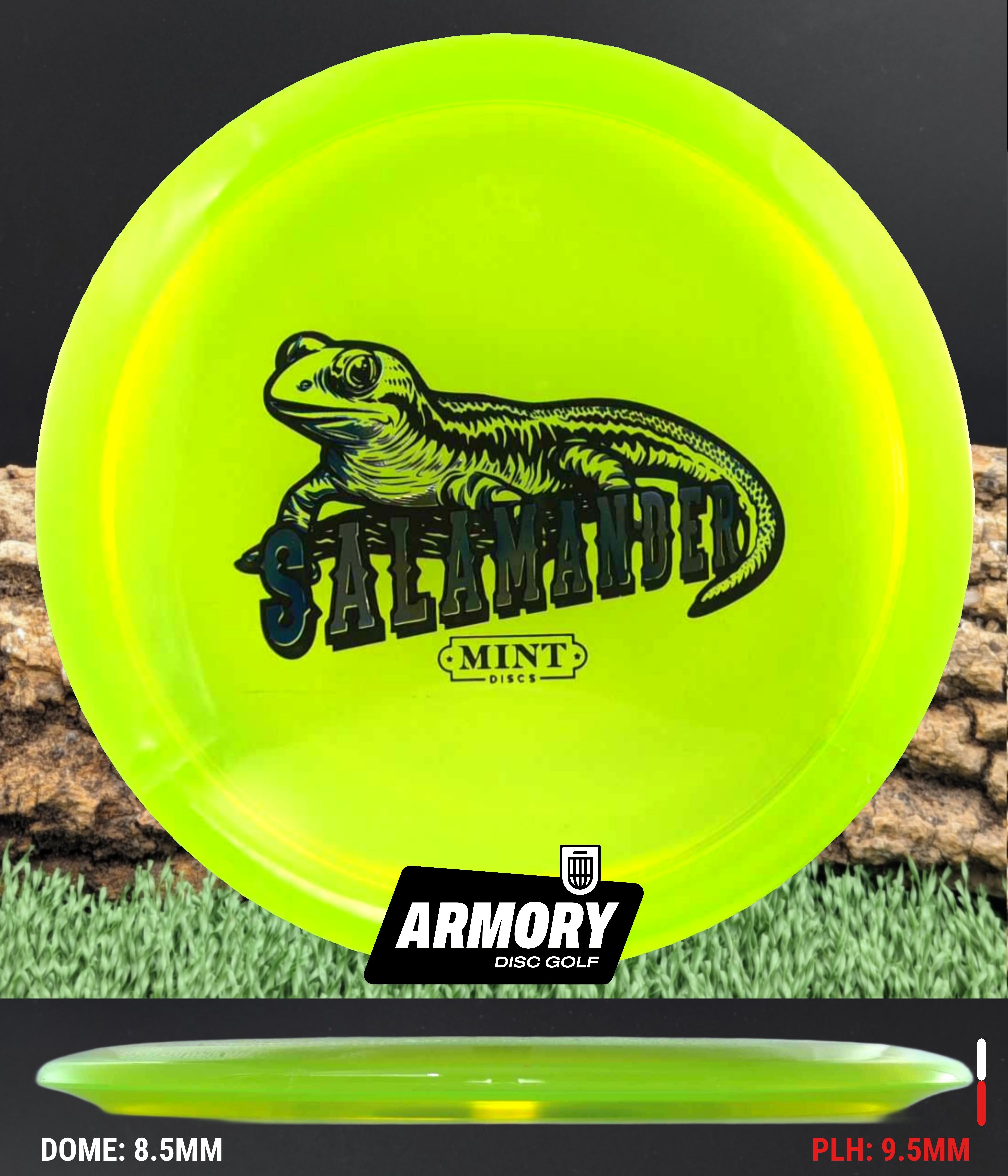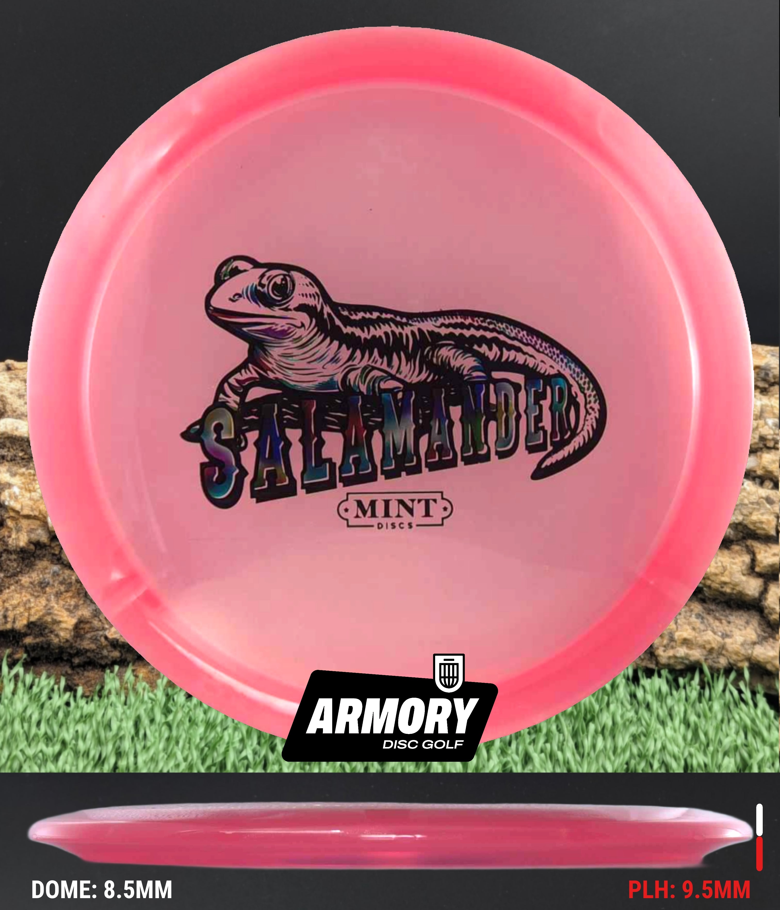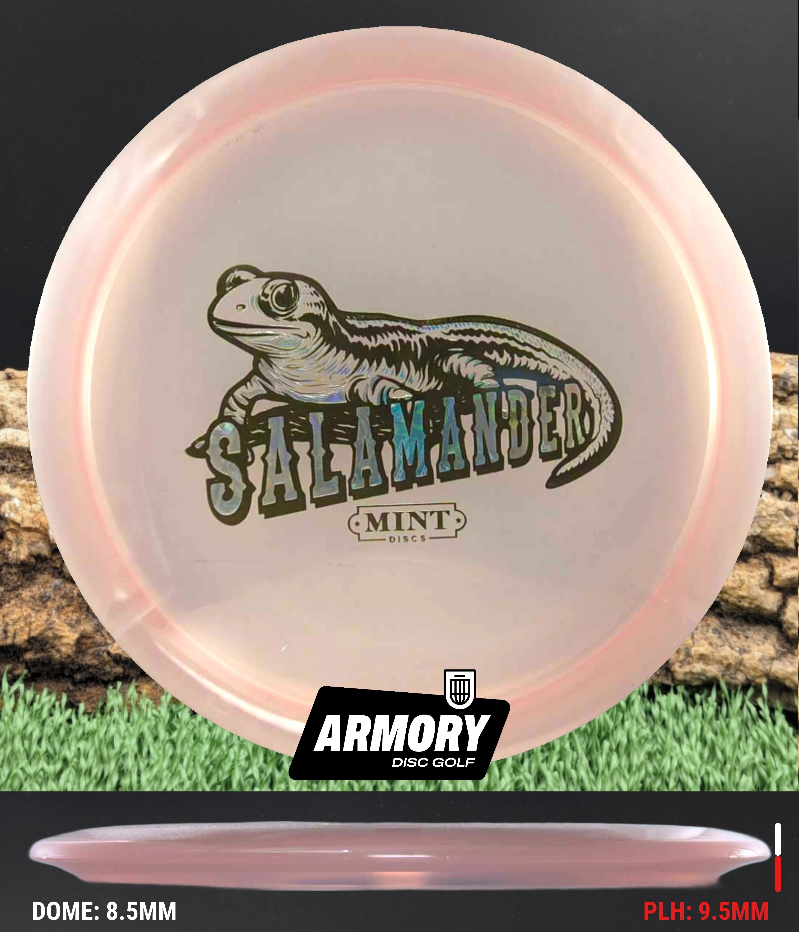 The 2nd Run Mint Discs Salamander returns with refined flight and stunning durability in Eternal plastic. Featuring flight numbers of 6 | 6 | -2 | 1, the Salamander is a glidey, understable fairway driver designed for effortless distance and smooth shot shaping.