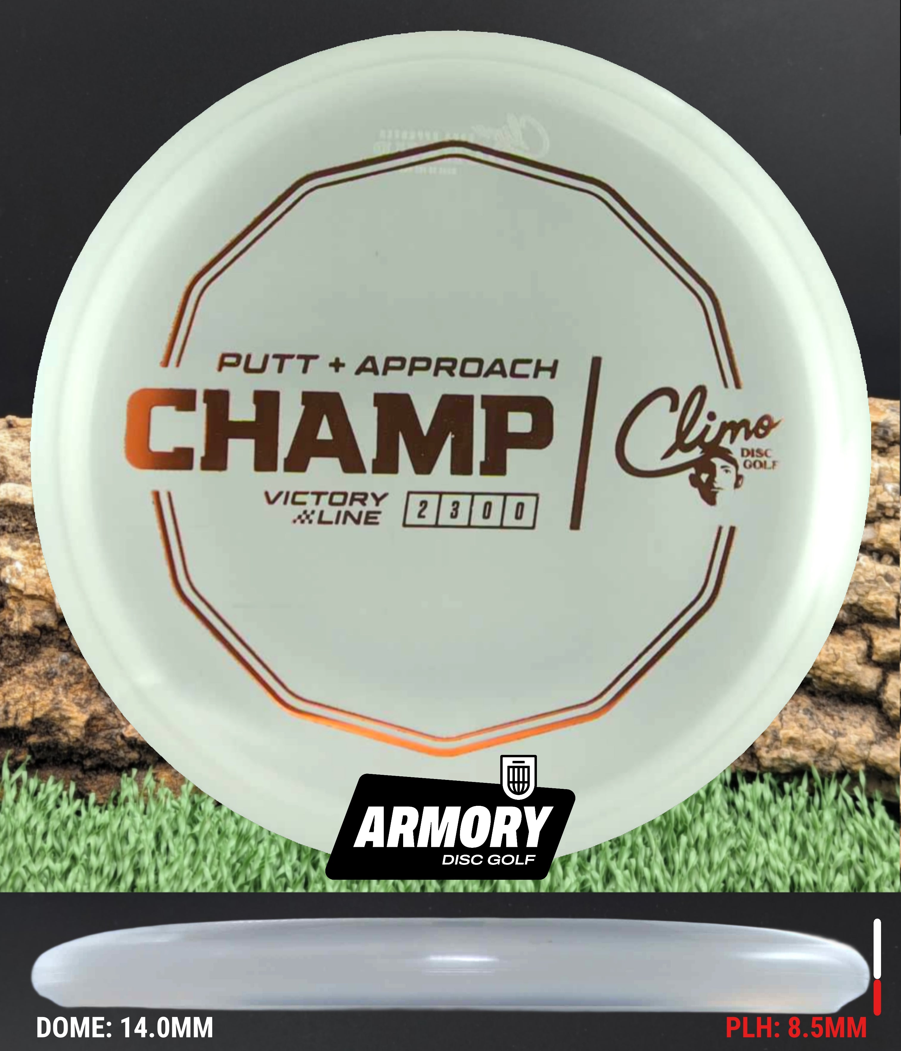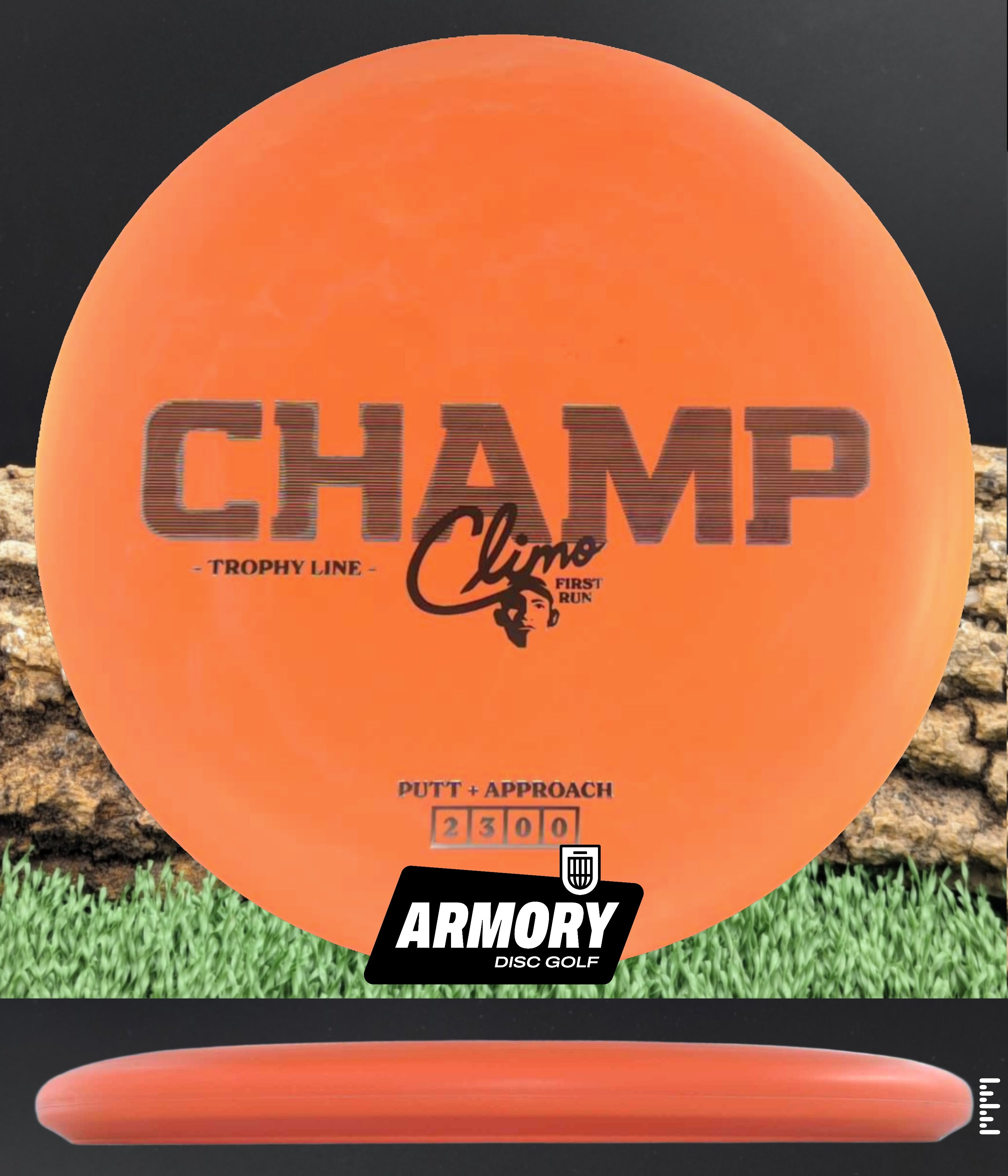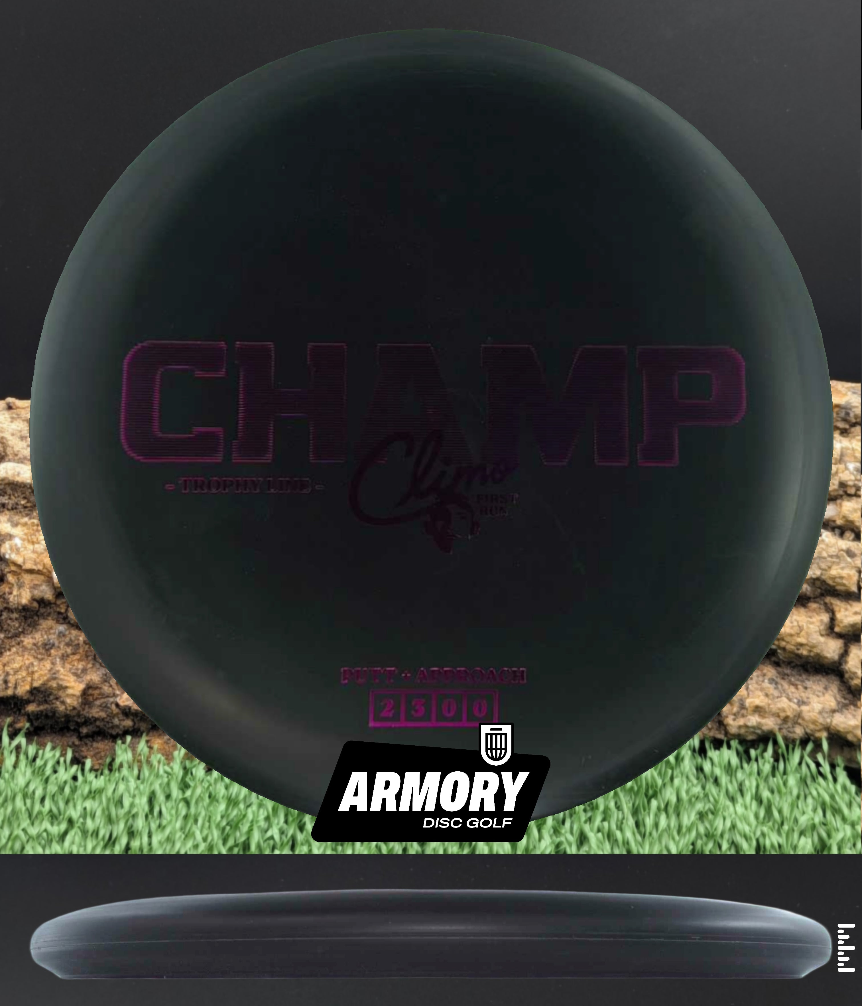 Ken Climo’s legacy of 12 world titles and countless victories was built on his mastery of the putting green. Now, channel that same confidence with the Climo Champ. With a neutral flight and plenty of glide, the Champ is perfect for disc golfers who favor a straightforward, point-and-shoot putting style. But it doesn’t stop there—its great torque resistance and smooth release make it just as effective off the tee. Thanks to its standard depth, flat-edge wing, and microbead, the Champ delivers consistency and control, whether you’re in Circle 1 or looking to get there.