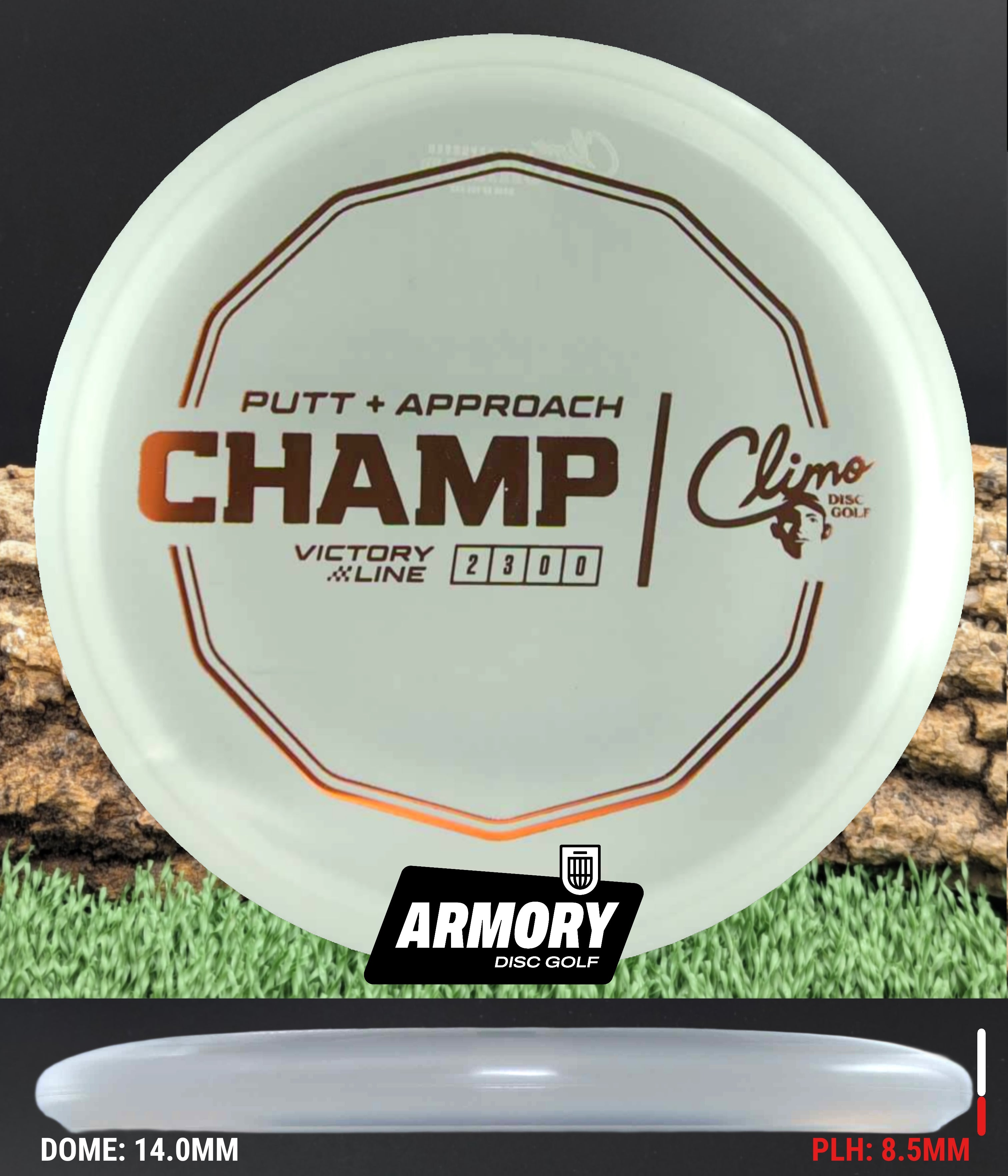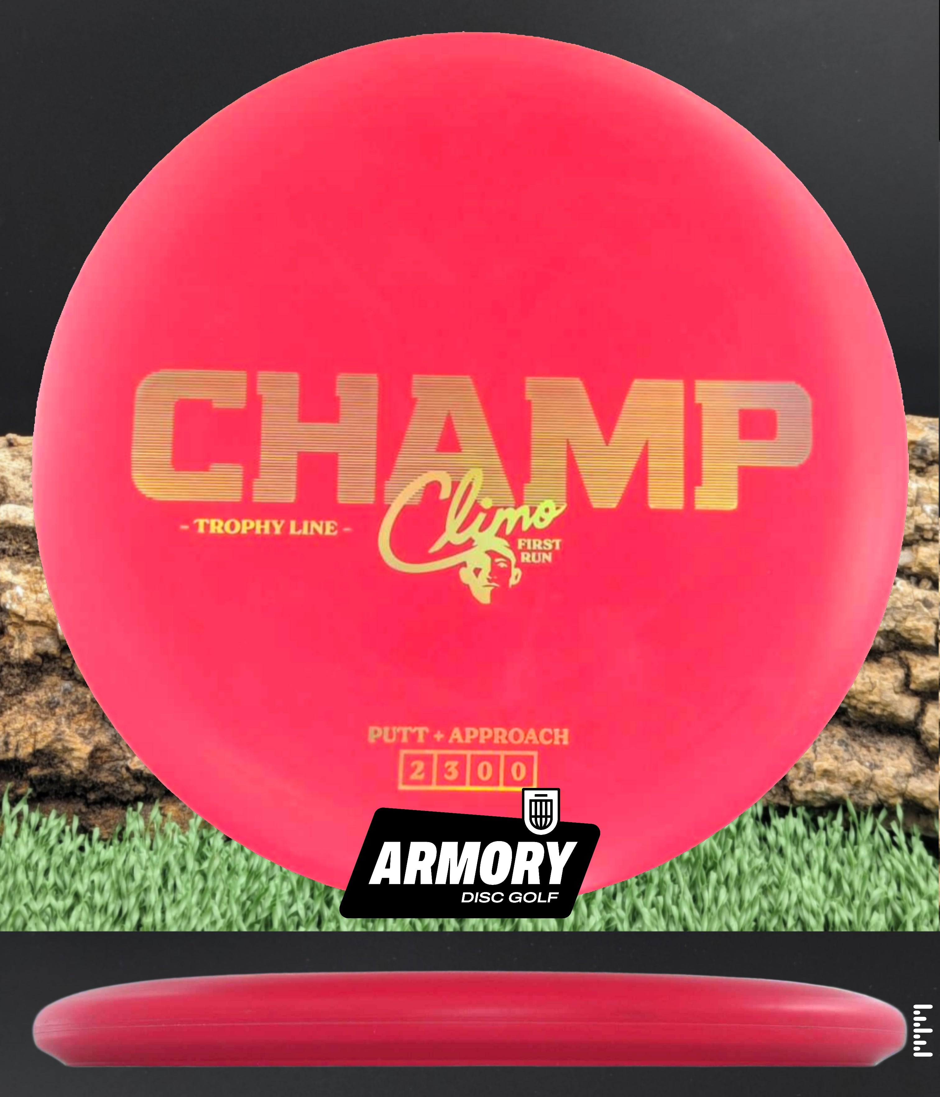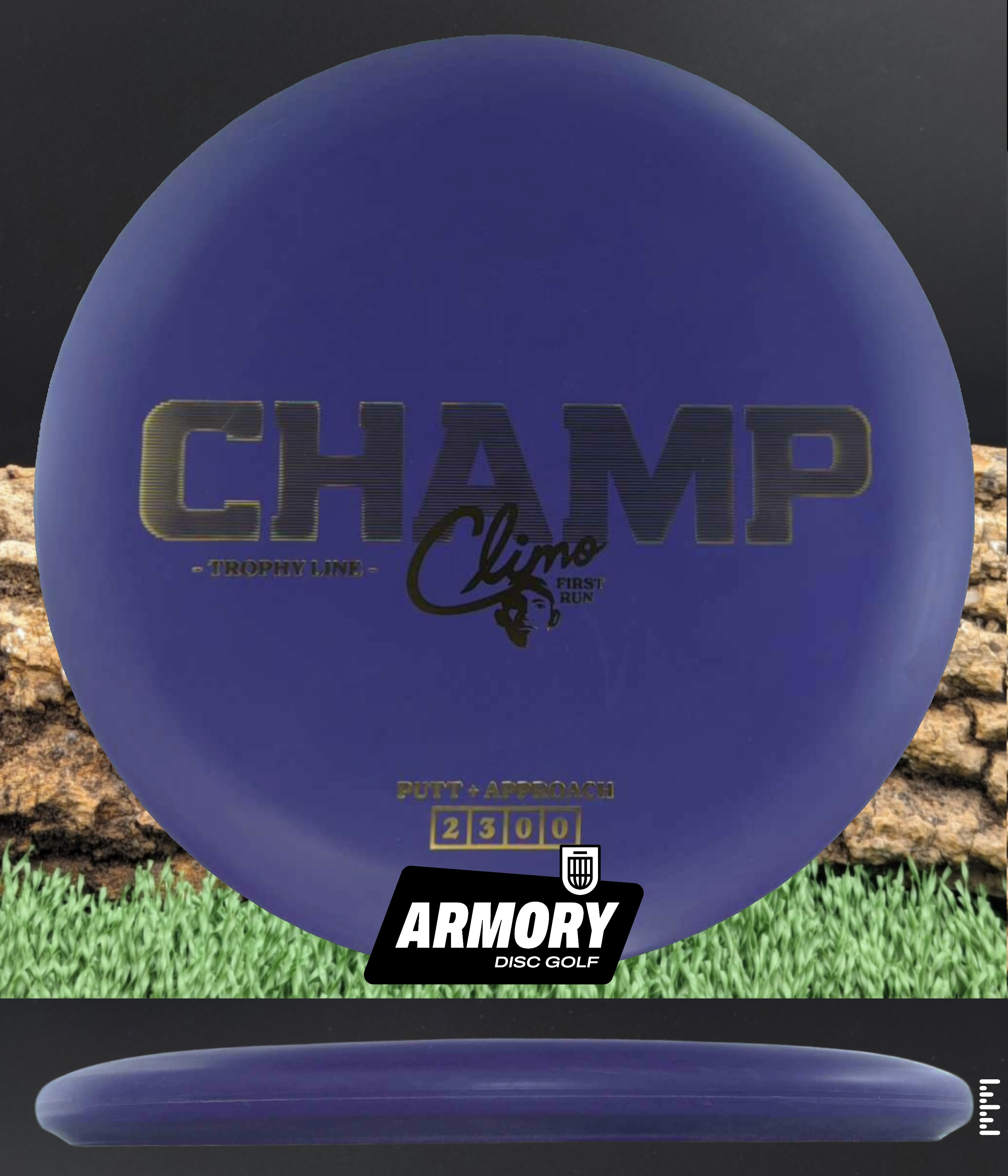 Ken Climo’s legacy of 12 world titles and countless victories was built on his mastery of the putting green. Now, channel that same confidence with the Climo Champ. With a neutral flight and plenty of glide, the Champ is perfect for disc golfers who favor a straightforward, point-and-shoot putting style. But it doesn’t stop there—its great torque resistance and smooth release make it just as effective off the tee. Thanks to its standard depth, flat-edge wing, and microbead, the Champ delivers consistency and control, whether you’re in Circle 1 or looking to get there.