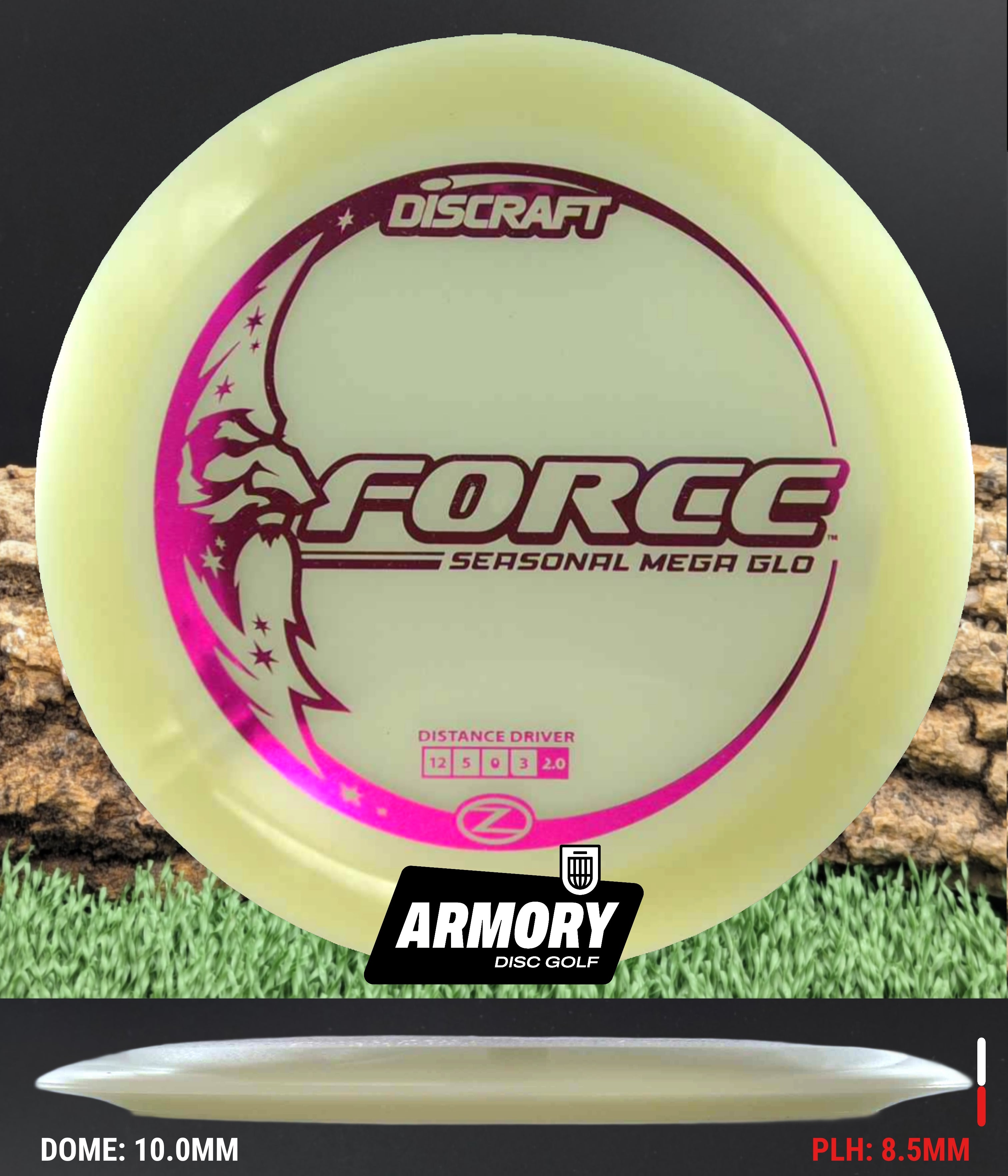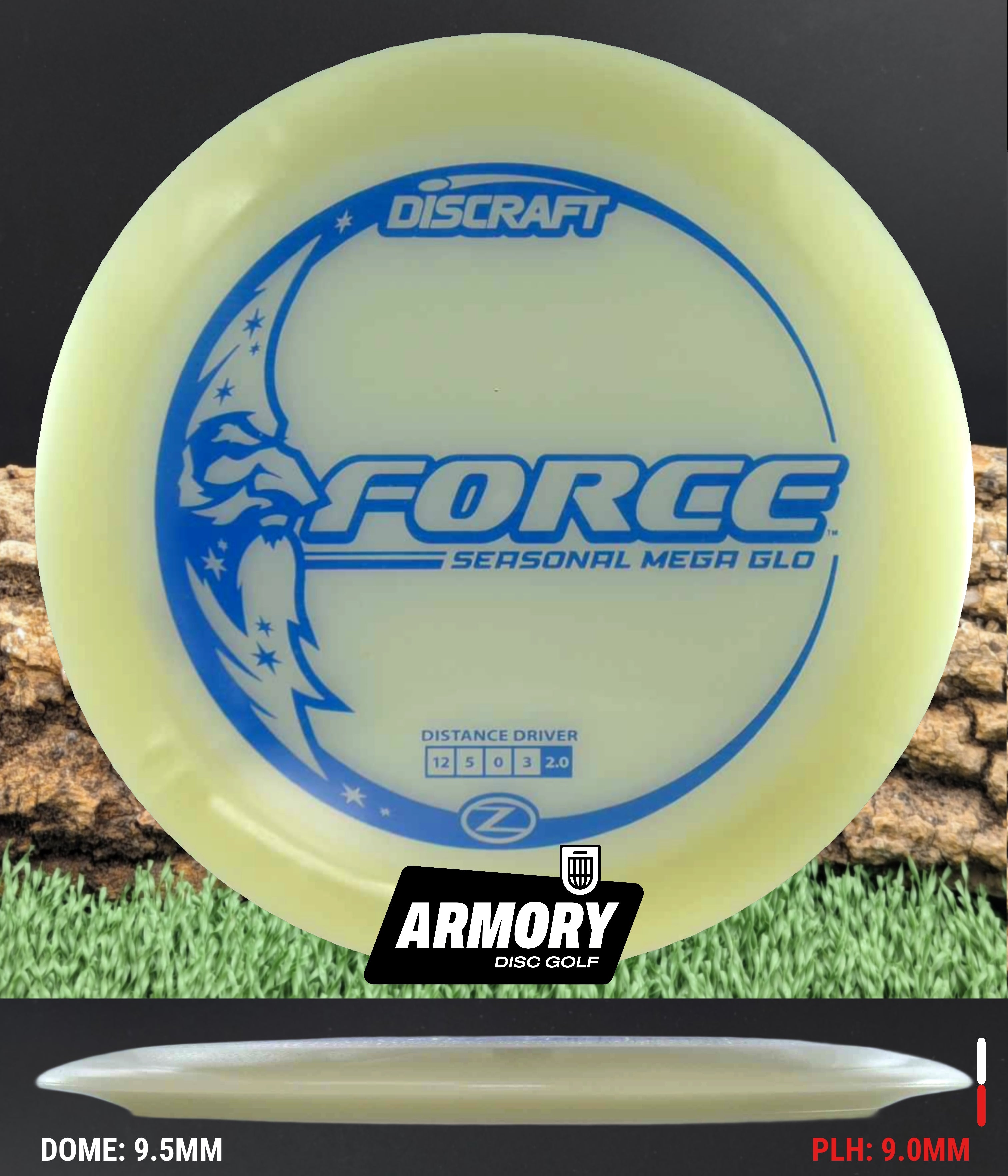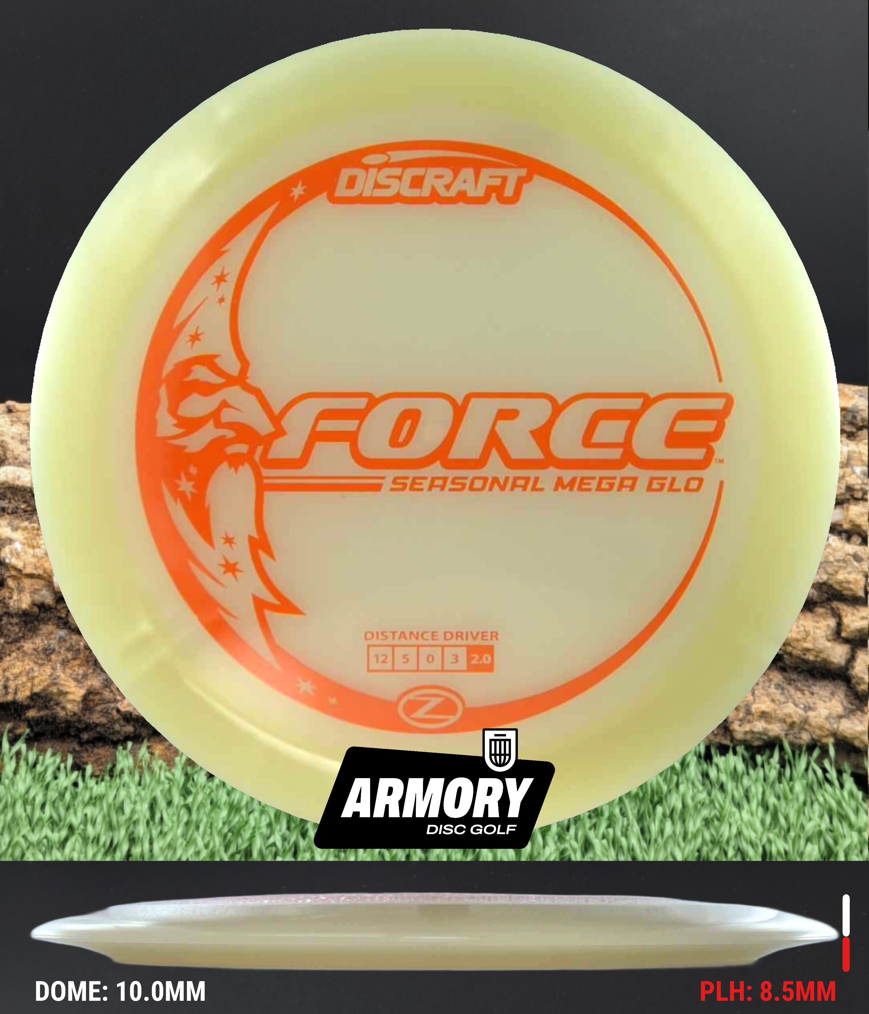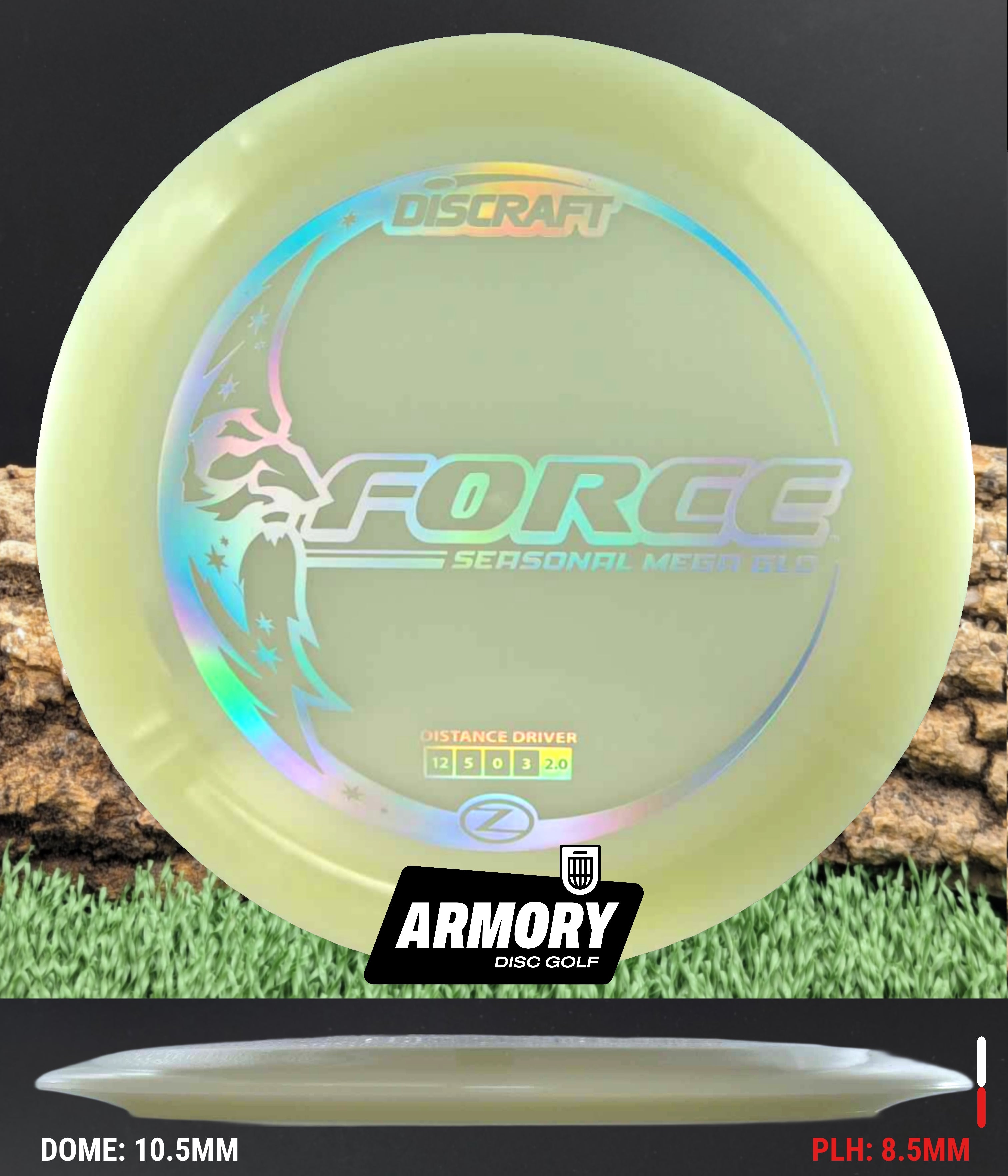 Powerful, bright, and battle-tested — the Discraft Mega Glo Force commands the course with confidence, distance, and glow-driven dominance.