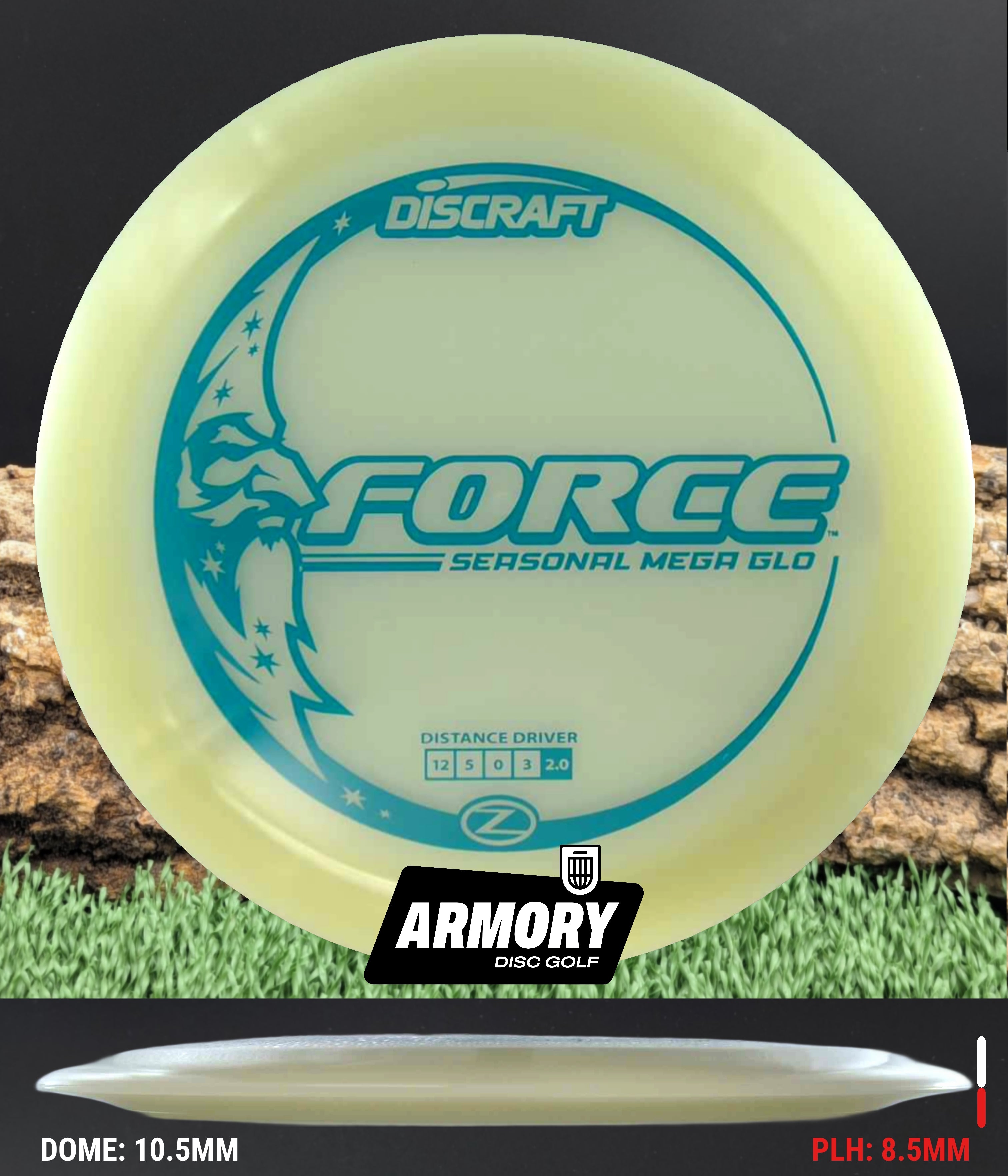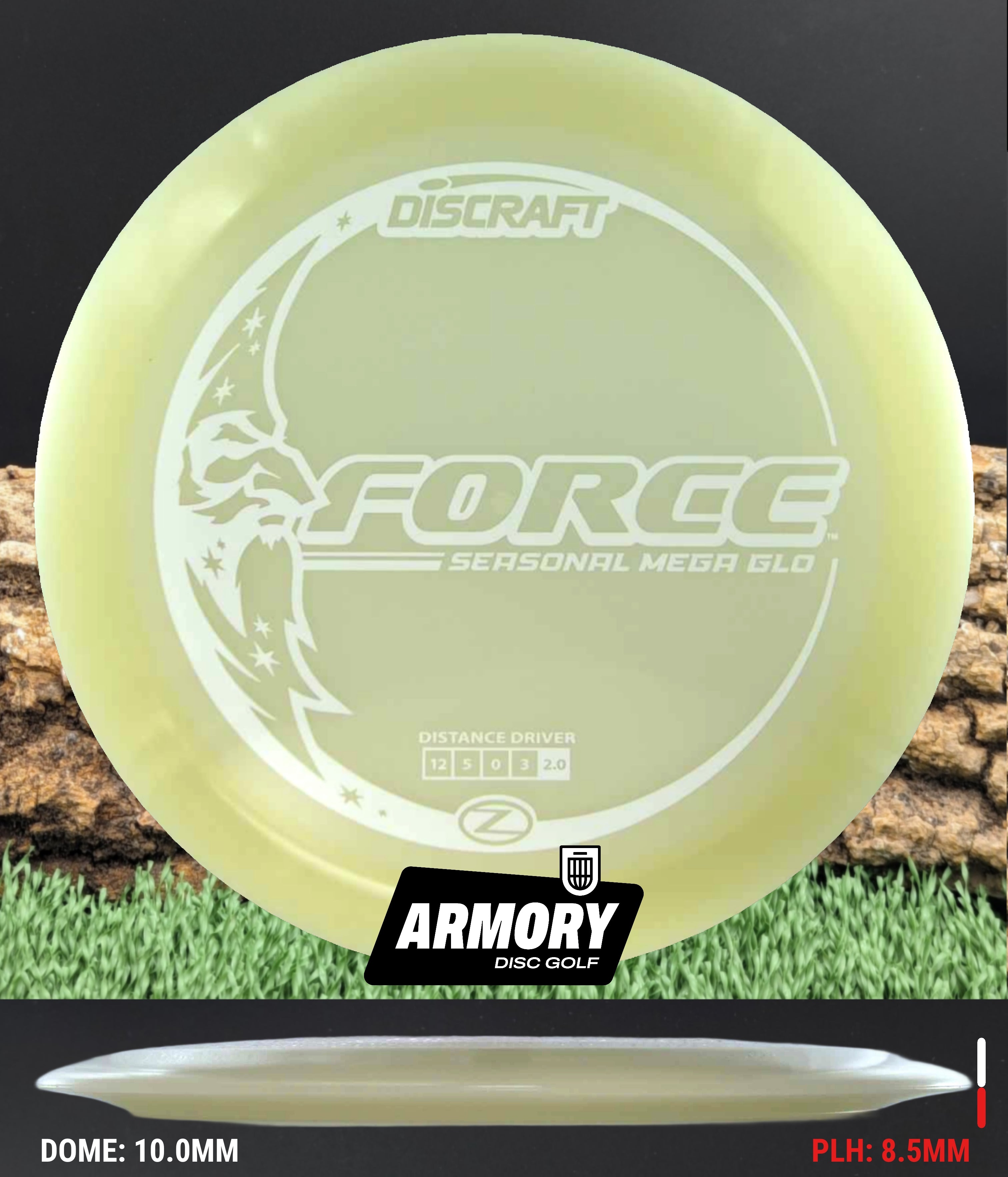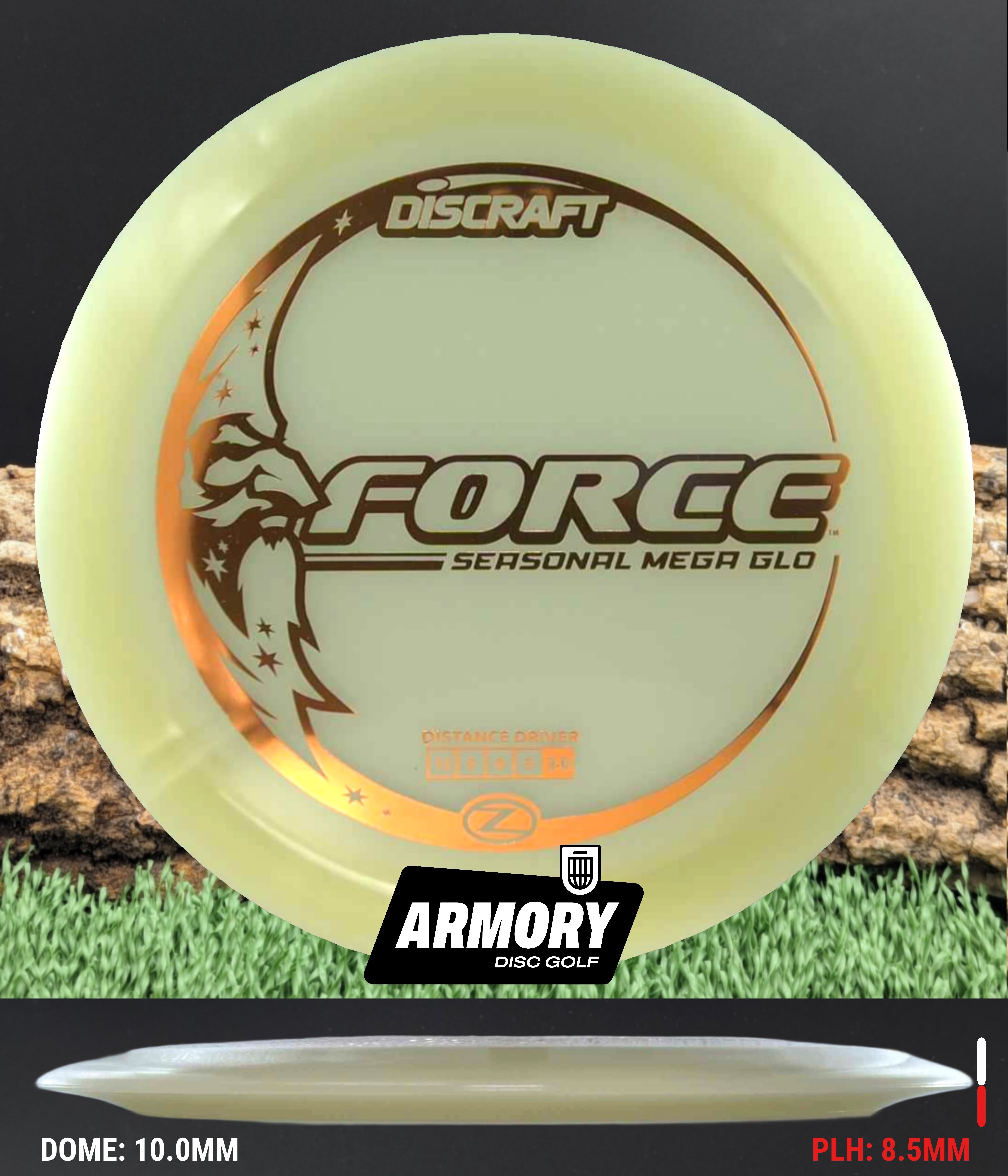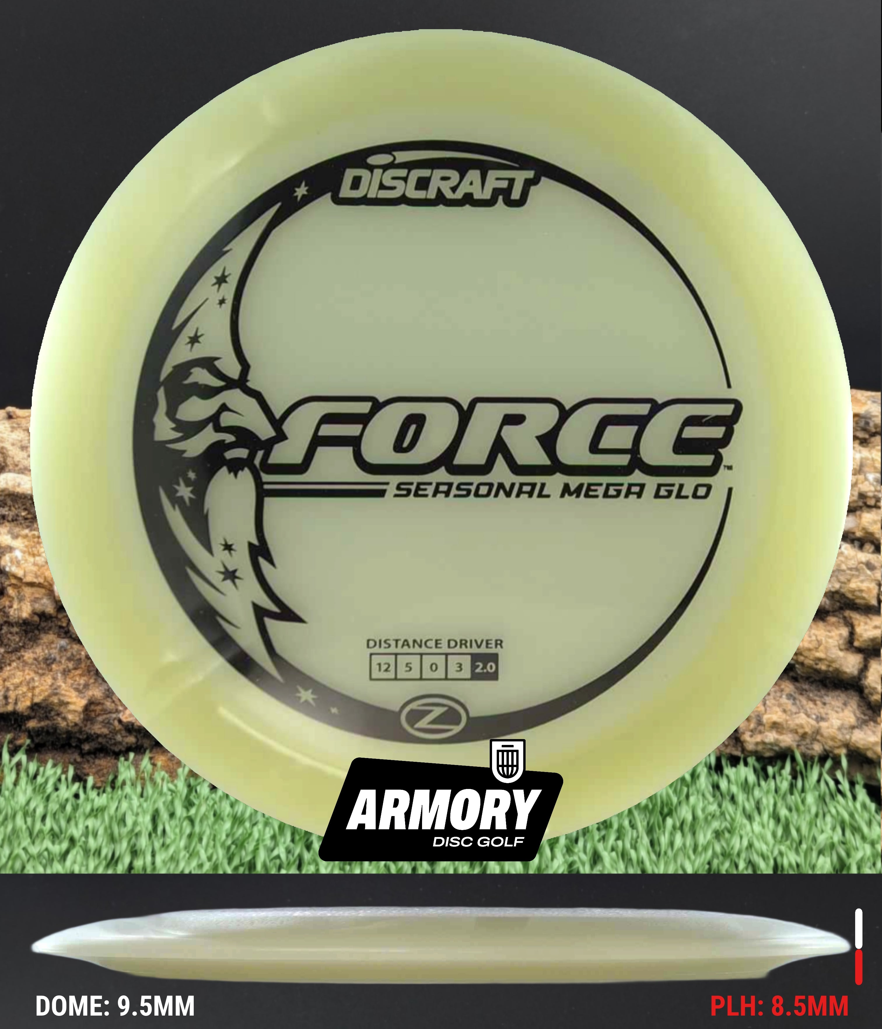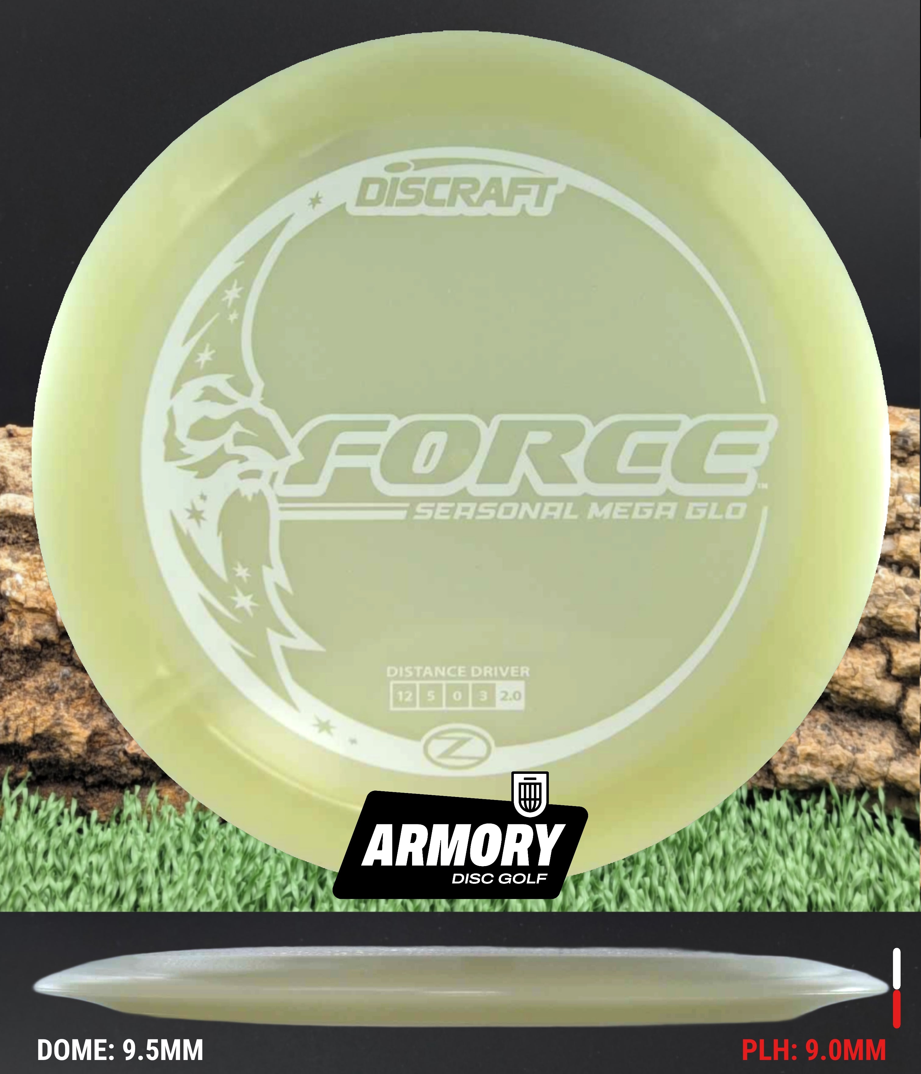 Powerful, bright, and battle-tested — the Discraft Mega Glo Force commands the course with confidence, distance, and glow-driven dominance.