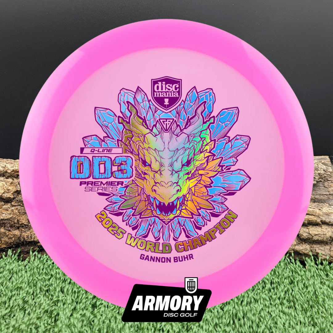 The DD3 has always been the flagship driver for players chasing pure distance — but this new Premier Series Q-Line DD3 takes it further than ever before. Co-designed with 2025 World Champion Gannon Buhr, this release introduces Discmania’s most advanced material technology to date, paired with a bold, championship-winning stamp.