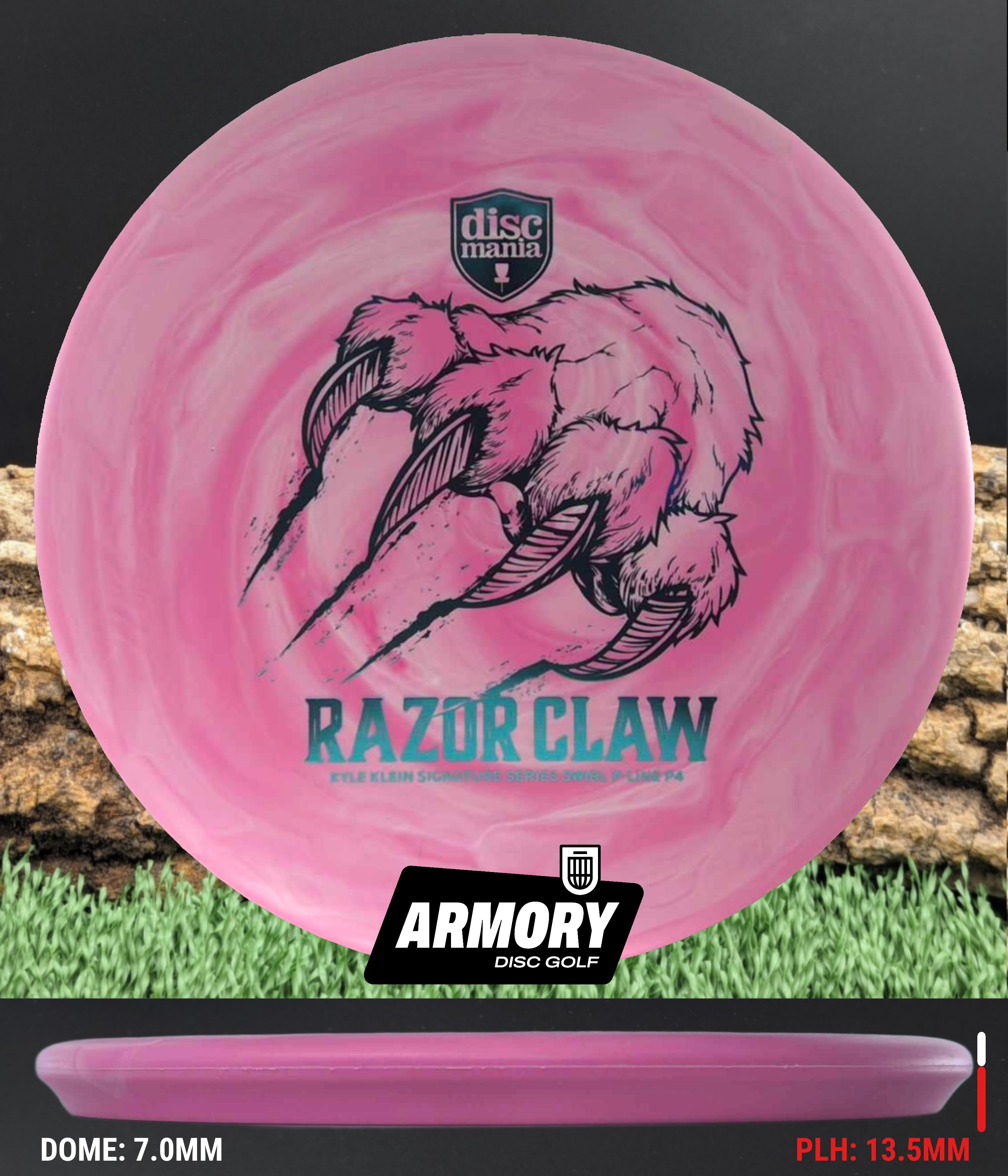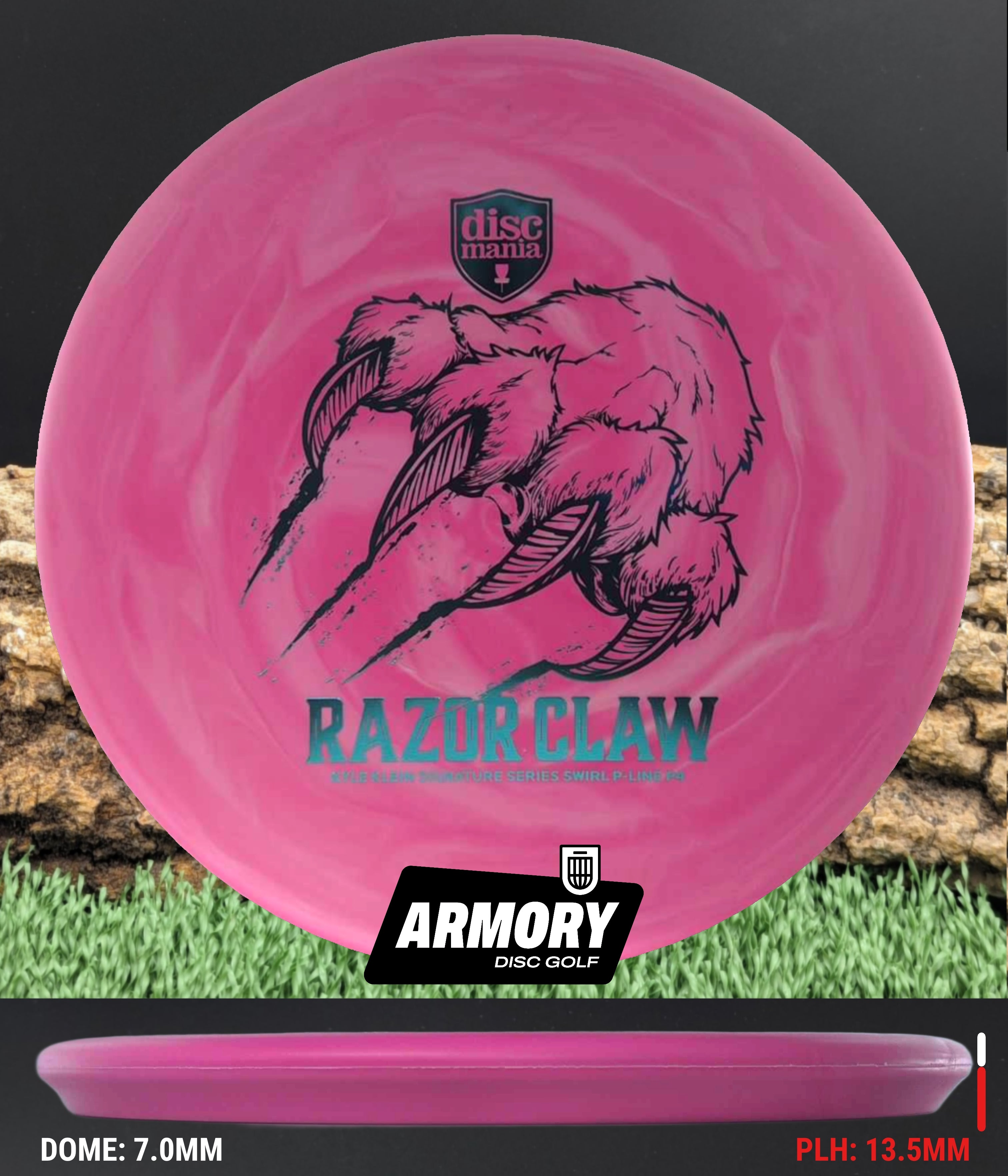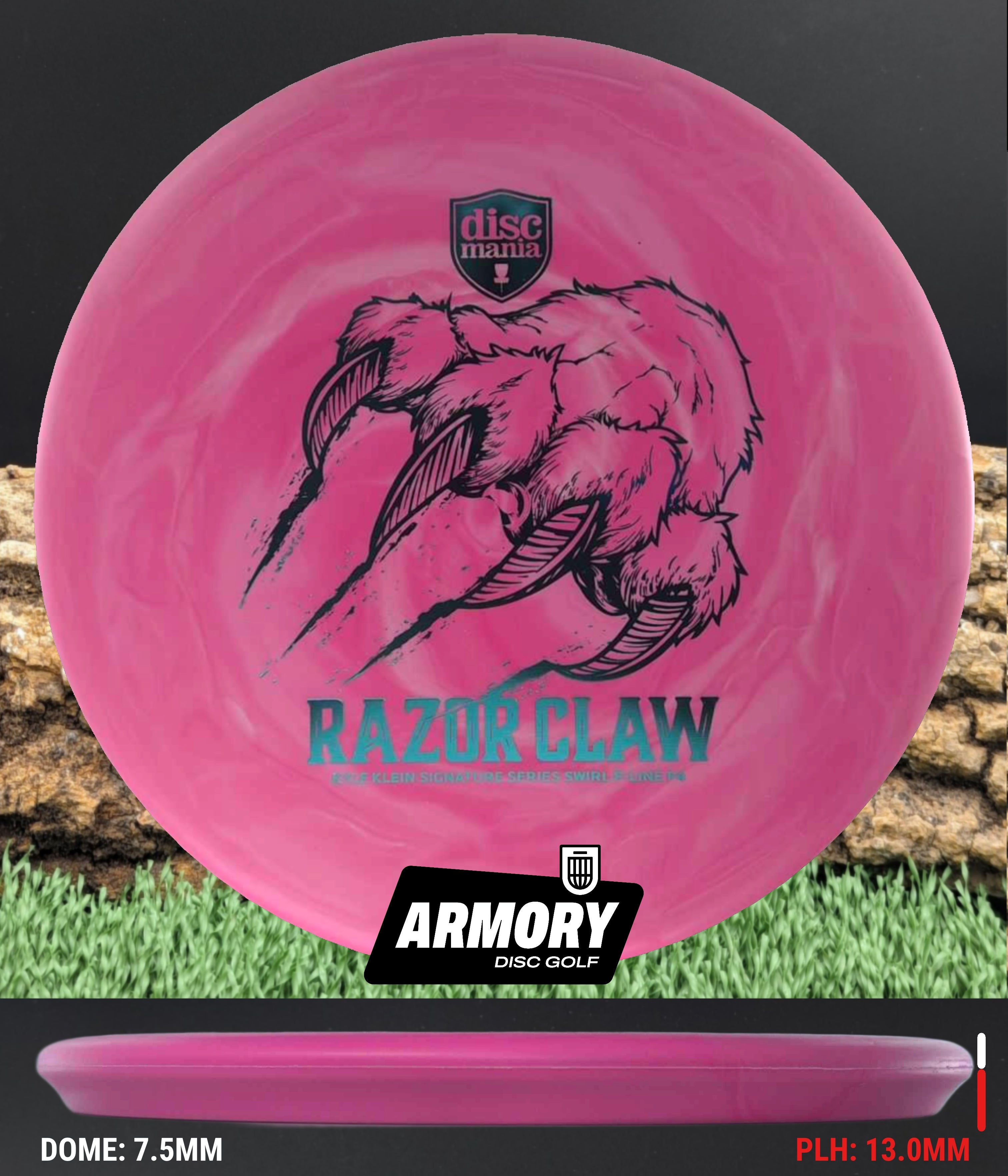 The Razor Claw returns—now endorsed by Kyle Klein and crafted in Swirl Flex 2 P-Line, Discmania’s most durable base plastic. This run blends tour-ready grip with eye-catching swirls, built to attack the basket from tee to green.