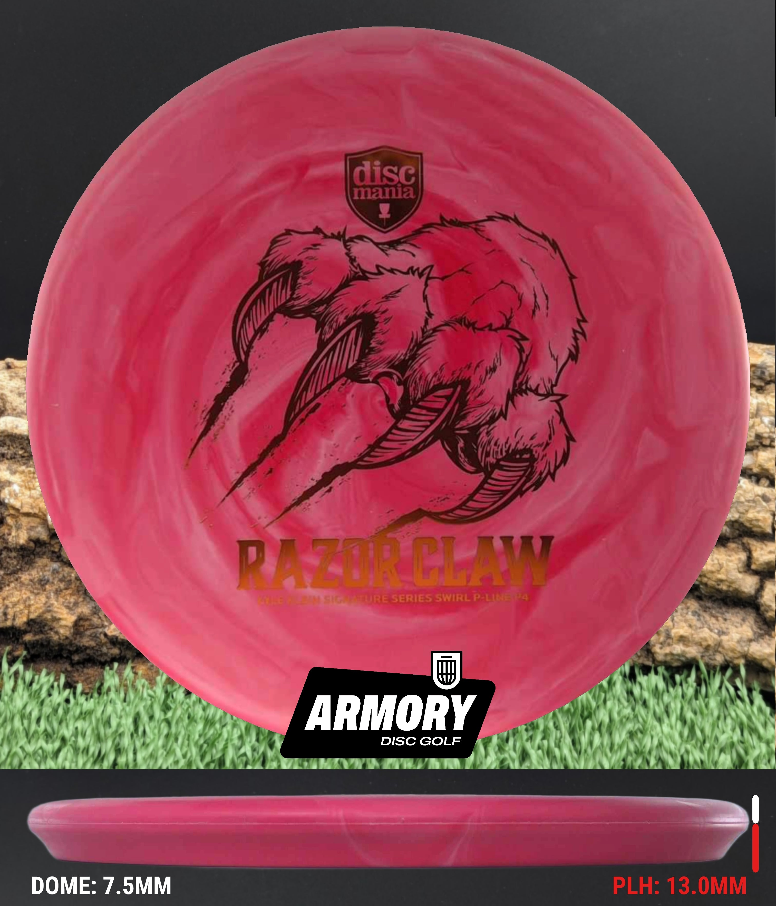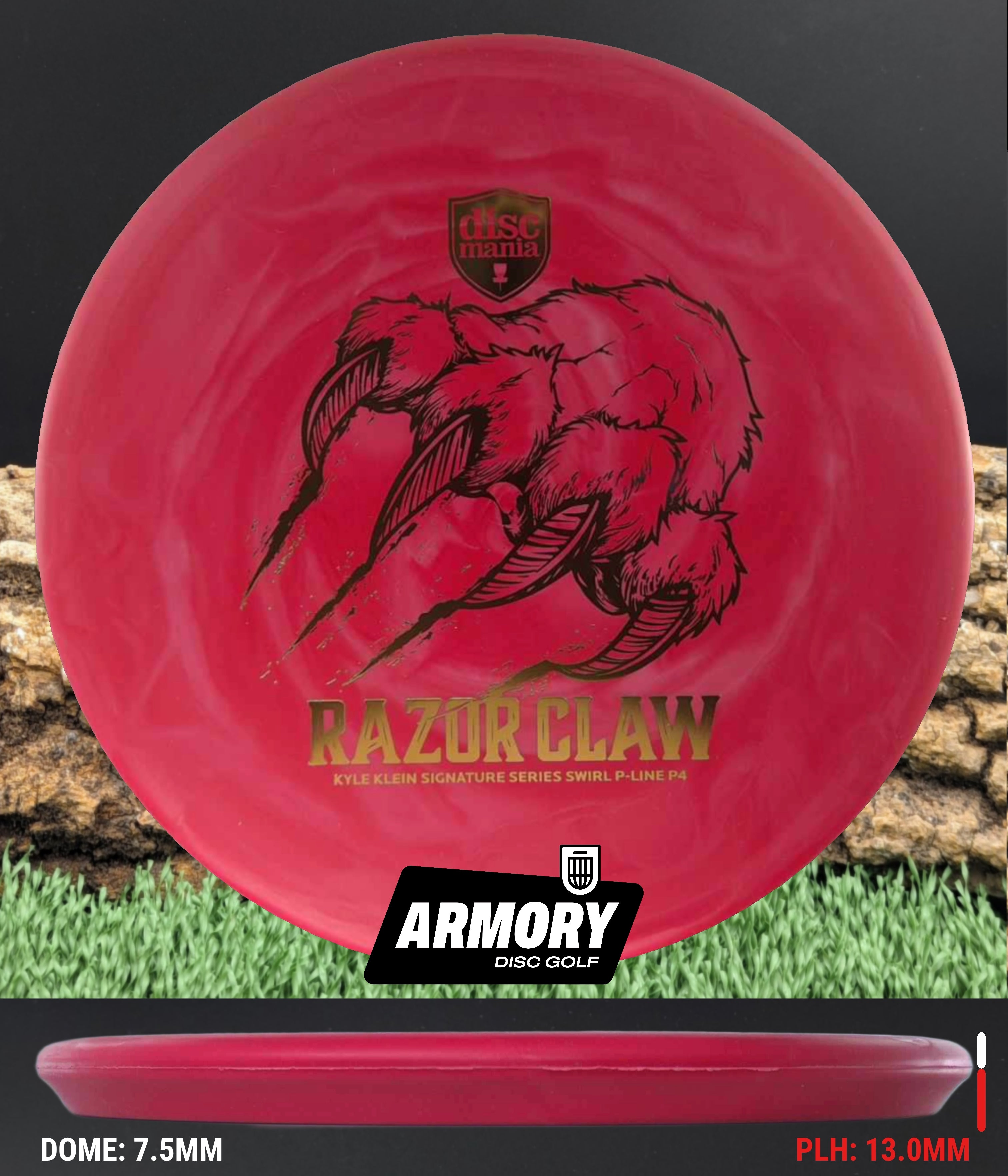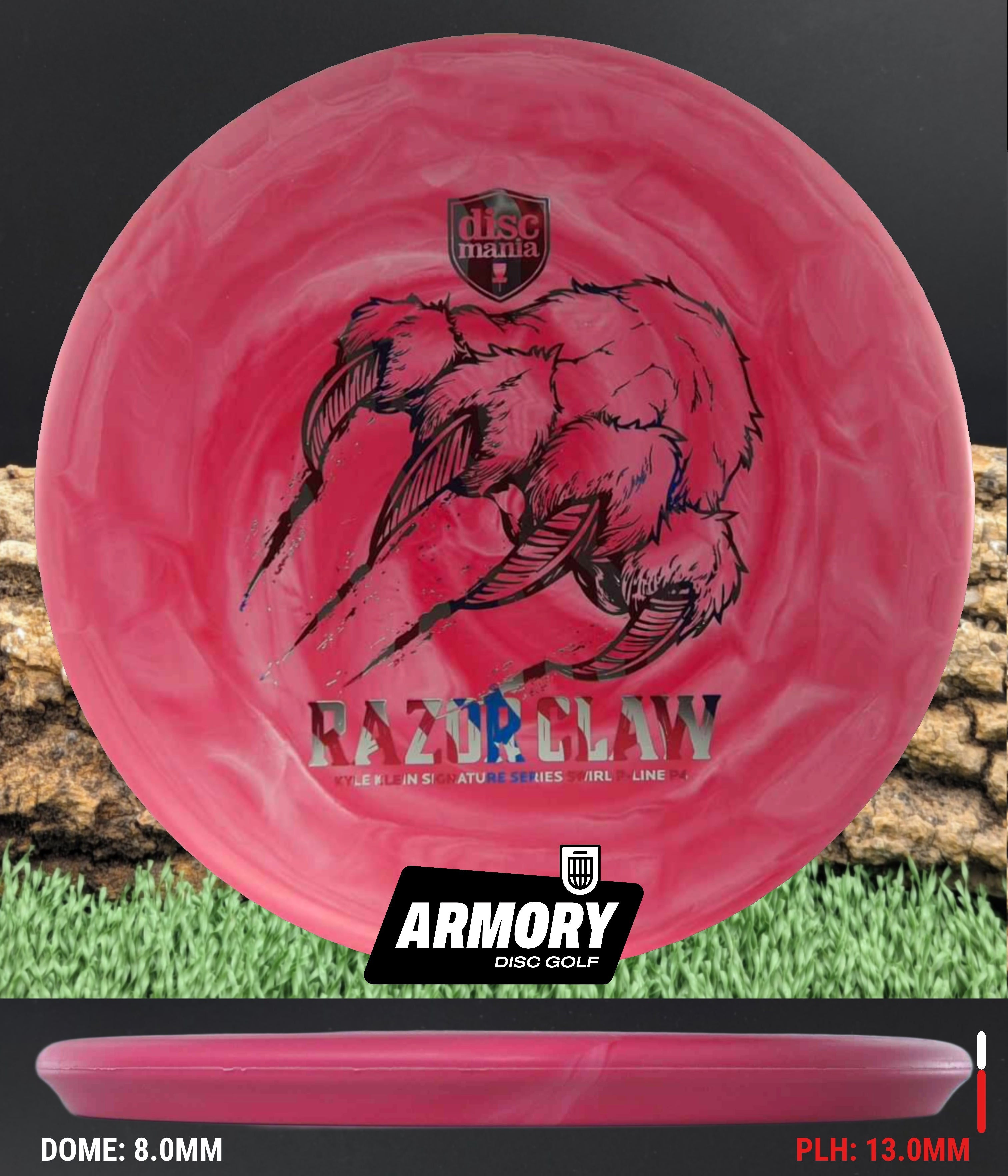 The Razor Claw returns—now endorsed by Kyle Klein and crafted in Swirl Flex 2 P-Line, Discmania’s most durable base plastic. This run blends tour-ready grip with eye-catching swirls, built to attack the basket from tee to green.