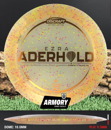 Celebrate Ezra Aderhold’s first DGPT victory at the Discmania Challenge with this limited-run Confetti Plastic Nuke OS – Victory Edition!