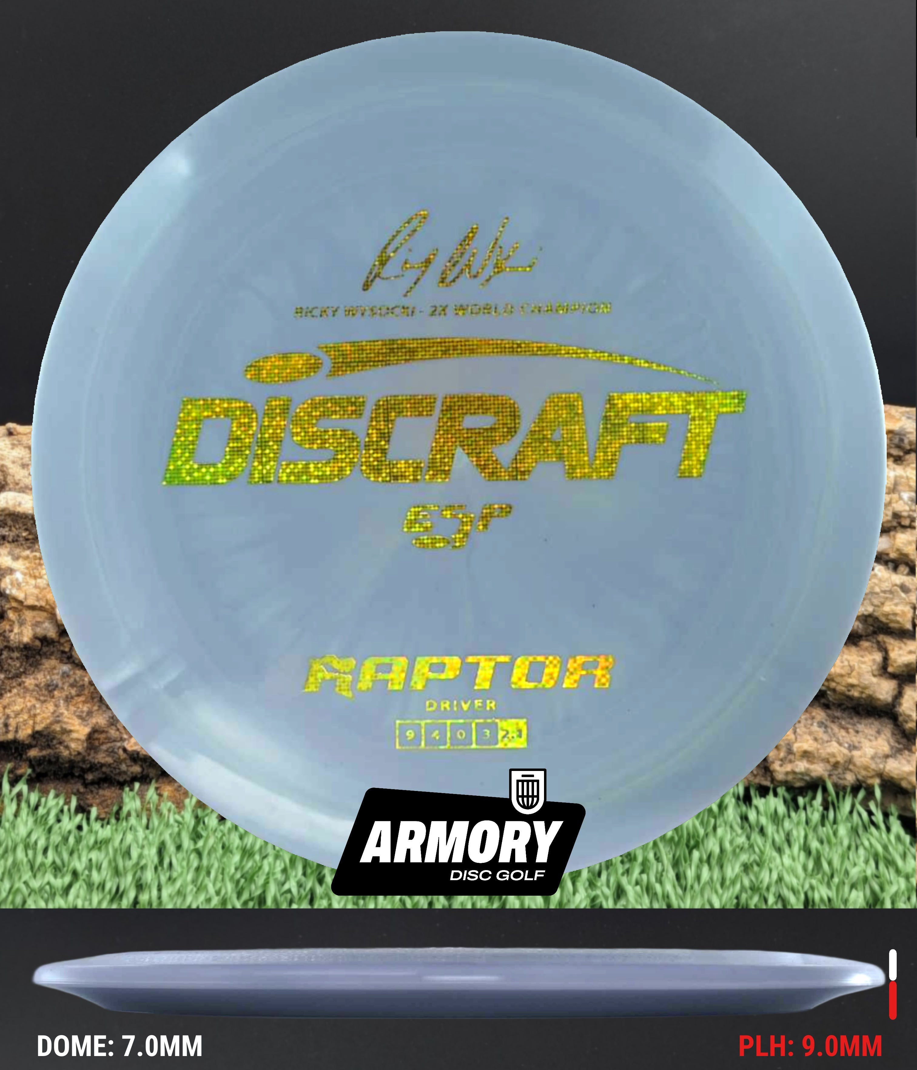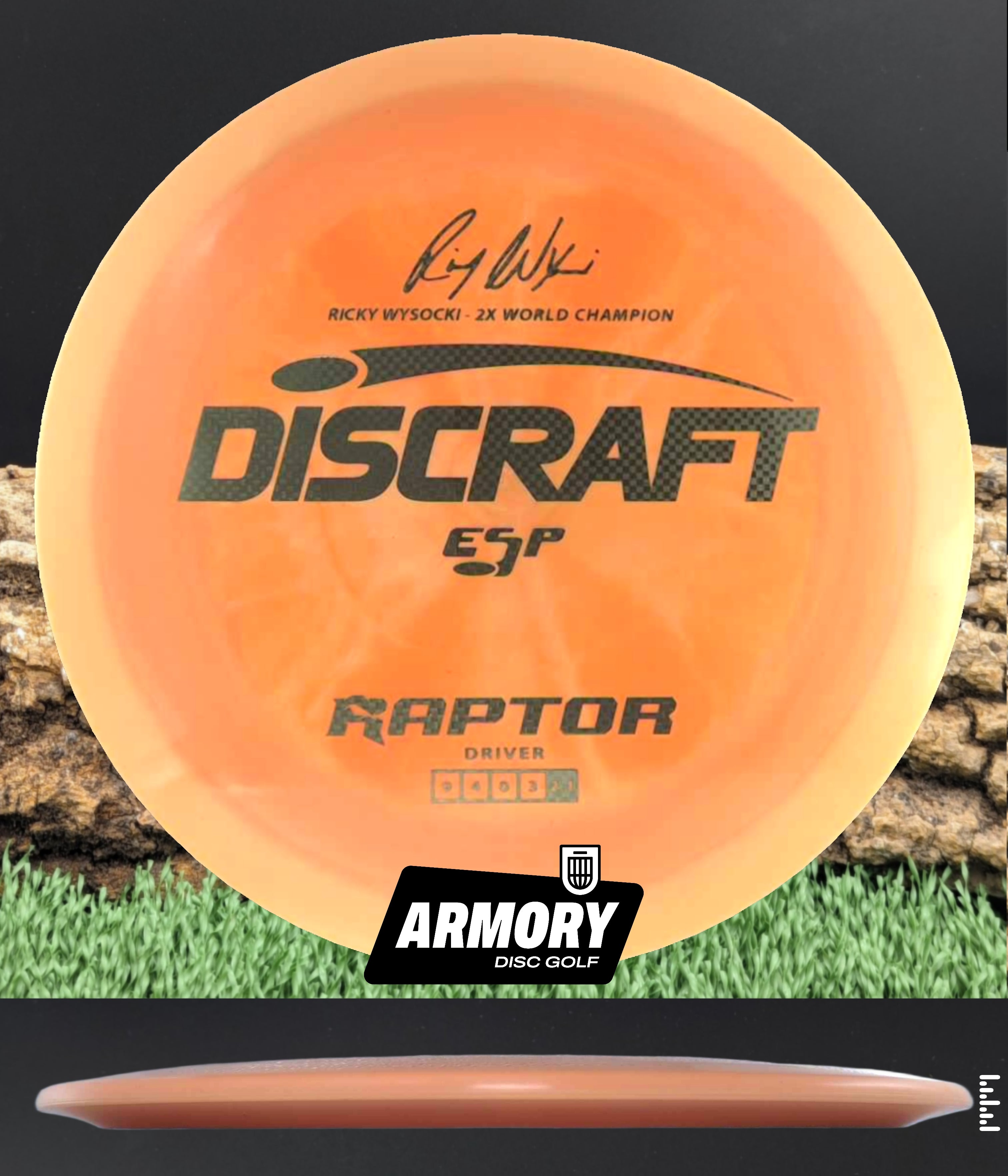 The Discraft ESP Raptor is a tour-level overstable fairway driver built for controlled distance and trusted fade. Known for its flat top and consistent overstability, the Raptor is a go-to disc for both forehand and backhand players when precision is the priority.