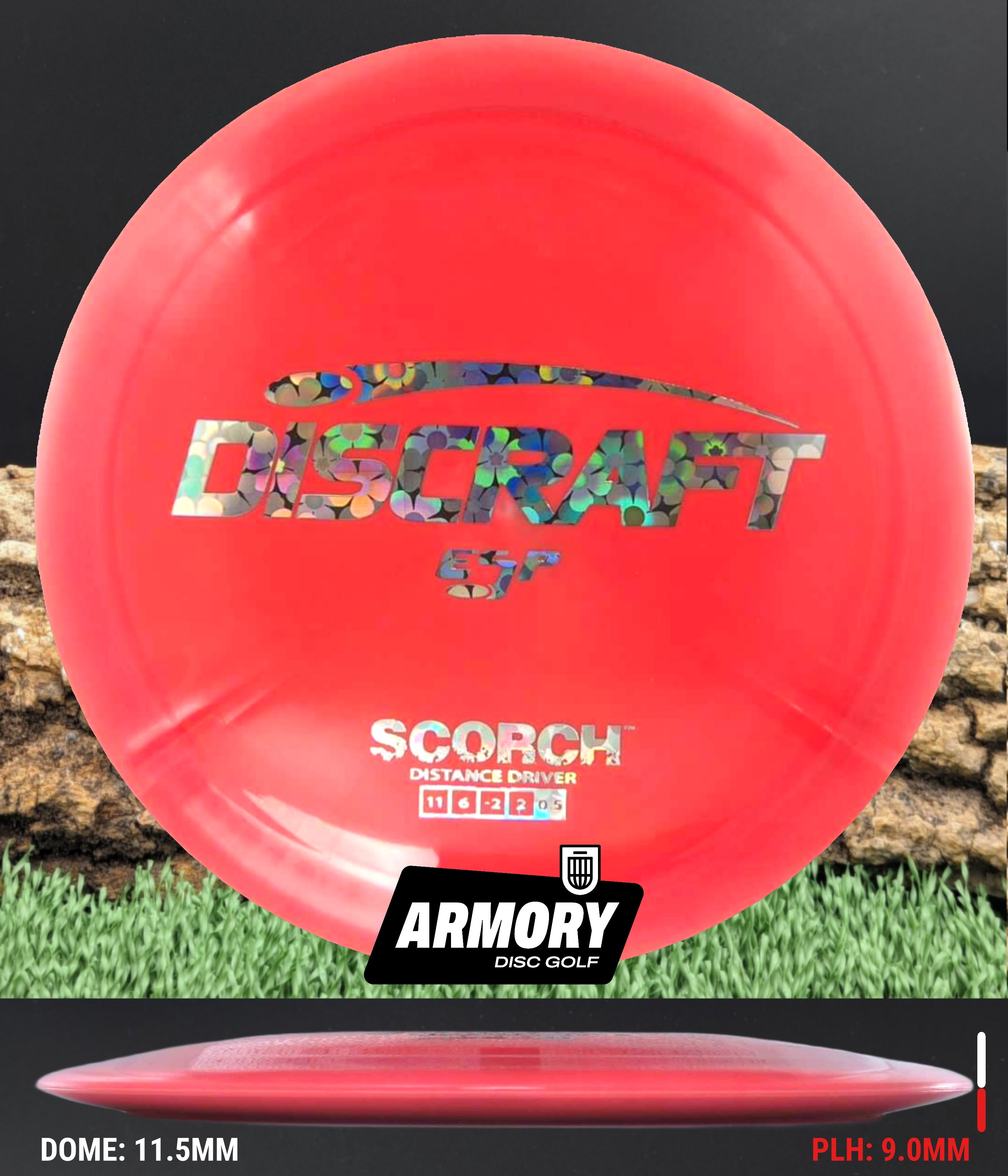 In ESP plastic, the Scorch shines even brighter. ESP is Discraft’s most popular premium blend, offering the perfect balance of durability, grip, and visual appeal. With swirled, often unique colorways and a slightly gummier feel compared to Z Line, ESP delivers dependable performance in all weather conditions. Players will love the confidence-in-hand that ESP provides — especially on long hyzer-flip drives, tailwind bombs, and turnover lines.