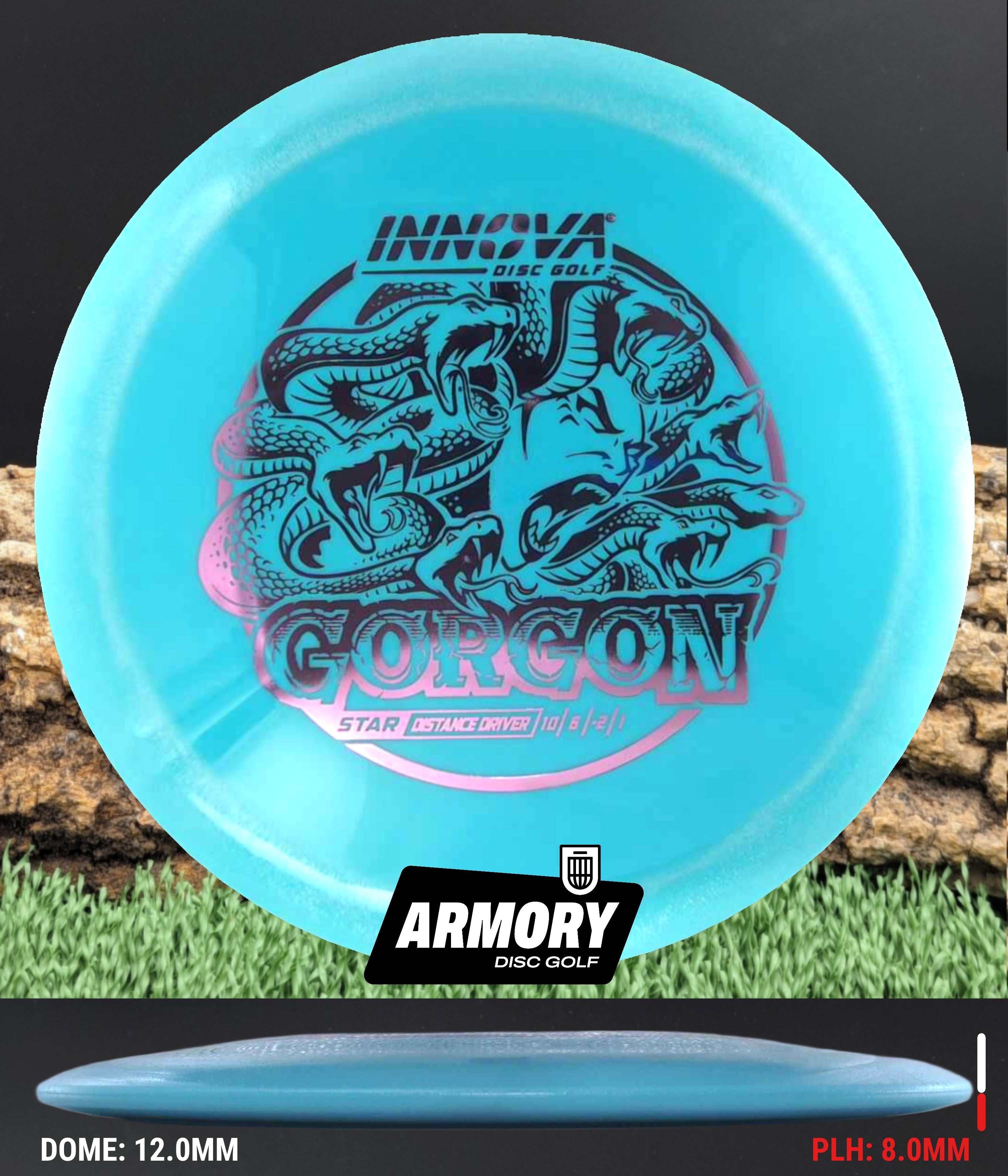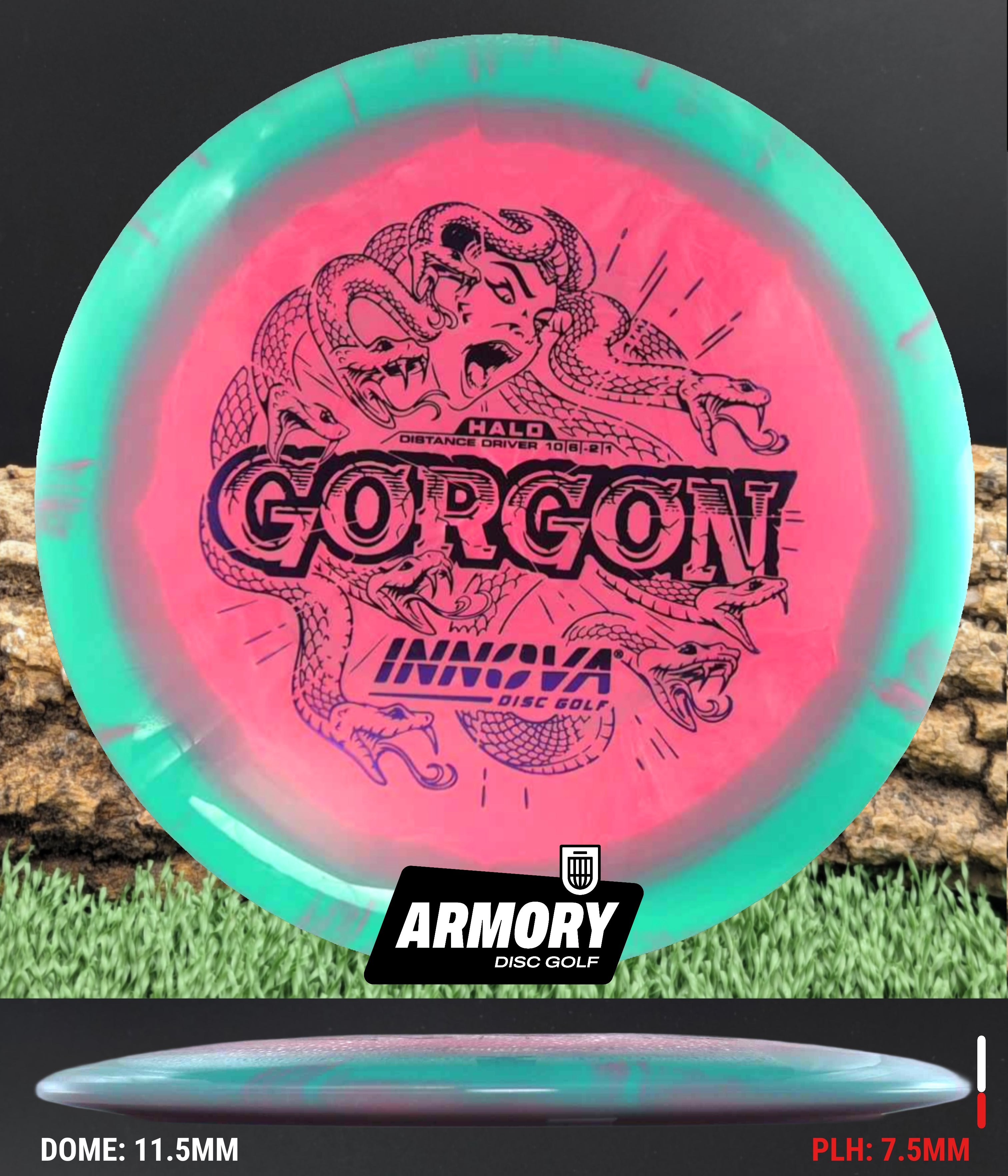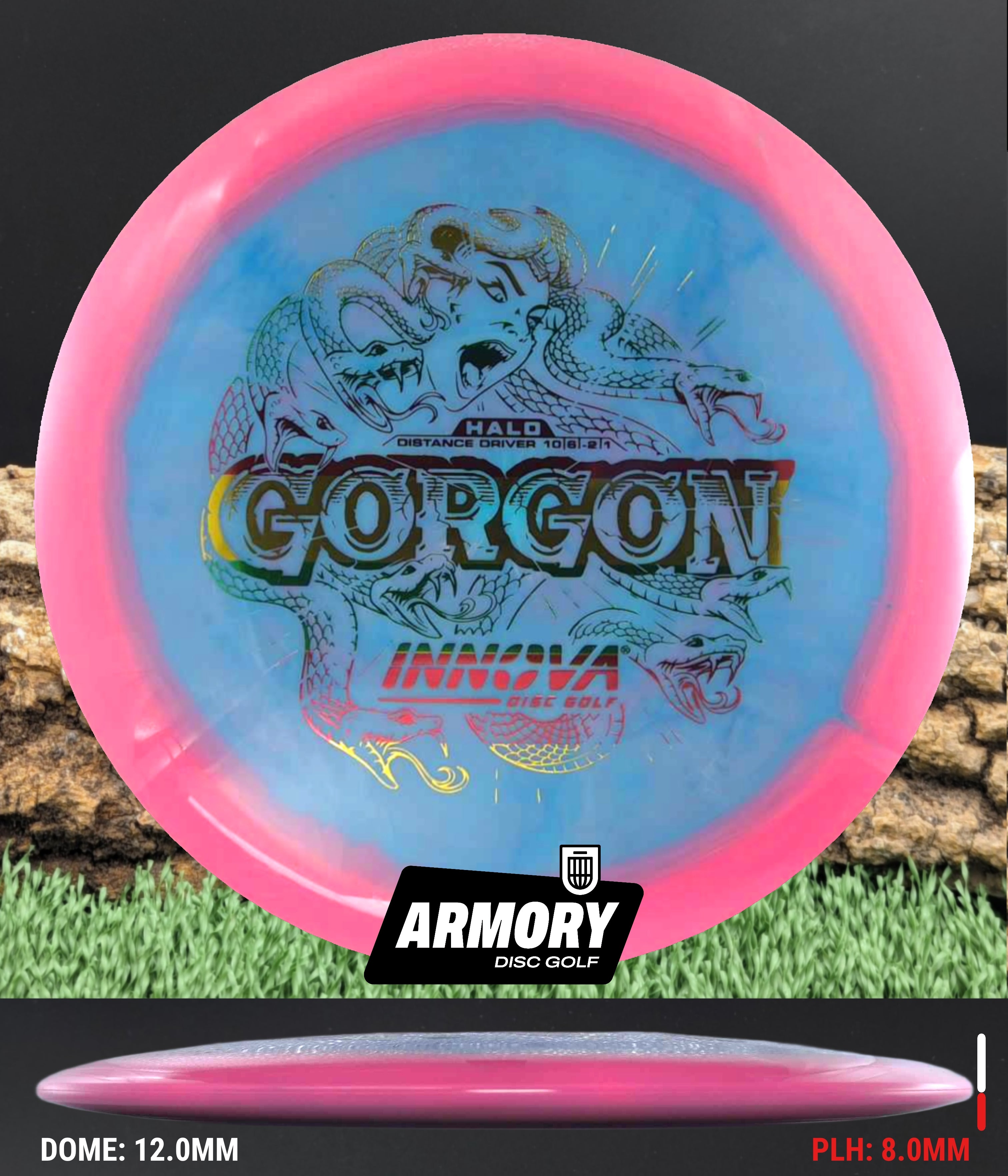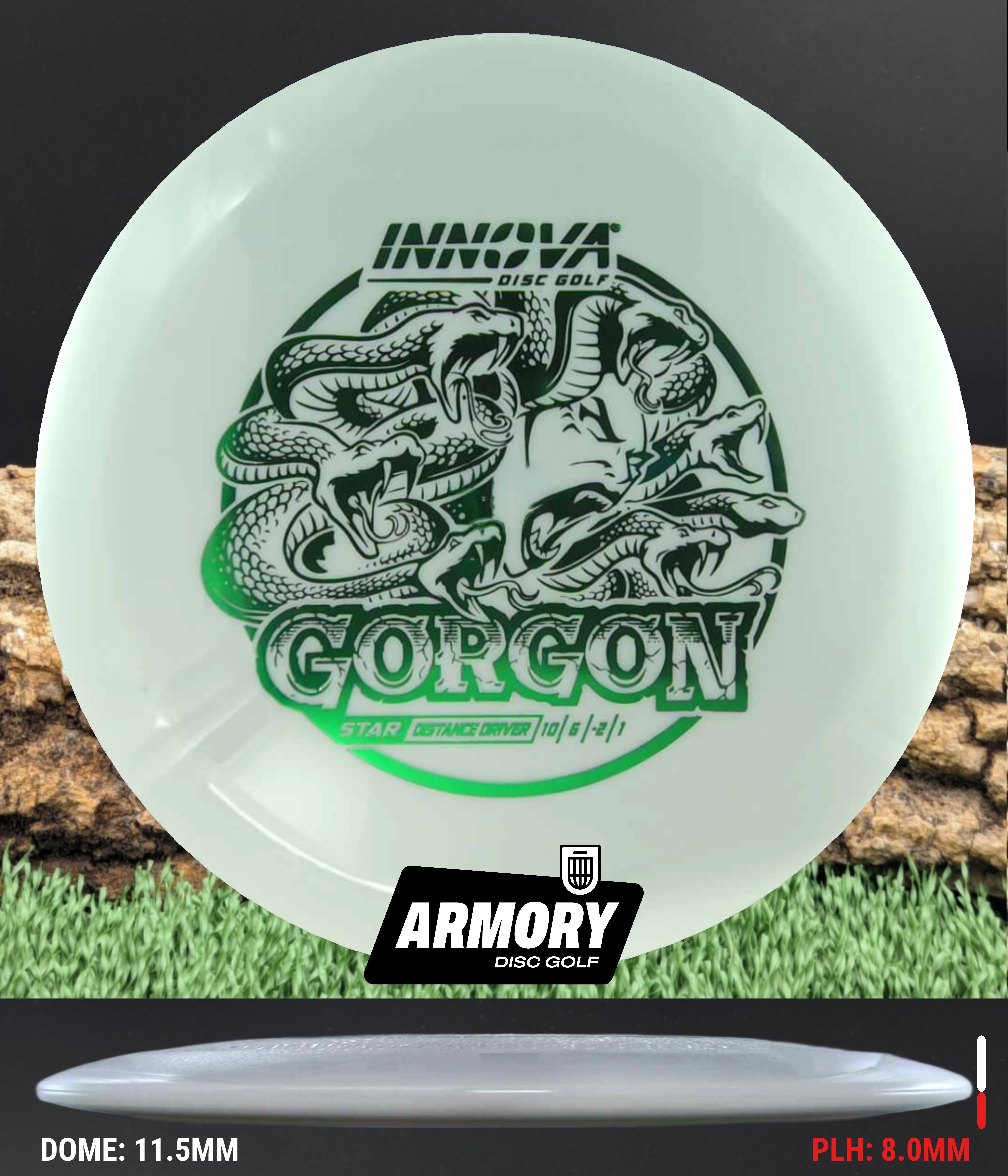 Introducing the Gorgon, a disc that merges the feel, precision, and ease of a Fairway Driver with the reach of a Distance Driver. Its flight? Arrow-straight glide with a steadfast fade, mirroring the Gorgon's unwavering gaze. Experience the legend—drive like a deity, conquer the course.