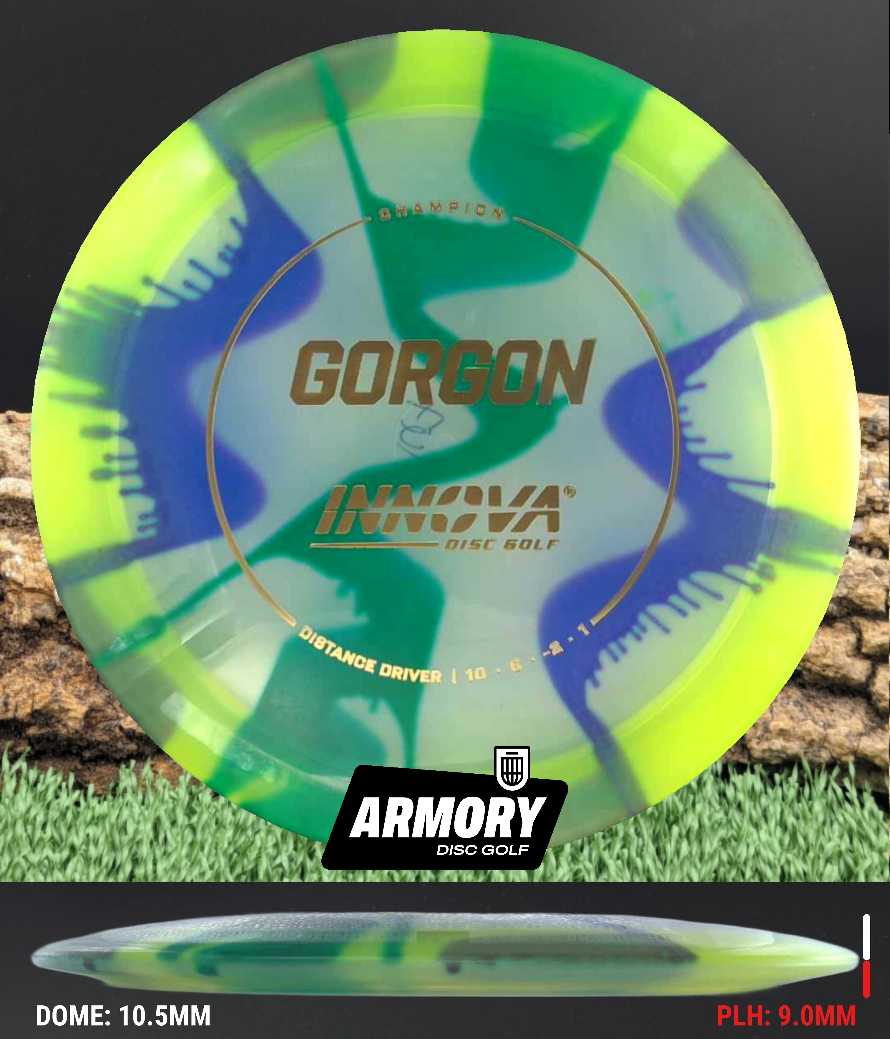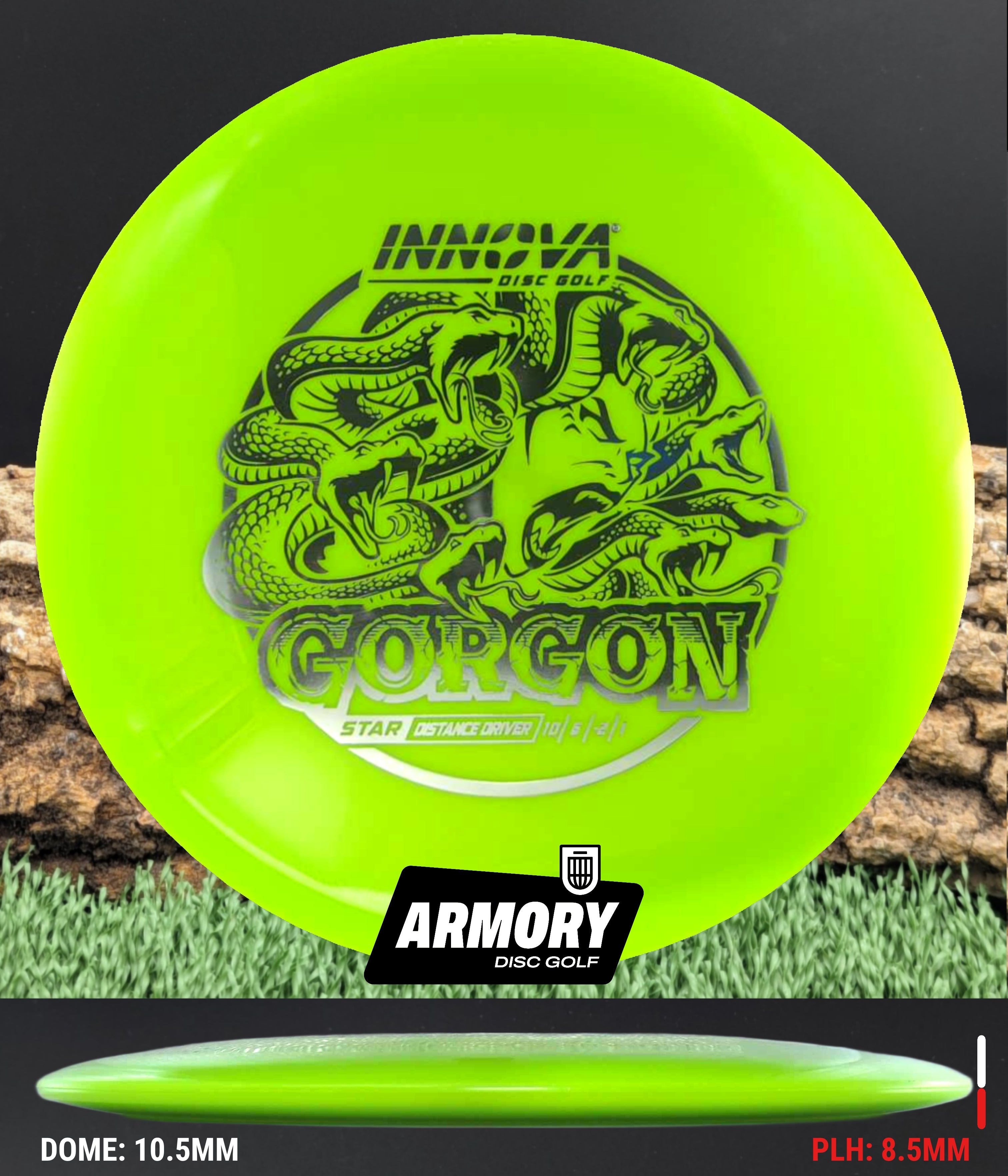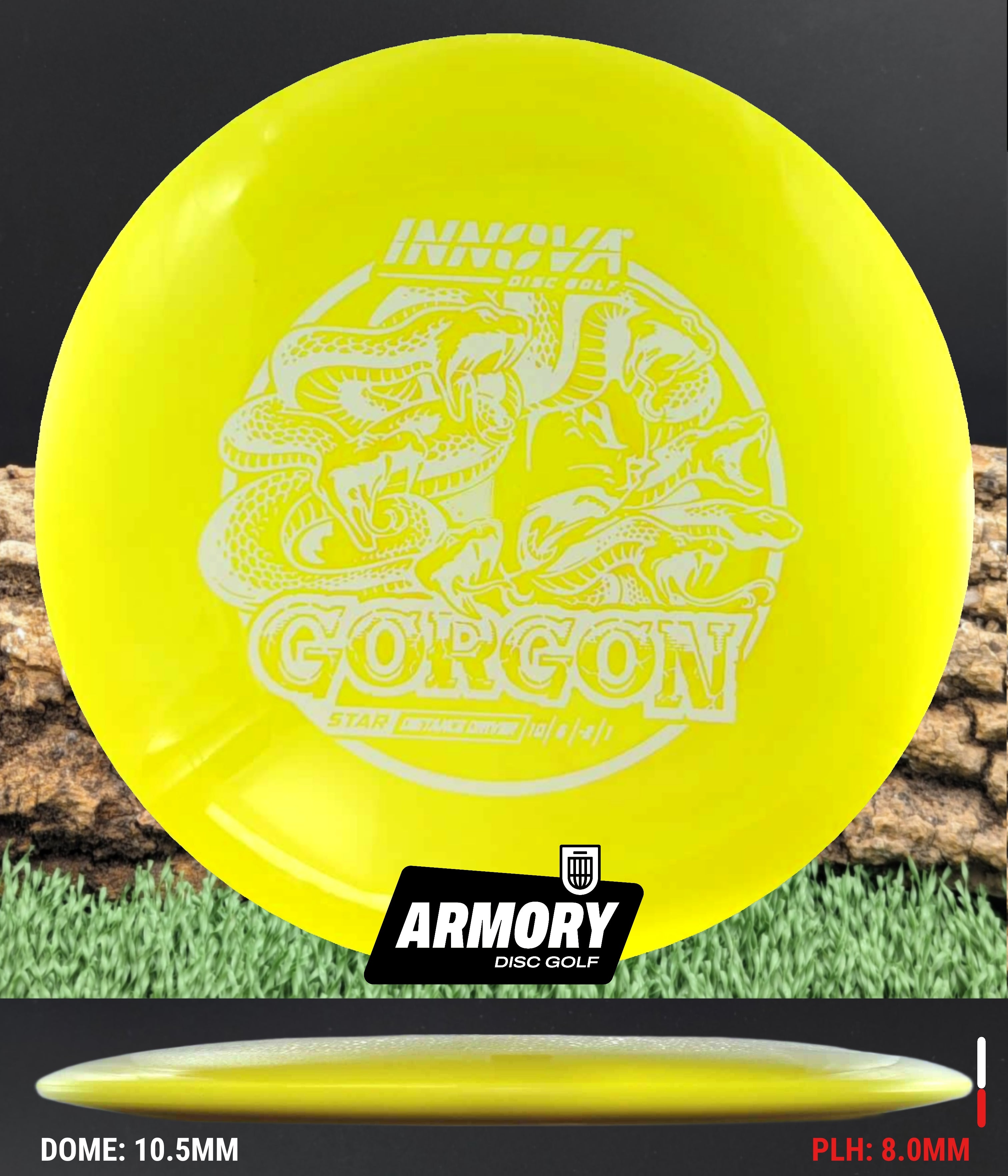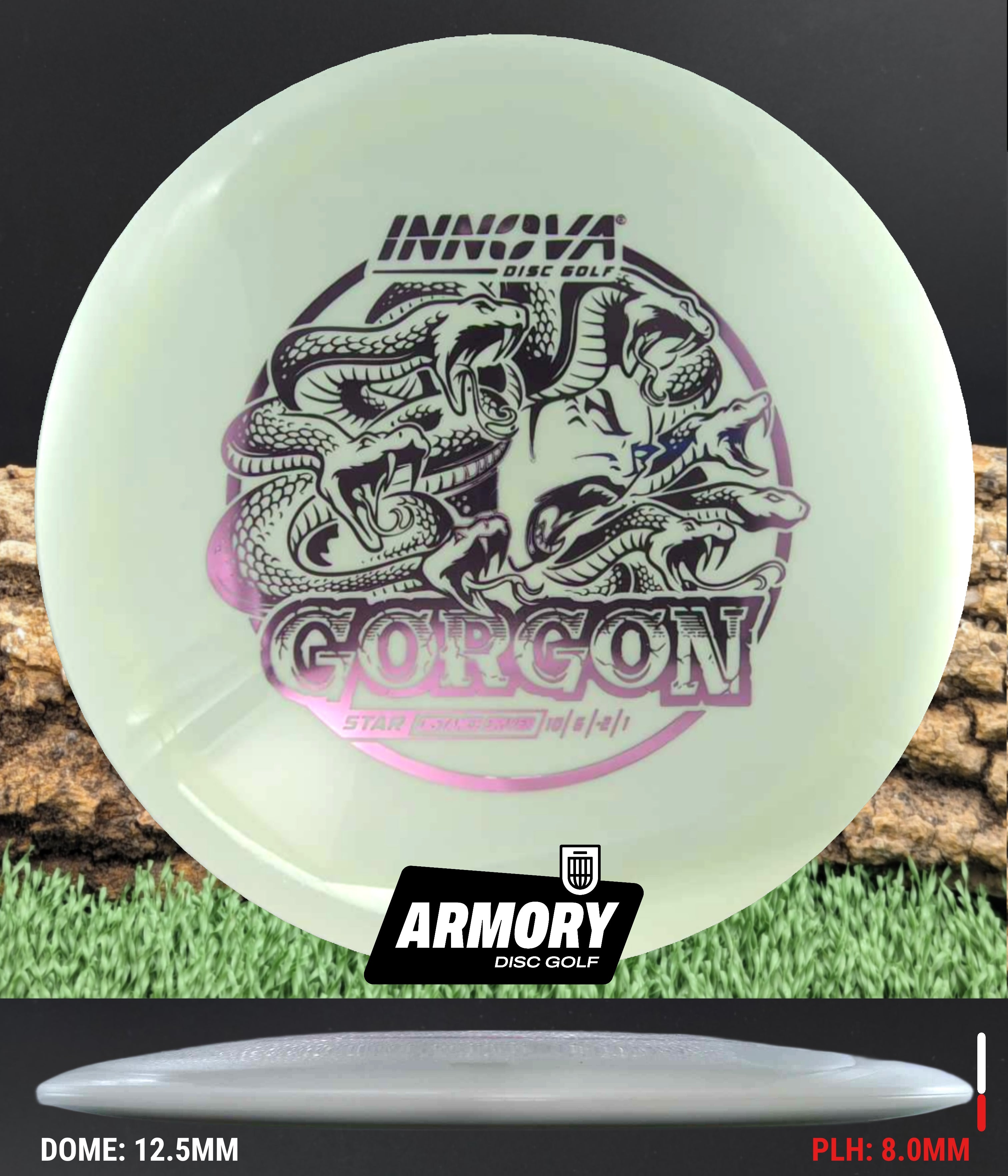 Introducing the Gorgon, a disc that merges the feel, precision, and ease of a Fairway Driver with the reach of a Distance Driver. Its flight? Arrow-straight glide with a steadfast fade, mirroring the Gorgon's unwavering gaze. Experience the legend—drive like a deity, conquer the course.