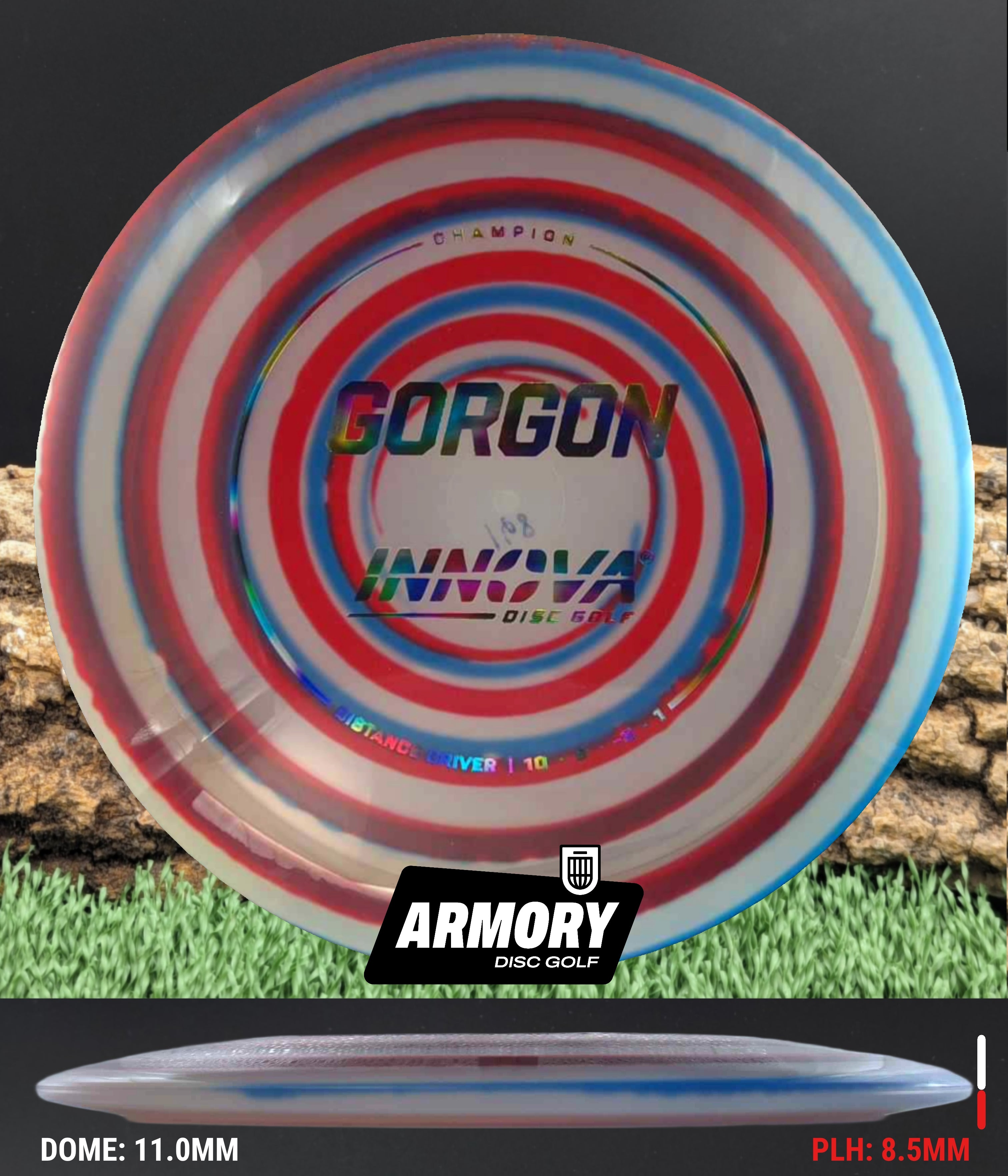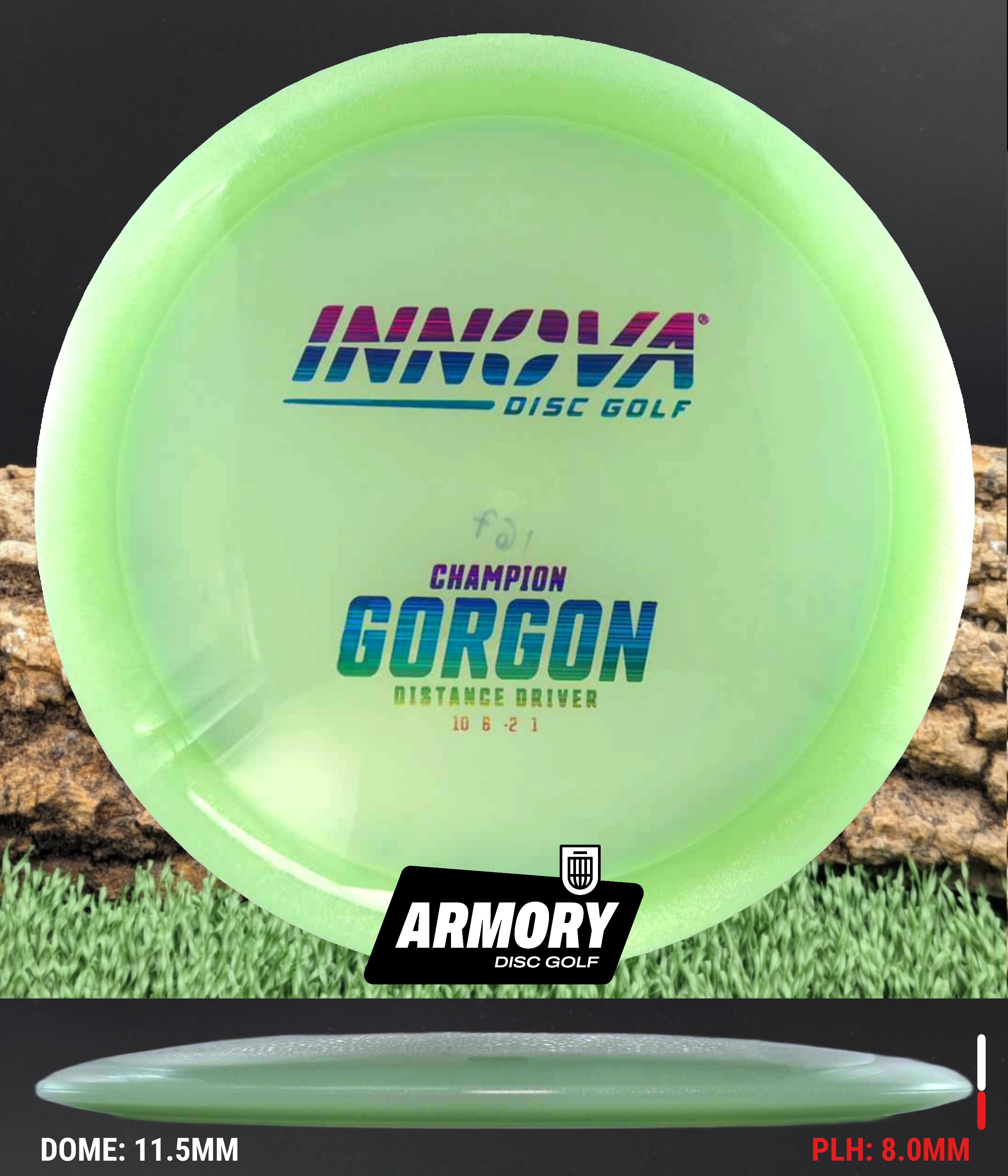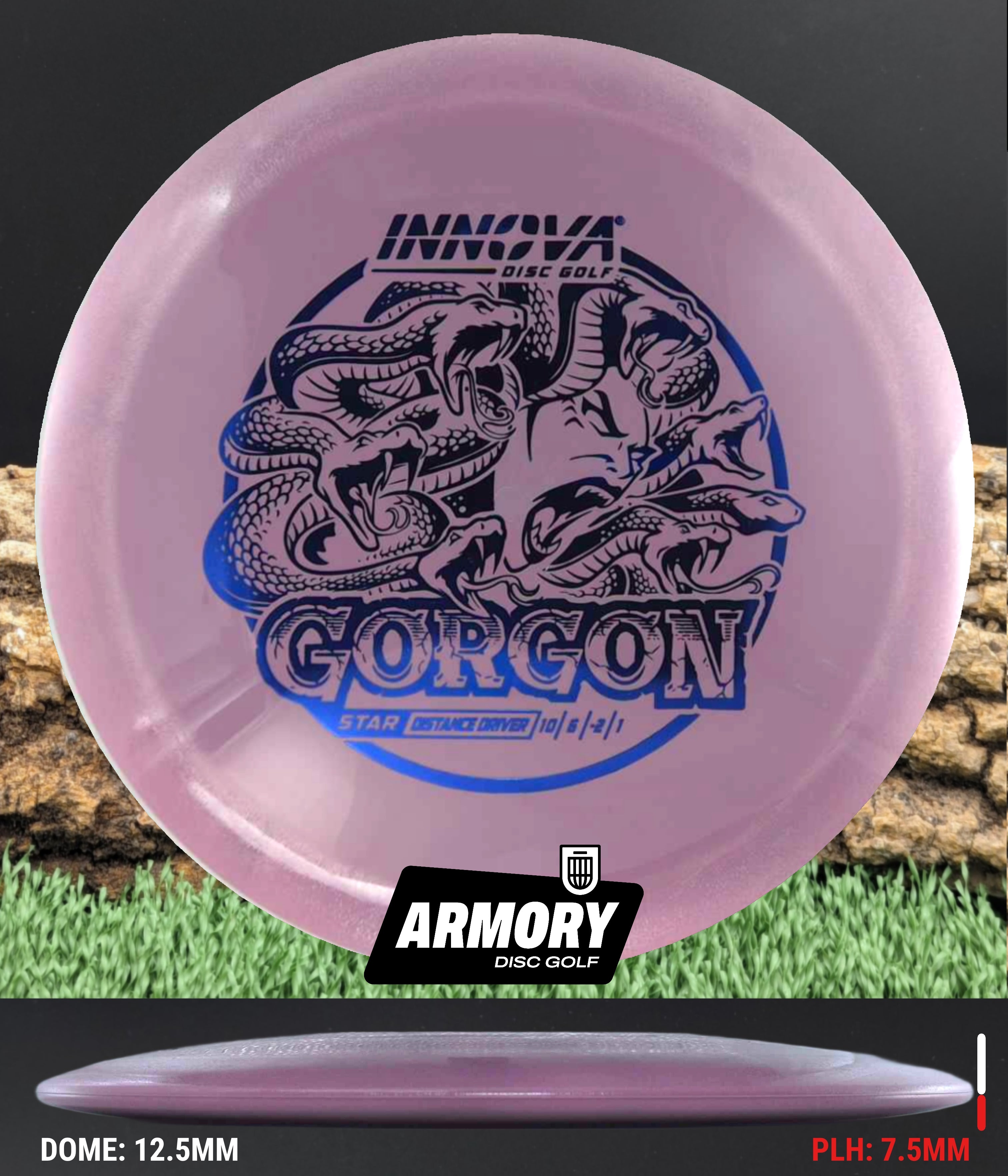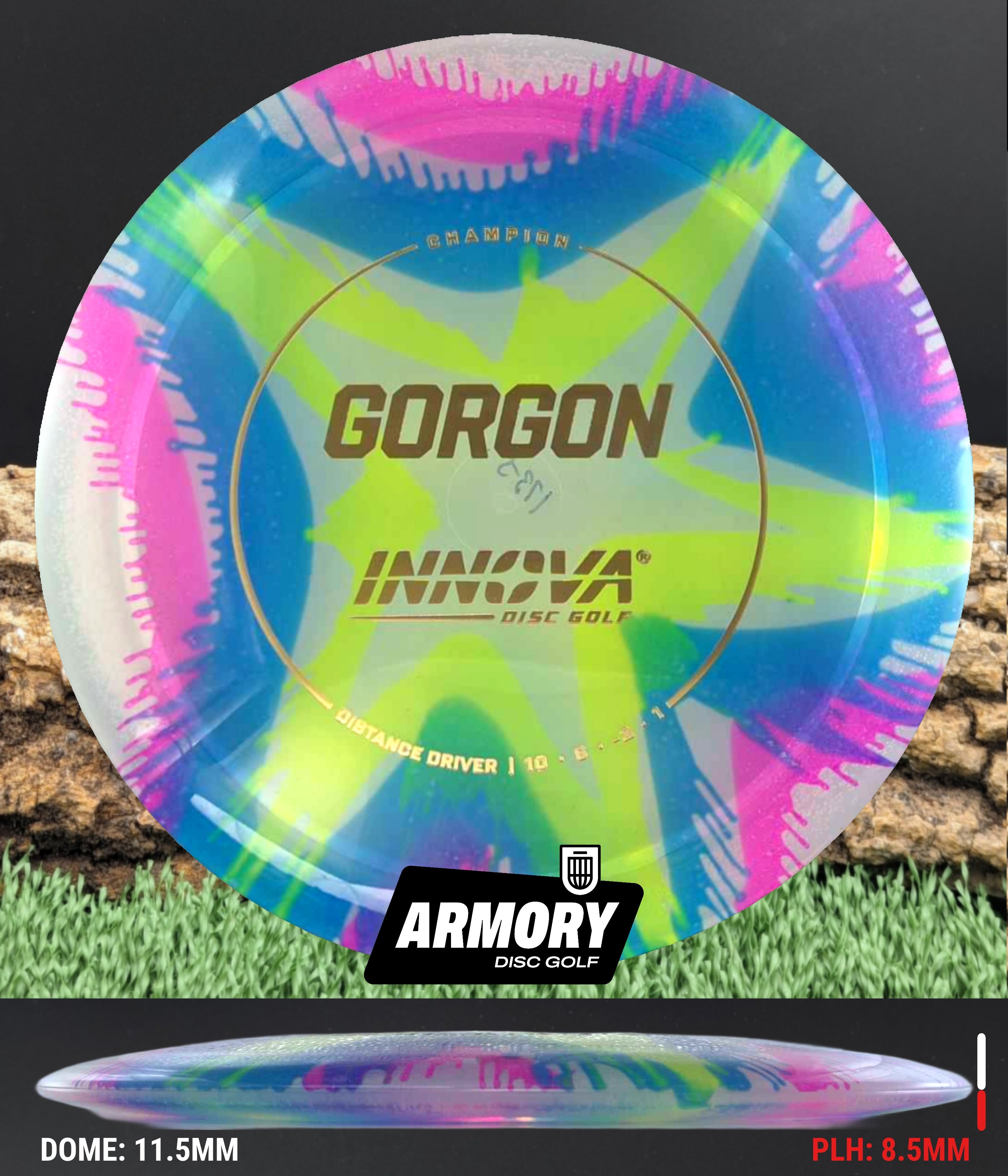 Introducing the Gorgon, a disc that merges the feel, precision, and ease of a Fairway Driver with the reach of a Distance Driver. Its flight? Arrow-straight glide with a steadfast fade, mirroring the Gorgon's unwavering gaze. Experience the legend—drive like a deity, conquer the course.