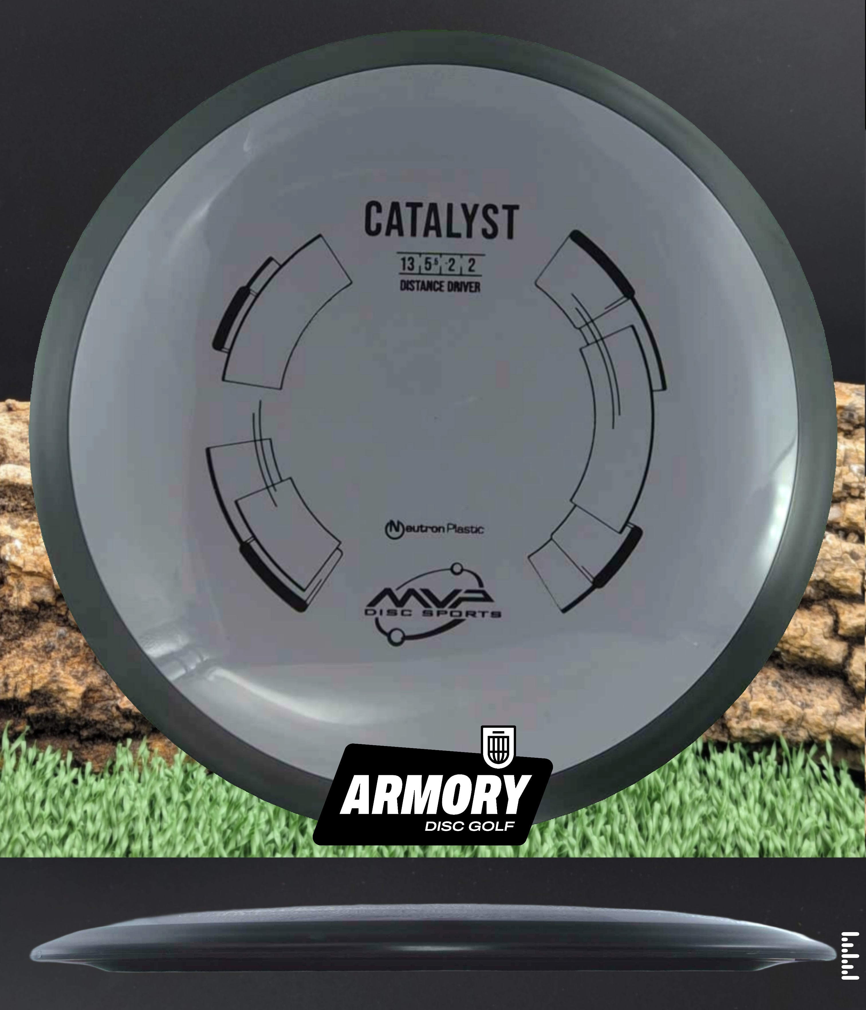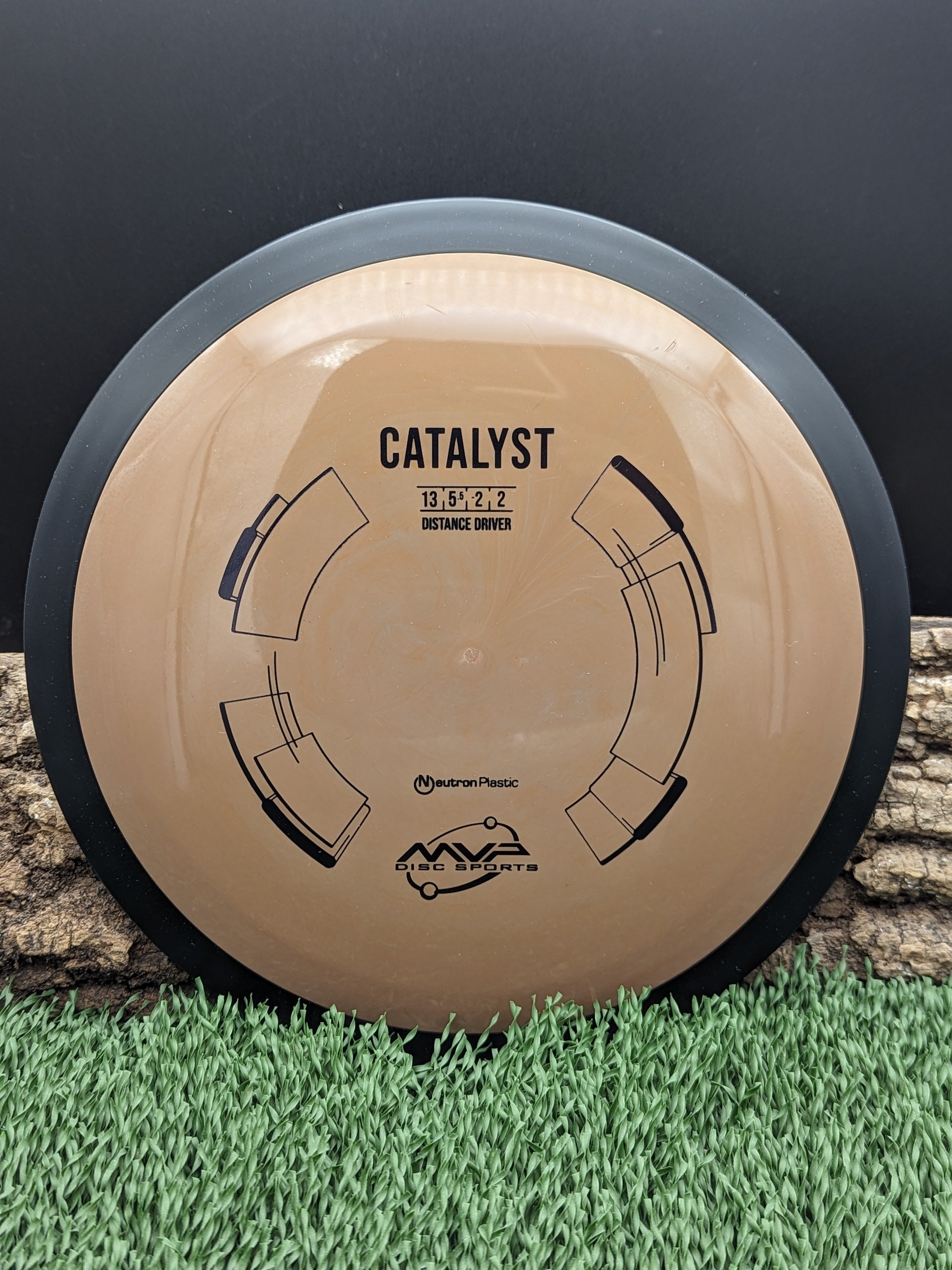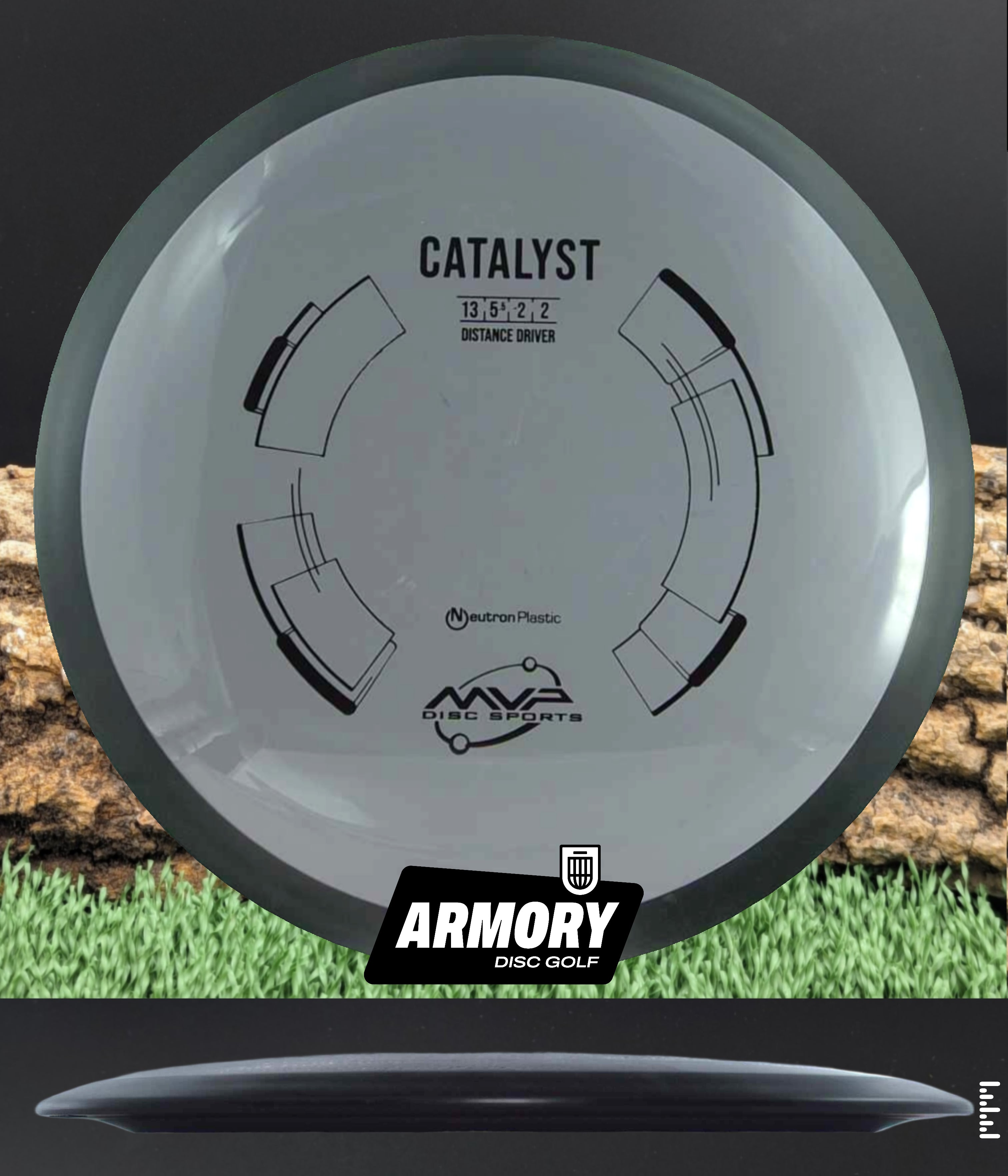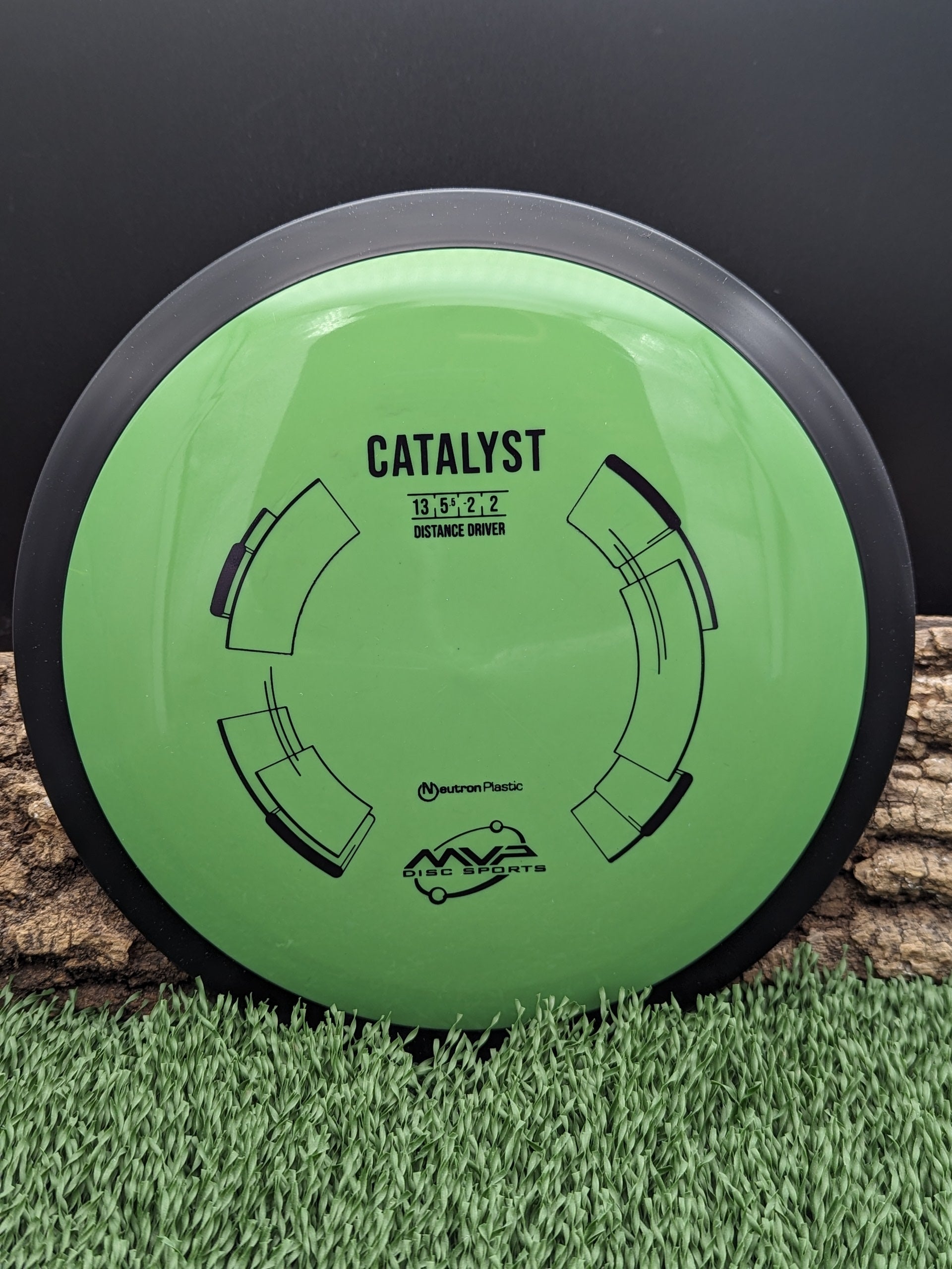 The Catalyst is a perfect starter for big distance. Its stability profile lends itself to being incredibly useful even when underpowered. Catalyst is similar to a longer Wave. High power throwers will be able to control rollers, sky anhyzers, and tight turns, while average to low power players will get easy distance with great glide, and a power responsive amount of turn-to-straight. The Catalyst is molded with the same core and nice even dome as the Octane, yielding extra glide for maximum distance shots.