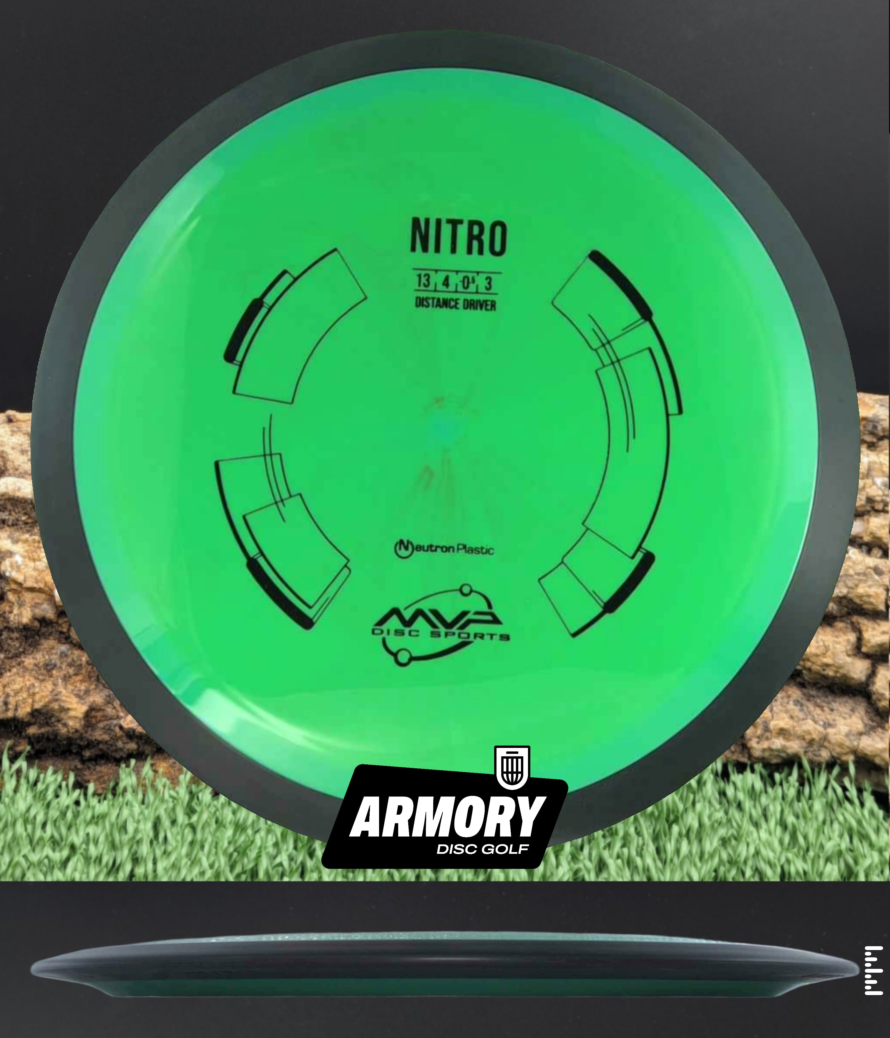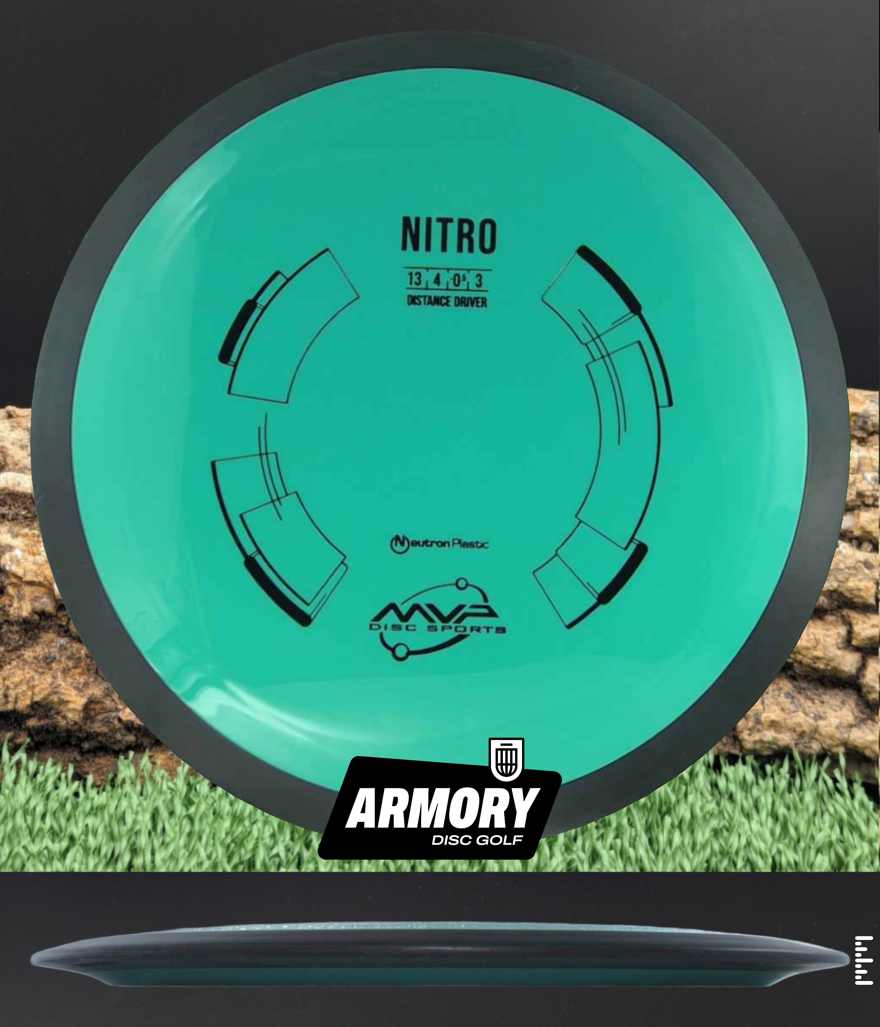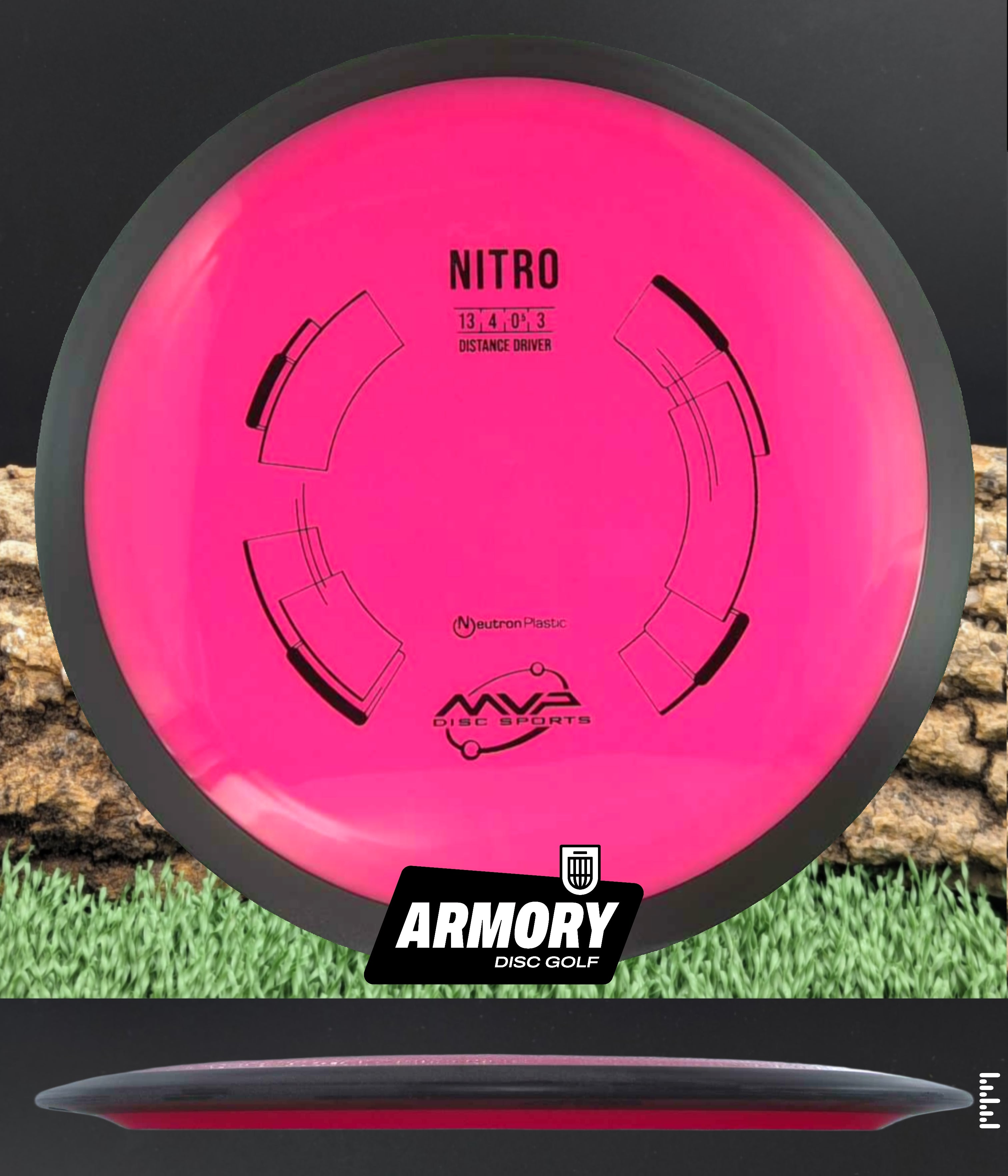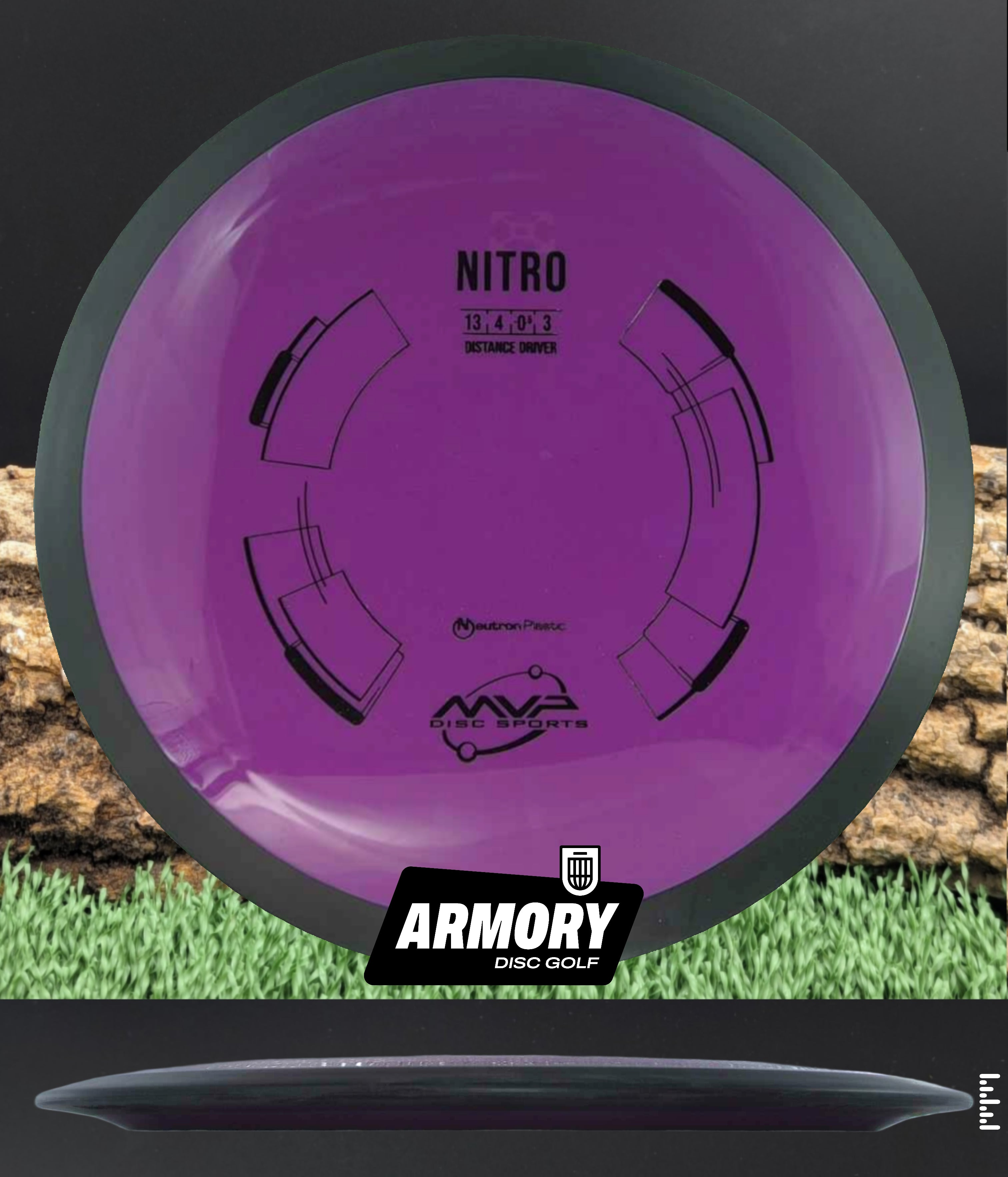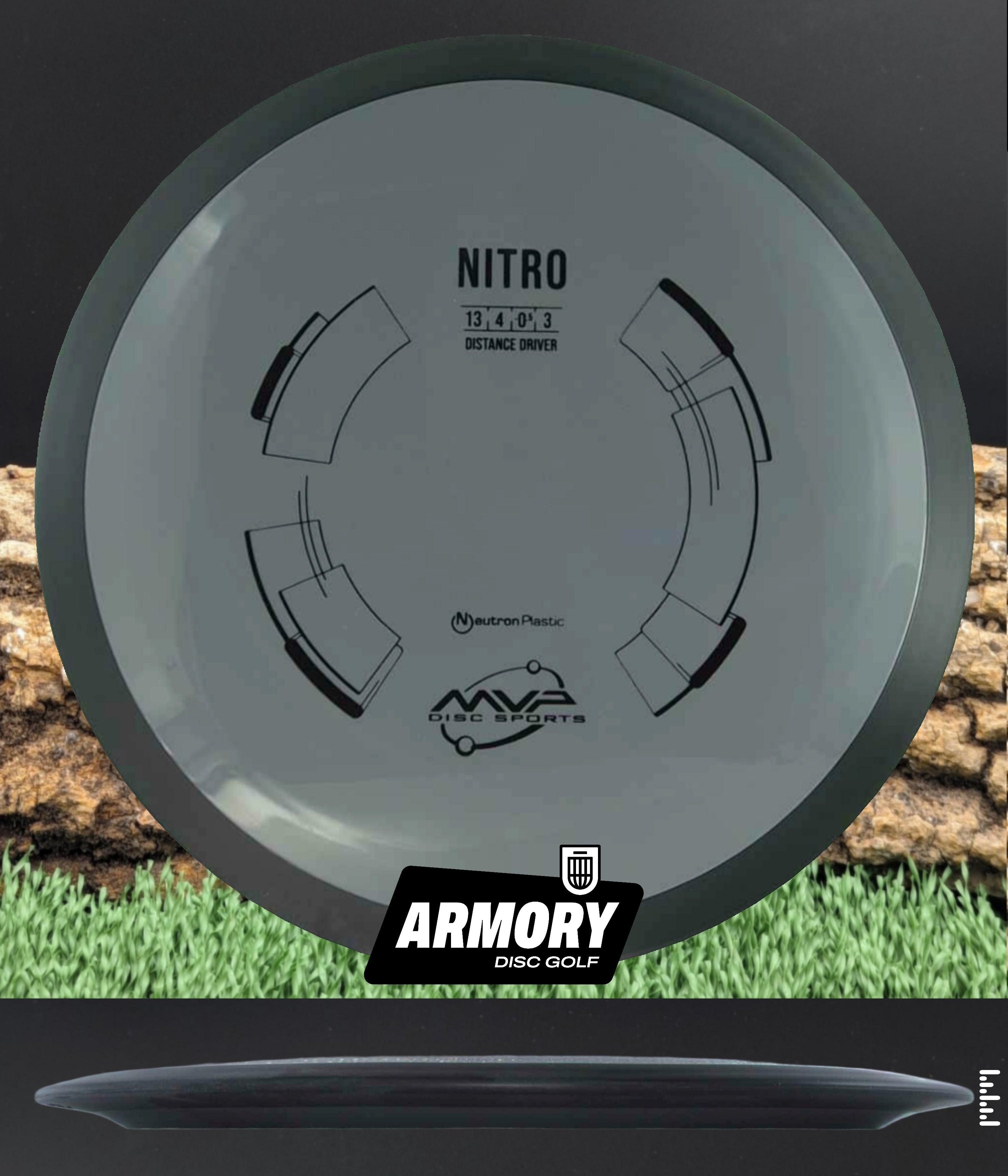 Nitro falls in the general stability lineage of Servo, Volt, Tesla, and Photon, with a turn-resistant profile that covers ground and guarantees a fade finish. Average throwers may need lighter weights or headwinds to achieve what little turn is offered by Nitro, while power throwers will find a workable and responsive shallow turn.