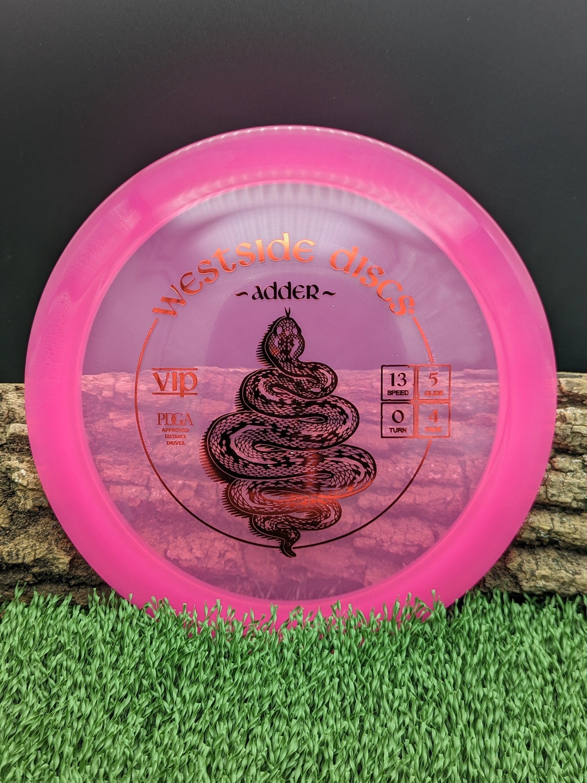 The Adder is ready to bail disc golfers out of the windiest of conditions. With high speed and a pop top giving good glide, only the biggest arms will have a chance to make this disc turn over. For everyone else, it will be a very useable utility disc for when you need a distinct fade with speed through the flightpath.
