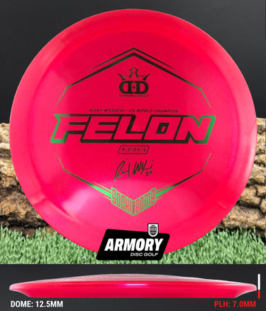 When the wind picks up, the Felon steps in. With flight numbers of 9 | 4 | 0.5 | 4, this overstable fairway driver is designed to cut through wind, handle torque, and deliver consistent, hard-fading finishes. Whether you're throwing forehand or backhand, the Felon offers predictable results in conditions where other discs falter.