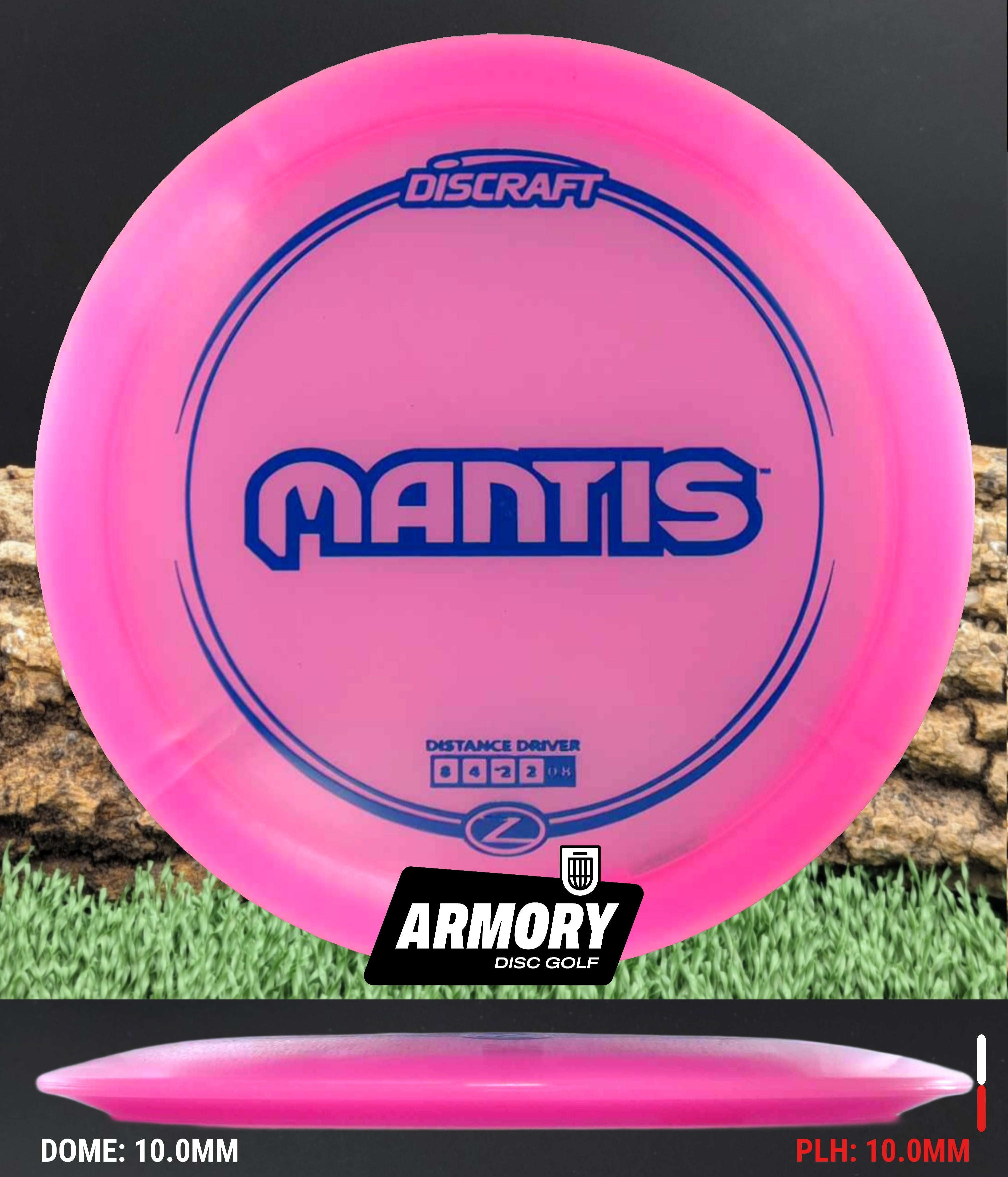 The Mantis™ is a utility driver for experienced players, and a distance driver for newer players. A touch of overstability enables control at slow or high speeds. Rip it hard for a hyzer flip or "S" distance shot, or hold a straight line at slower speeds. Try Mantis for straight thumber shots too!