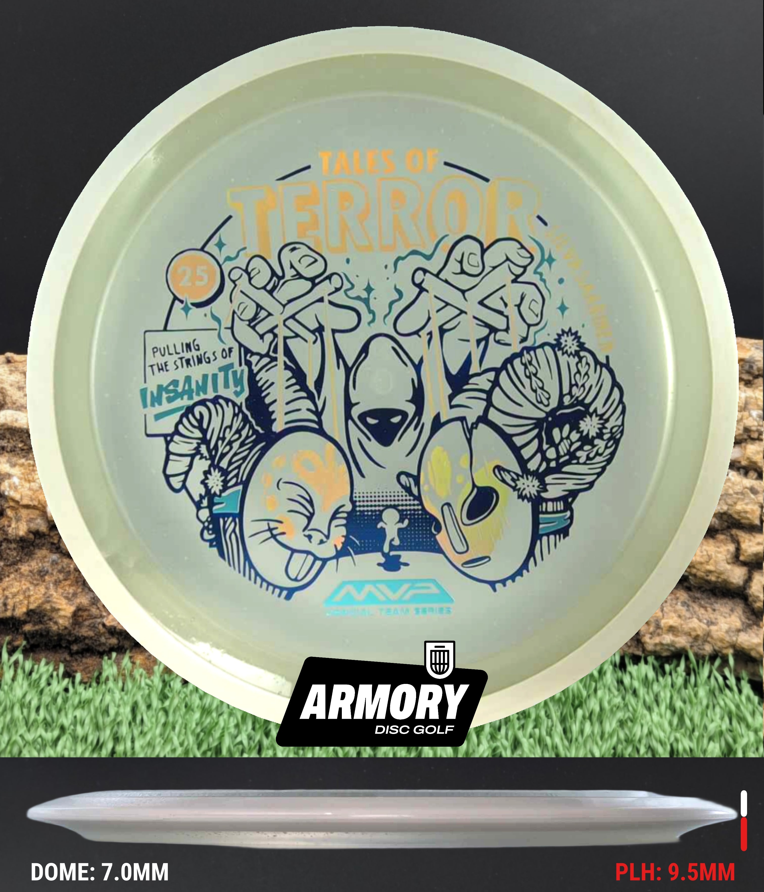 The Axiom Insanity is one of the most beloved drivers in the MVP family—easy to shape, controllable, and full of creative flight potential. Now, in the 2025 Halloween Special Edition, it takes on a whole new sinister identity. Artist Damian White makes his chilling MVP debut with a stamp that warns of puppet strings, ghoulish ornaments, and the haunting spirit of the Finnish Harvest Festival.
