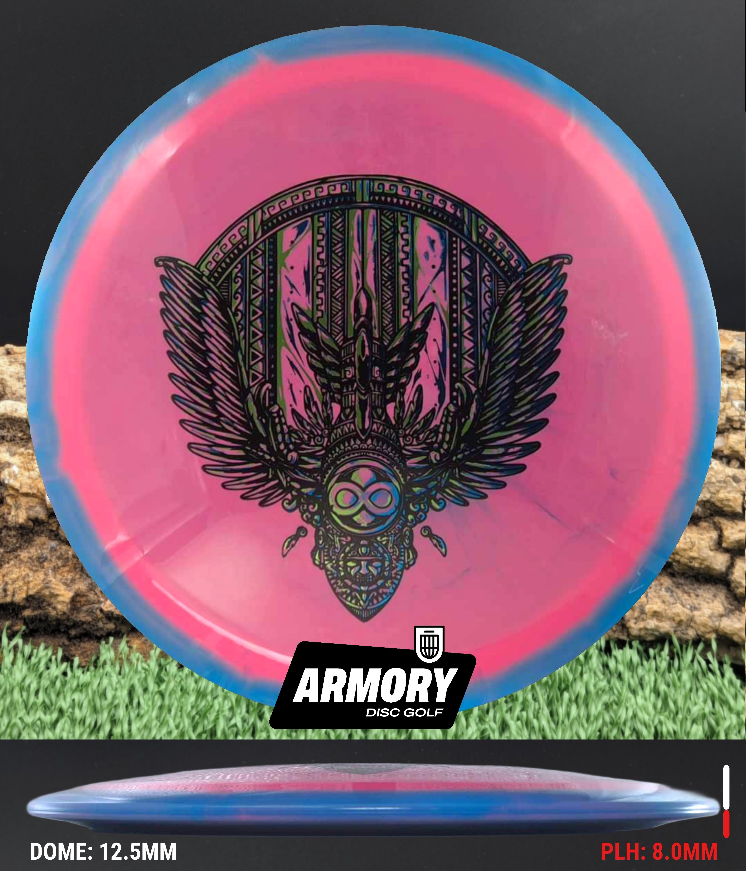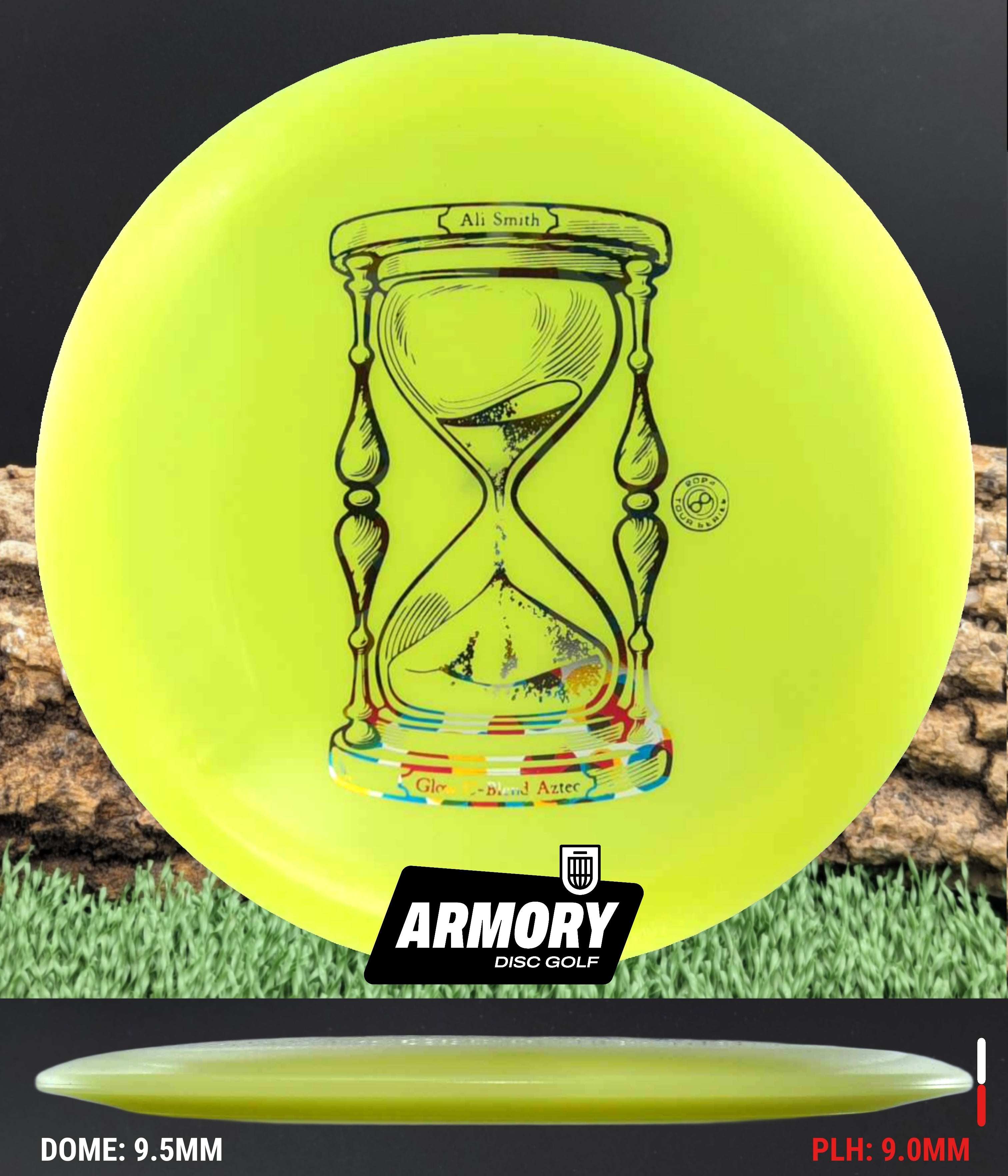 The Aztec is a speed 10 driver, flying straight with a little bit of fade at the end. Don't let the speed 10 fool you, the Aztec will bring unexpected distance and accuracy to your game. This disc has a skinnier rim than the big distance drivers, making it more comfortable for most disc golfers. The Aztec is said to be a longer Exodus or Sphinx.