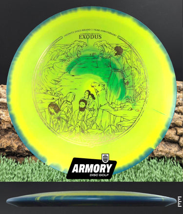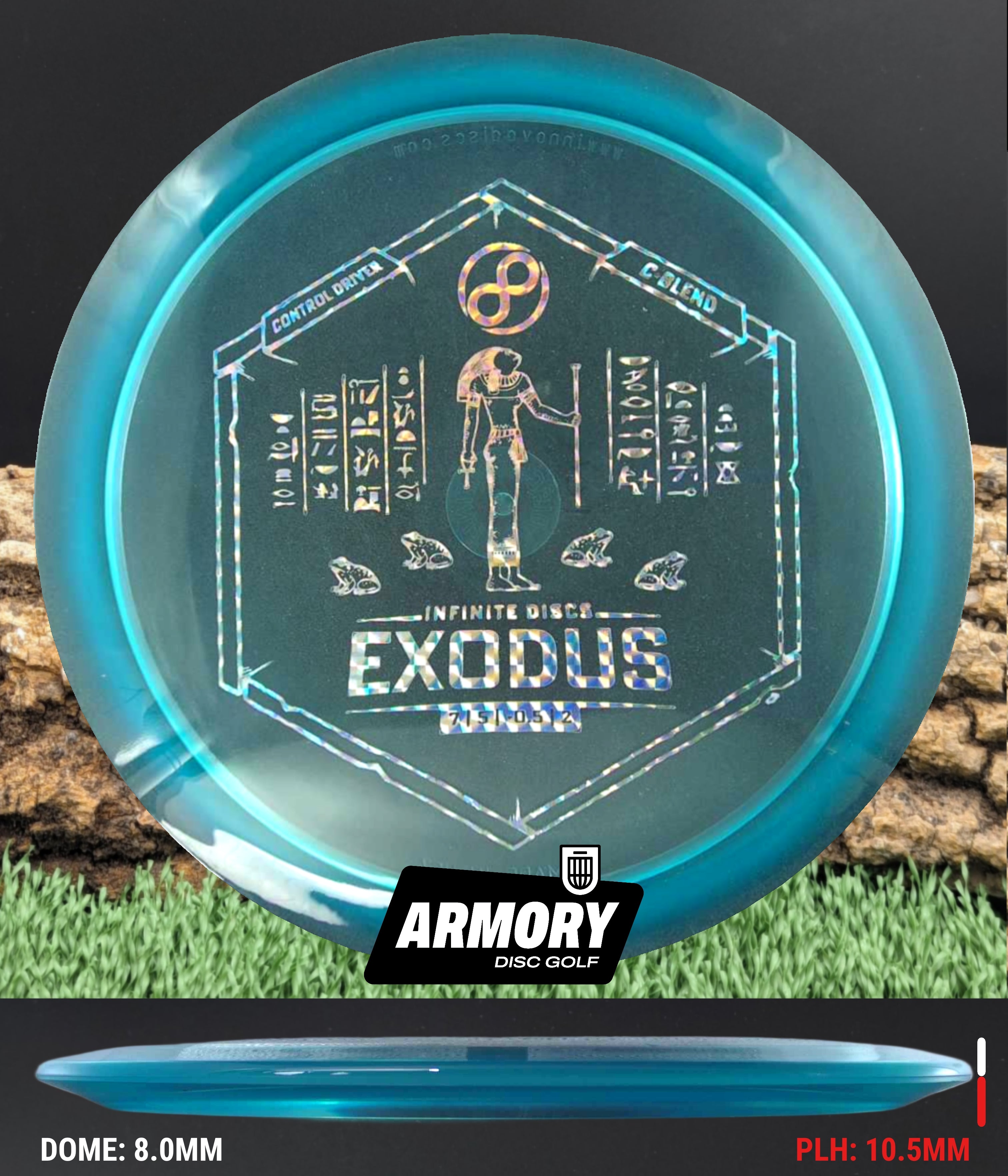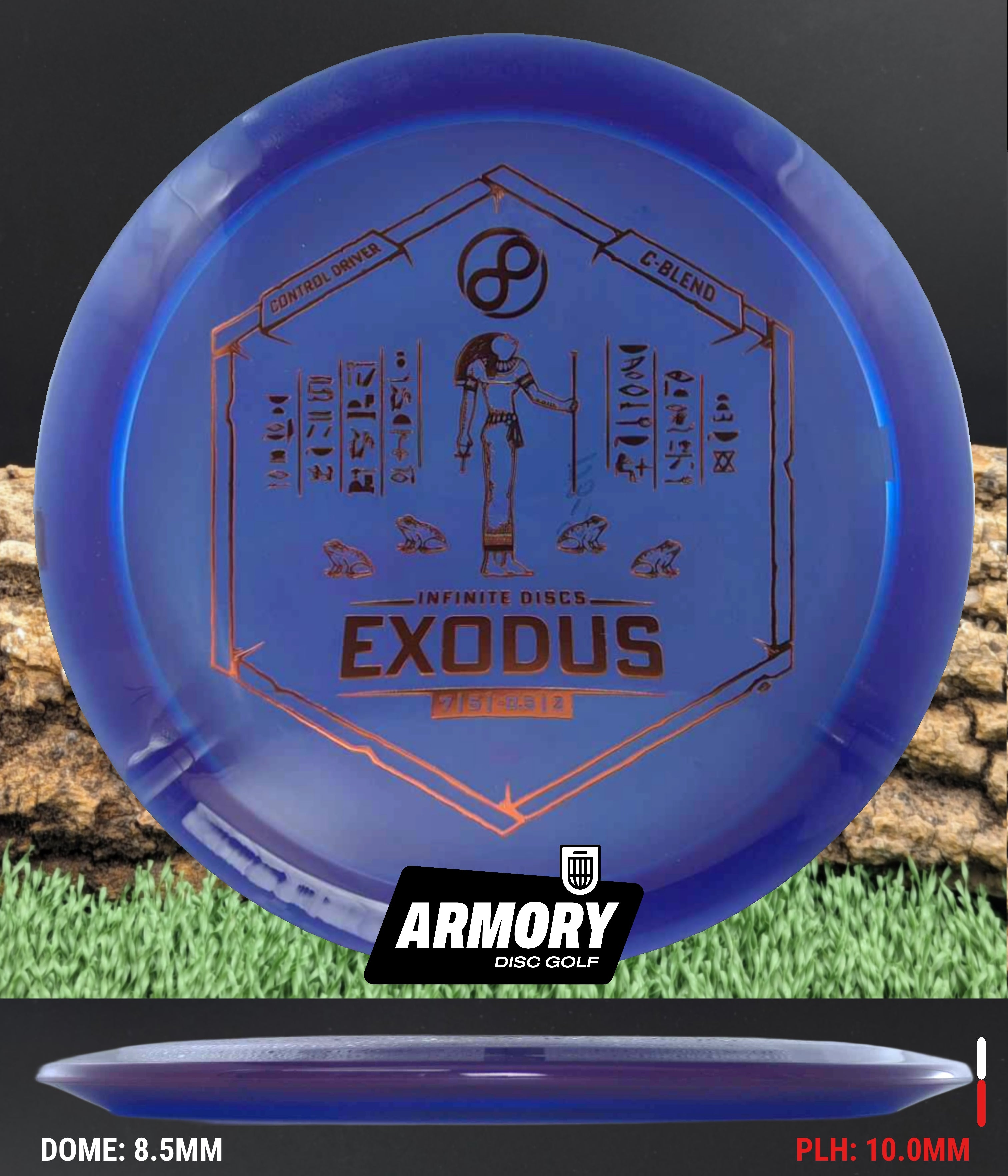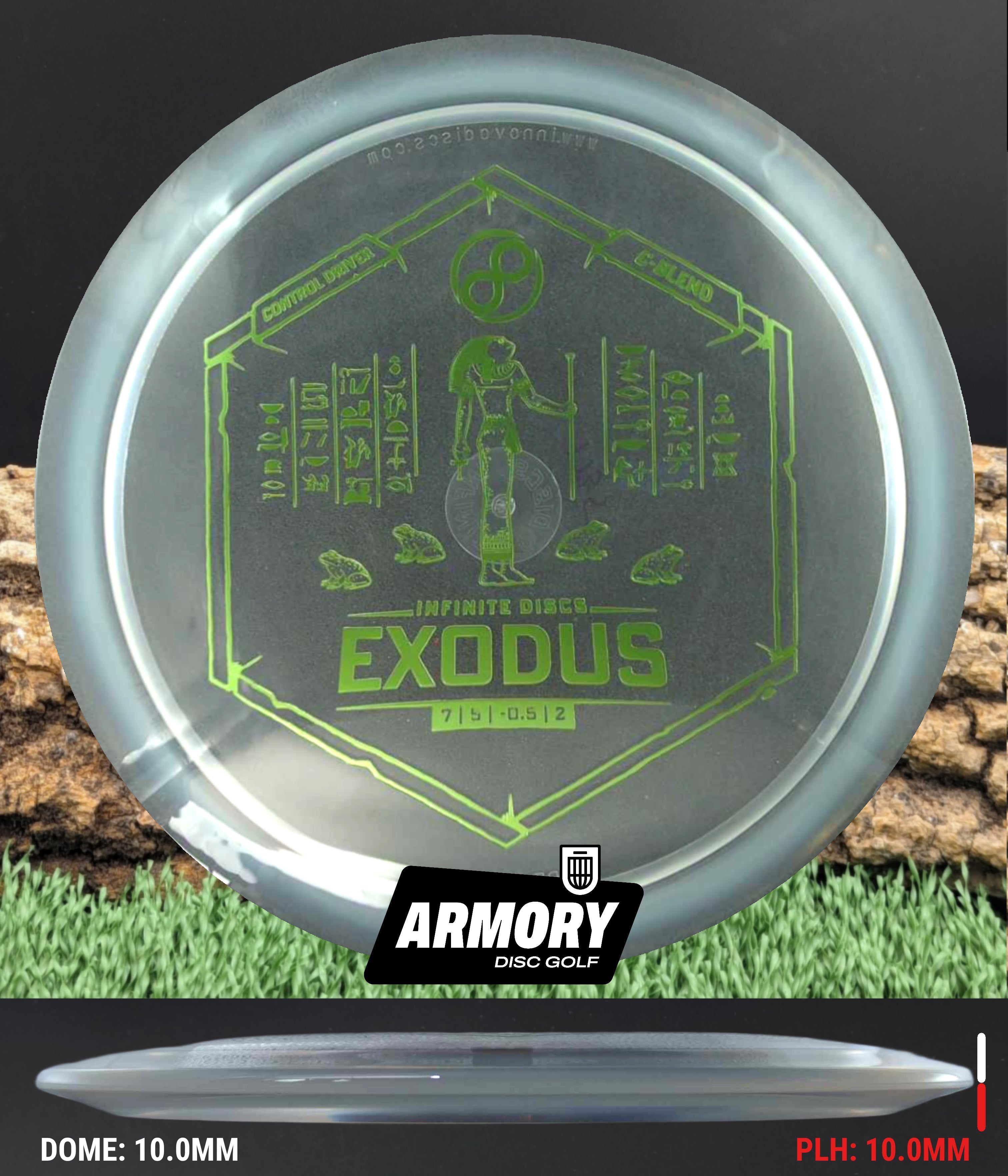 The Exodus by Infinite Discs is a stable, controllable fairway driver. The comfortable rim design and manageable speed are perfect for players at all experience levels. The Exodus is a trustworthy disc on the fairway and excellent for navigating wooded courses. It has a precise, long flight pattern with a consistent fade, plus it can also handle all the power you can give it for long-distance flights. All Infinite Discs branded discs are manufactured by Innova Champion Discs.