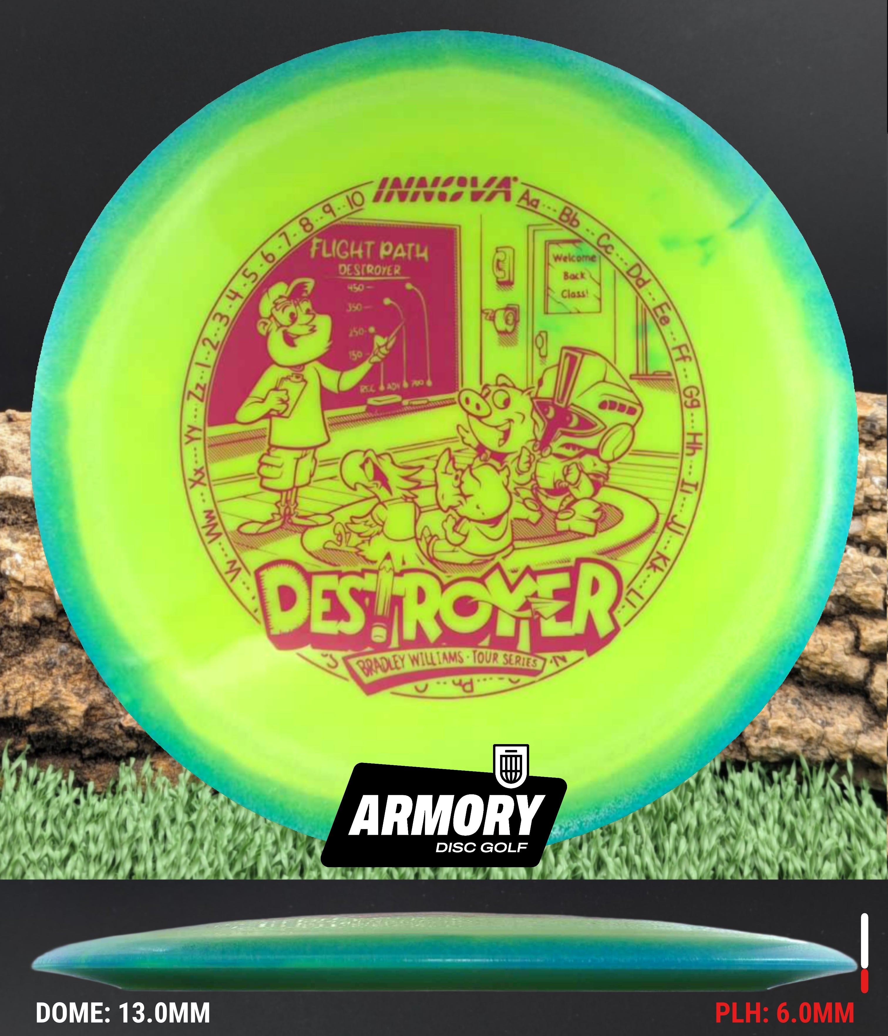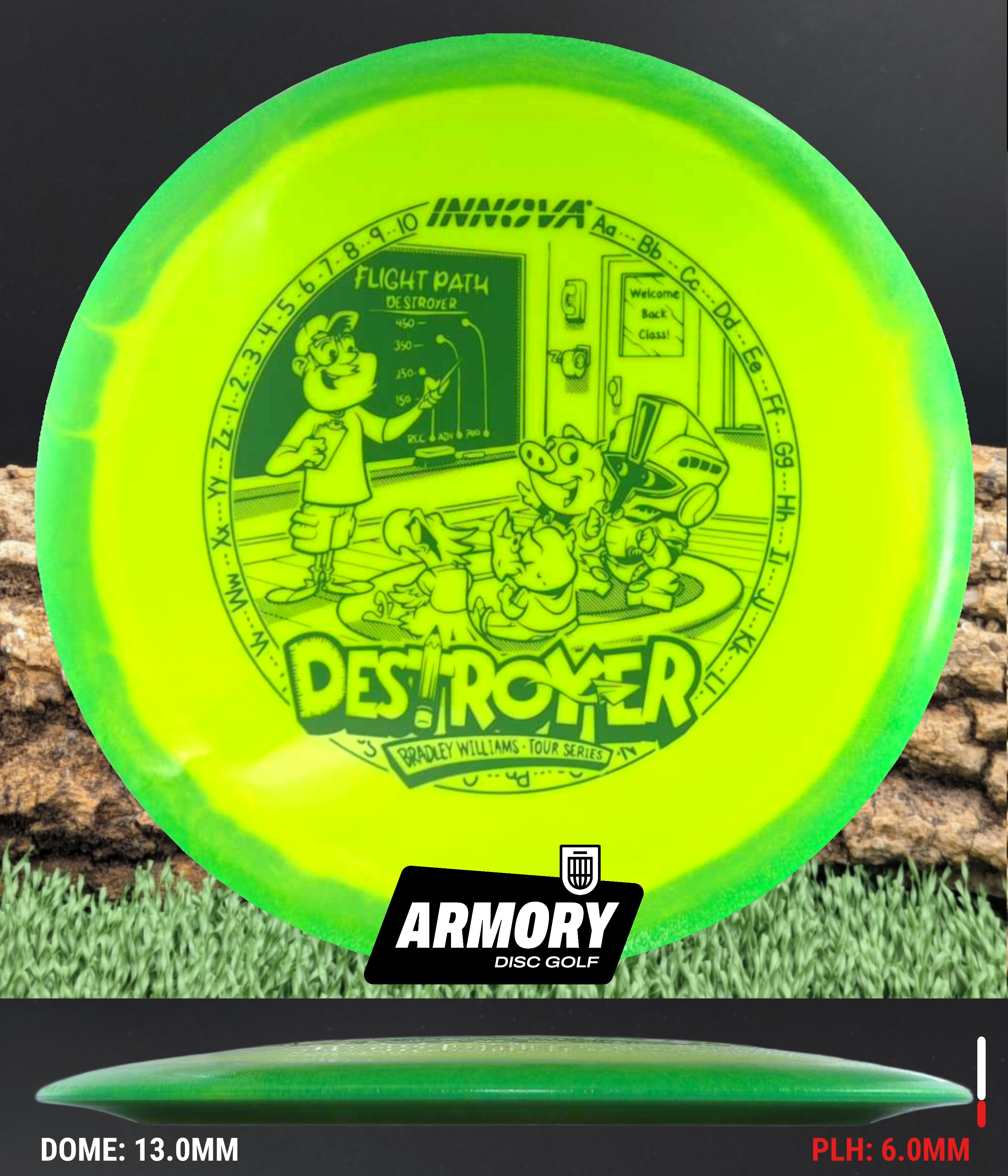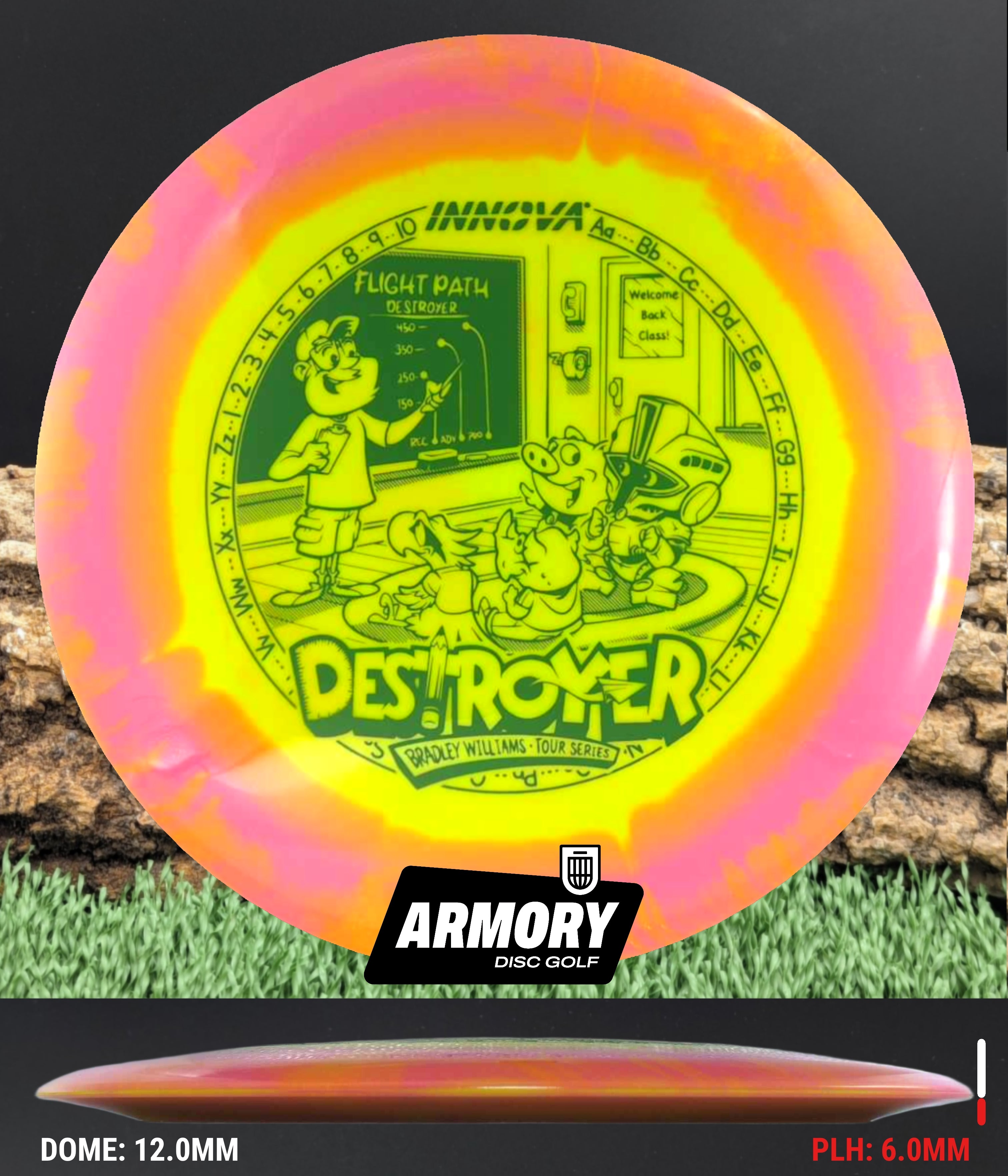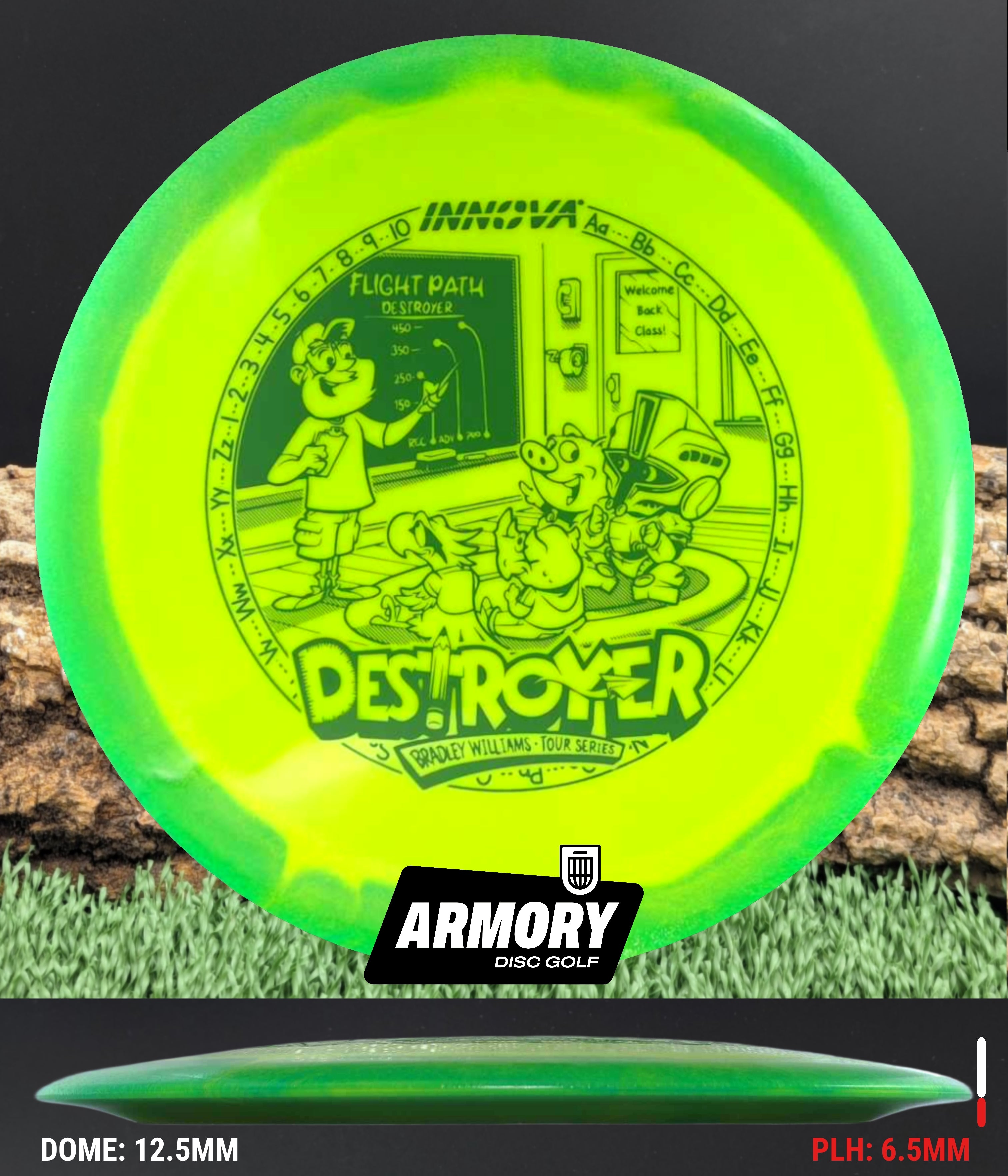 “These lightweight Baby Destroyers put a fresh spin on one of Innova’s most iconic drivers. The reduced weight gives junior players and those with slower arm speeds a better chance to unlock the full potential of this overstable mold..” - Bradley Williams