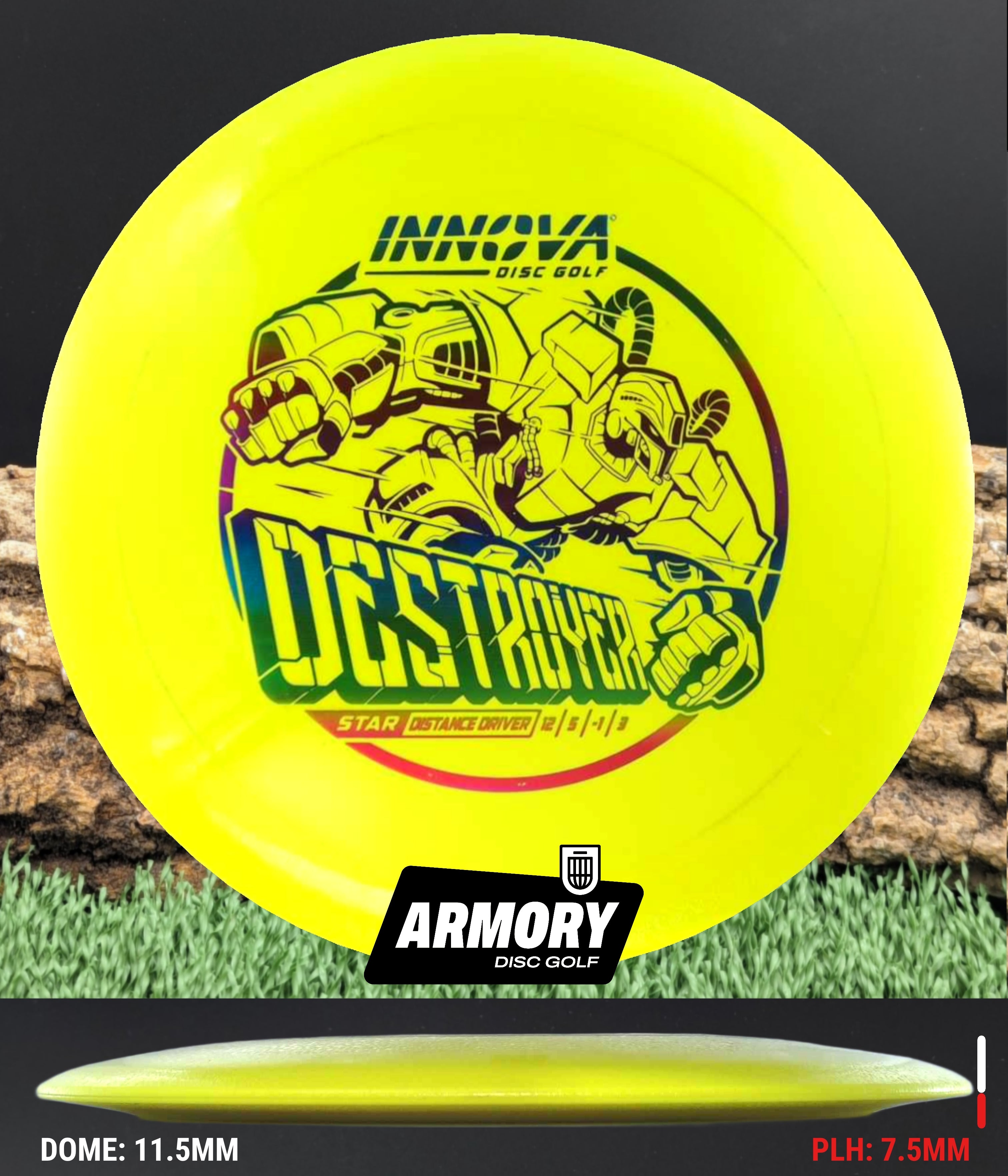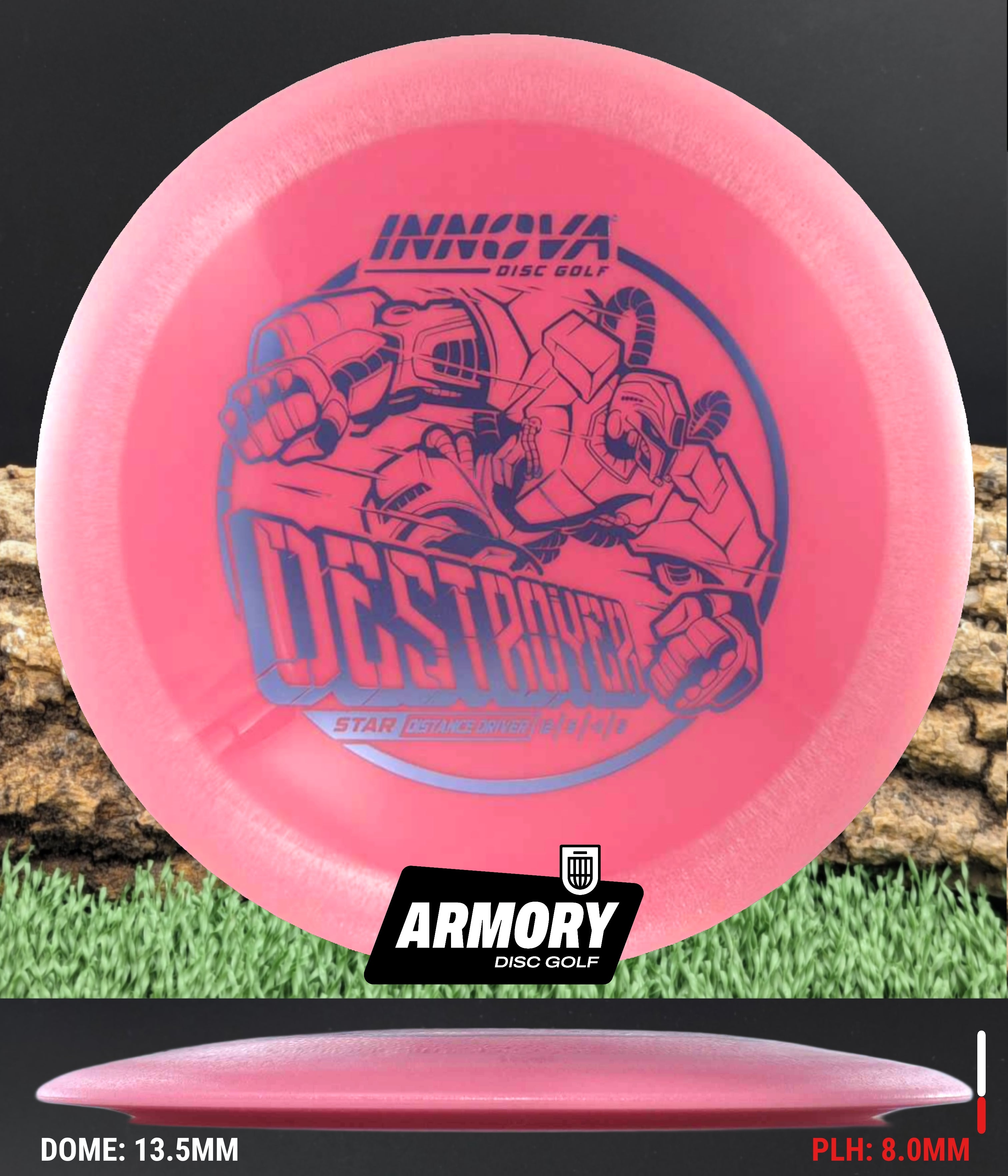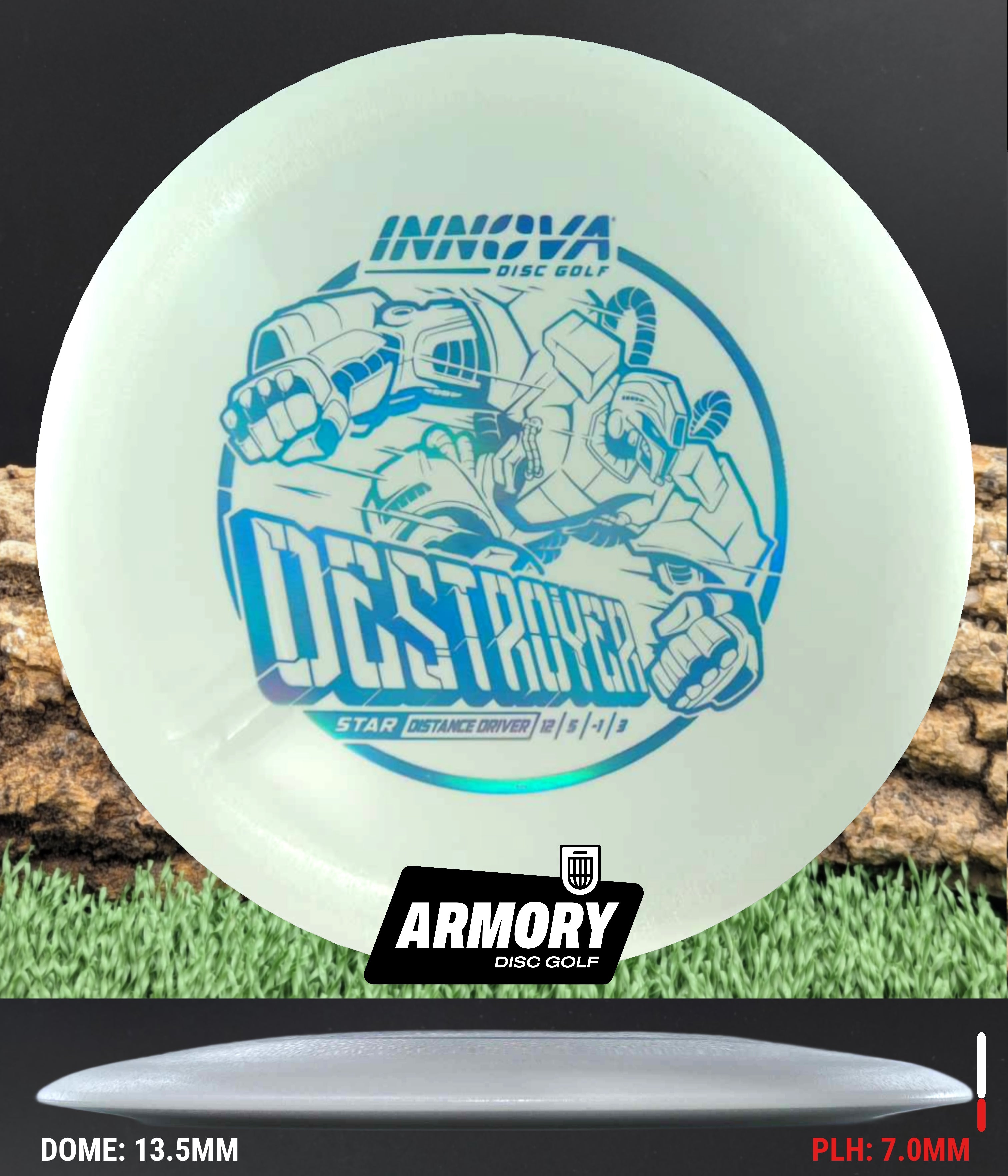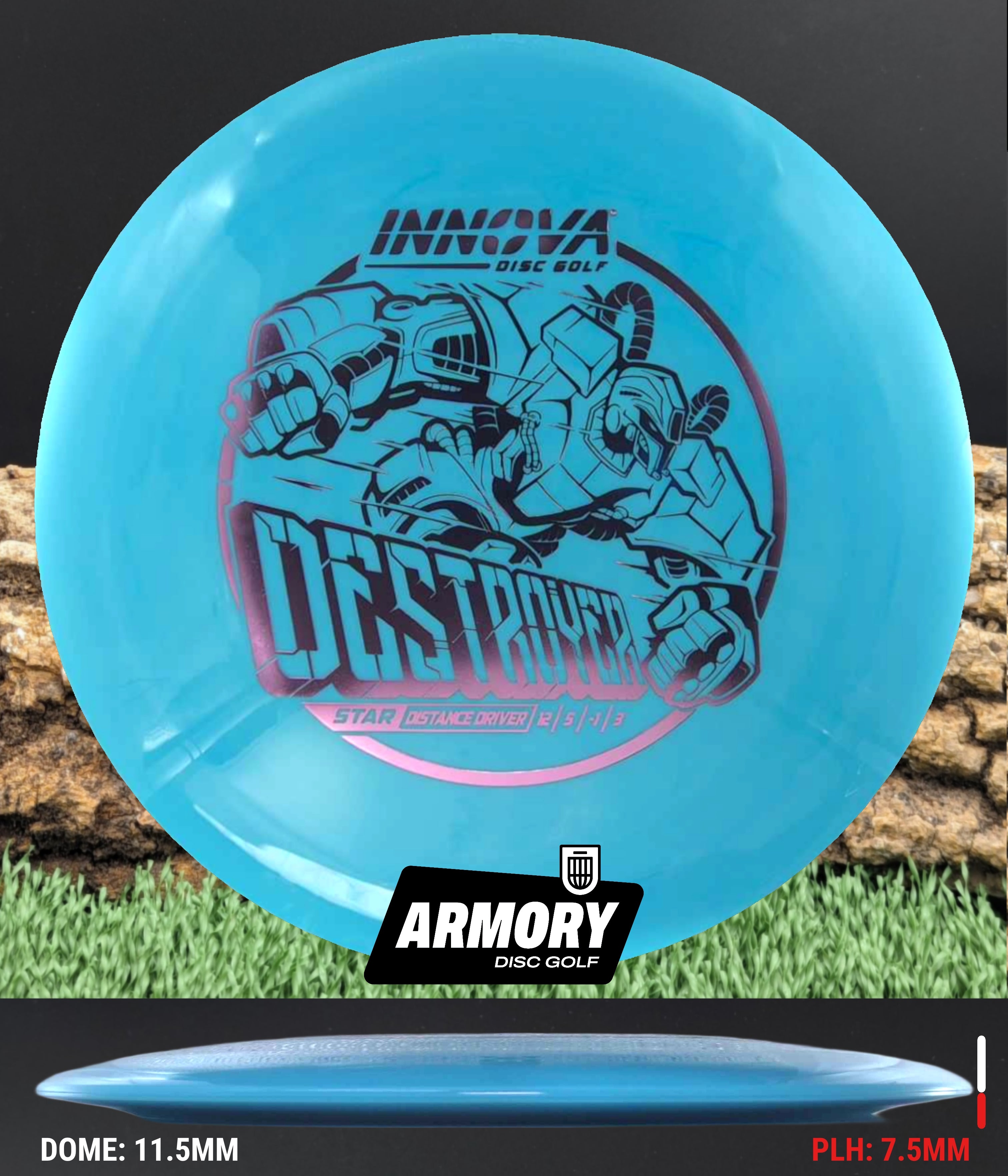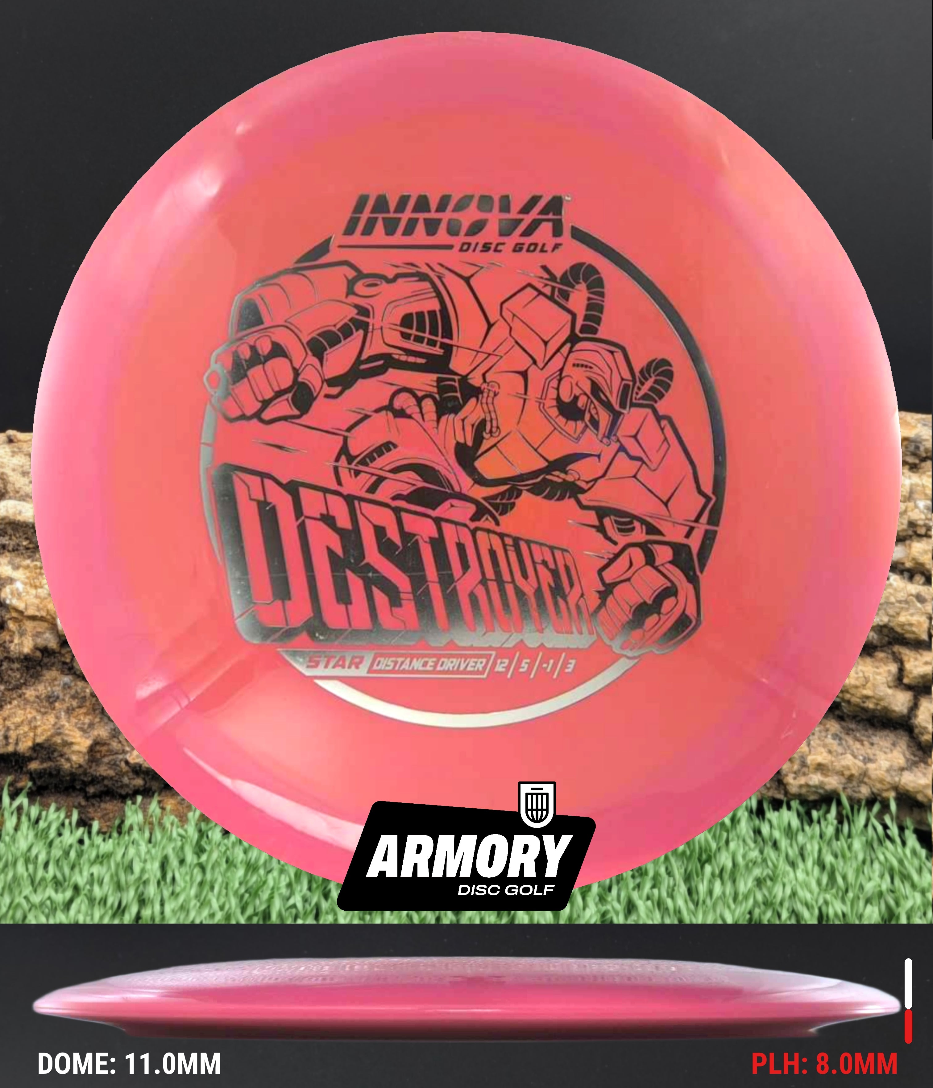 The Innova Destroyer is an elite high-speed distance driver trusted by professional disc golfers worldwide. Featuring a wide rim and pronounced dome, this overstable disc delivers exceptional power, distance, and reliability in headwinds. Perfect for powerful throws and forehand drives, the Destroyer offers predictable fade and maintains its flight characteristics even at high velocities.
