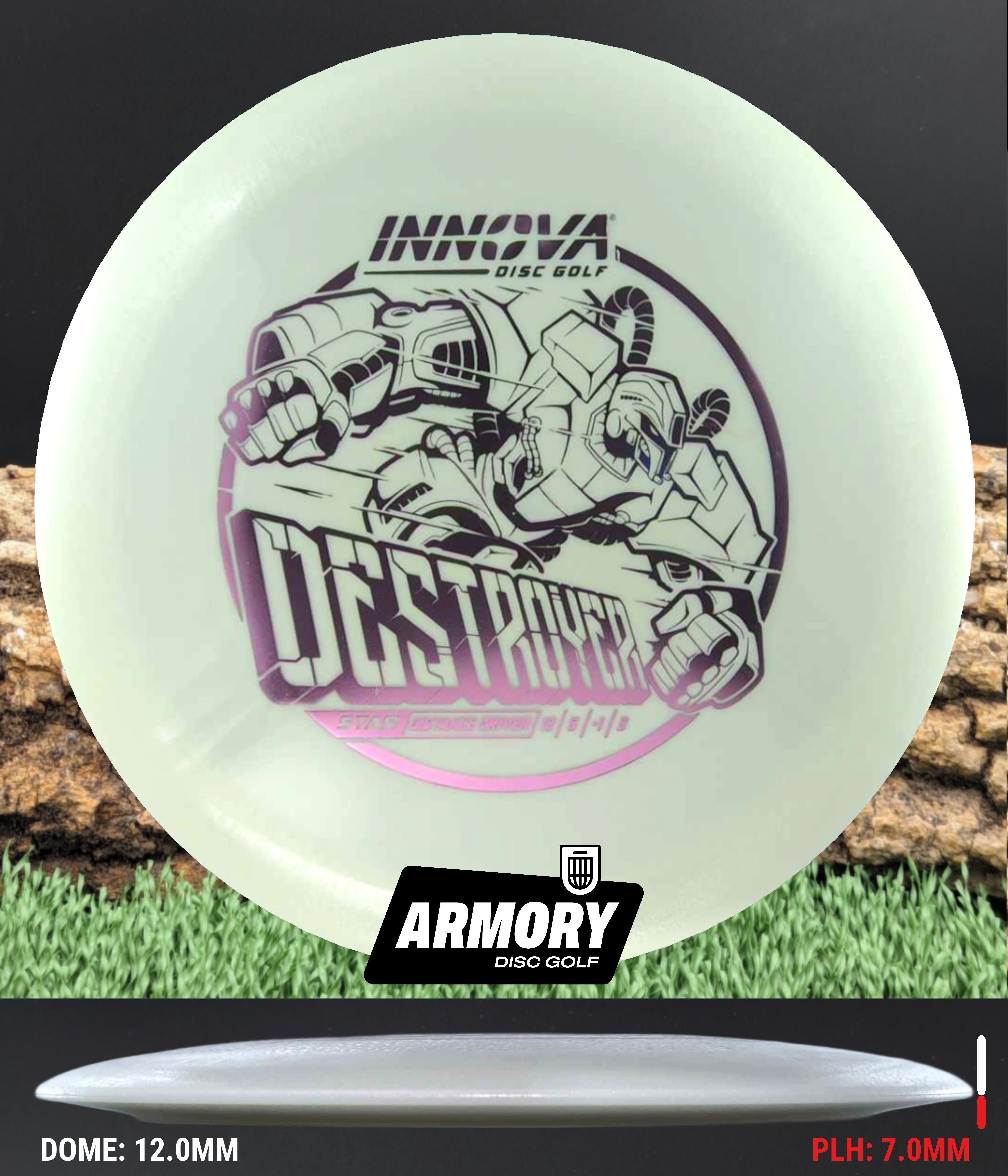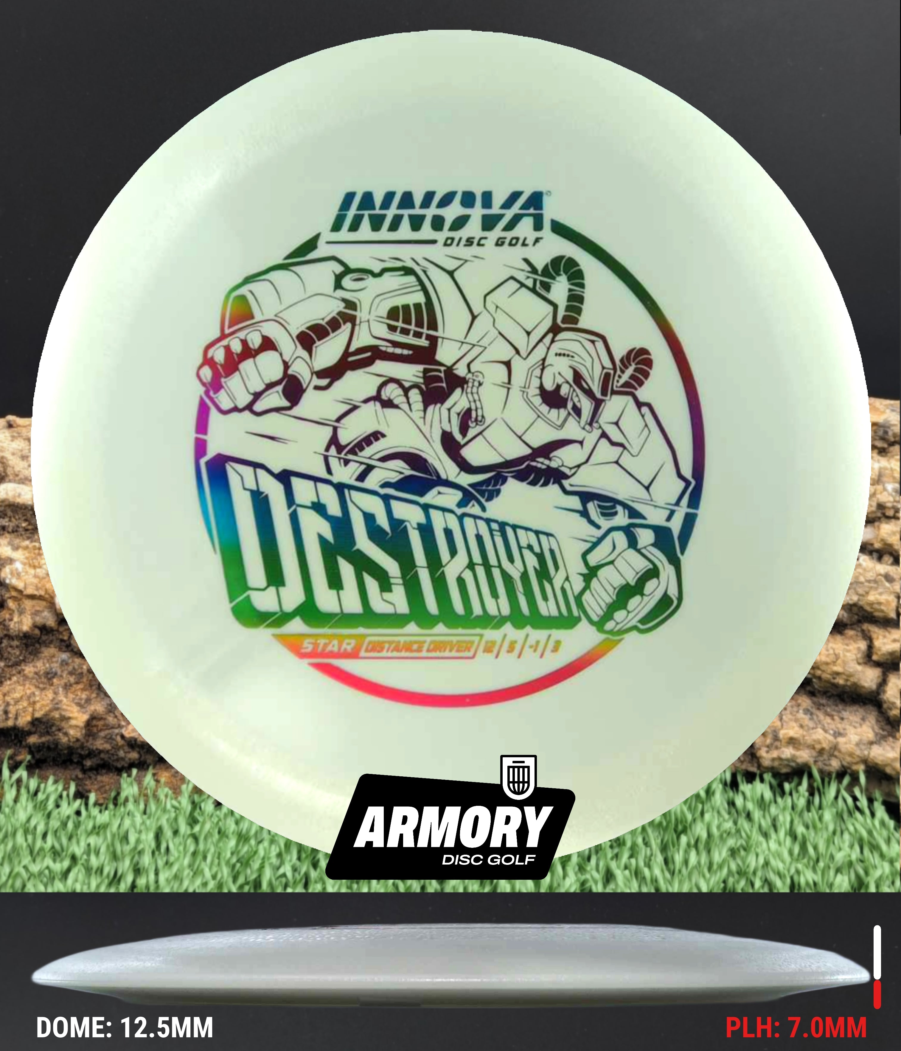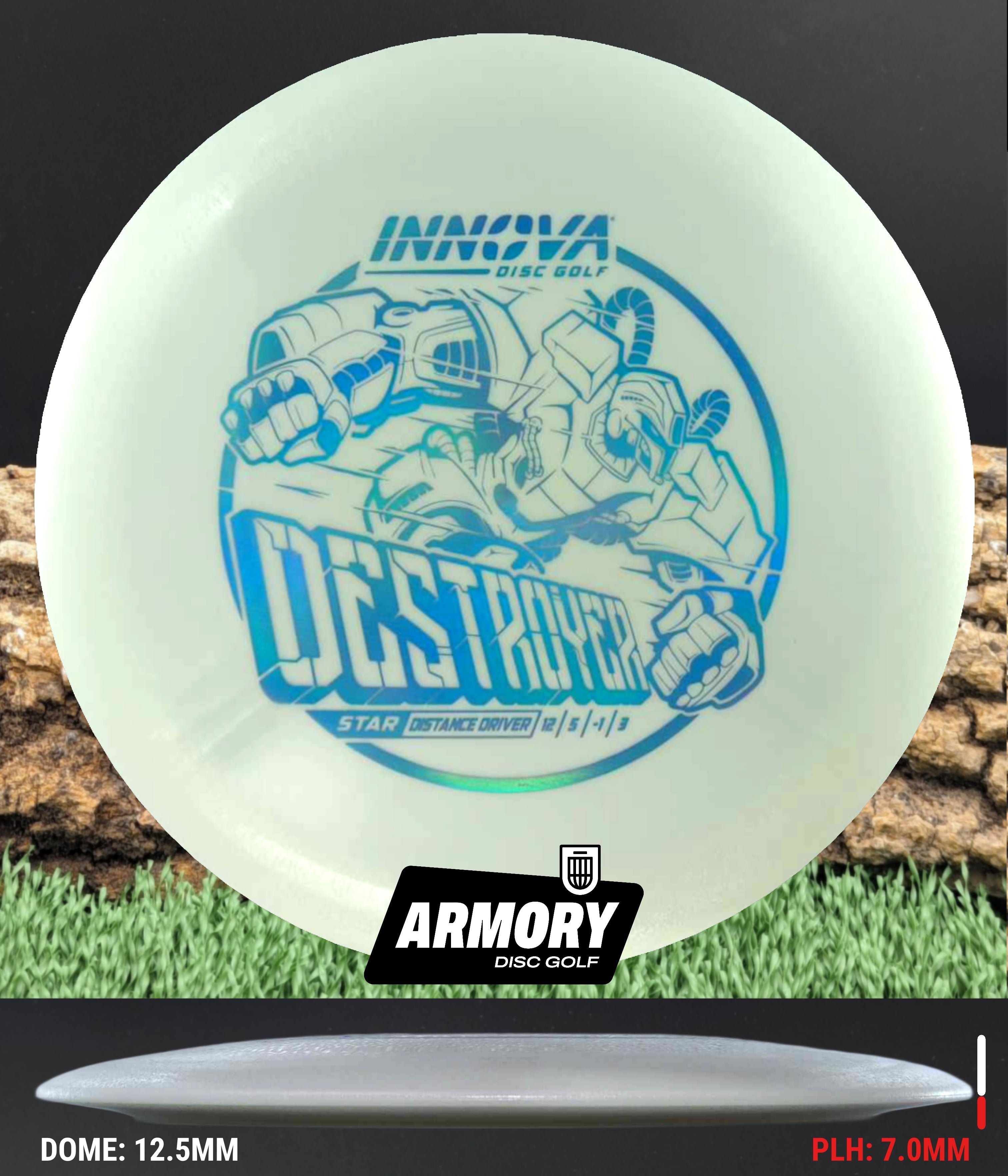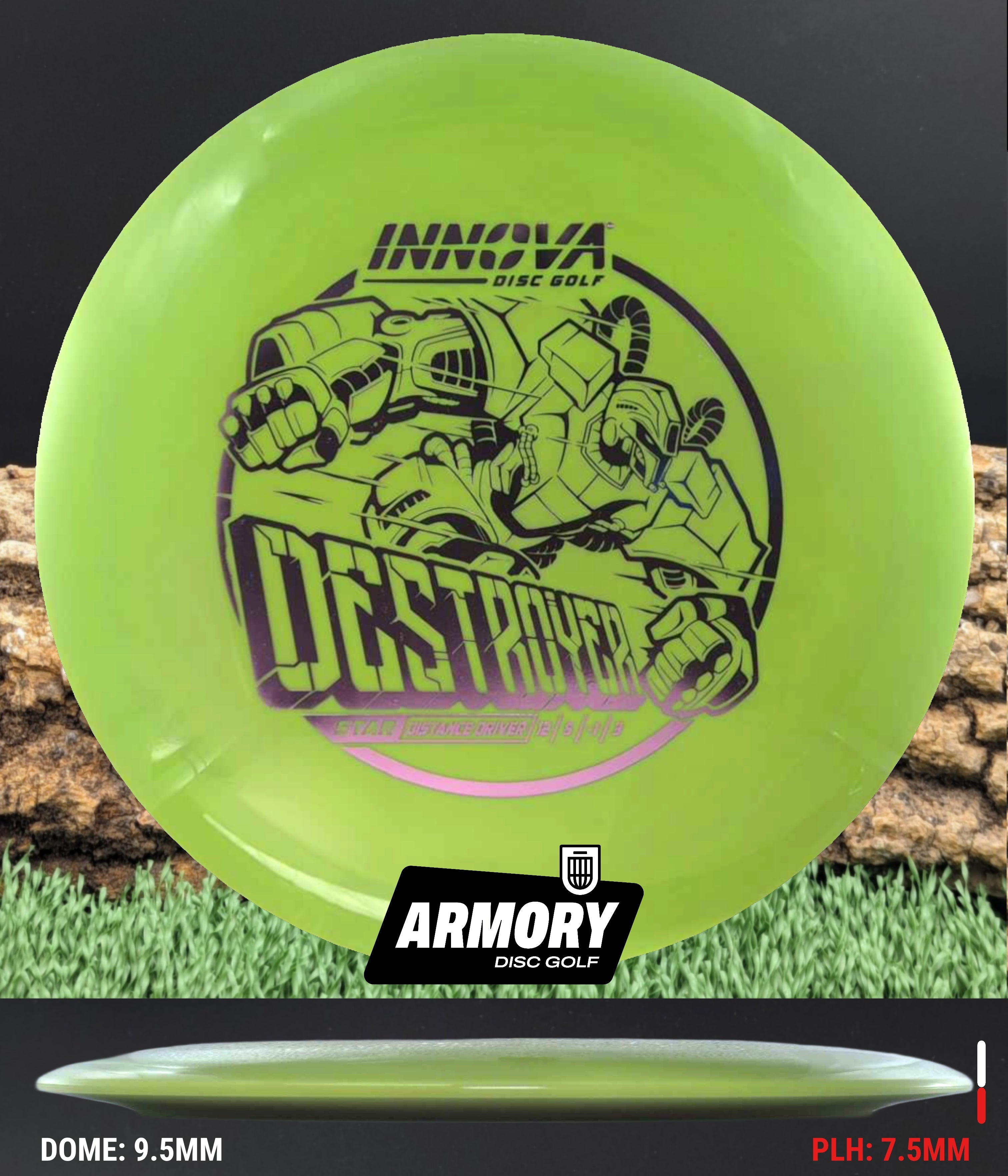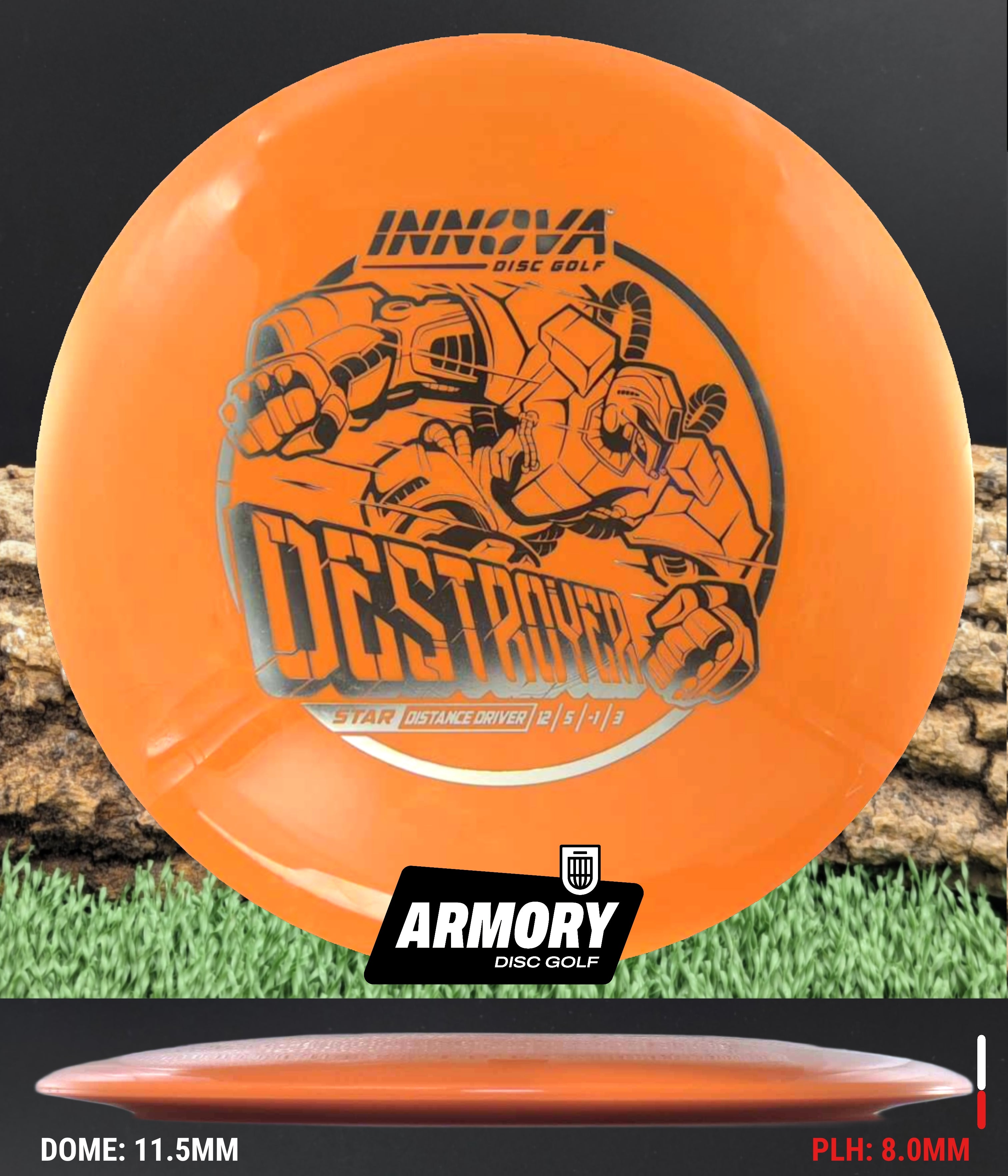 The Innova Destroyer is an elite high-speed distance driver trusted by professional disc golfers worldwide. Featuring a wide rim and pronounced dome, this overstable disc delivers exceptional power, distance, and reliability in headwinds. Perfect for powerful throws and forehand drives, the Destroyer offers predictable fade and maintains its flight characteristics even at high velocities.