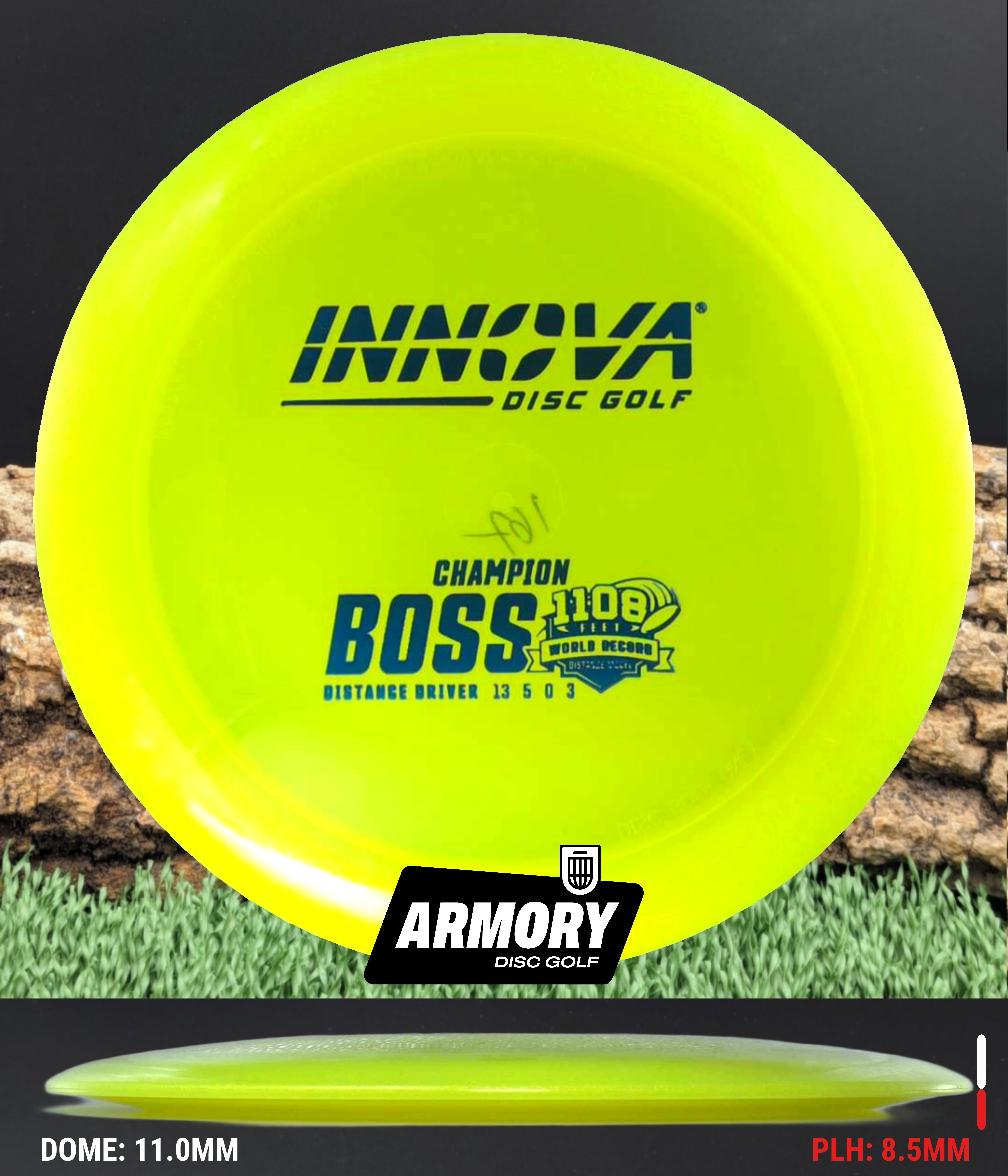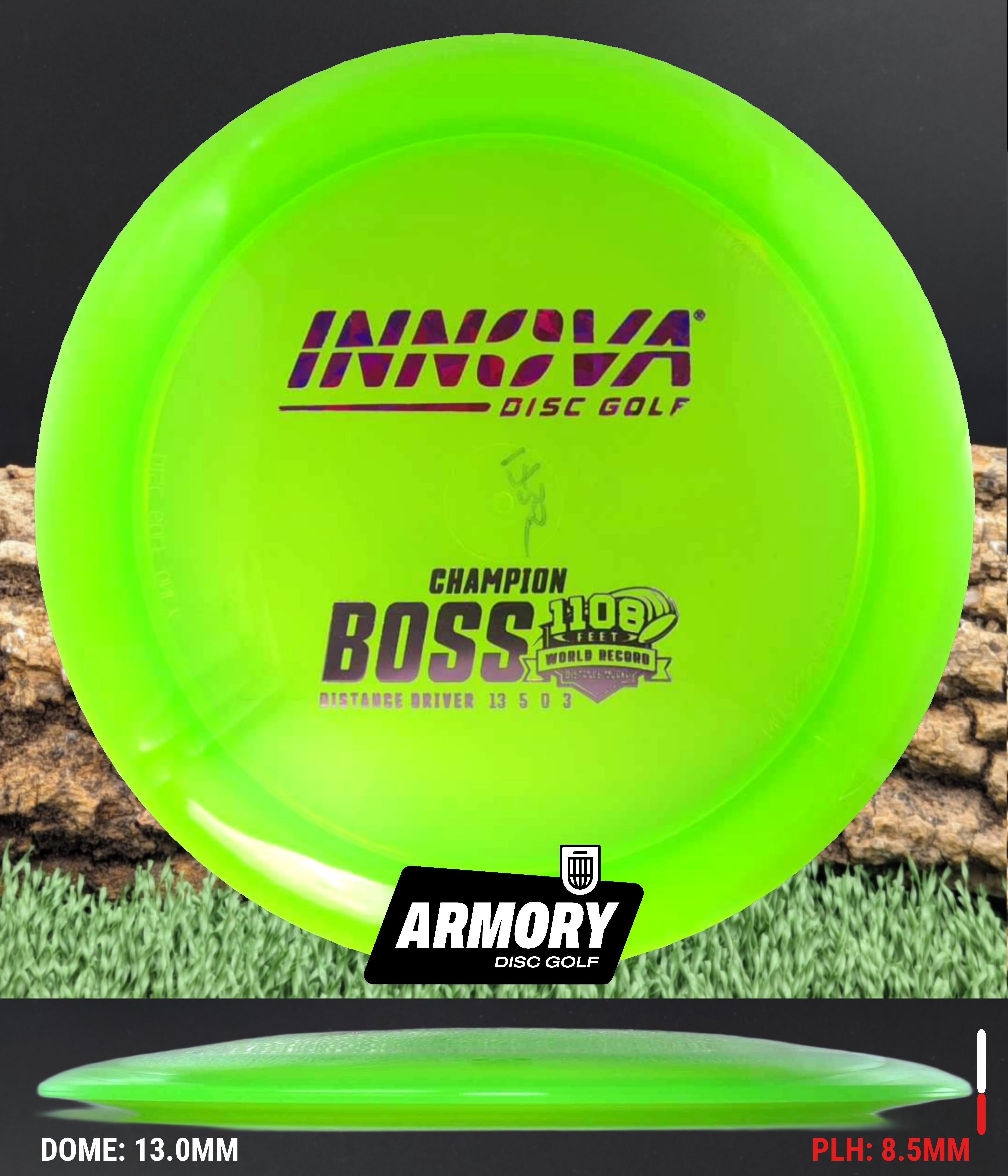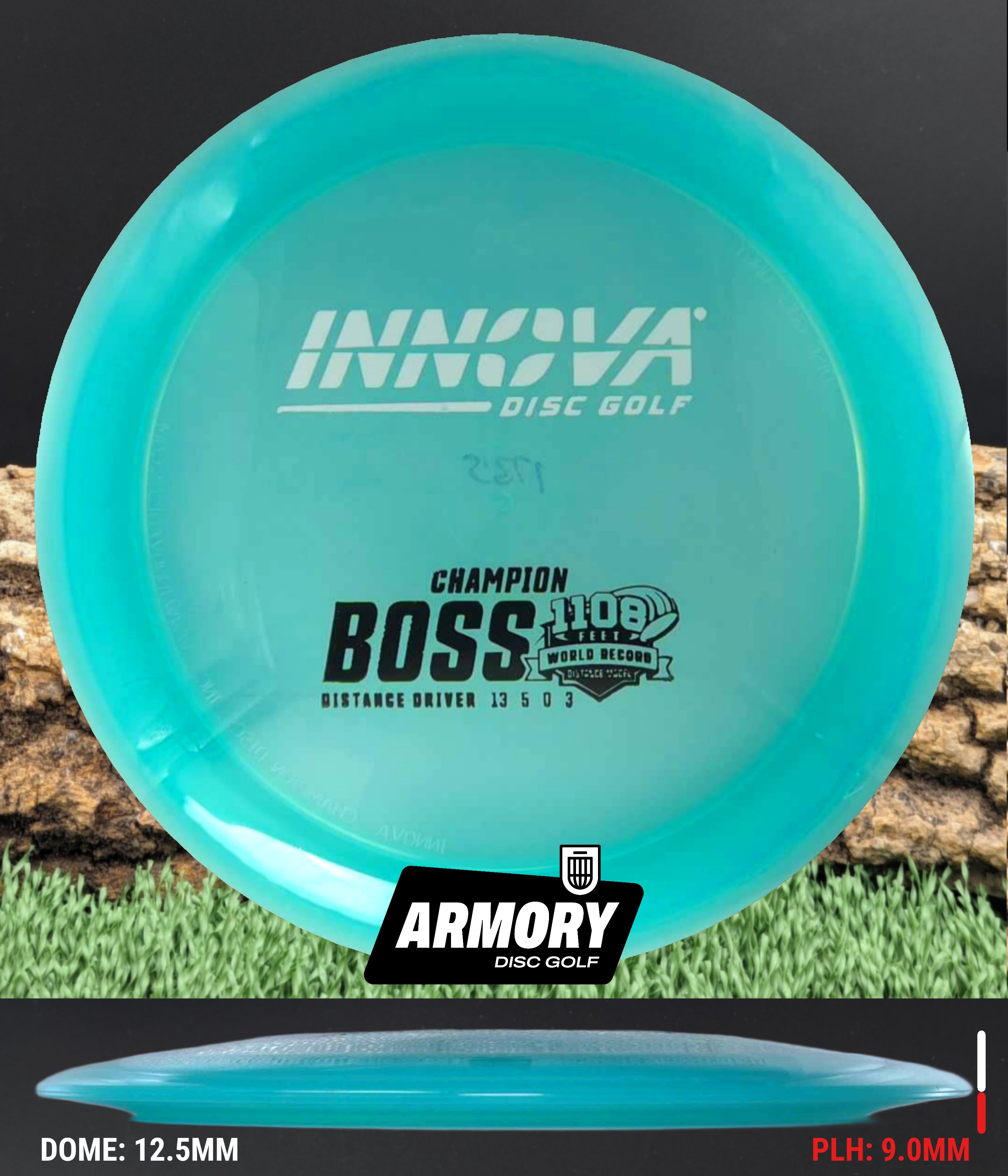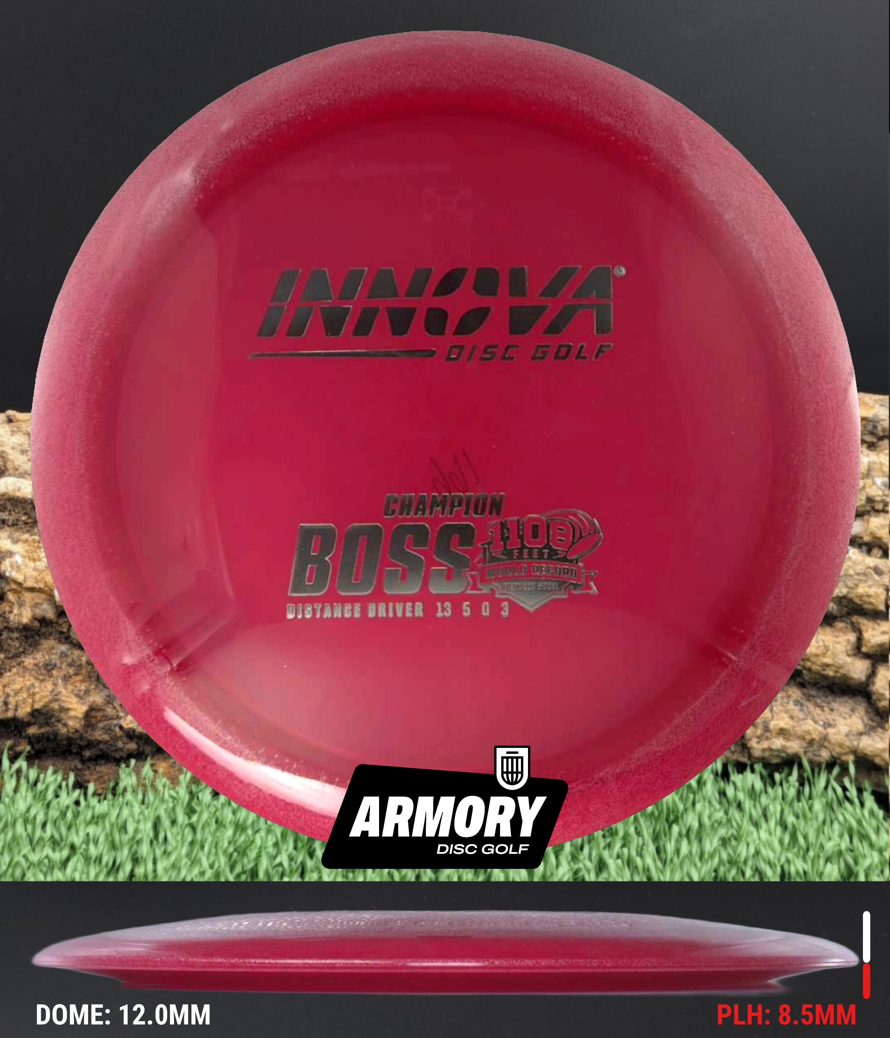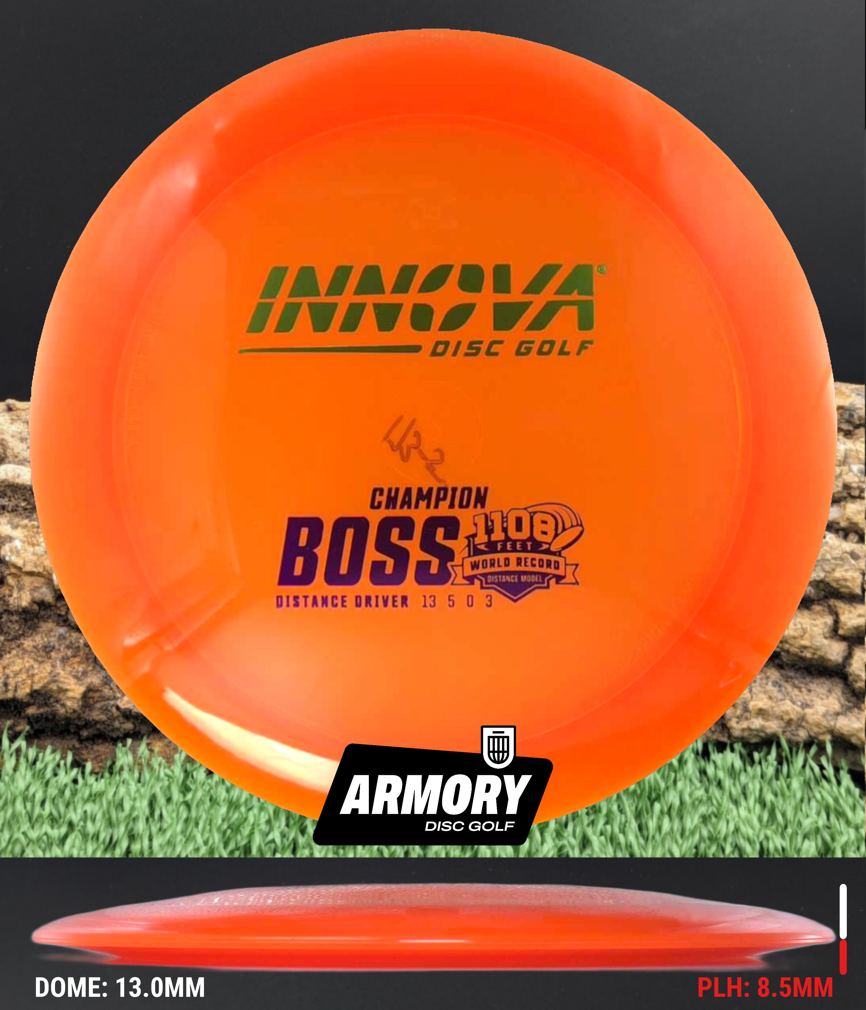 The Innova Boss is a fast stable driver that can handle full power throws and moderate headwinds, and advanced players and sidearm throwers will appreciate the dependable stability. The Boss has a slight high speed turn to help maximize distance with a predictable fade.