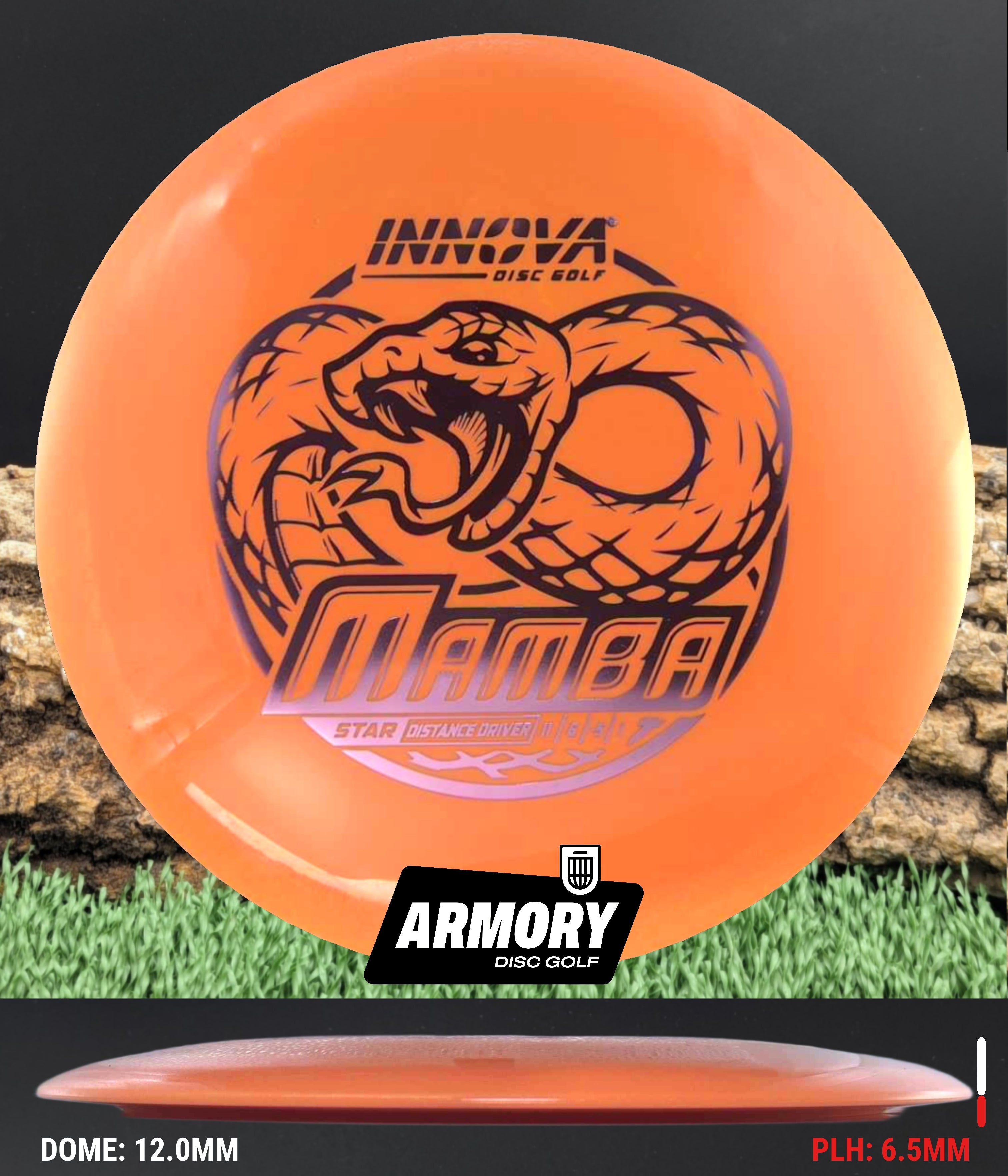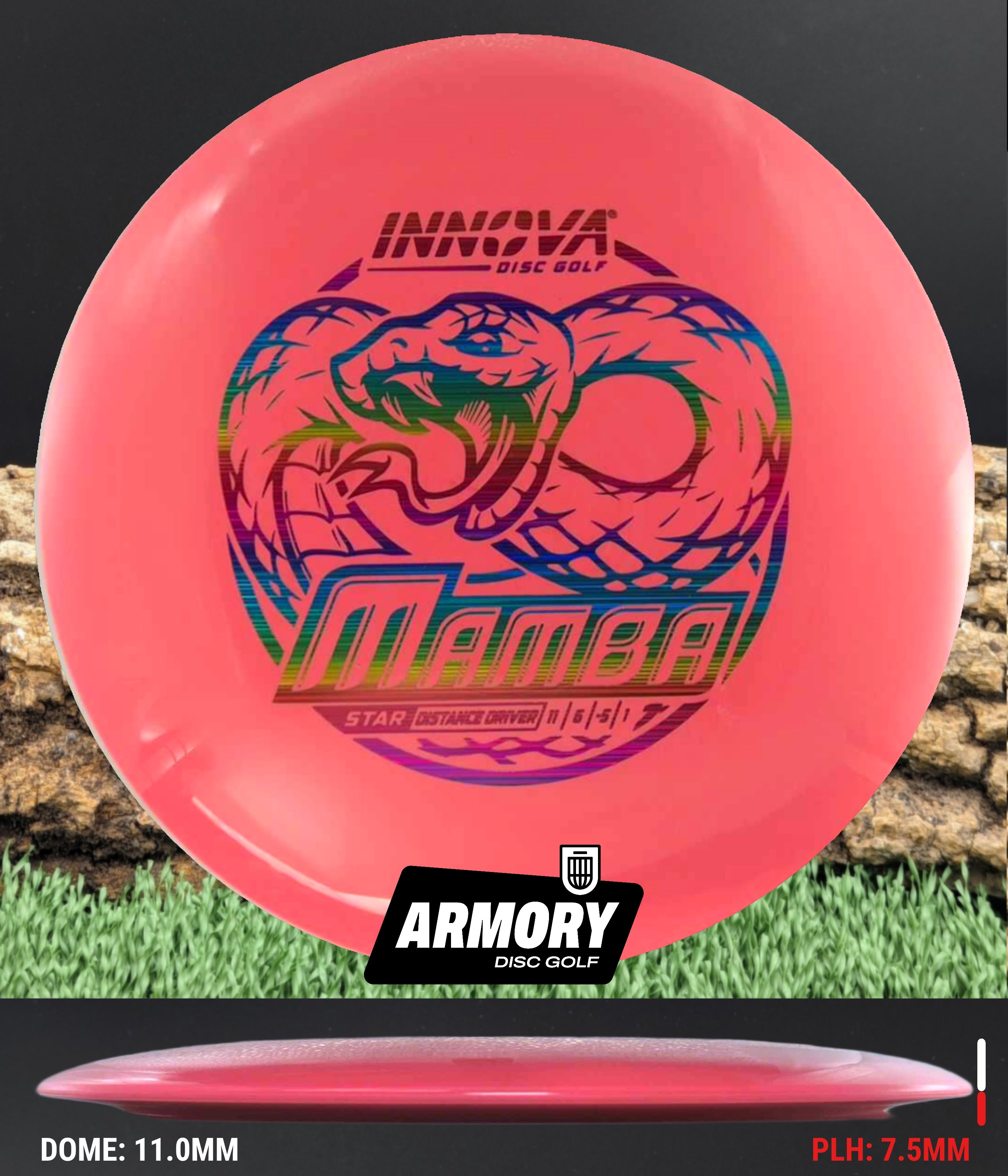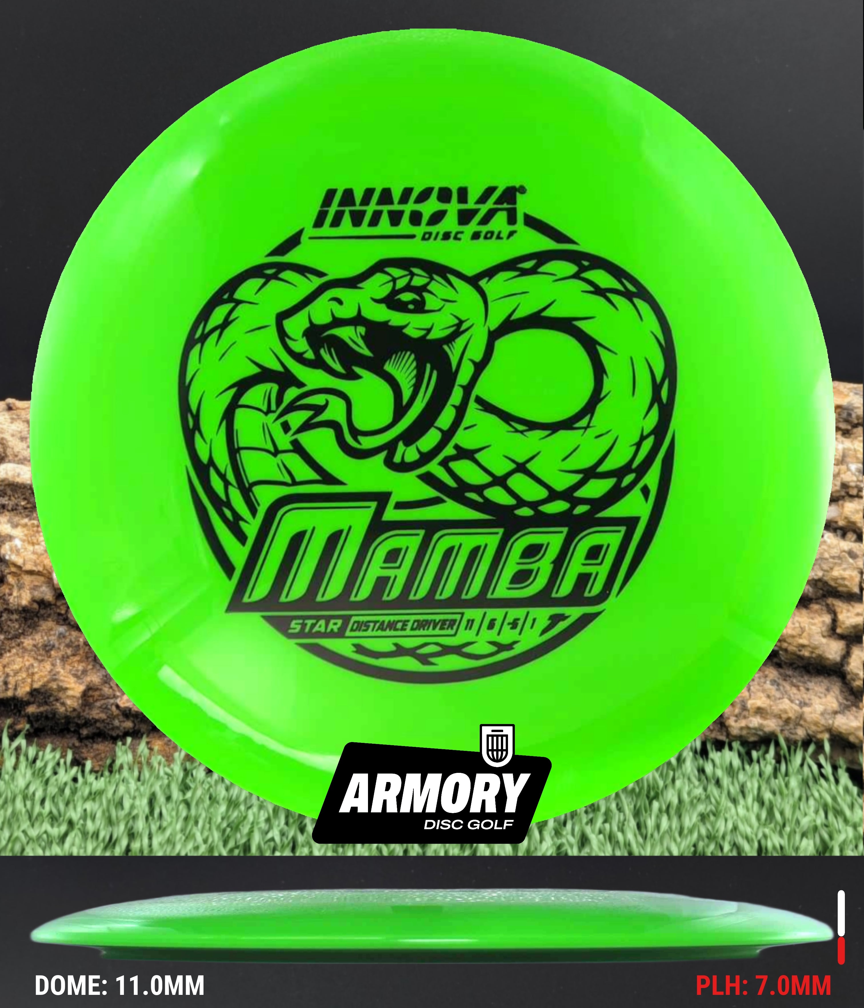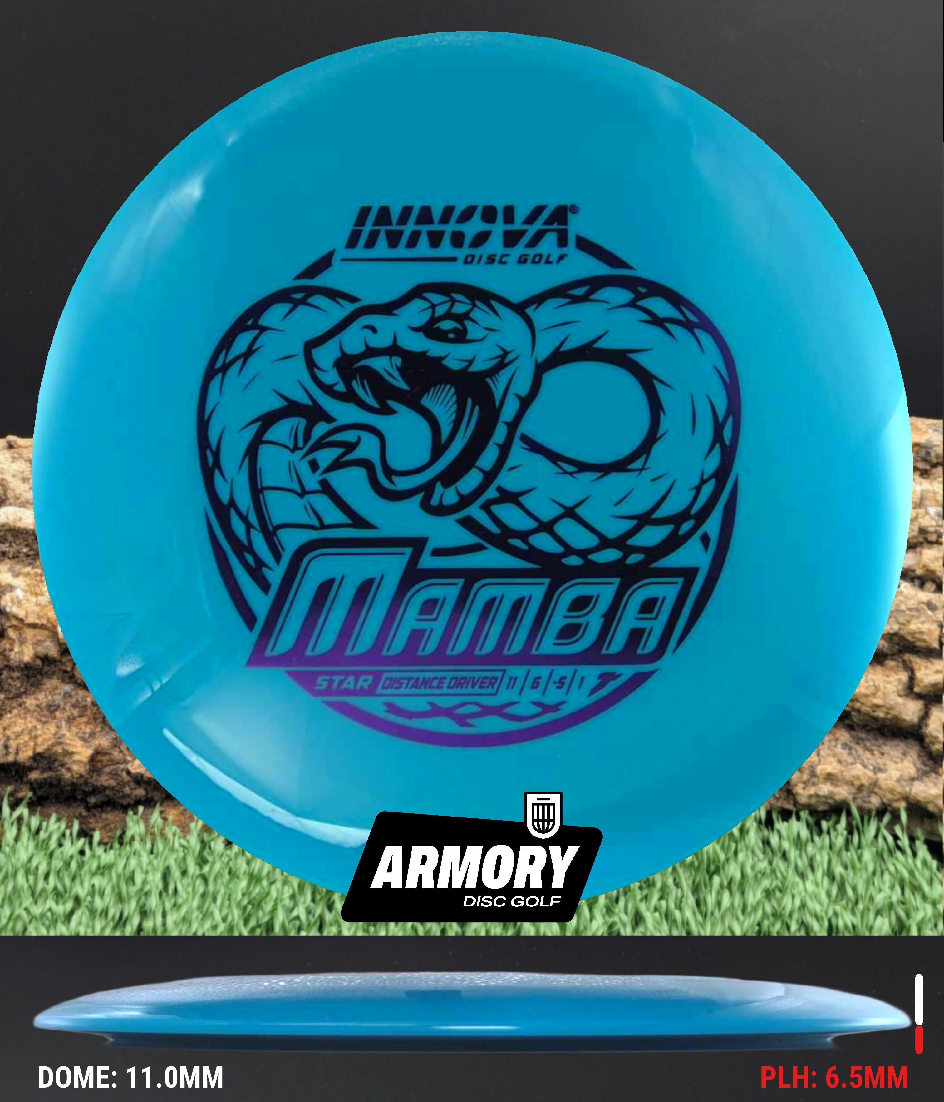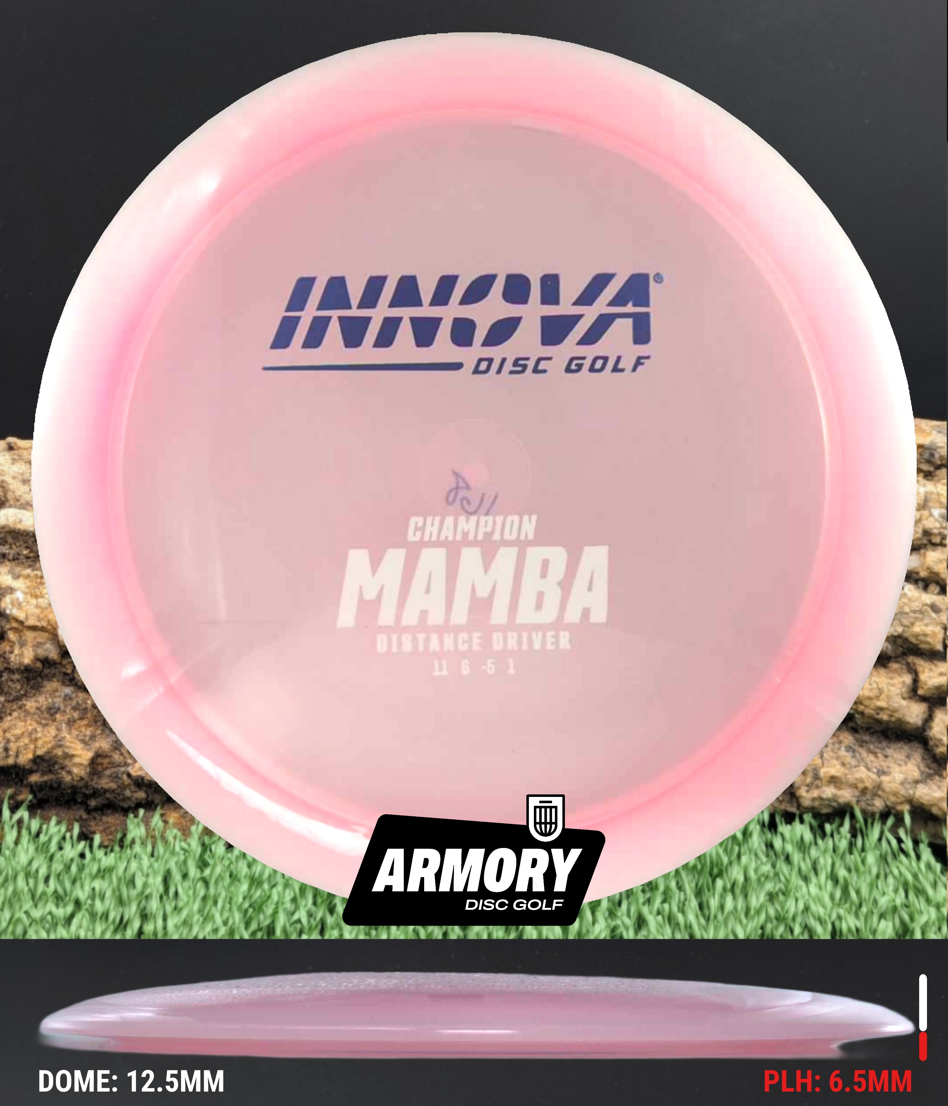 The Innova Champion Mamba is designed for effortless distance, long turnovers, and hyzer-flips. With flight numbers of 11 | 6 | -5 | 1, the Mamba is one of the most understable high-speed drivers in the Innova lineup—perfect for beginners learning distance or experienced players looking for rollers and massive turnovers.