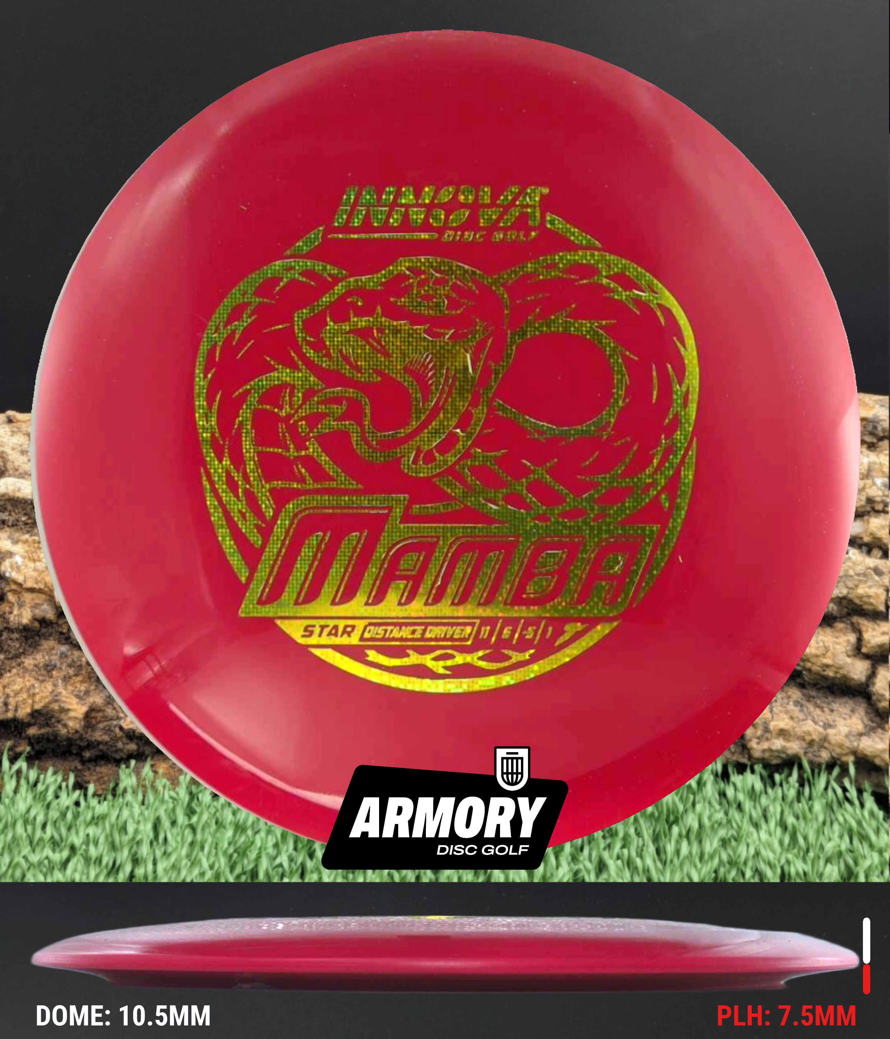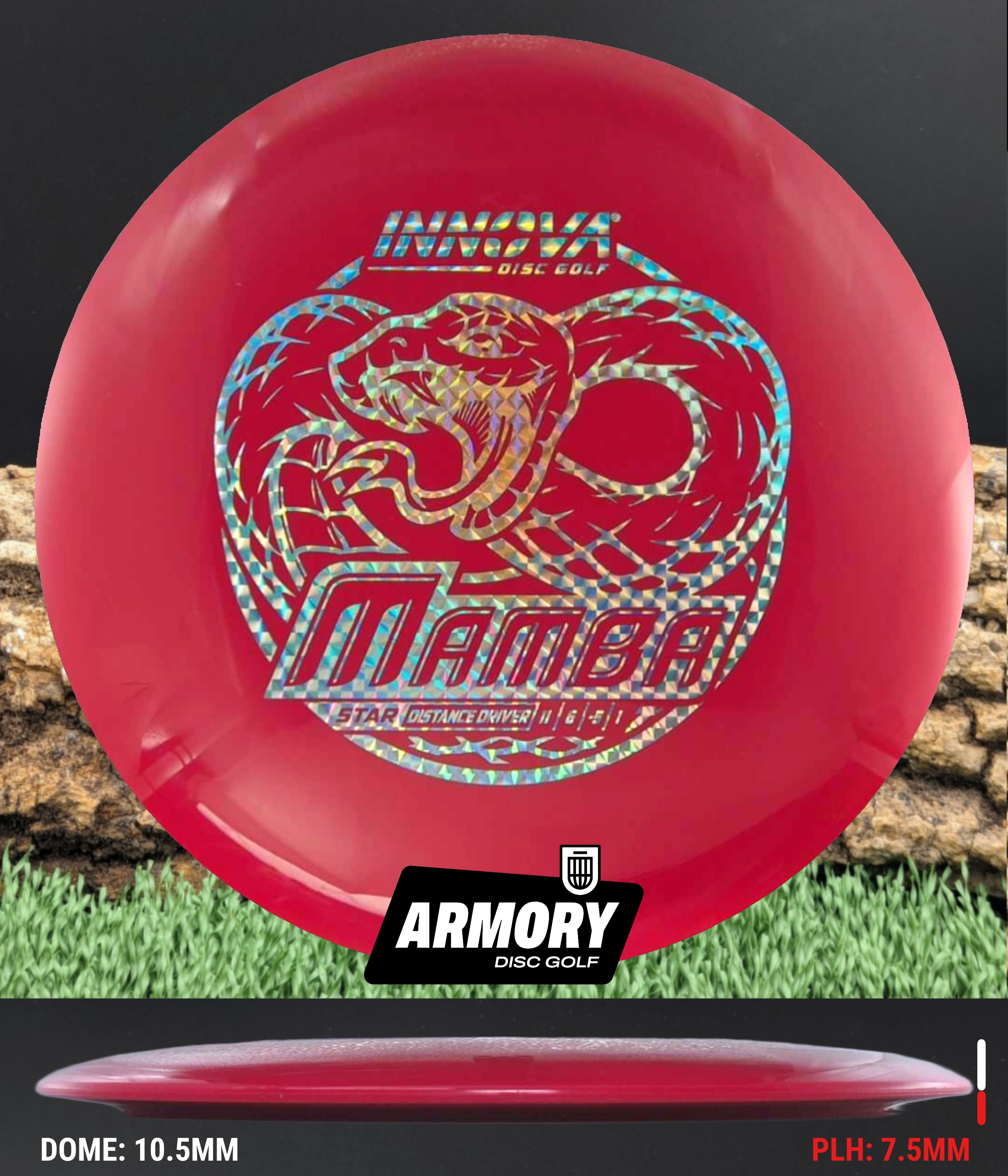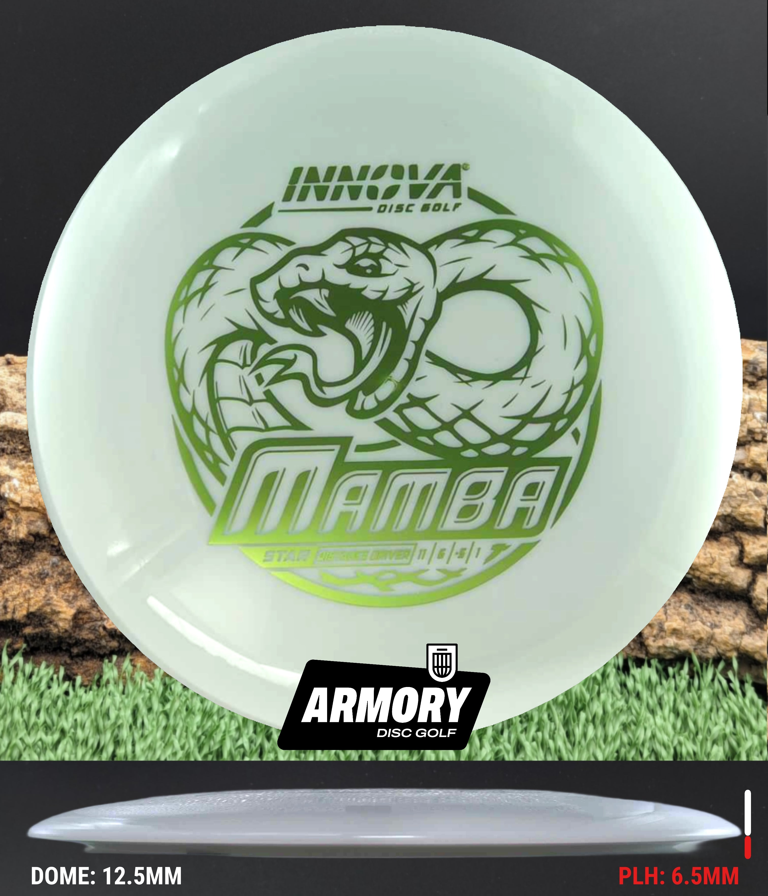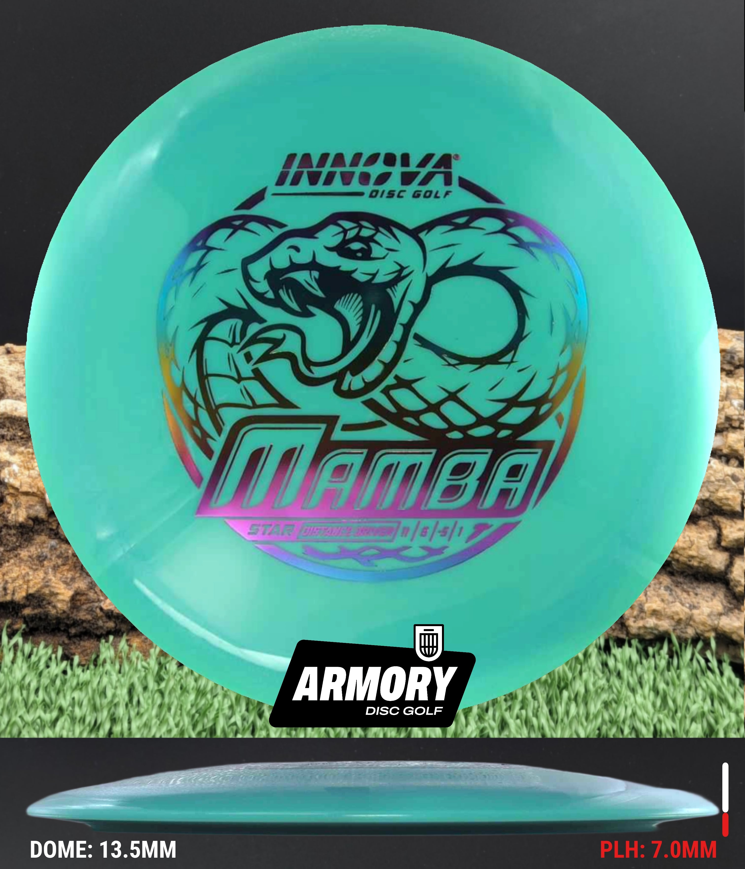 The Innova Champion Mamba is designed for effortless distance, long turnovers, and hyzer-flips. With flight numbers of 11 | 6 | -5 | 1, the Mamba is one of the most understable high-speed drivers in the Innova lineup—perfect for beginners learning distance or experienced players looking for rollers and massive turnovers.