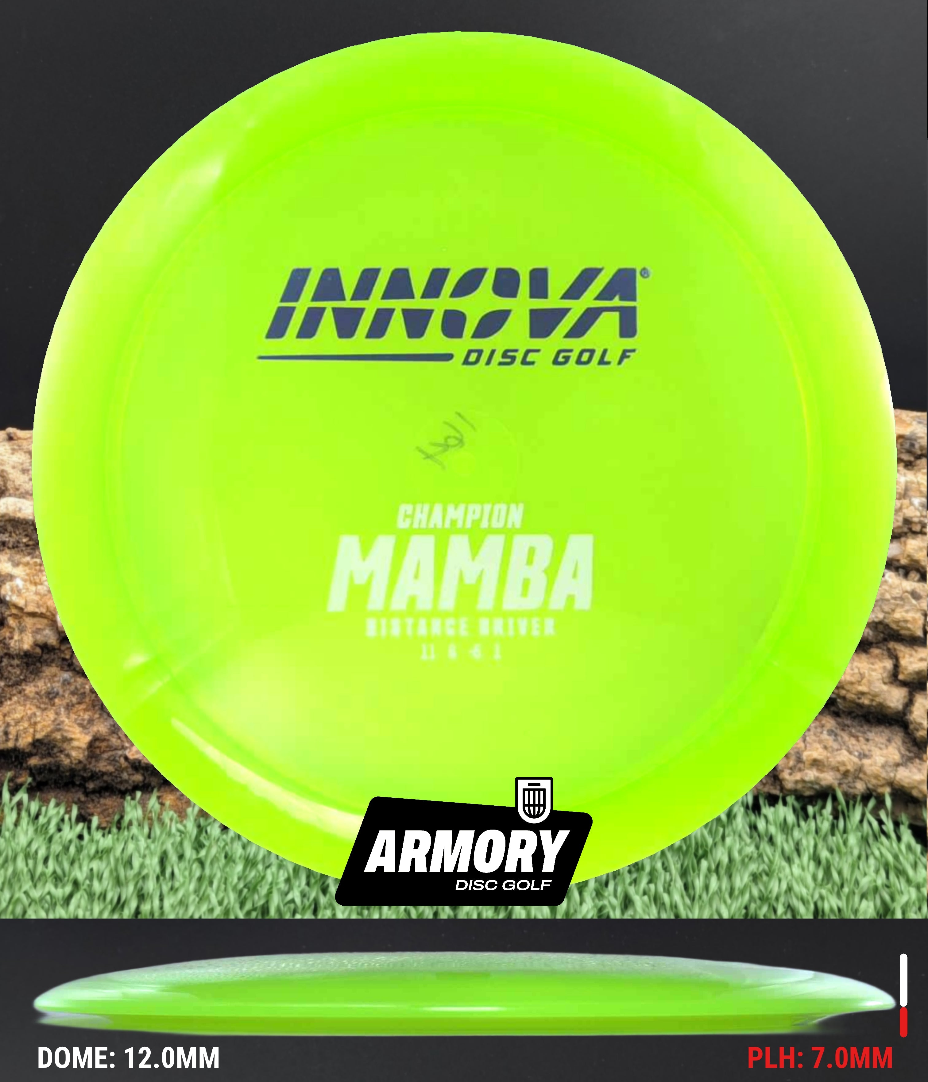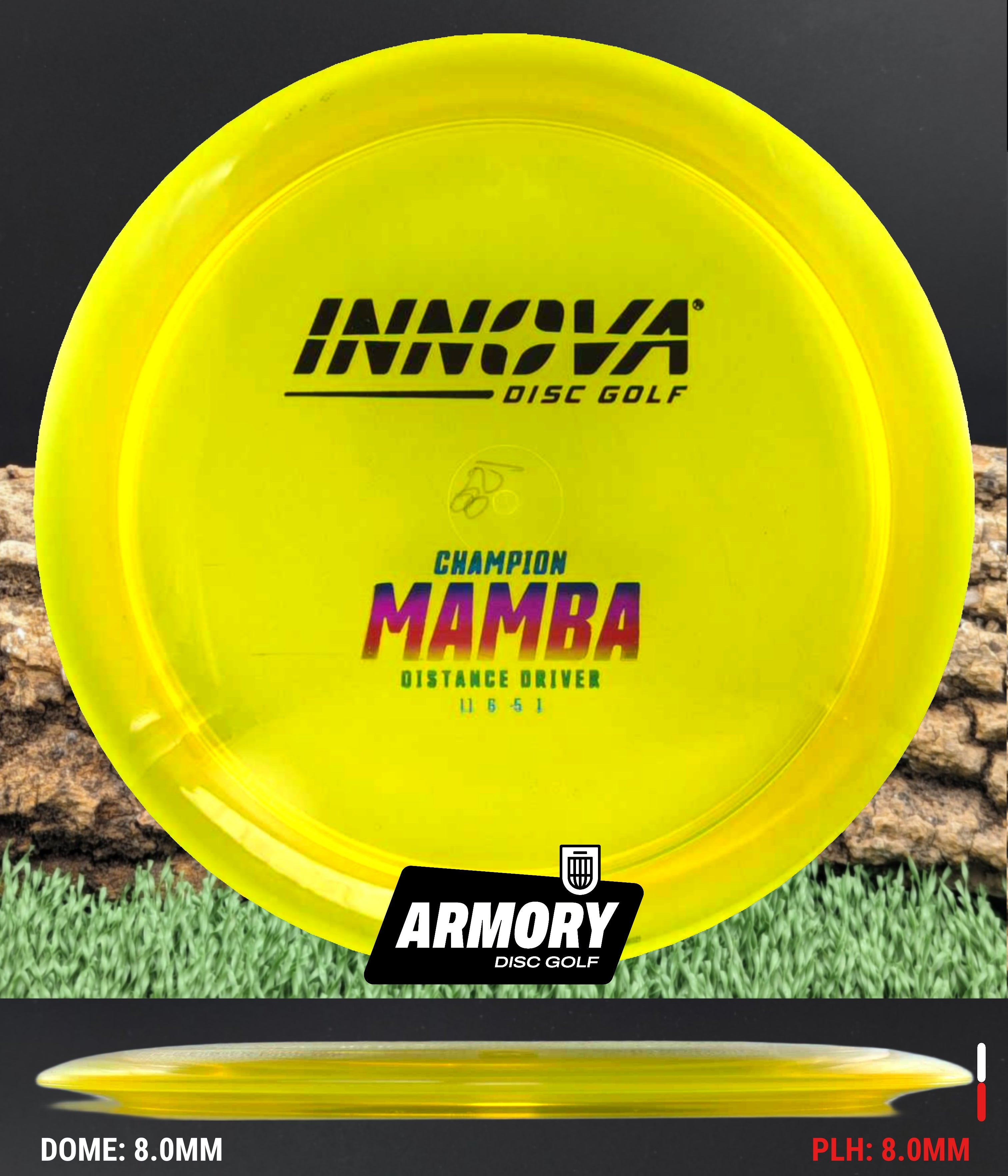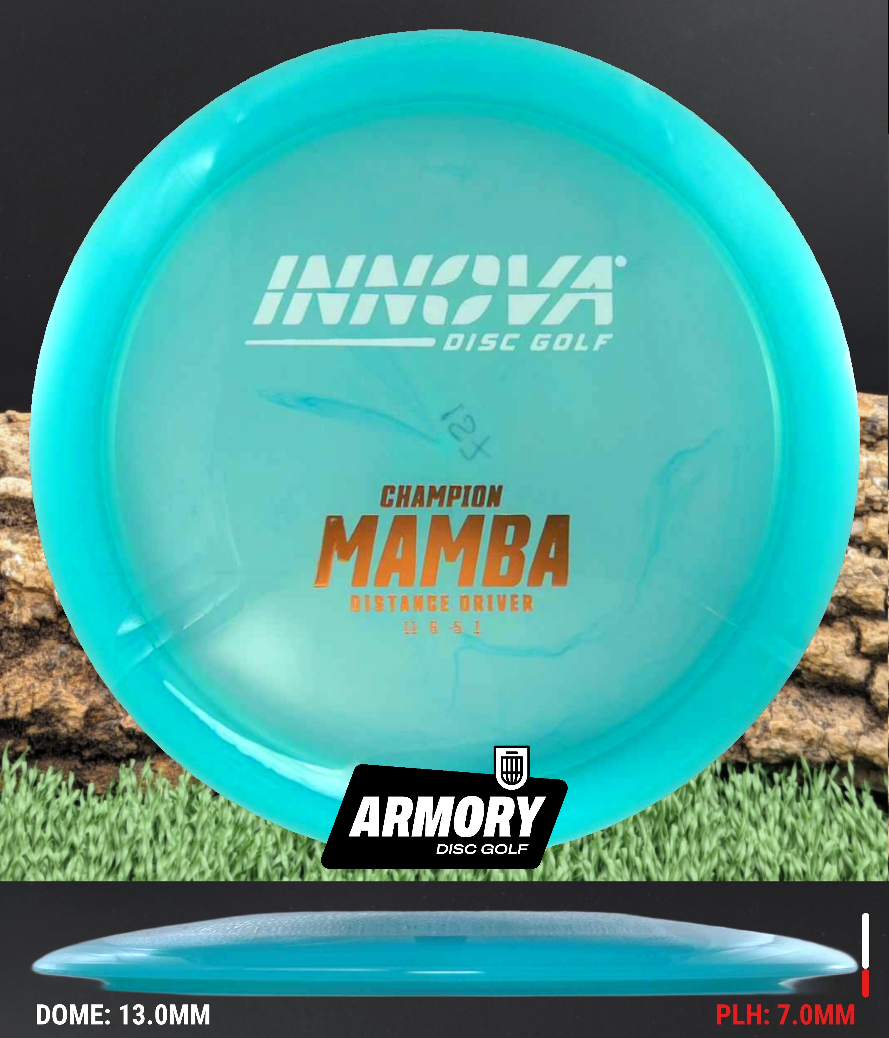 In Champion plastic, the Mamba gains added durability and a touch more stability compared to other blends. This makes it an excellent choice for players who want the same easy-turning flight path but with a longer lifespan, even after many rounds. The Champion Mamba shines in tailwinds, open fairways, and technical turnover lines where glide and finesse are key.
