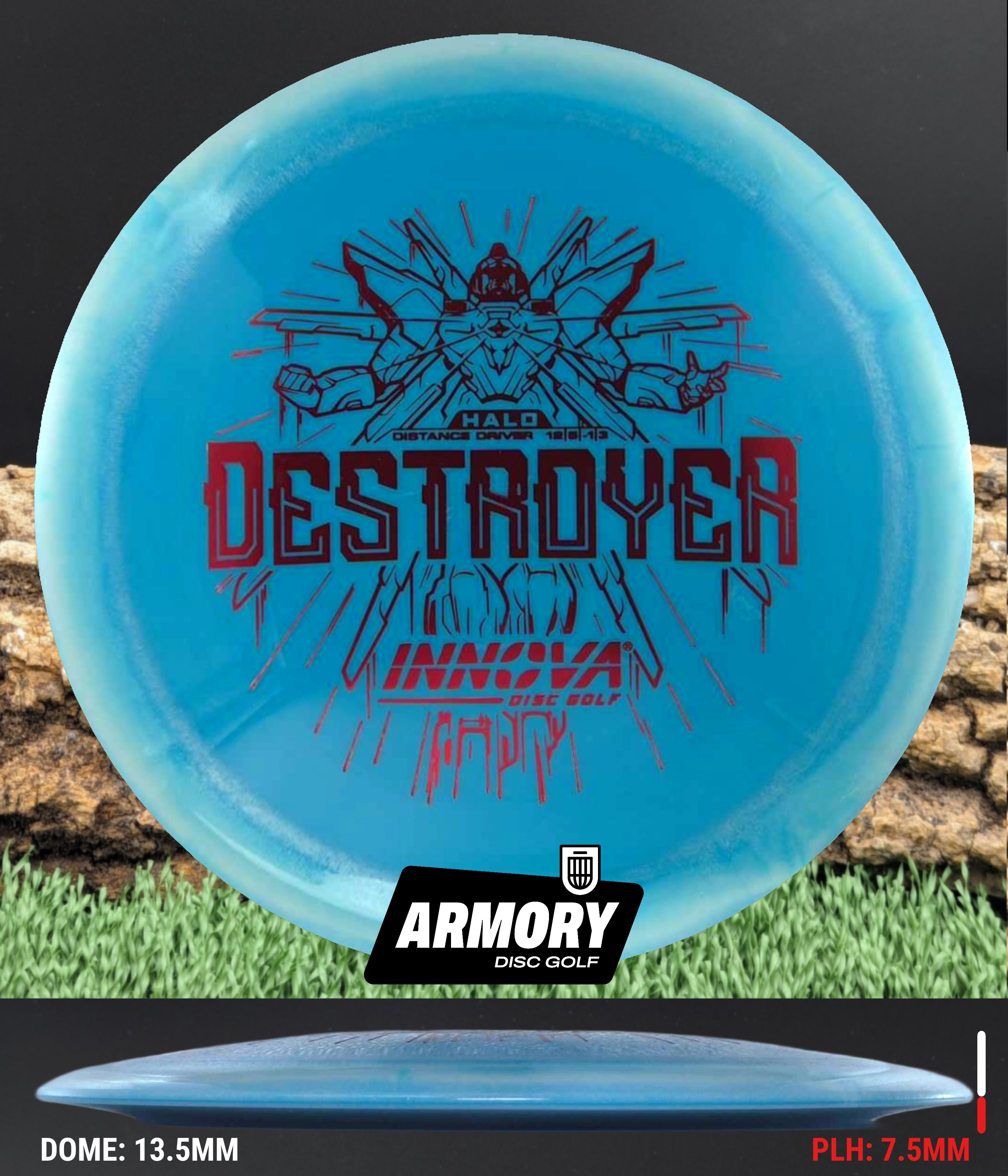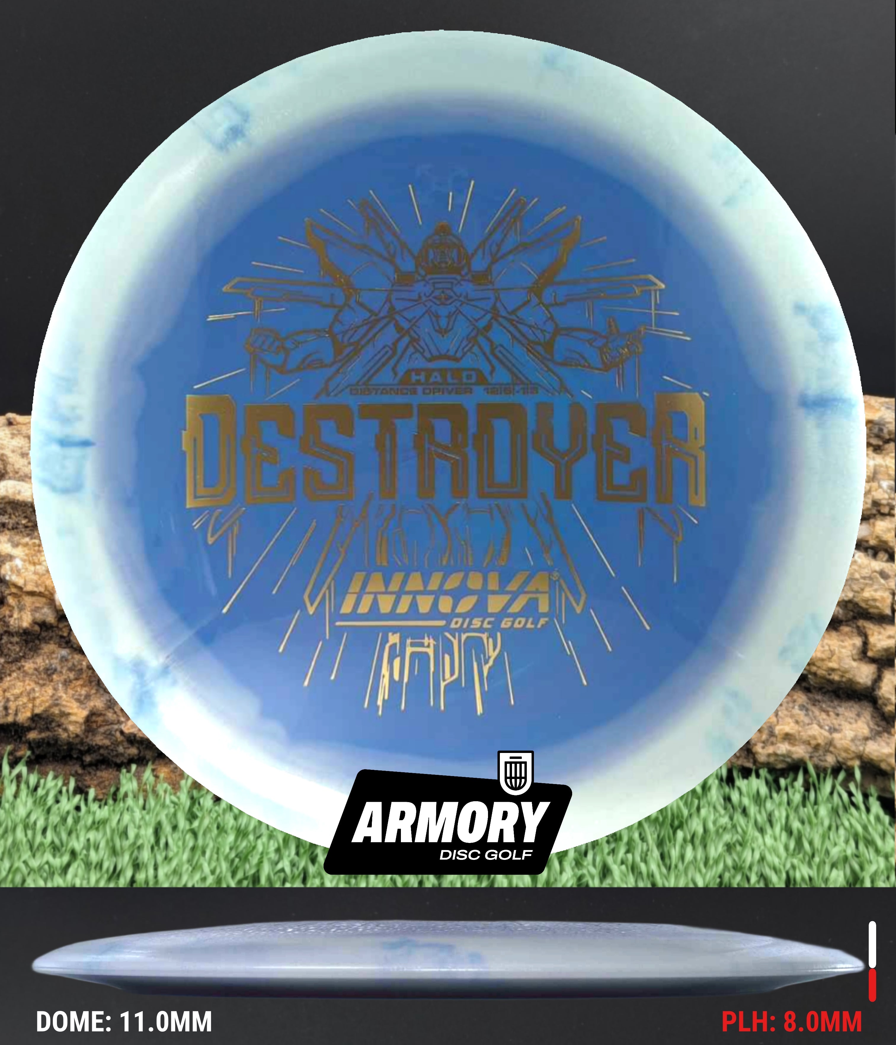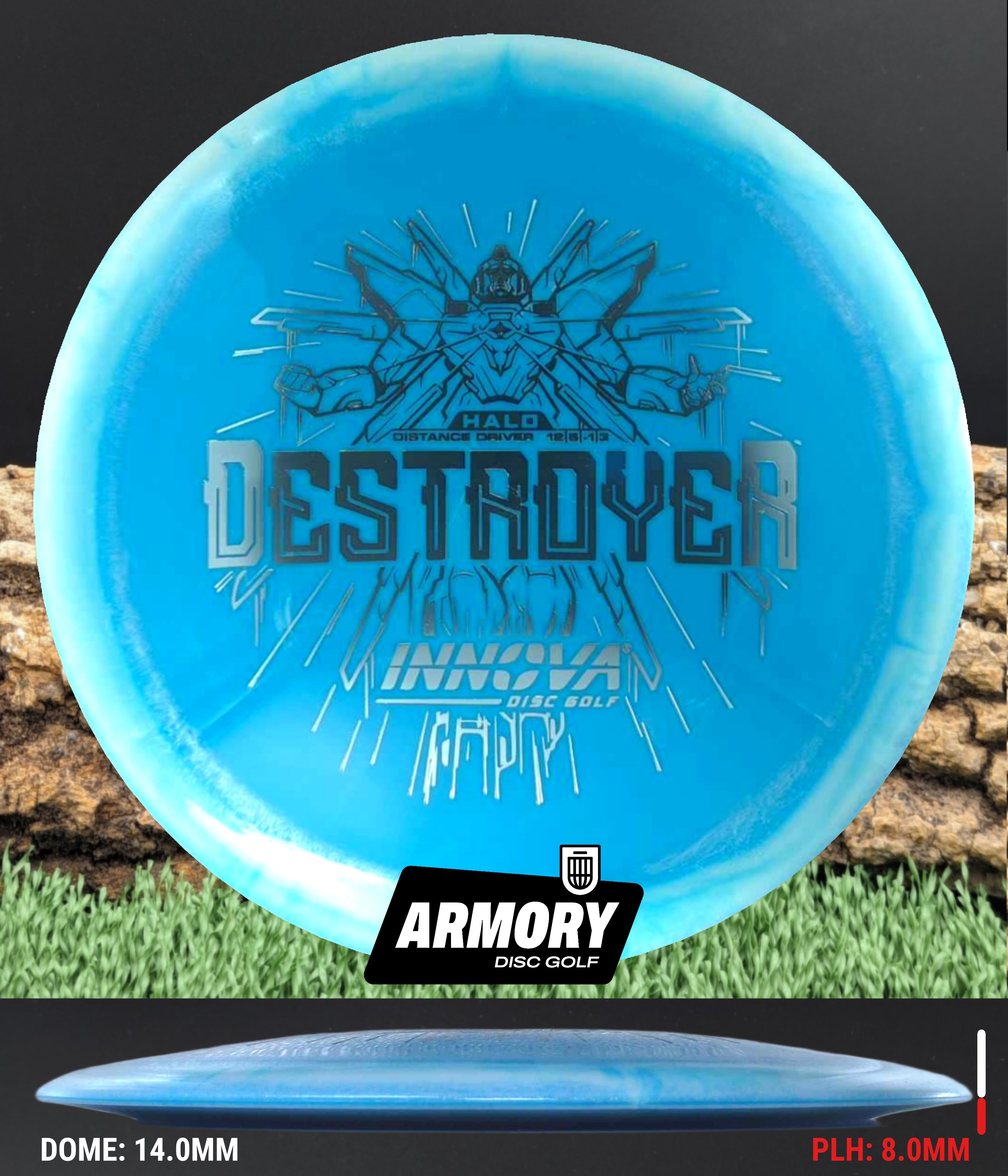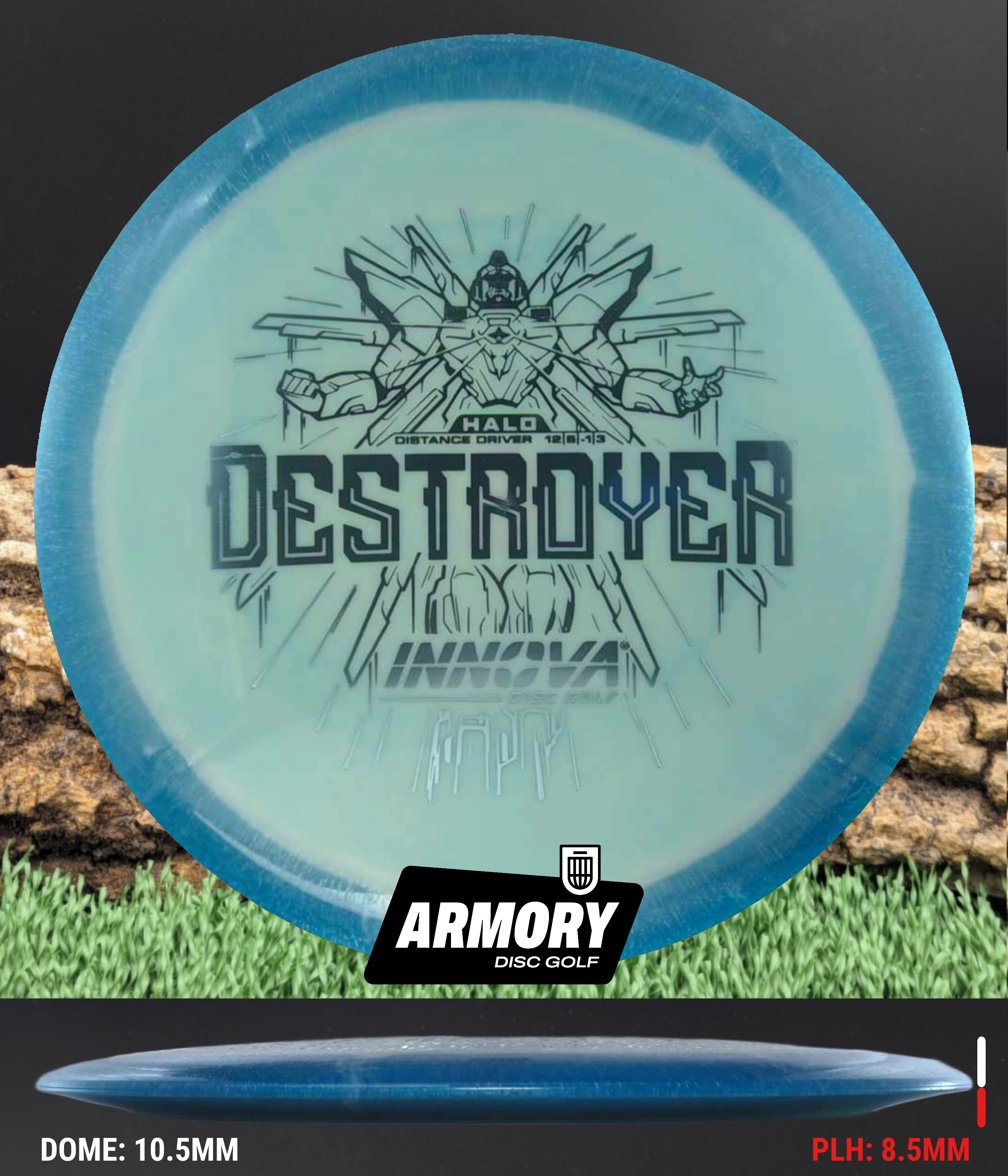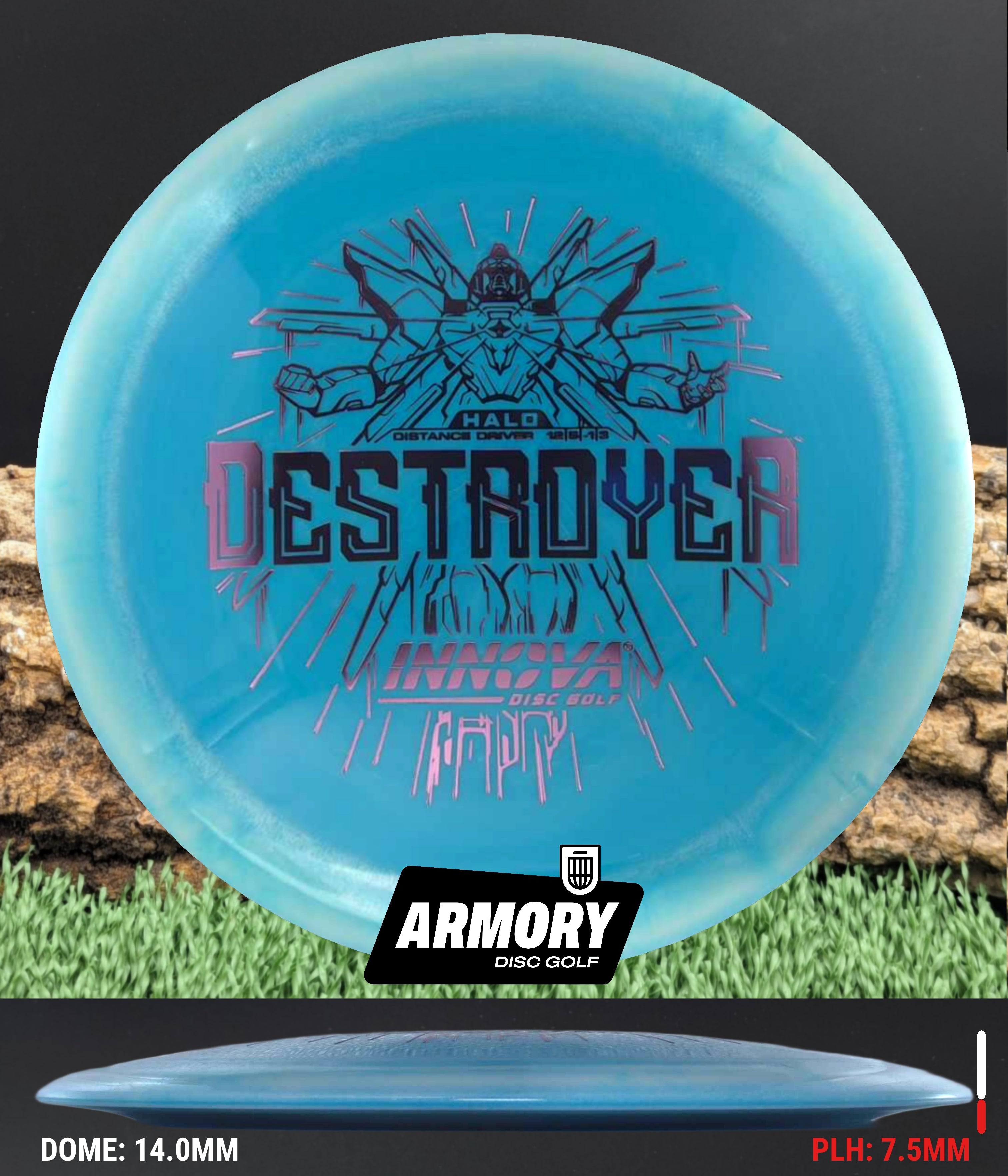The Halo Star blend provides the durability and grip of Innova’s premium Star plastic with a stiffer, more stable feel that can handle even more torque. Whether you’re looking for your next max-distance bomber or a head-turning addition to your bag, the Halo Destroyer is ready to deliver.