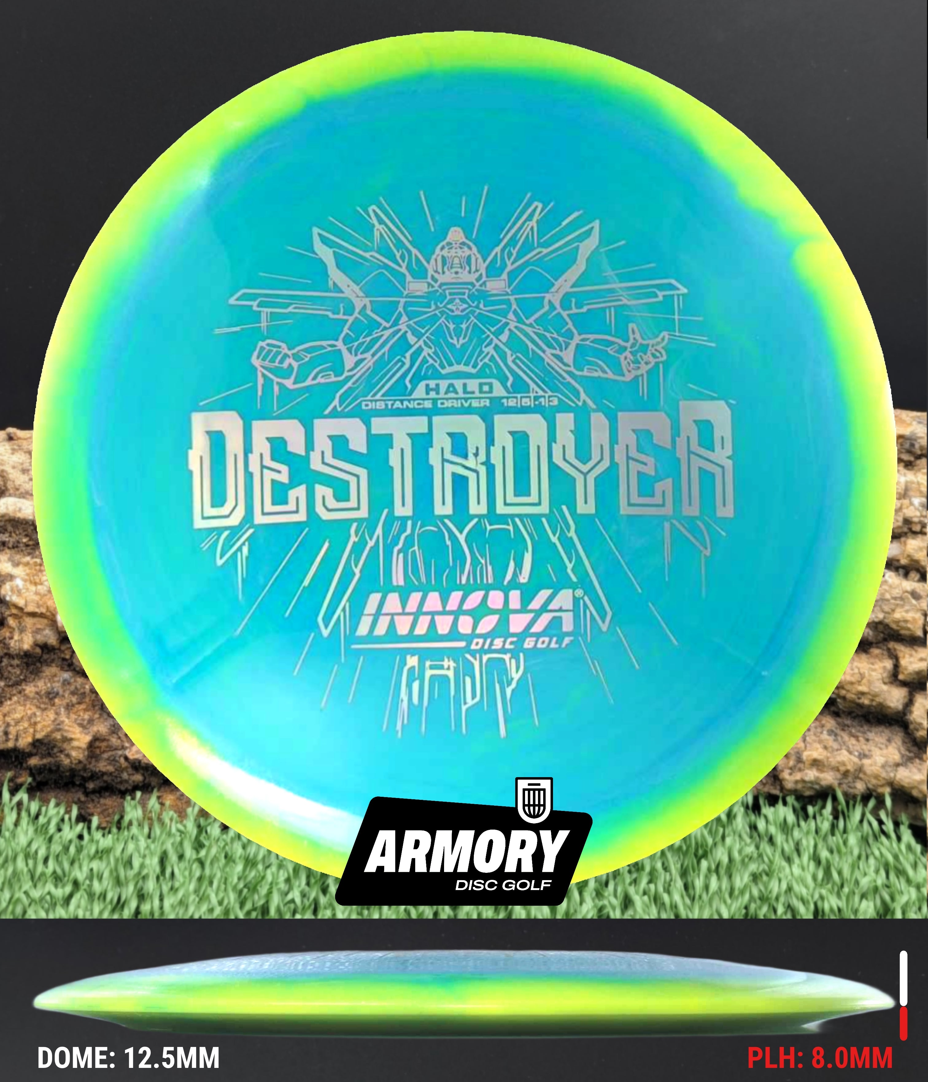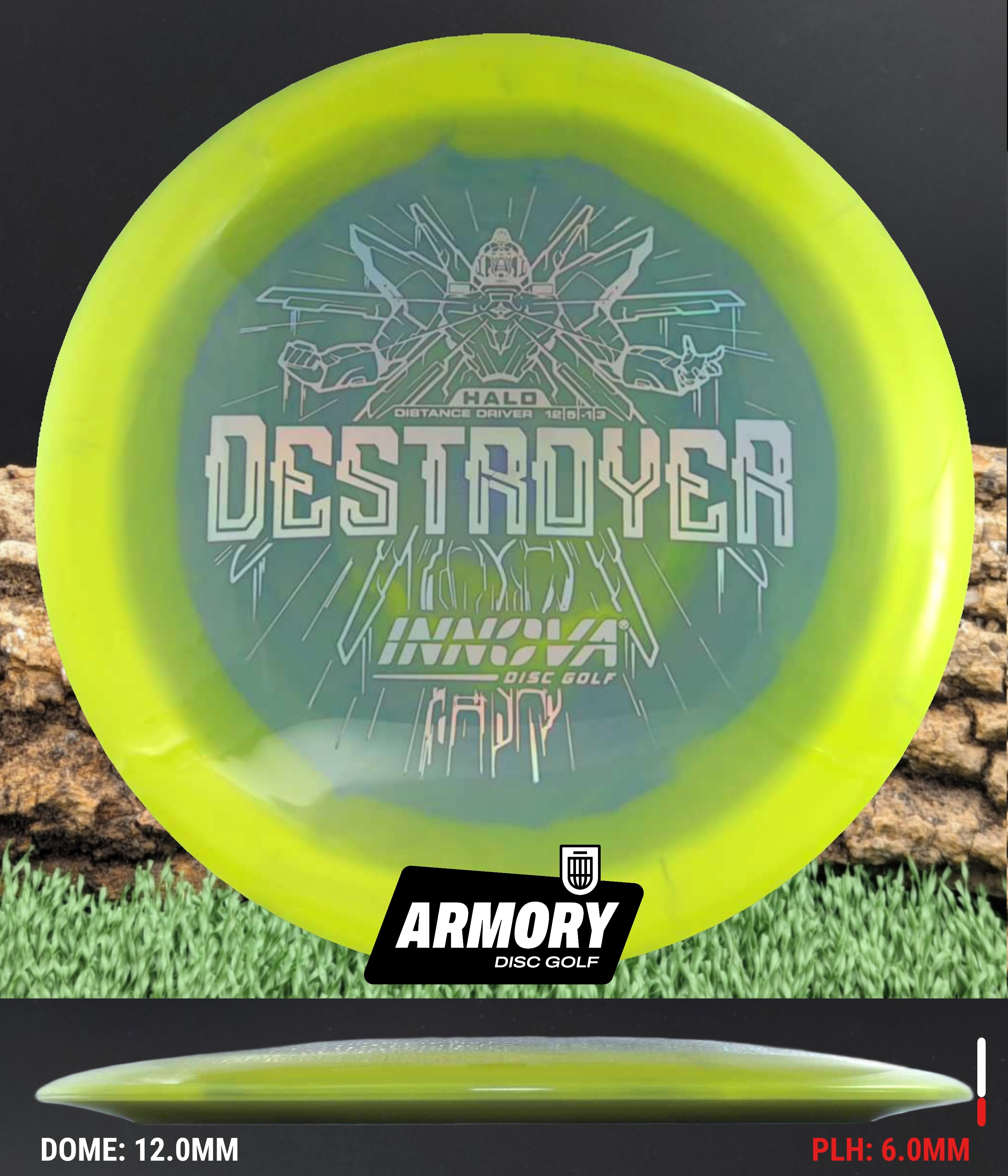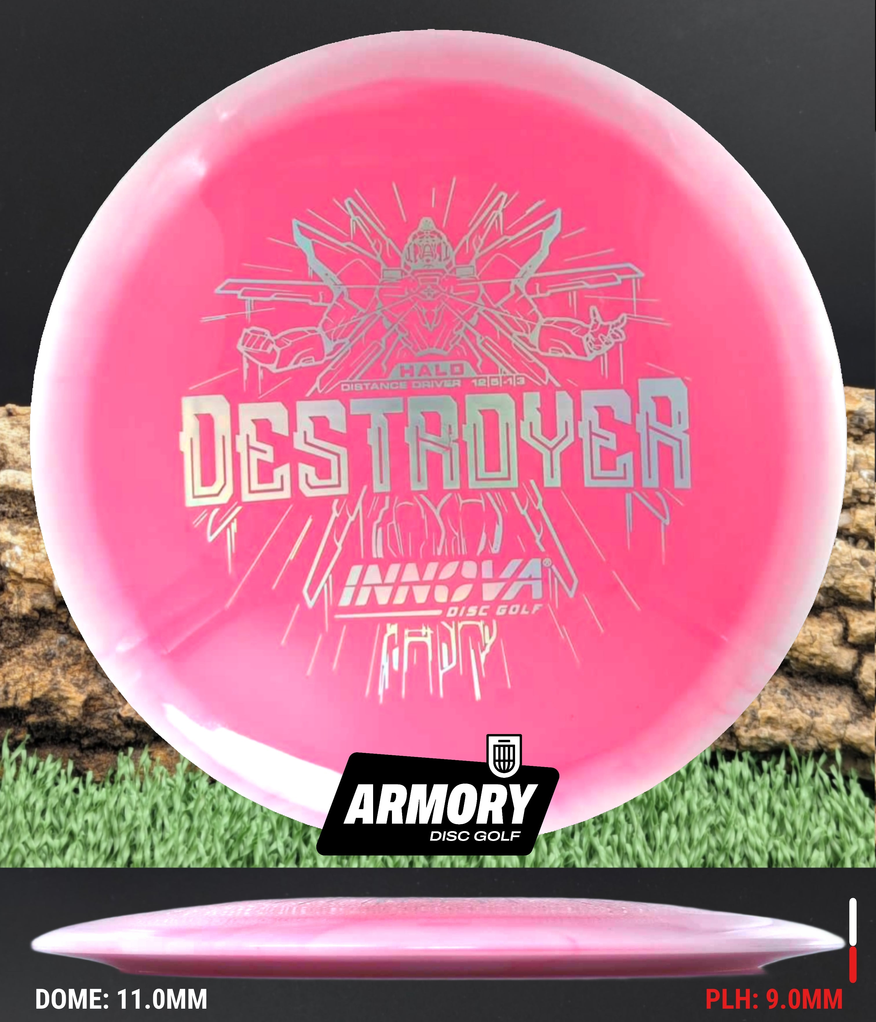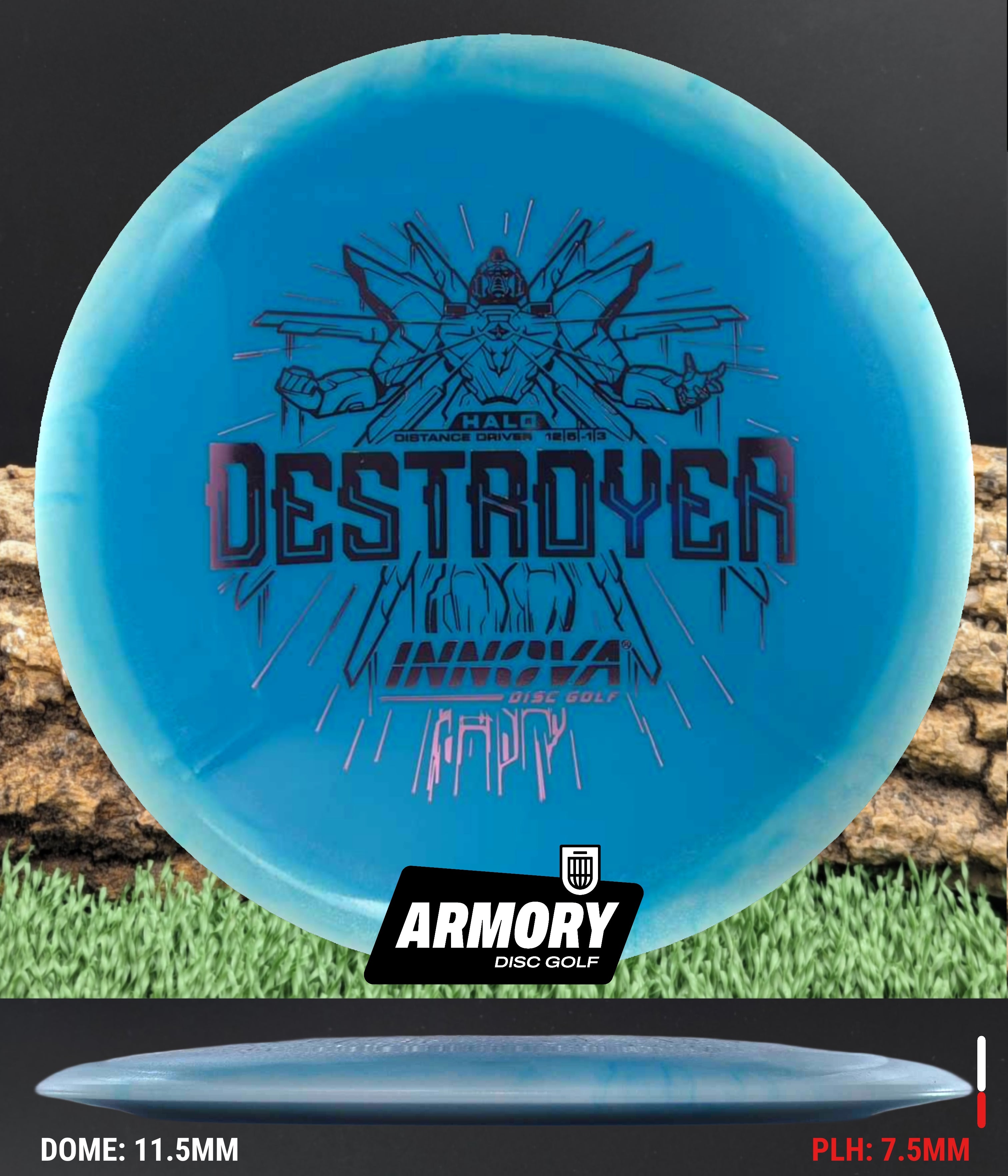 The Halo Star blend provides the durability and grip of Innova’s premium Star plastic with a stiffer, more stable feel that can handle even more torque. Whether you’re looking for your next max-distance bomber or a head-turning addition to your bag, the Halo Destroyer is ready to deliver.