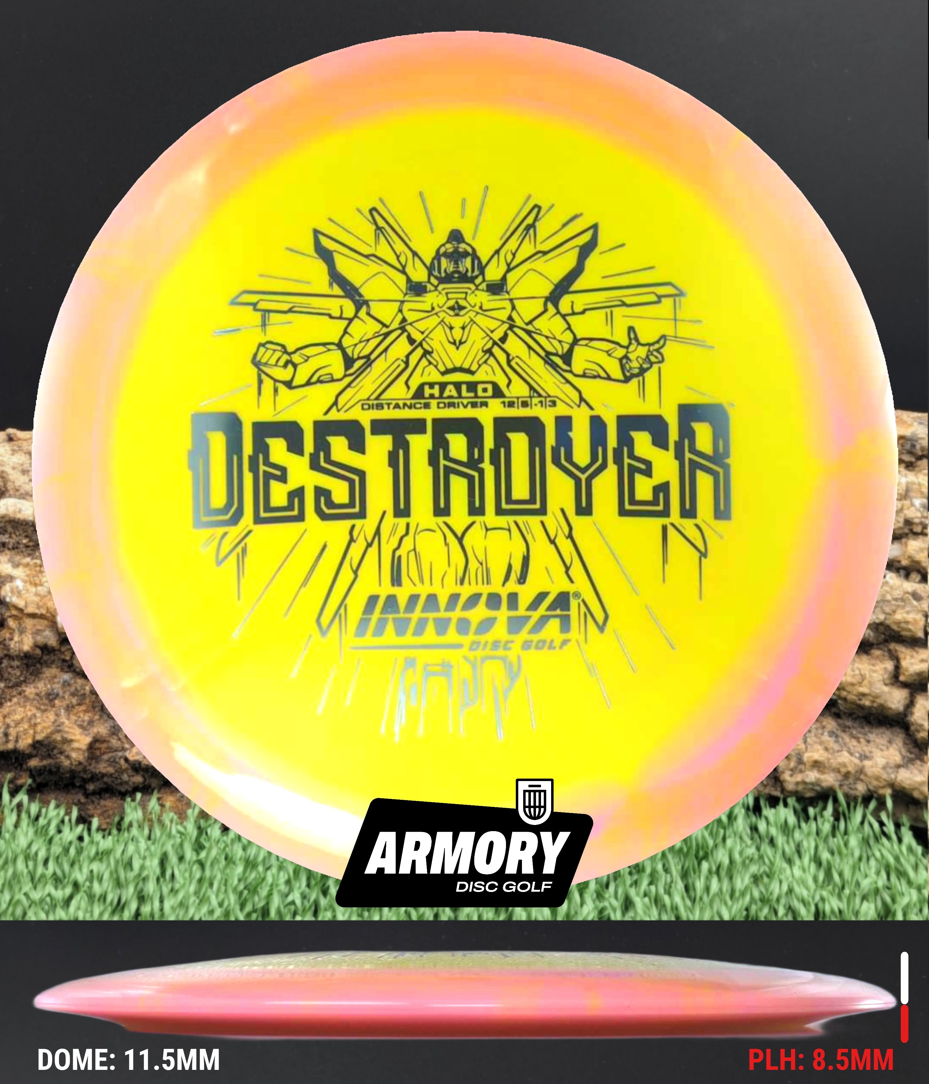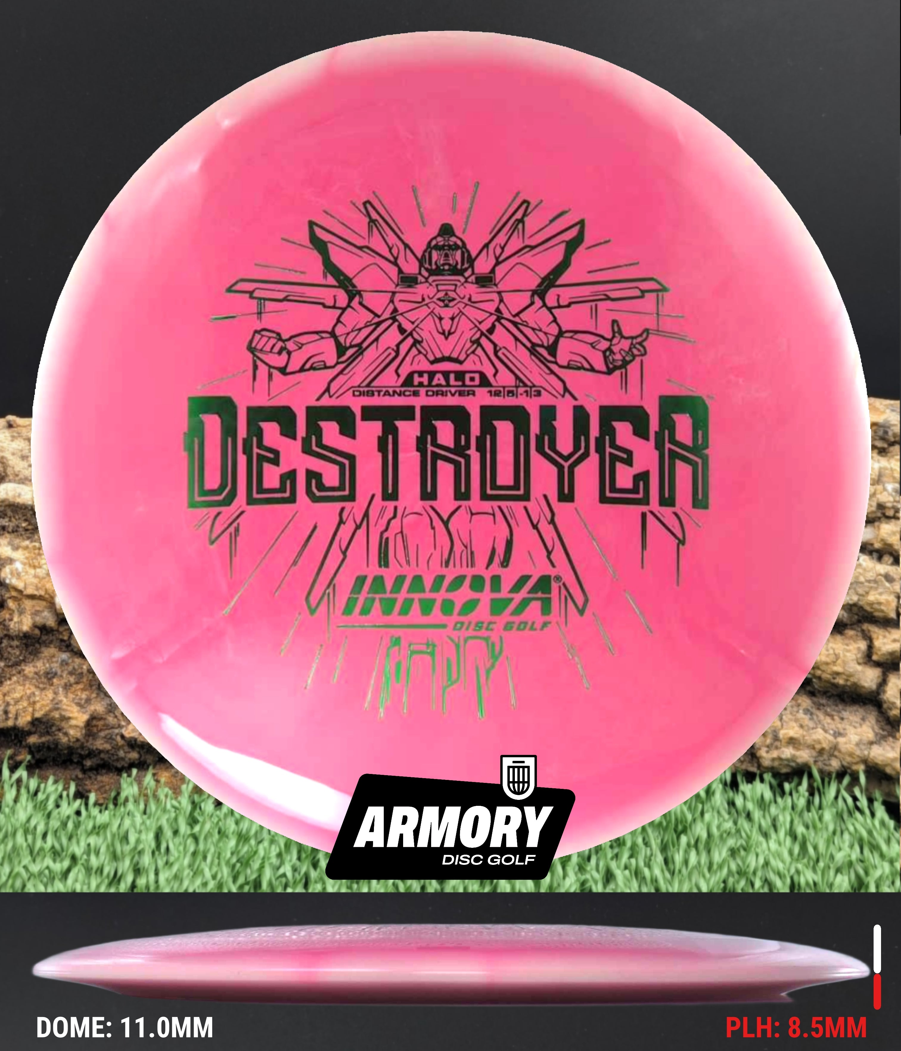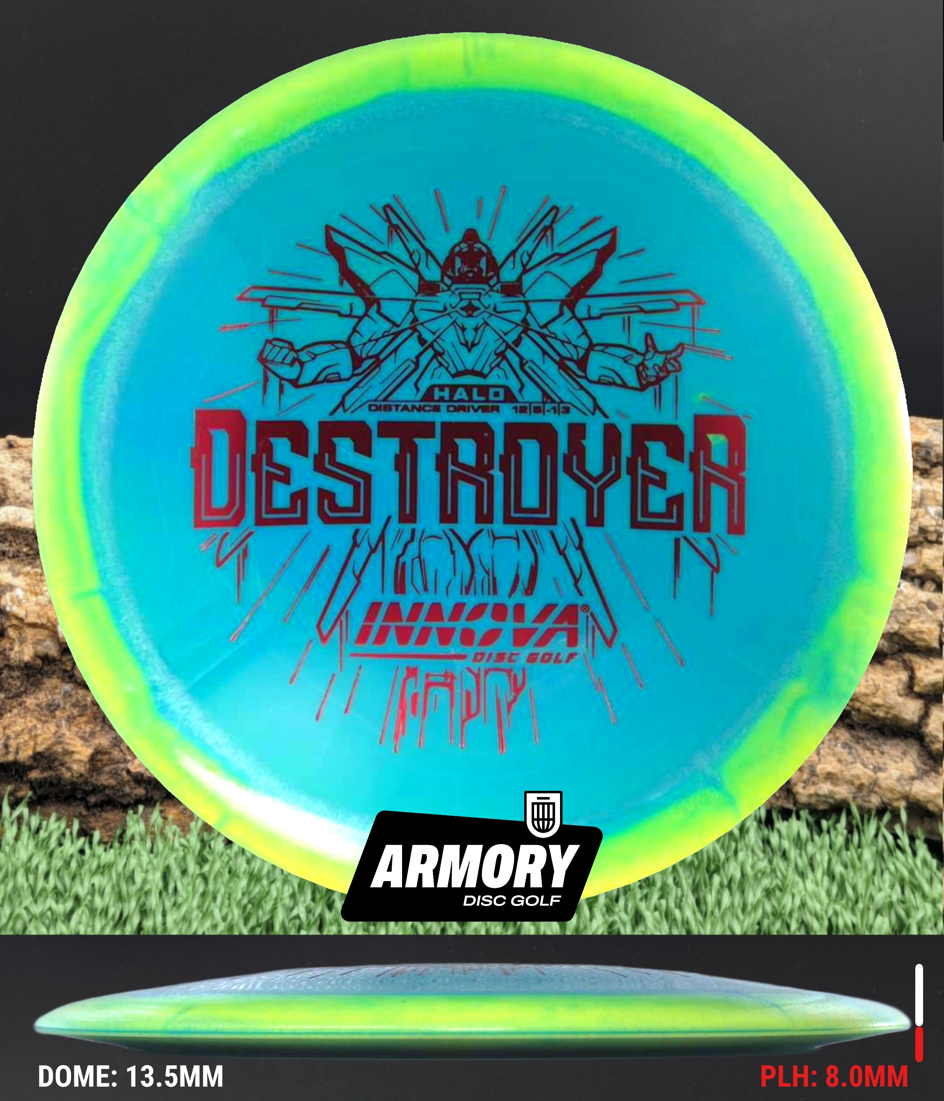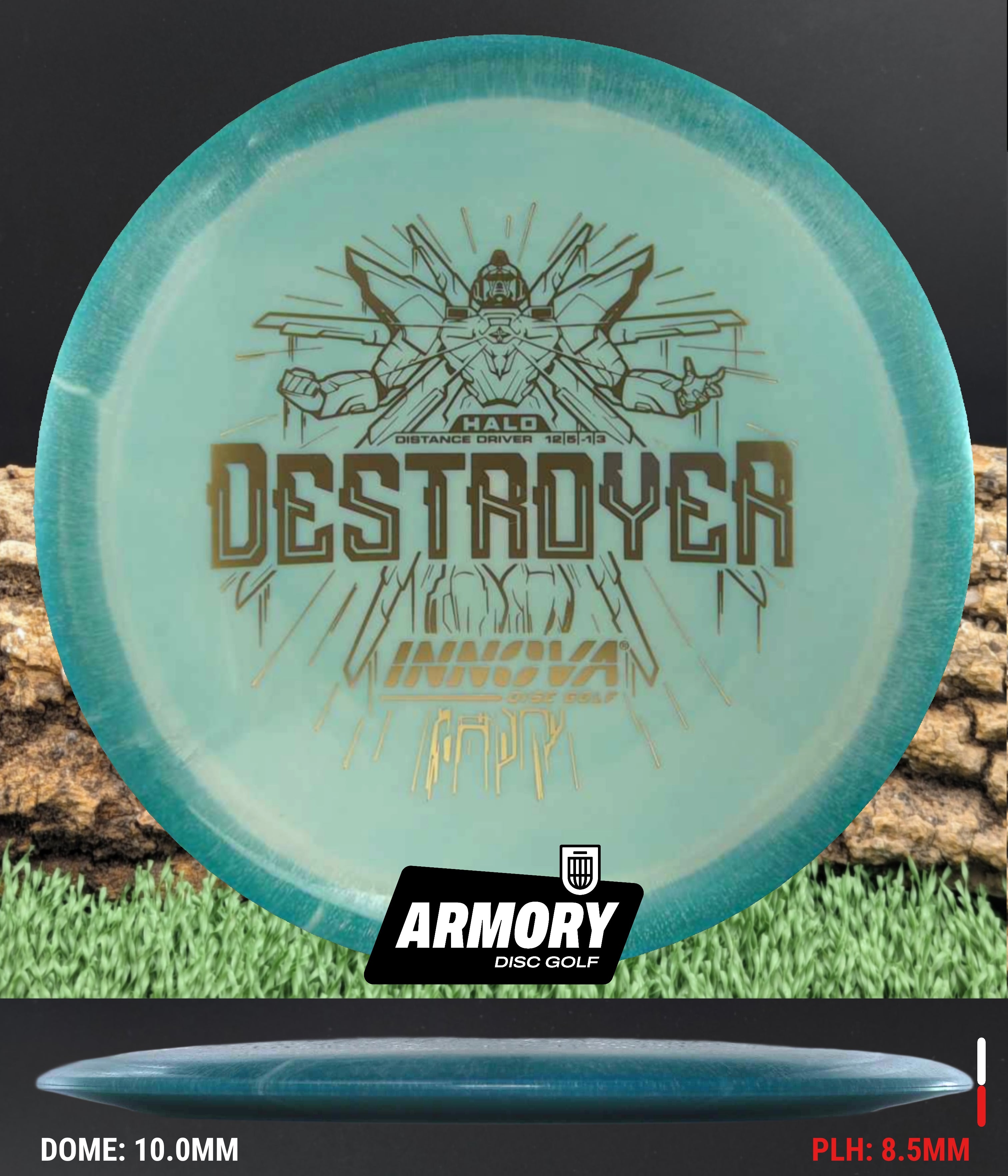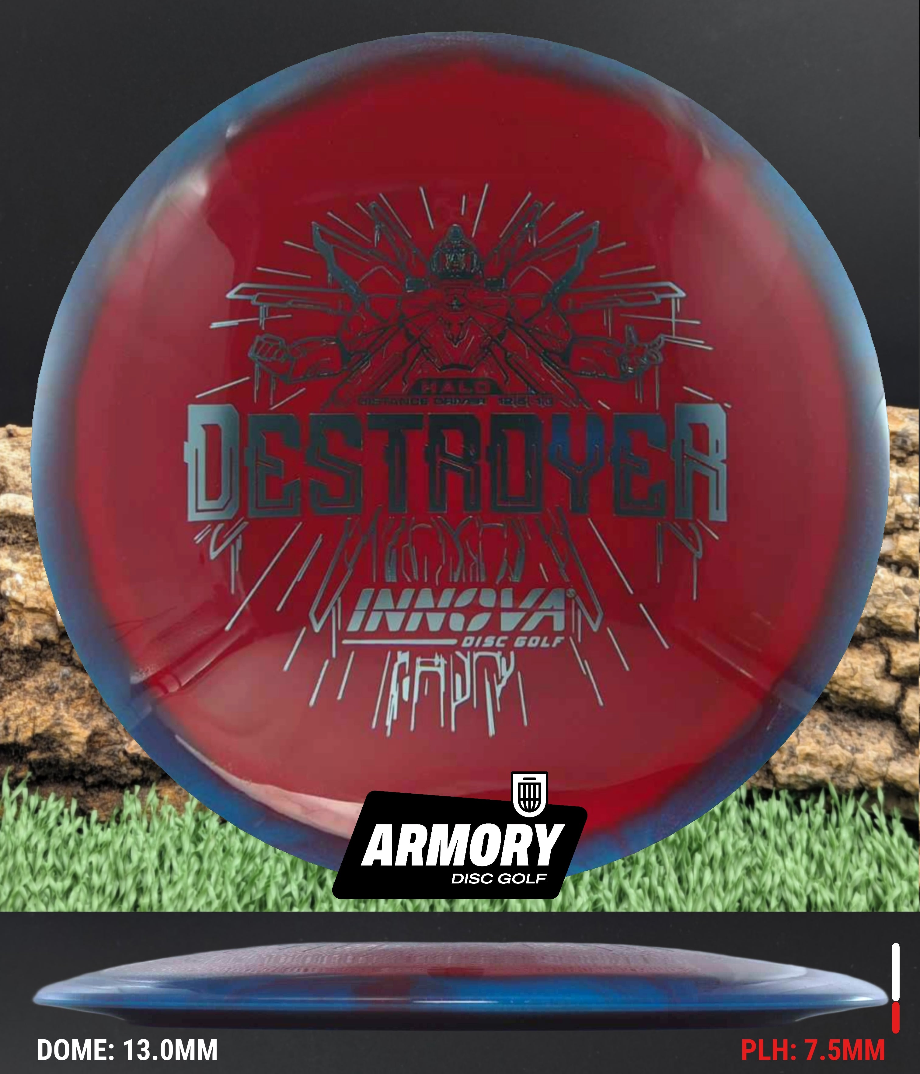 The Halo Star blend provides the durability and grip of Innova’s premium Star plastic with a stiffer, more stable feel that can handle even more torque. Whether you’re looking for your next max-distance bomber or a head-turning addition to your bag, the Halo Destroyer is ready to deliver.