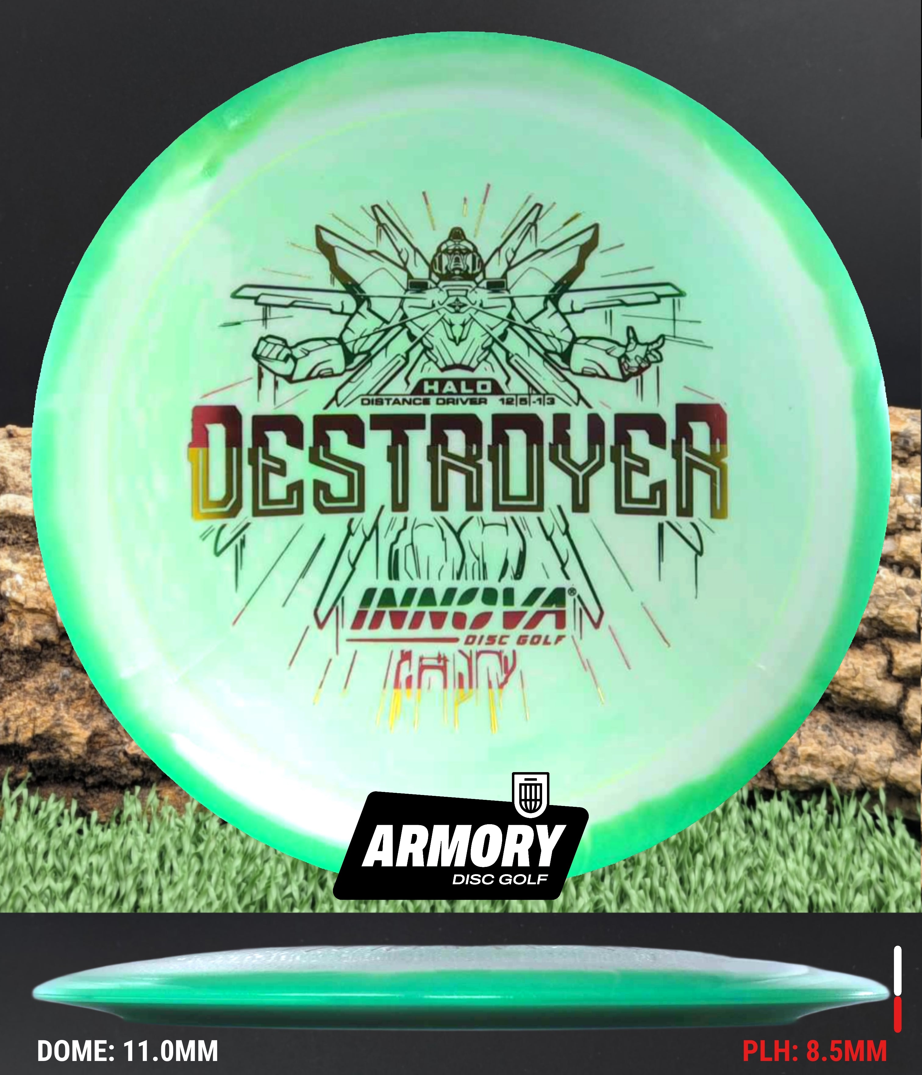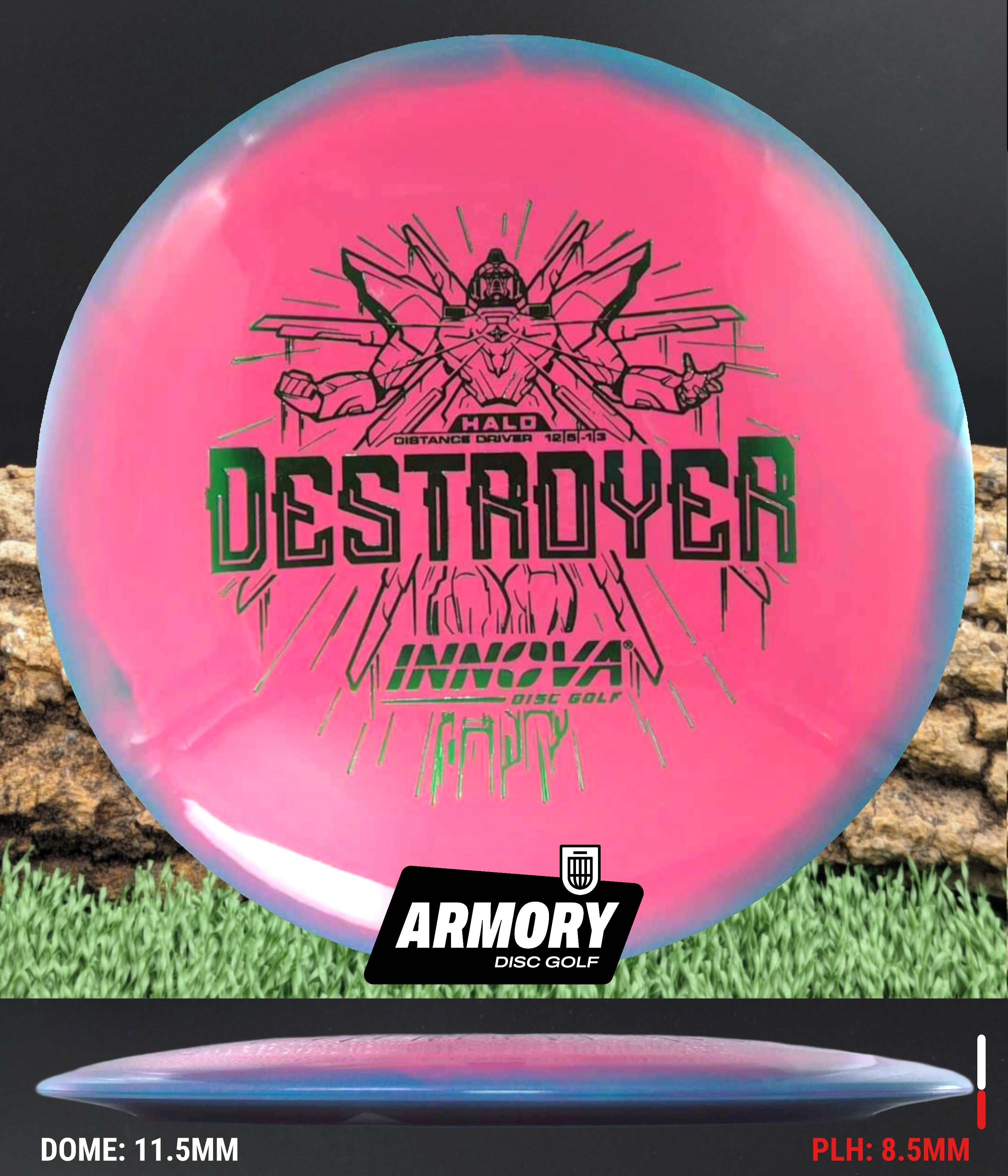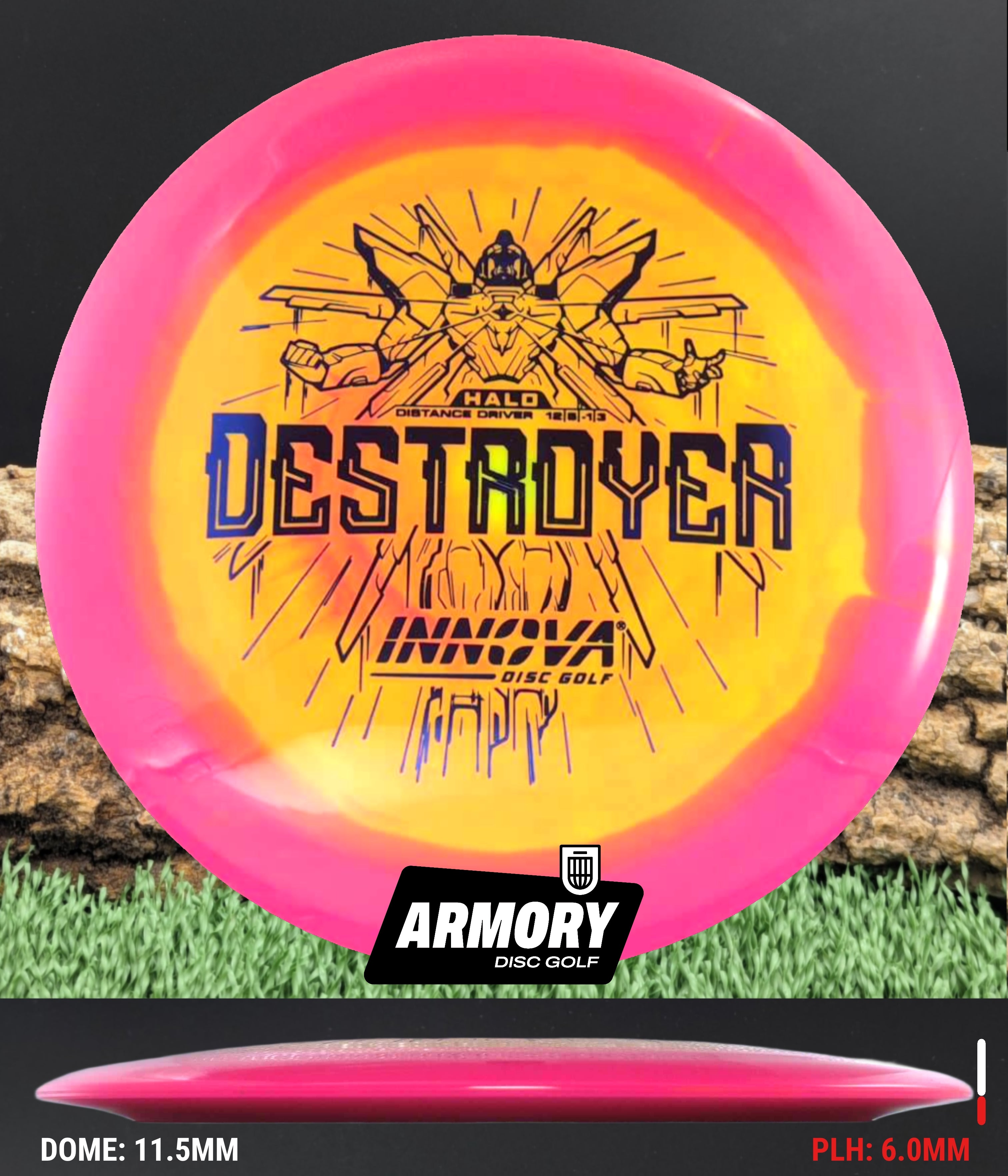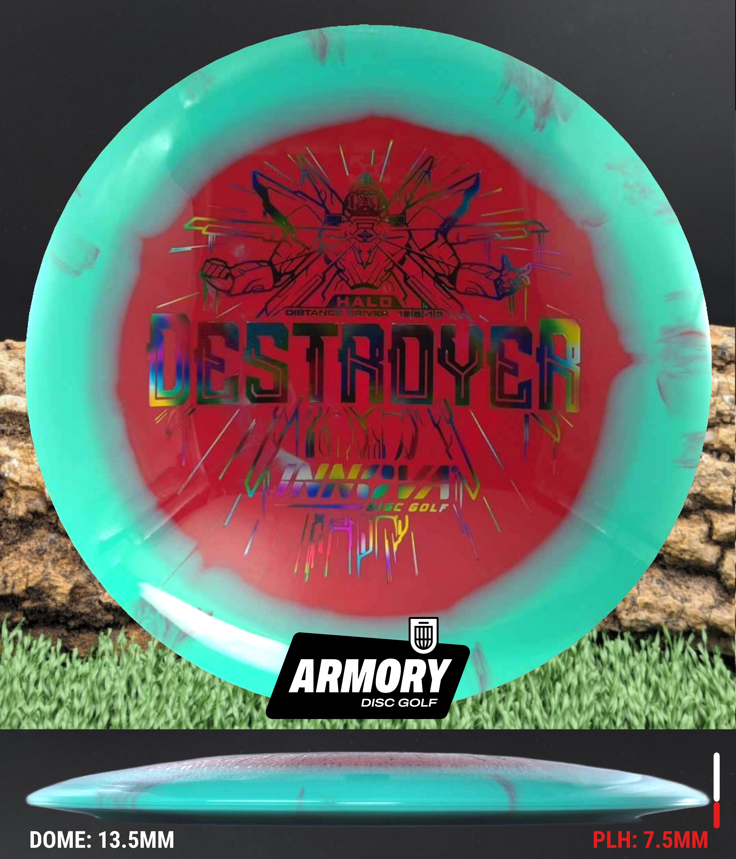 The Halo Star blend provides the durability and grip of Innova’s premium Star plastic with a stiffer, more stable feel that can handle even more torque. Whether you’re looking for your next max-distance bomber or a head-turning addition to your bag, the Halo Destroyer is ready to deliver.