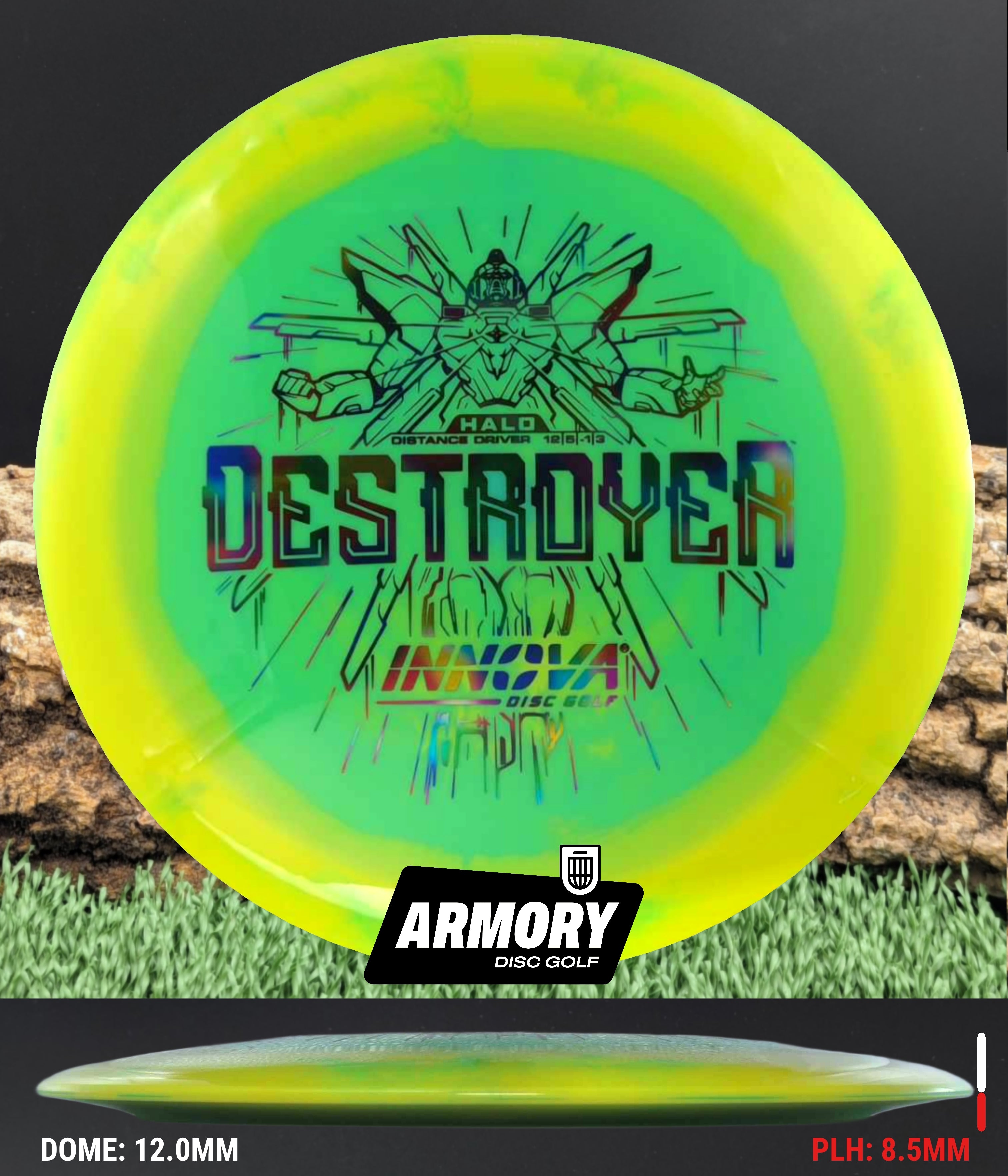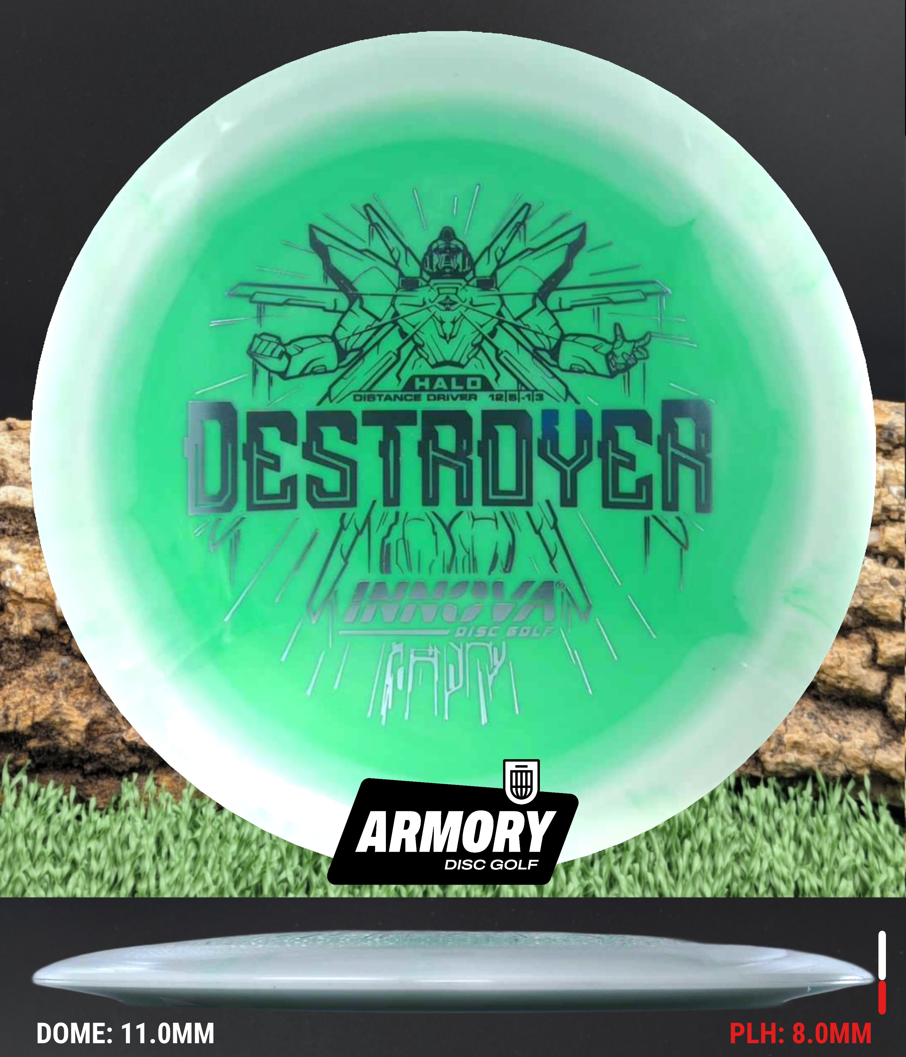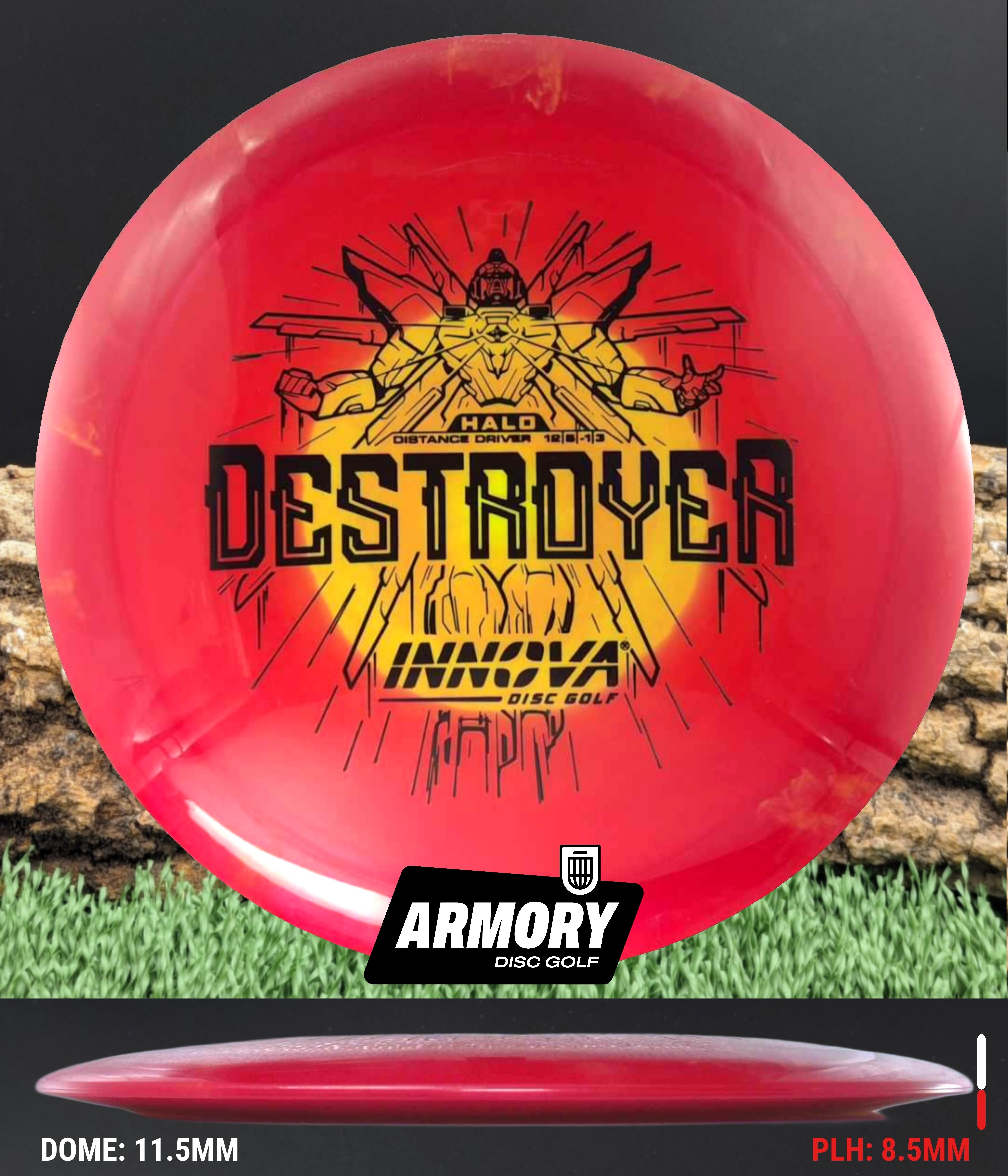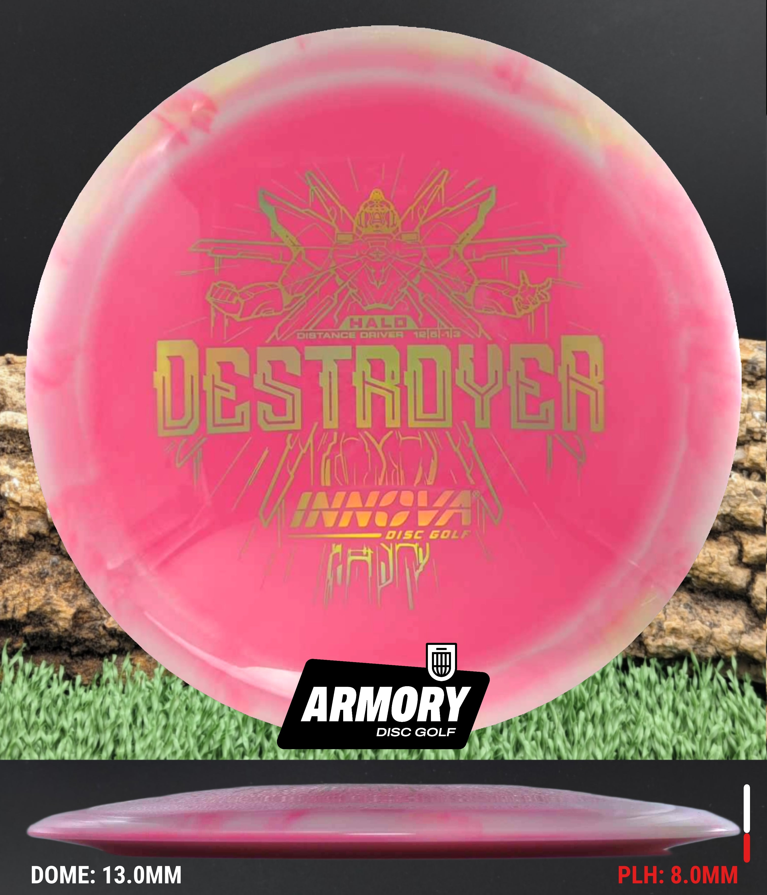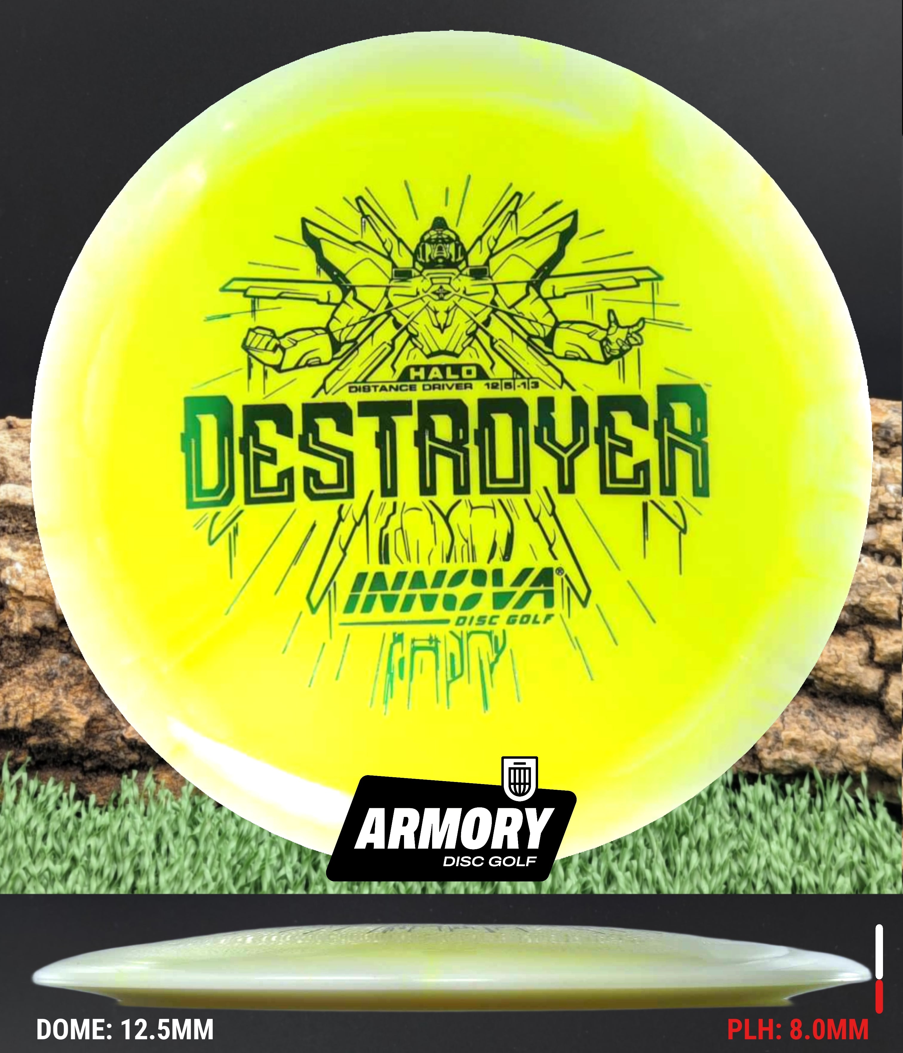 The Halo Star blend provides the durability and grip of Innova’s premium Star plastic with a stiffer, more stable feel that can handle even more torque. Whether you’re looking for your next max-distance bomber or a head-turning addition to your bag, the Halo Destroyer is ready to deliver.
