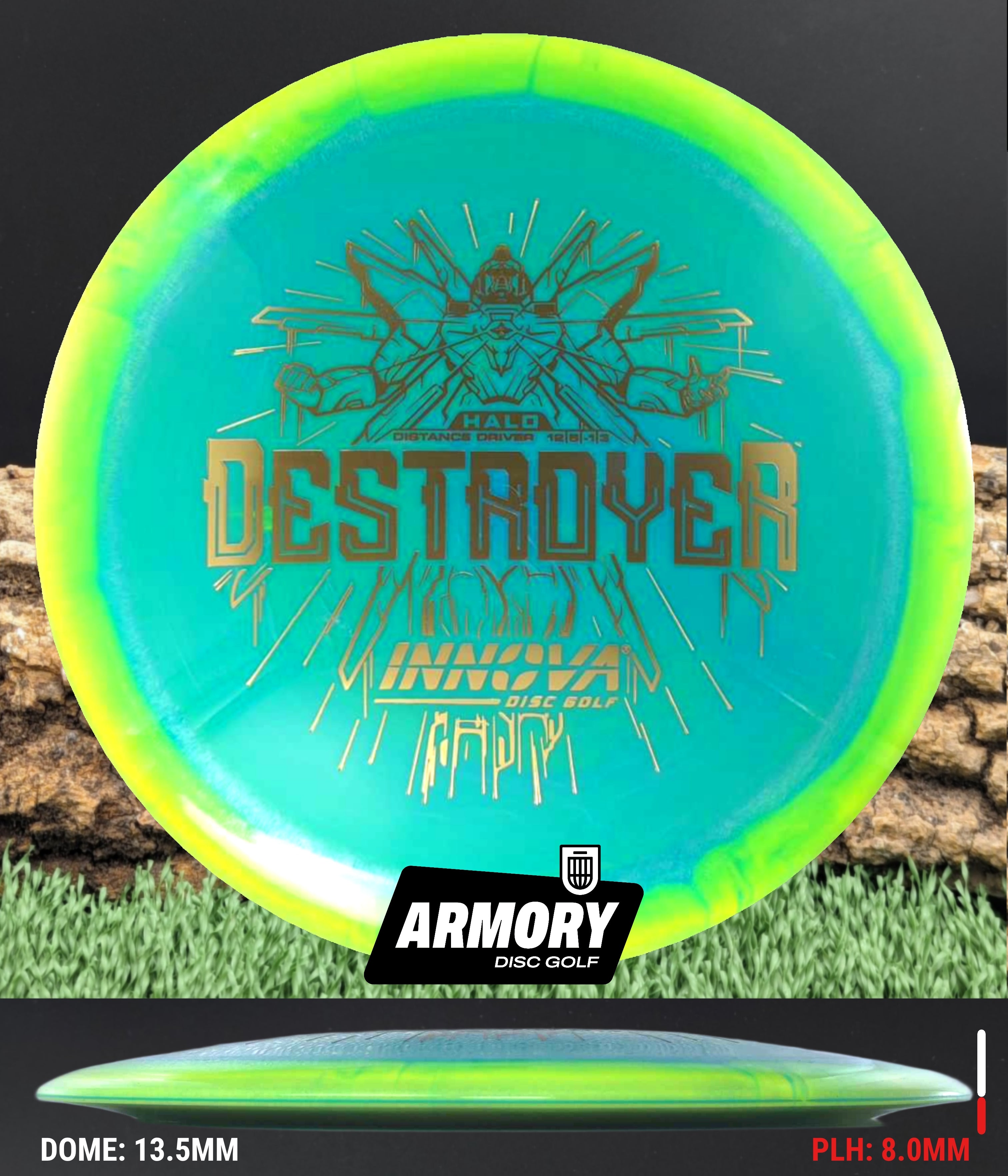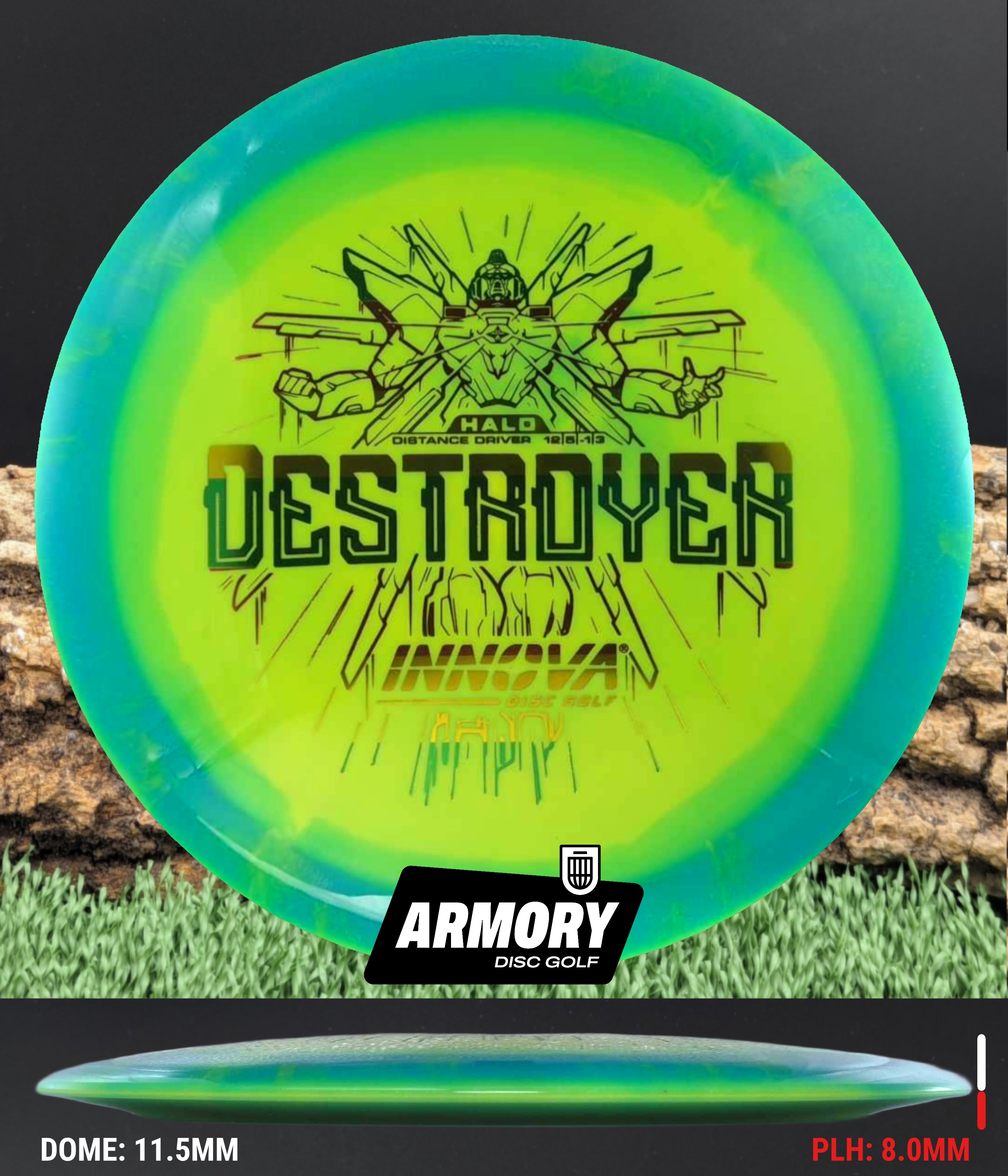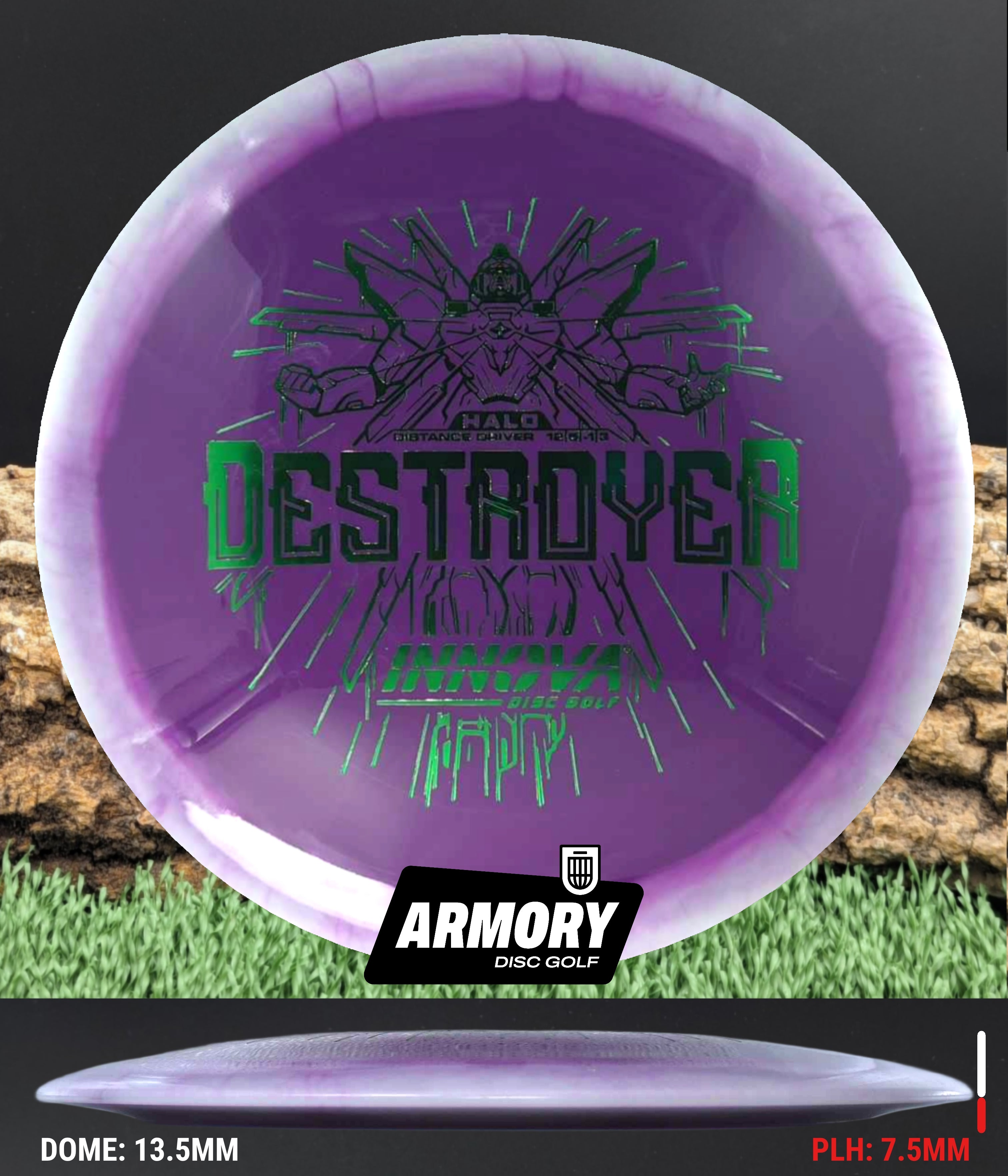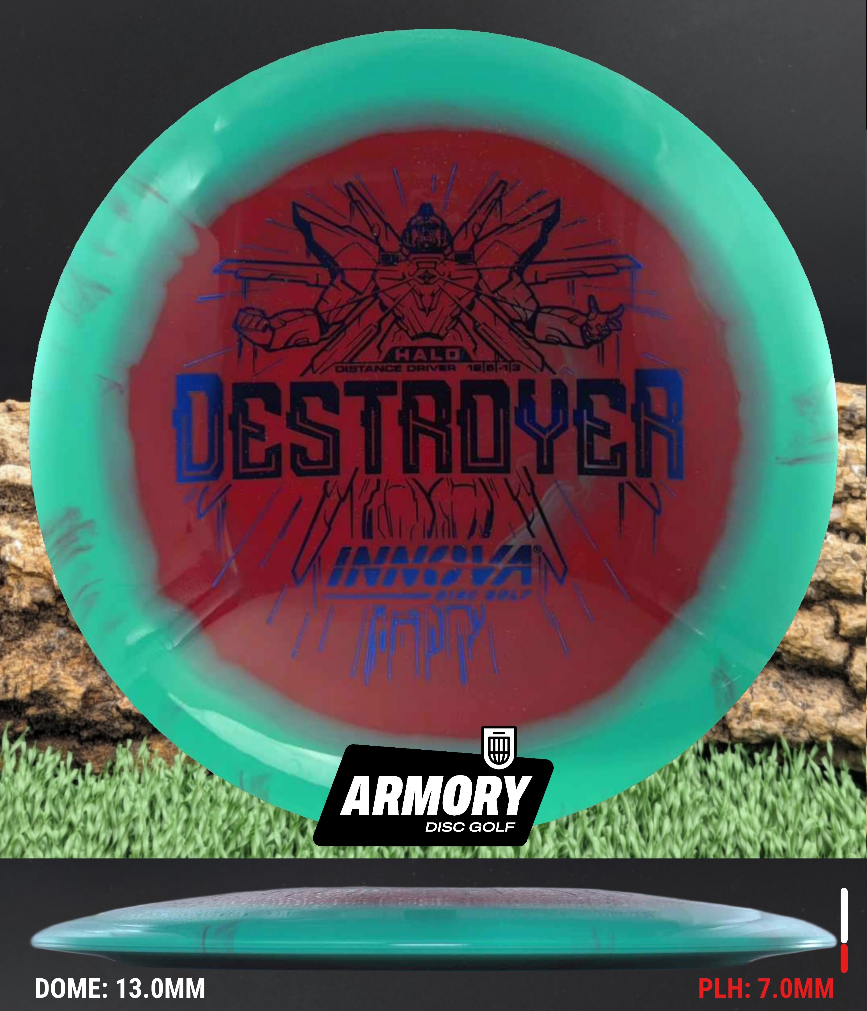 The Halo Star blend provides the durability and grip of Innova’s premium Star plastic with a stiffer, more stable feel that can handle even more torque. Whether you’re looking for your next max-distance bomber or a head-turning addition to your bag, the Halo Destroyer is ready to deliver.