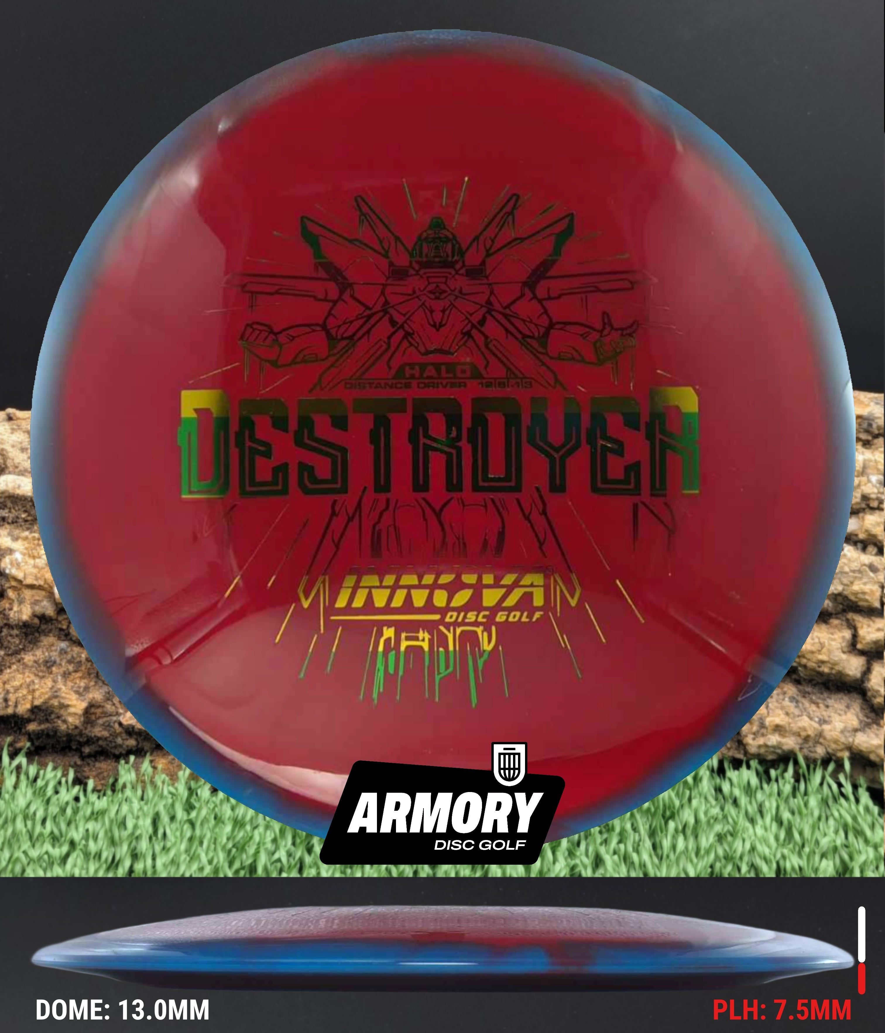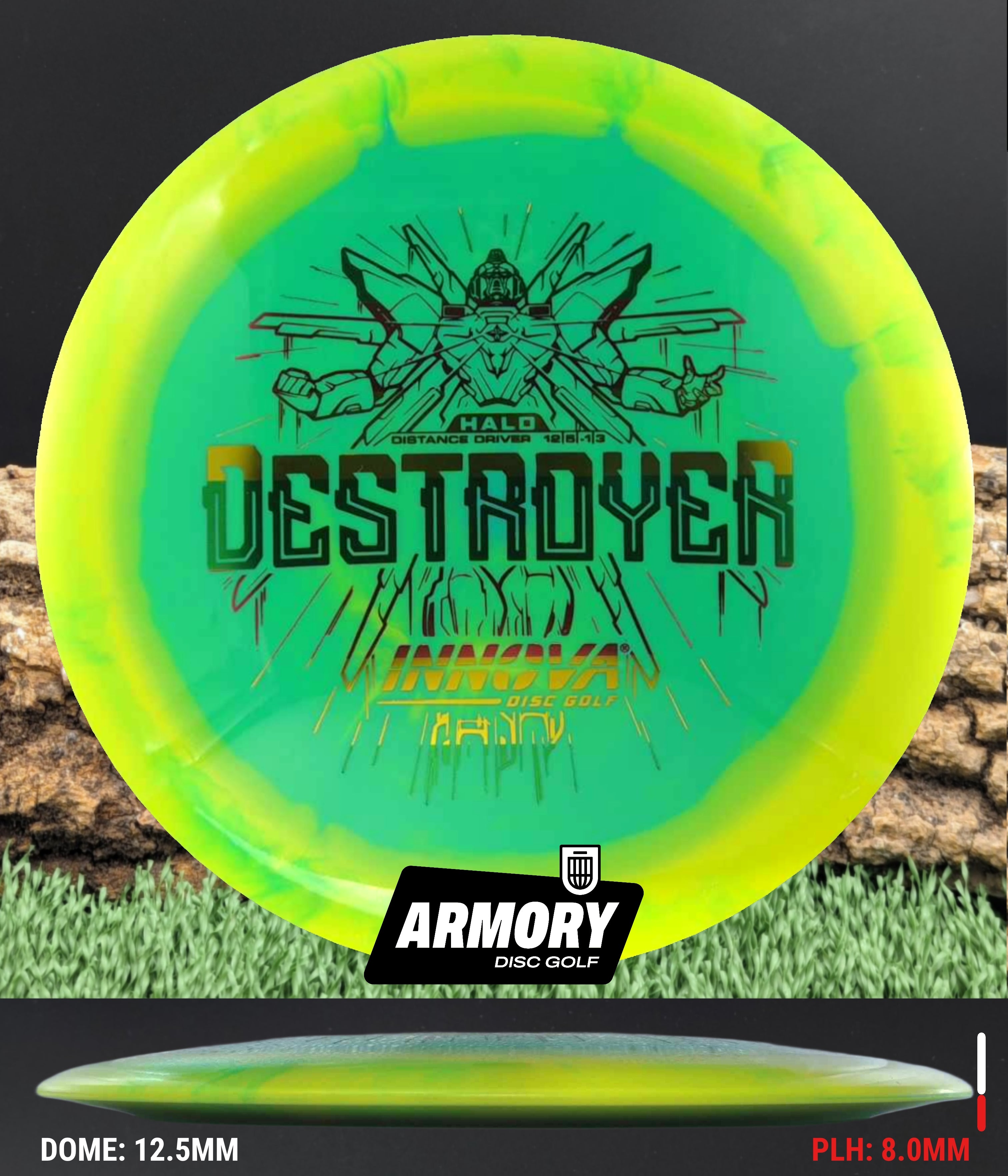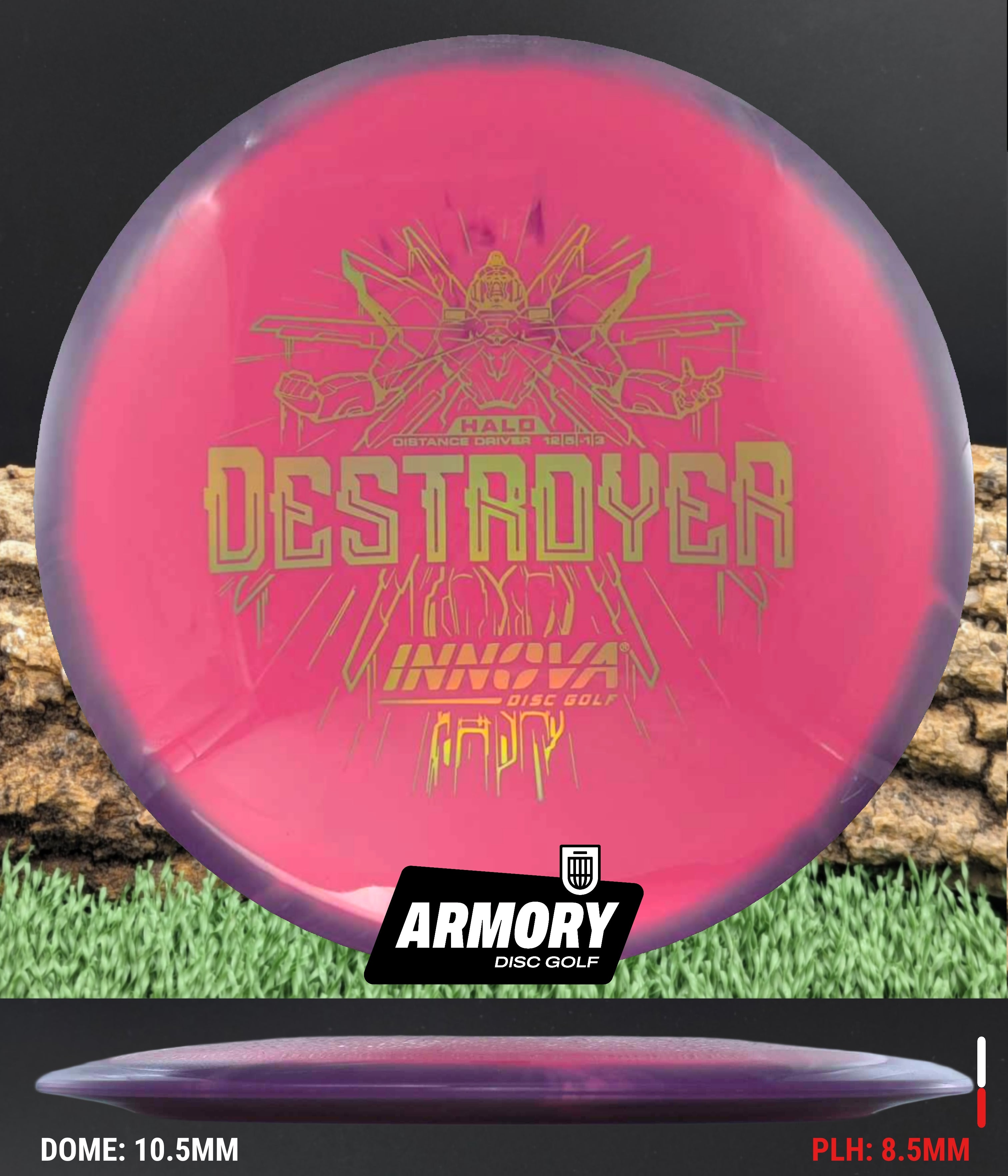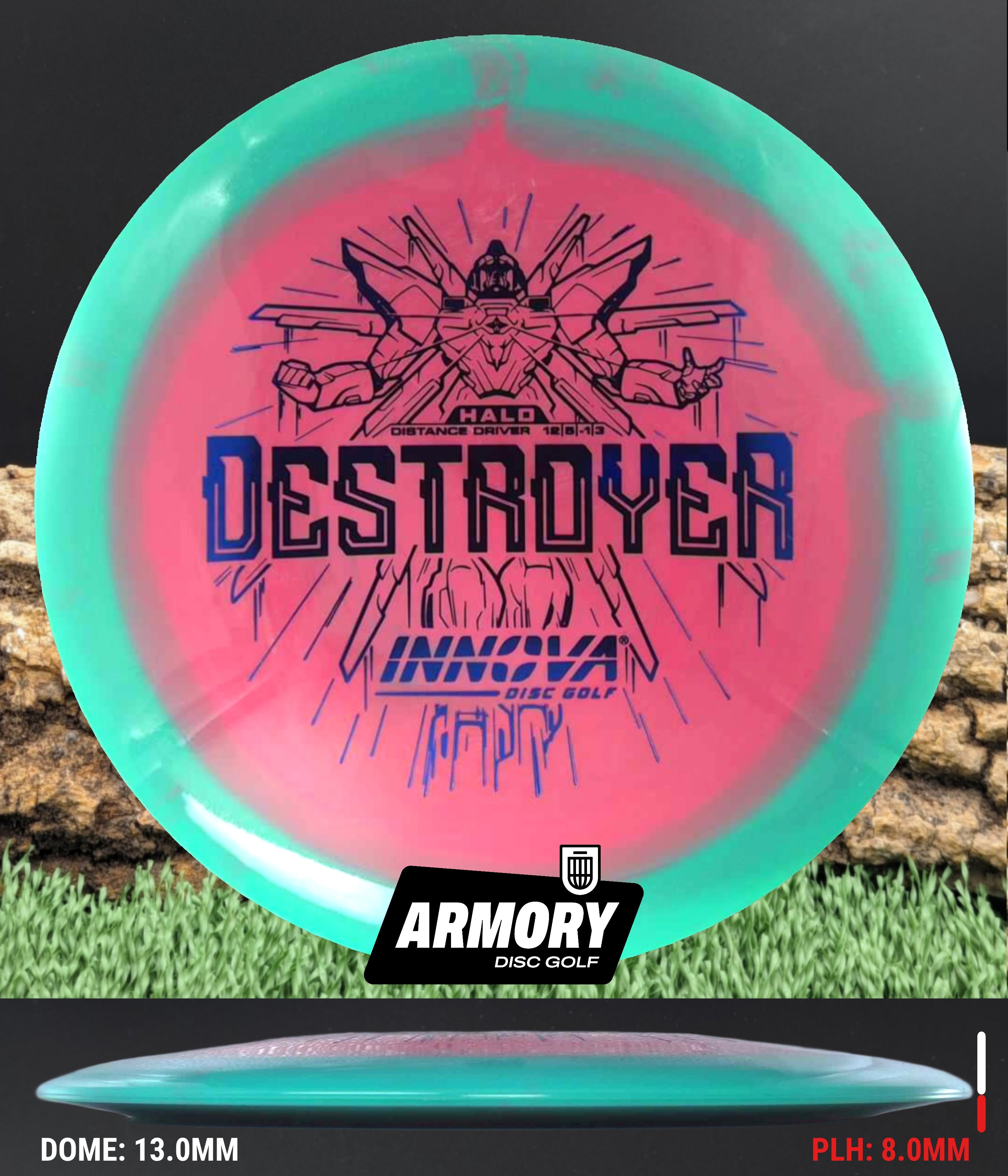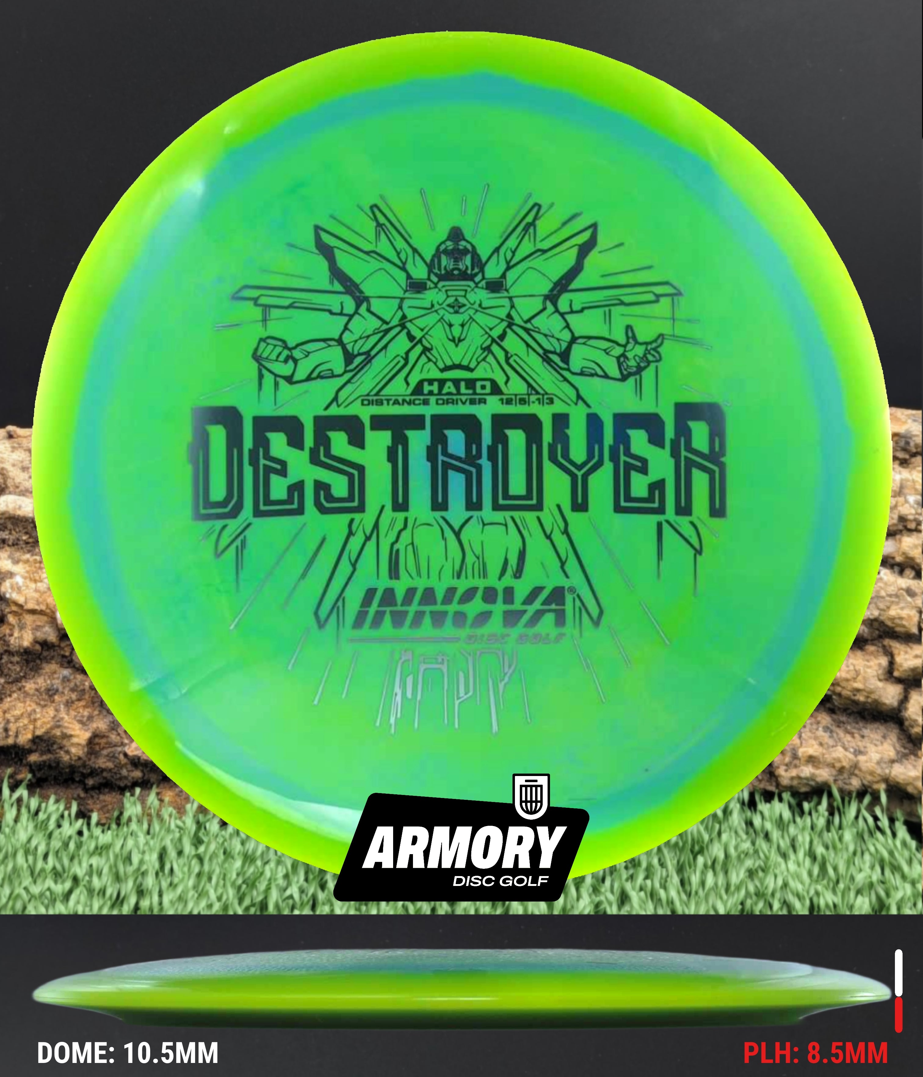 The Halo Star blend provides the durability and grip of Innova’s premium Star plastic with a stiffer, more stable feel that can handle even more torque. Whether you’re looking for your next max-distance bomber or a head-turning addition to your bag, the Halo Destroyer is ready to deliver.
