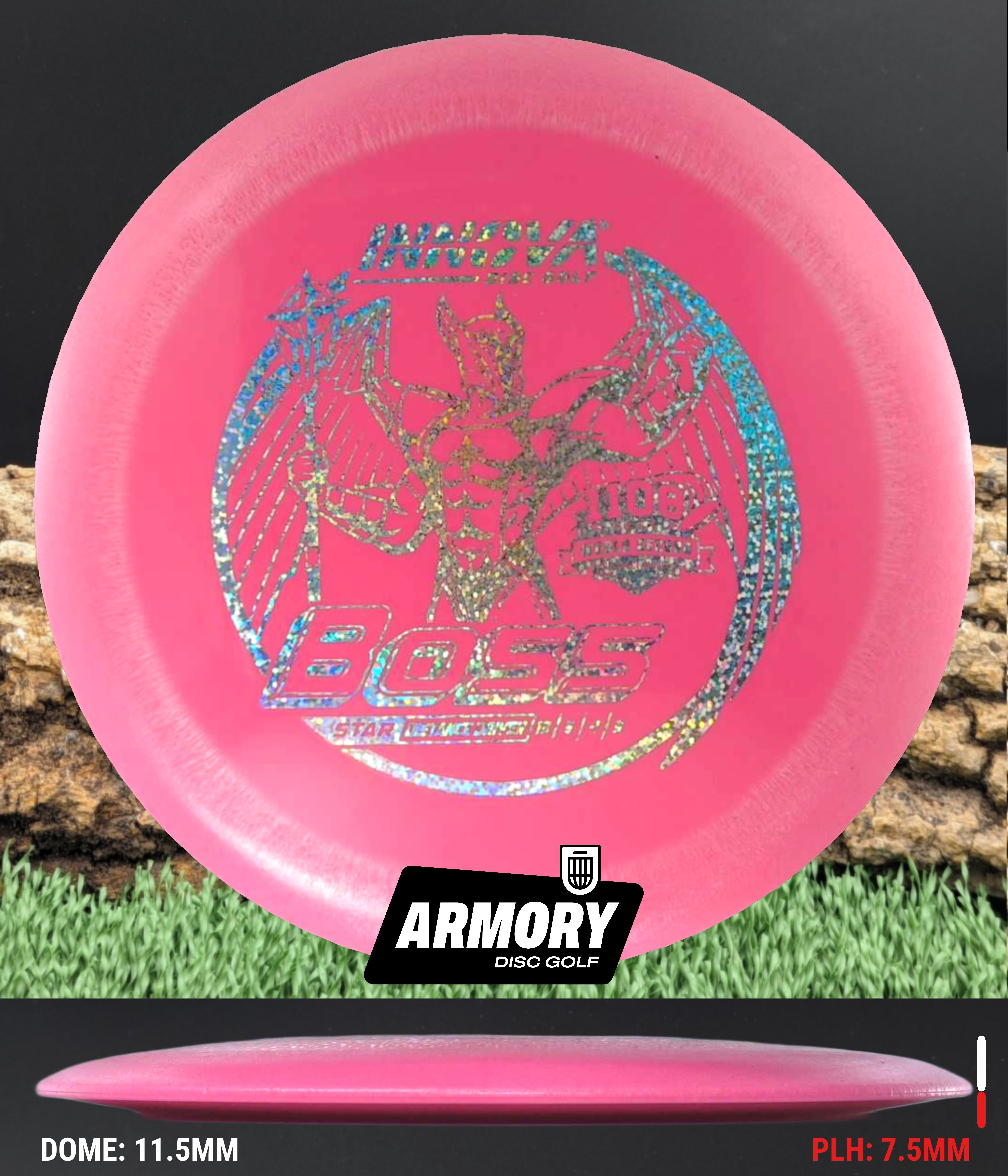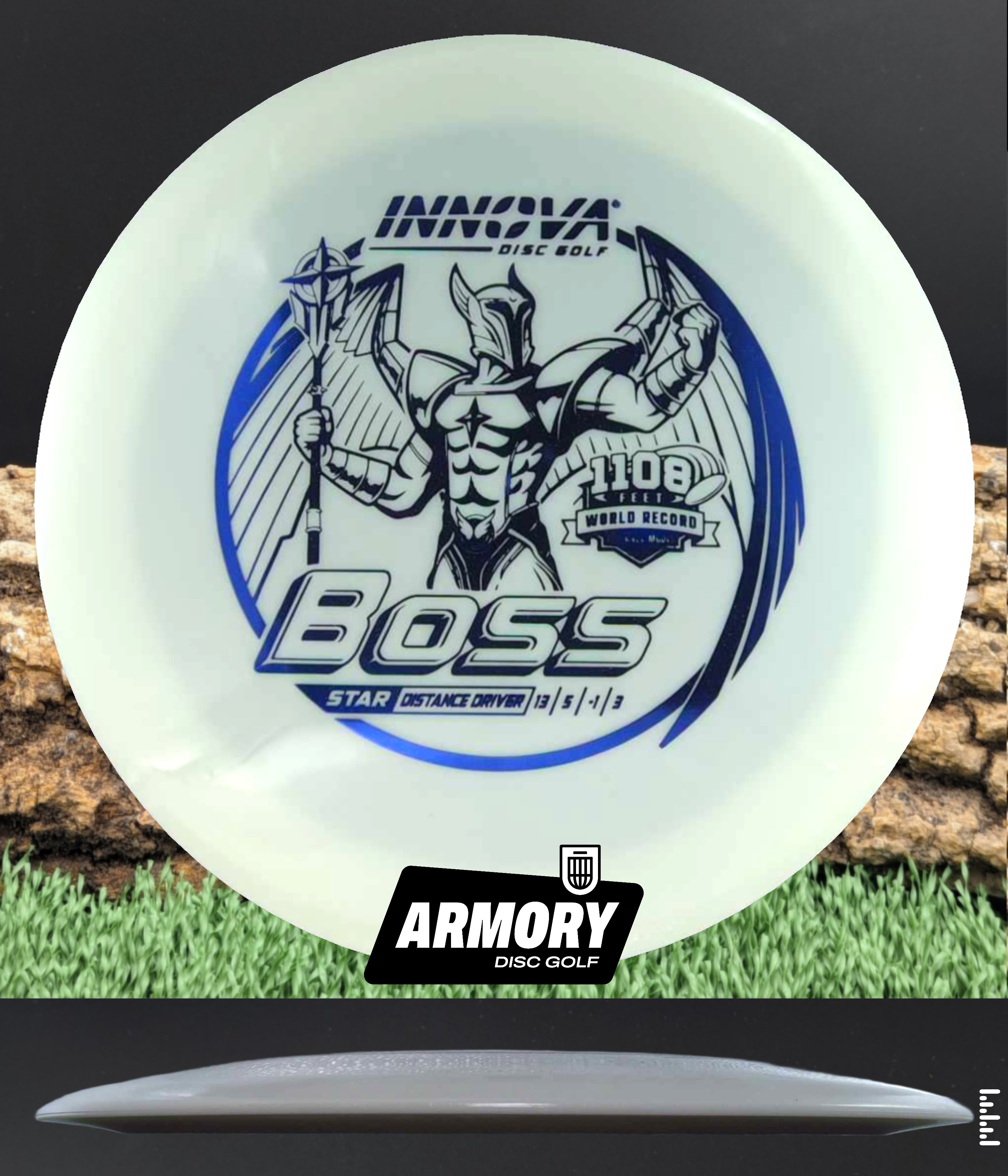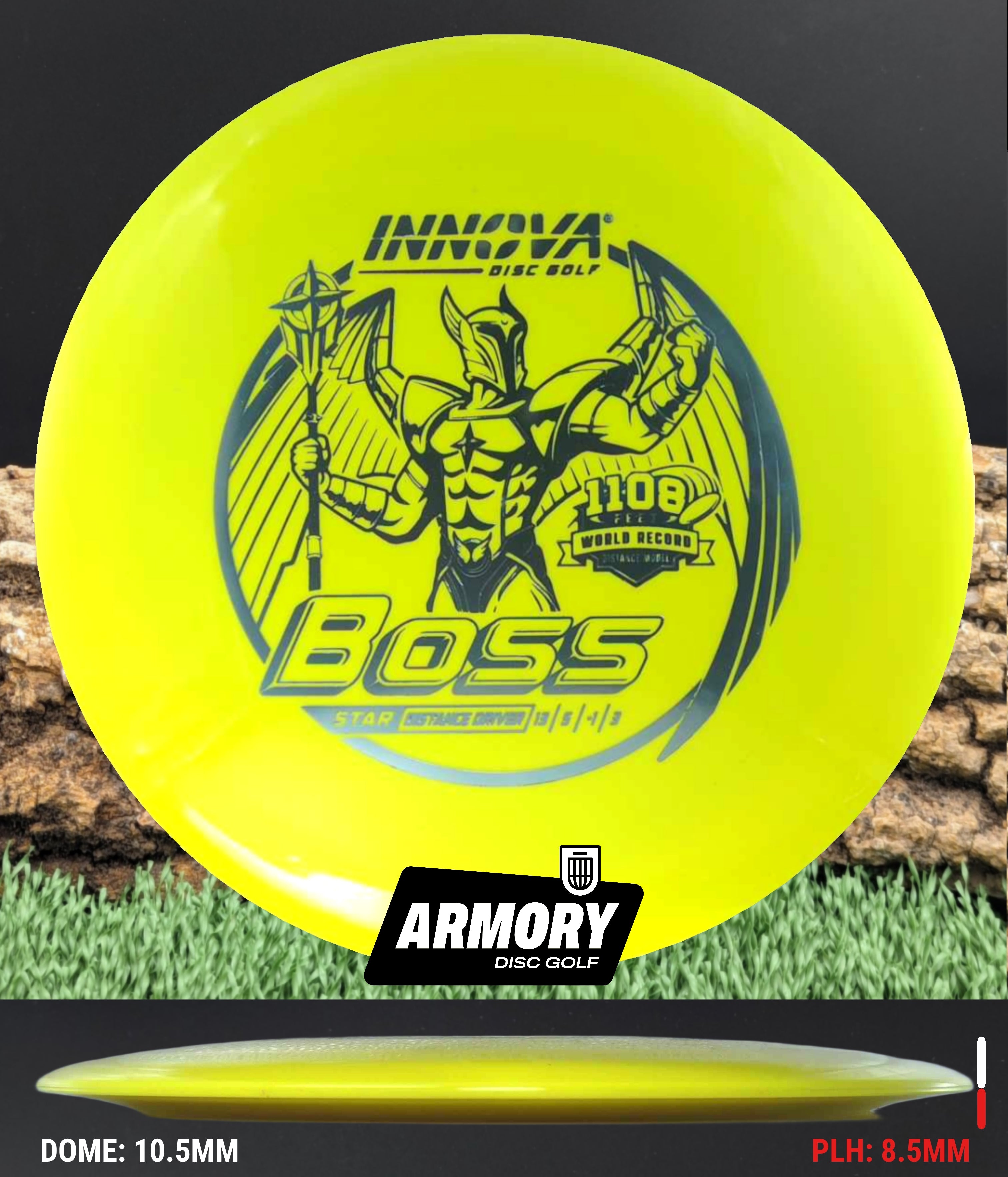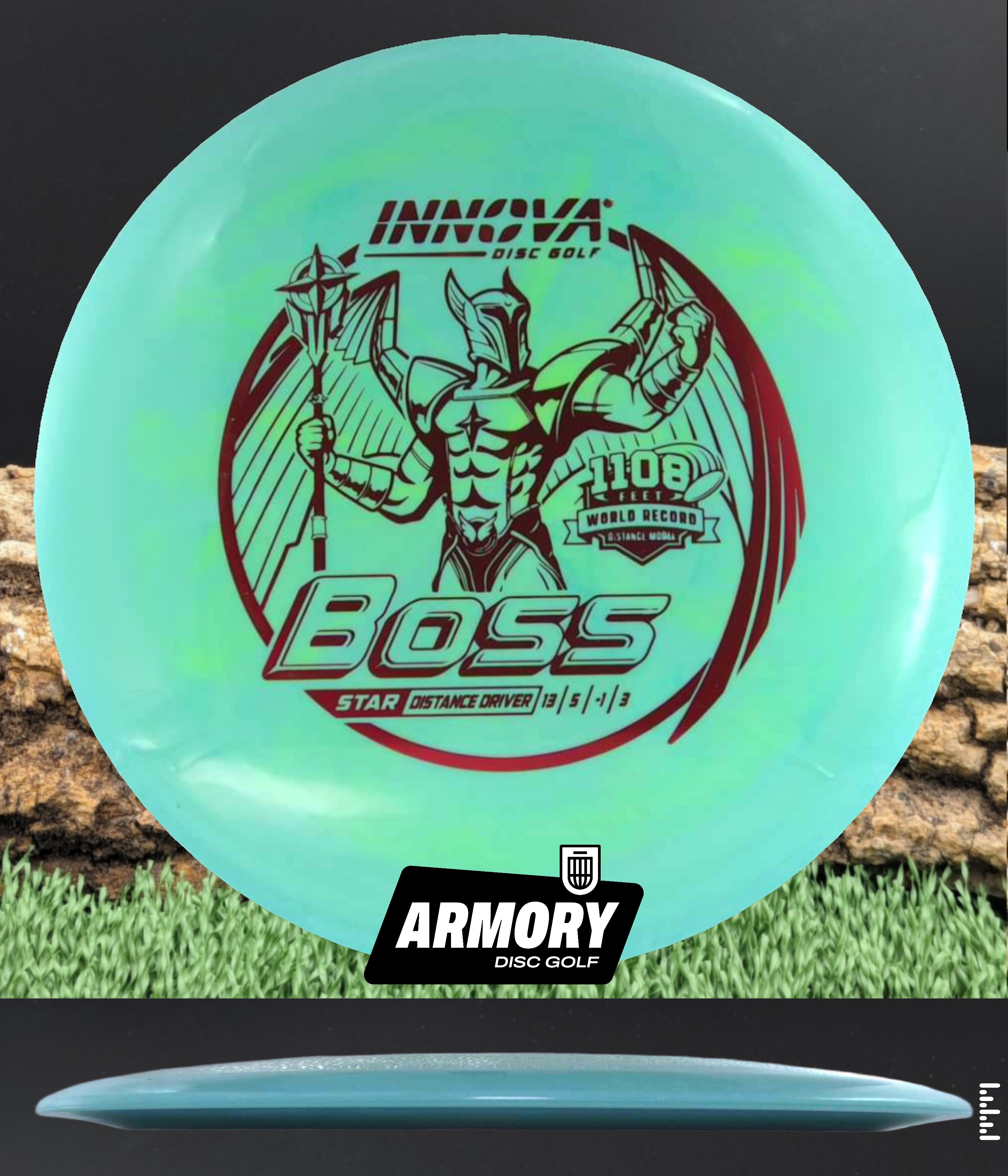 The Innova Boss is a fast stable driver that can handle full power throws and moderate headwinds, and advanced players and sidearm throwers will appreciate the dependable stability. The Boss has a slight high speed turn to help maximize distance with a predictable fade.