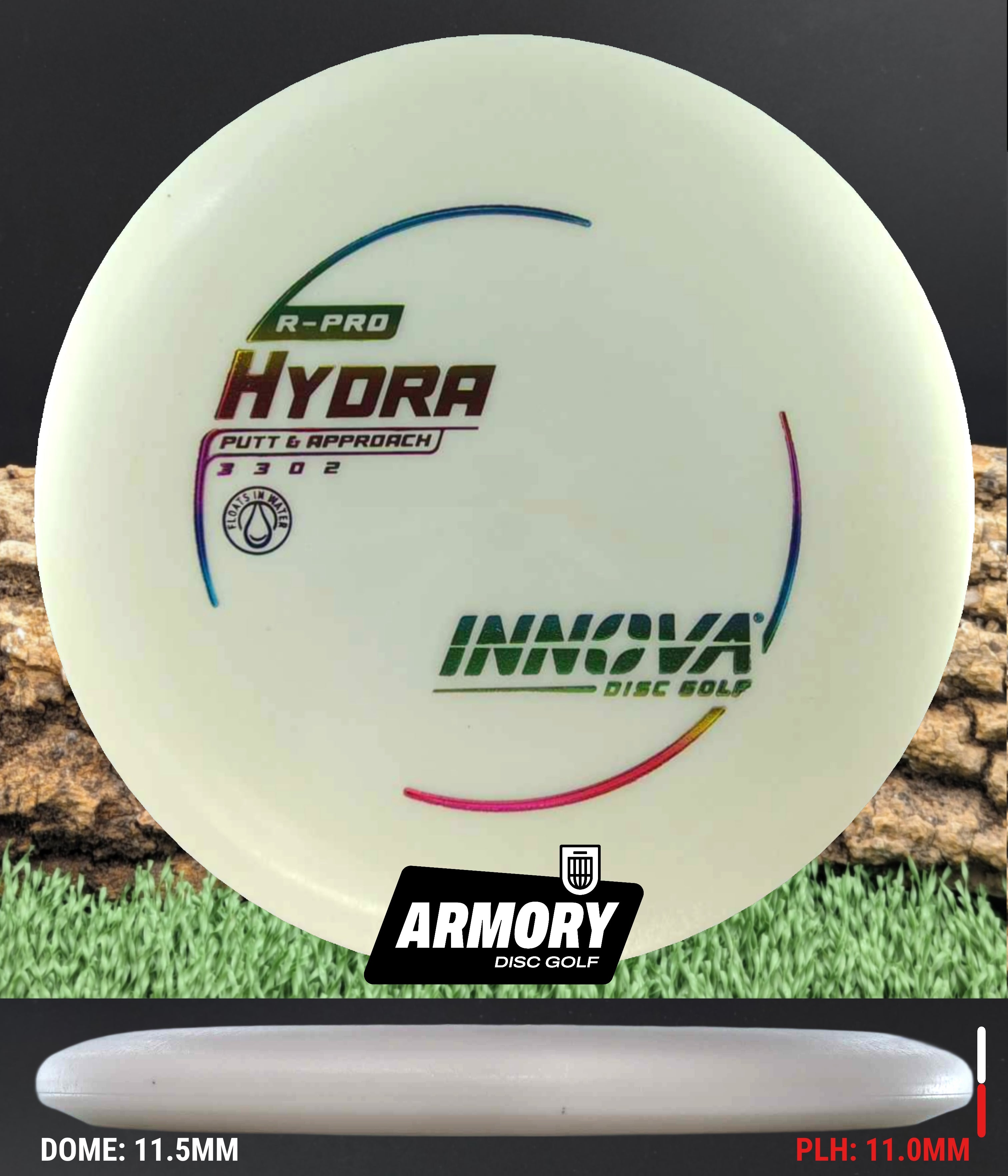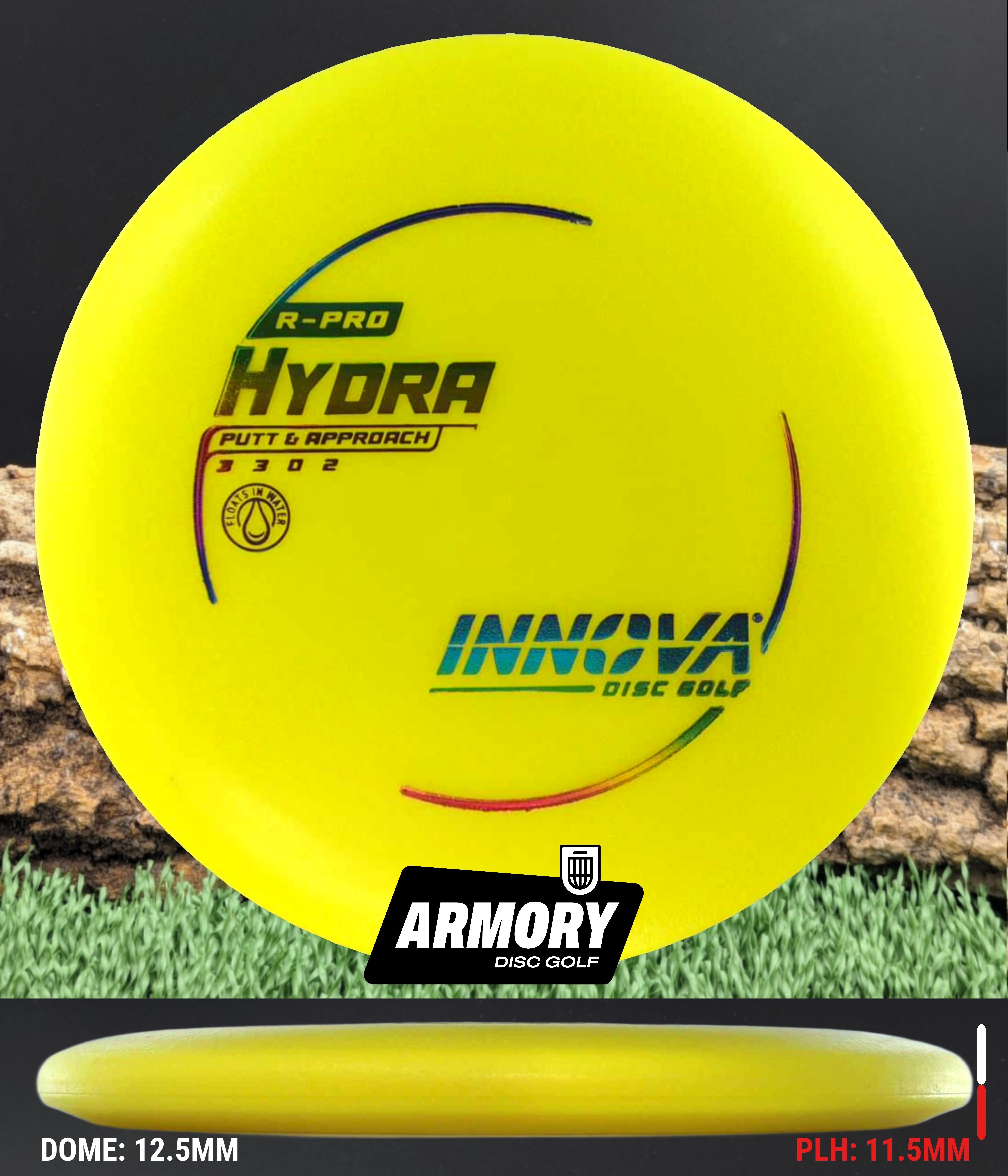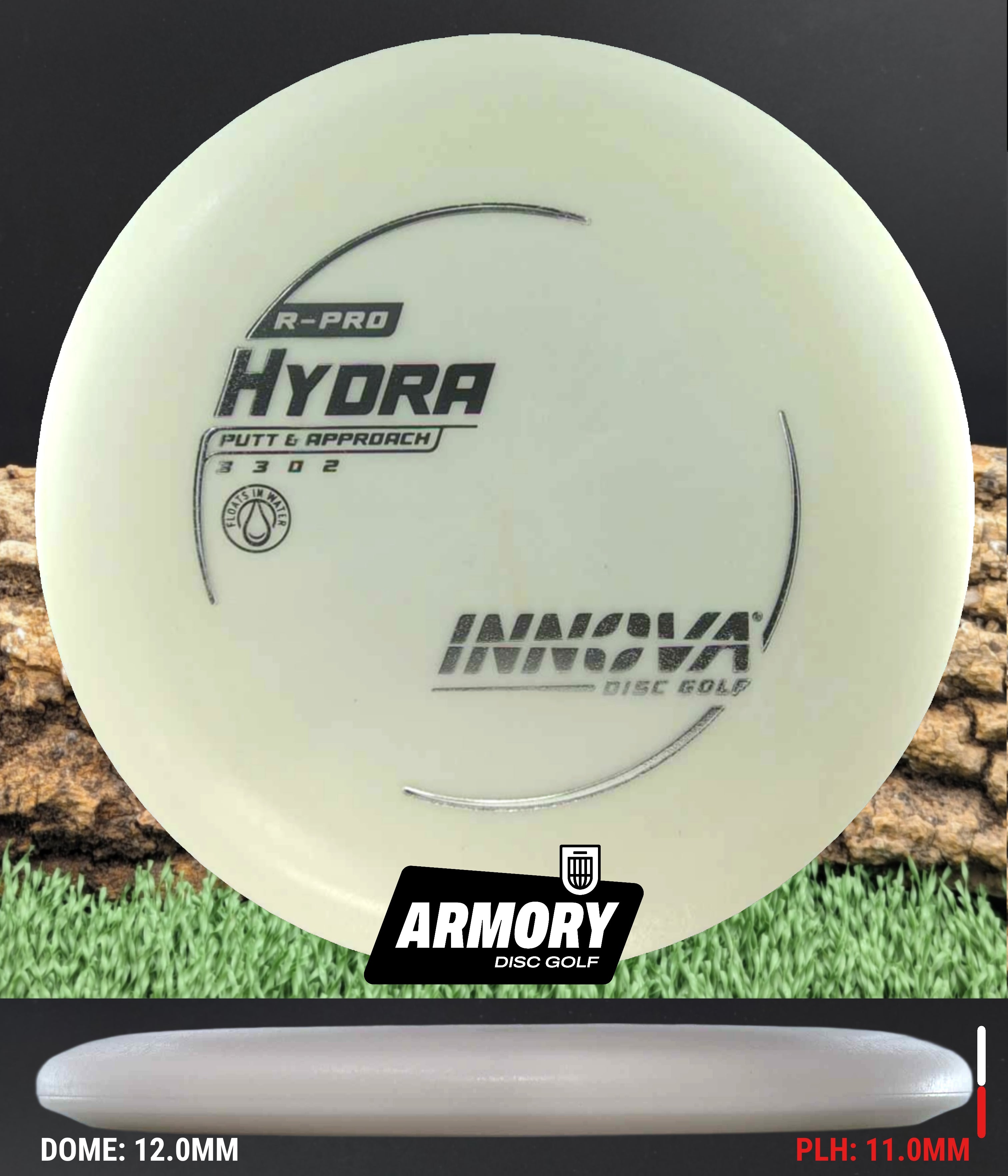 The Hydra is a Putt & Approach disc for short turning drives and approach shots. It is made with a grippy, durable plastic that floats in water. It is easy to release and has a friendly grip making it great putter as well. All Hydras are approximately 175 grams.