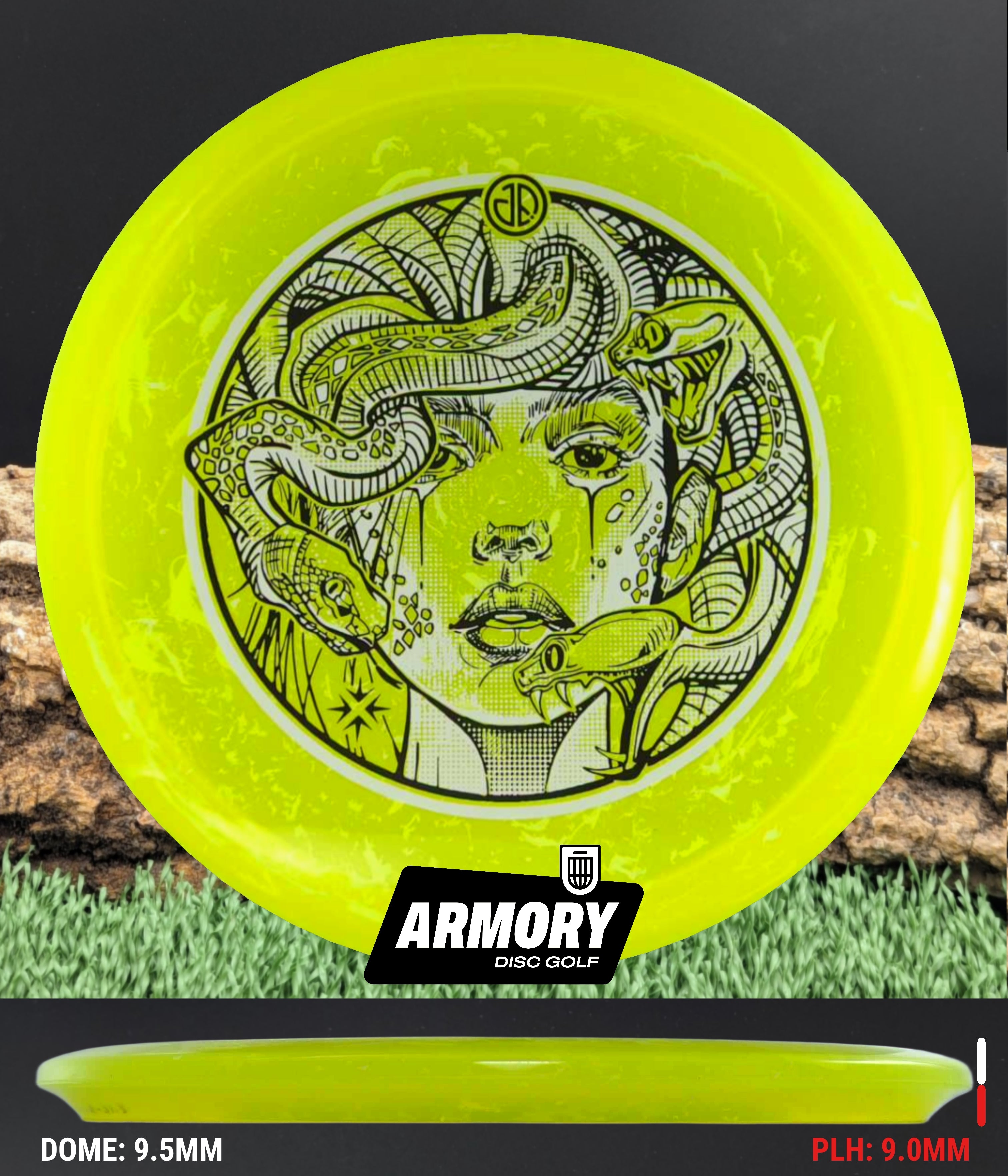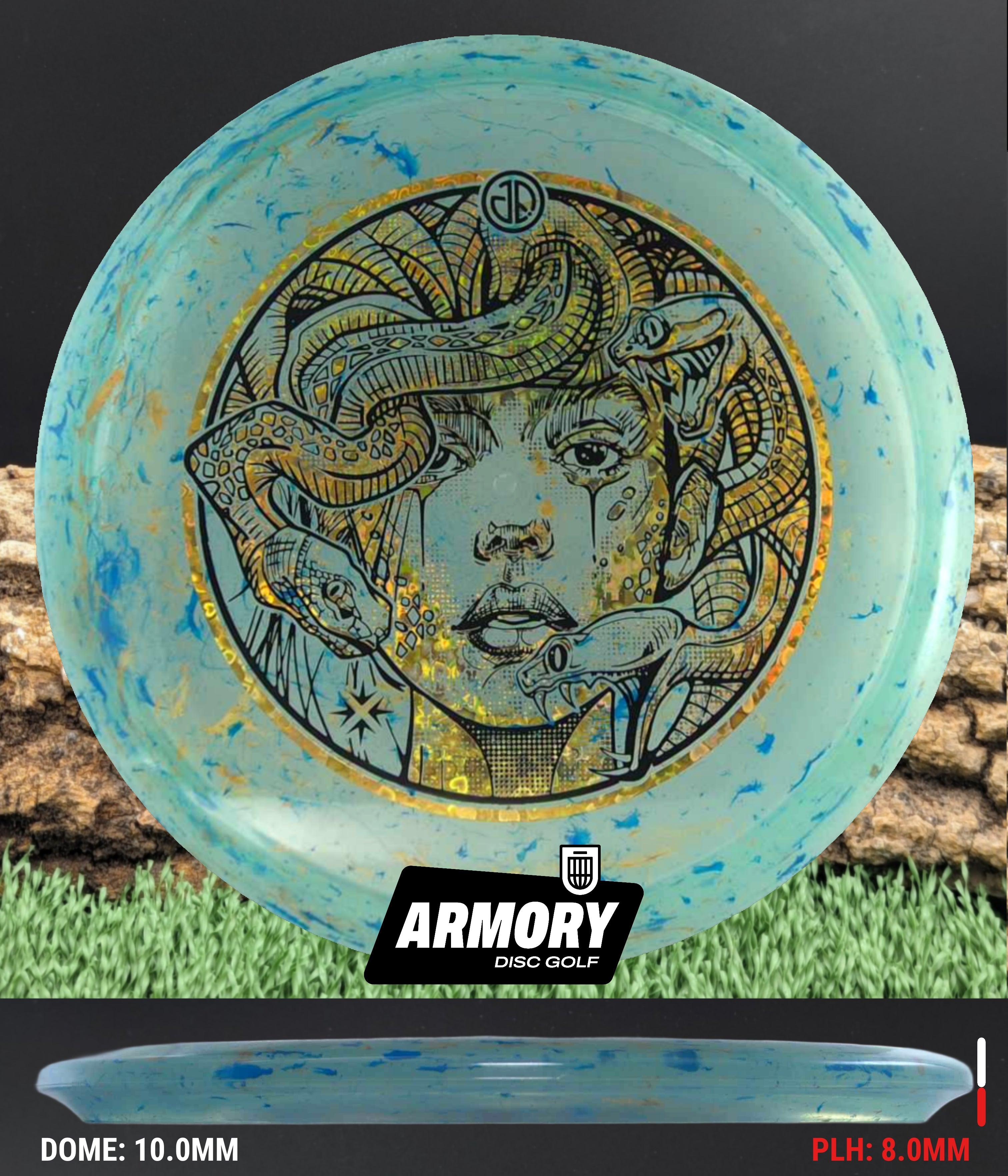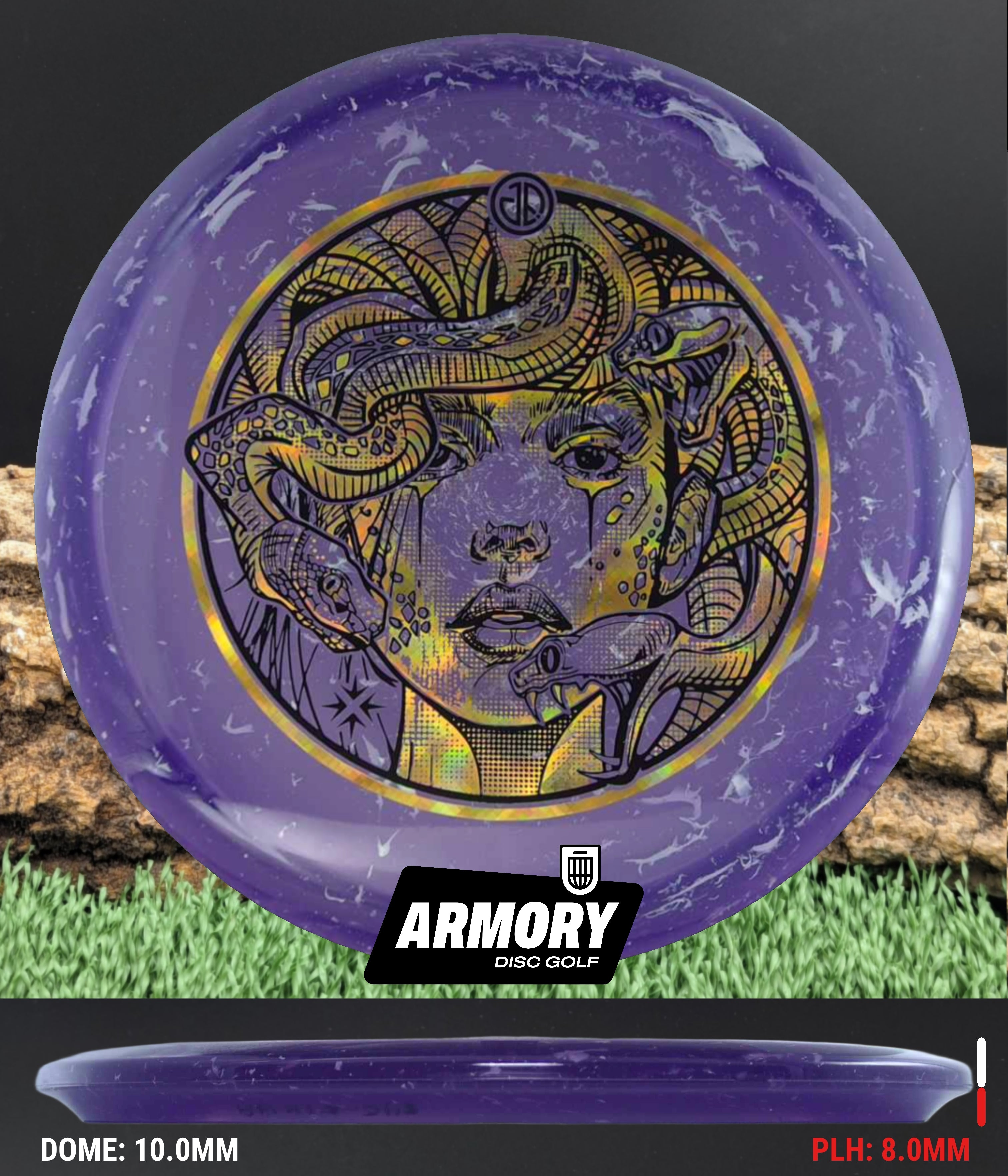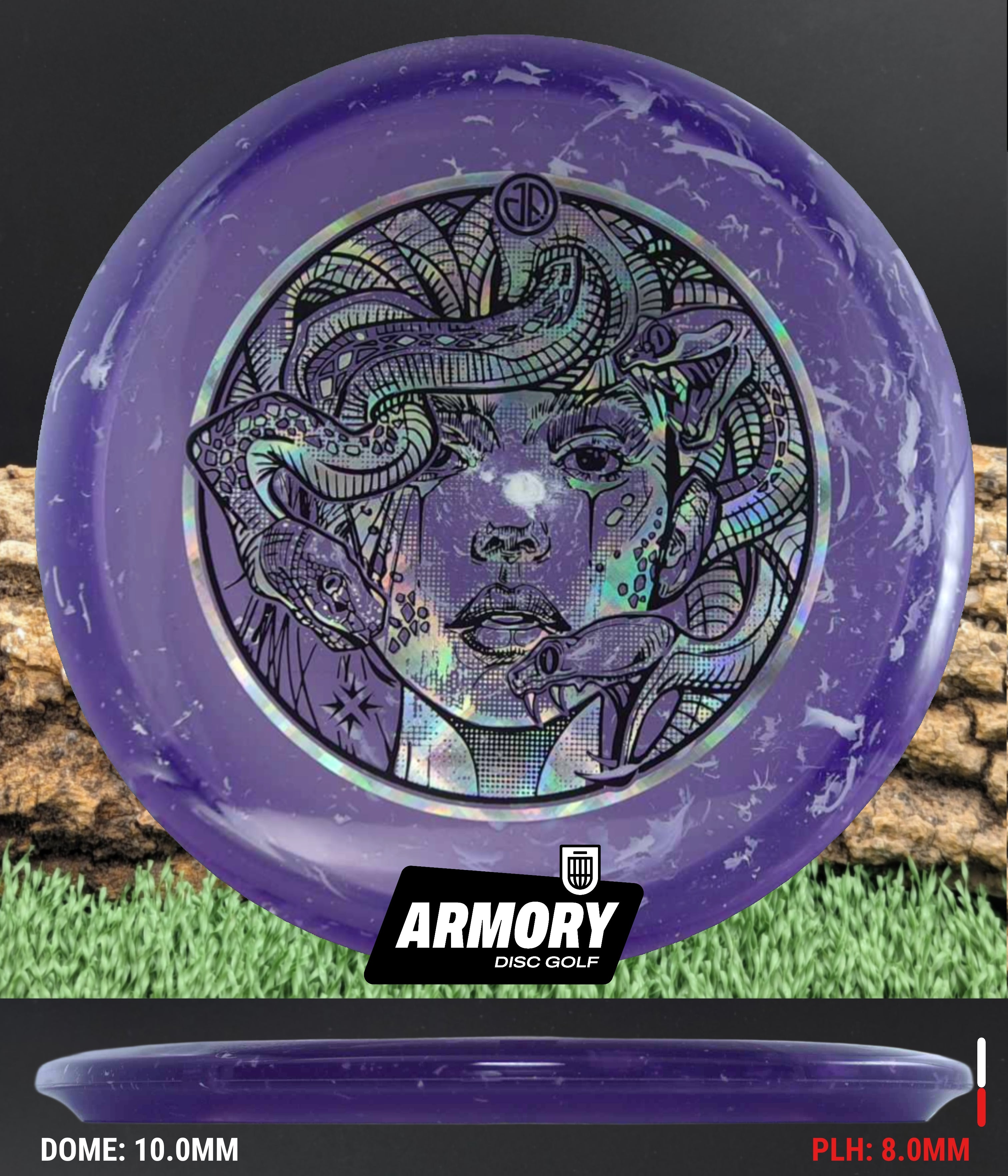 The Marbled Clarus plastic is a beautiful swirly plastic, reminiscent of Discraft's jawbreaker plastic. Marbled Clarus is also a stiffer blend adding to the stability and clean releases.