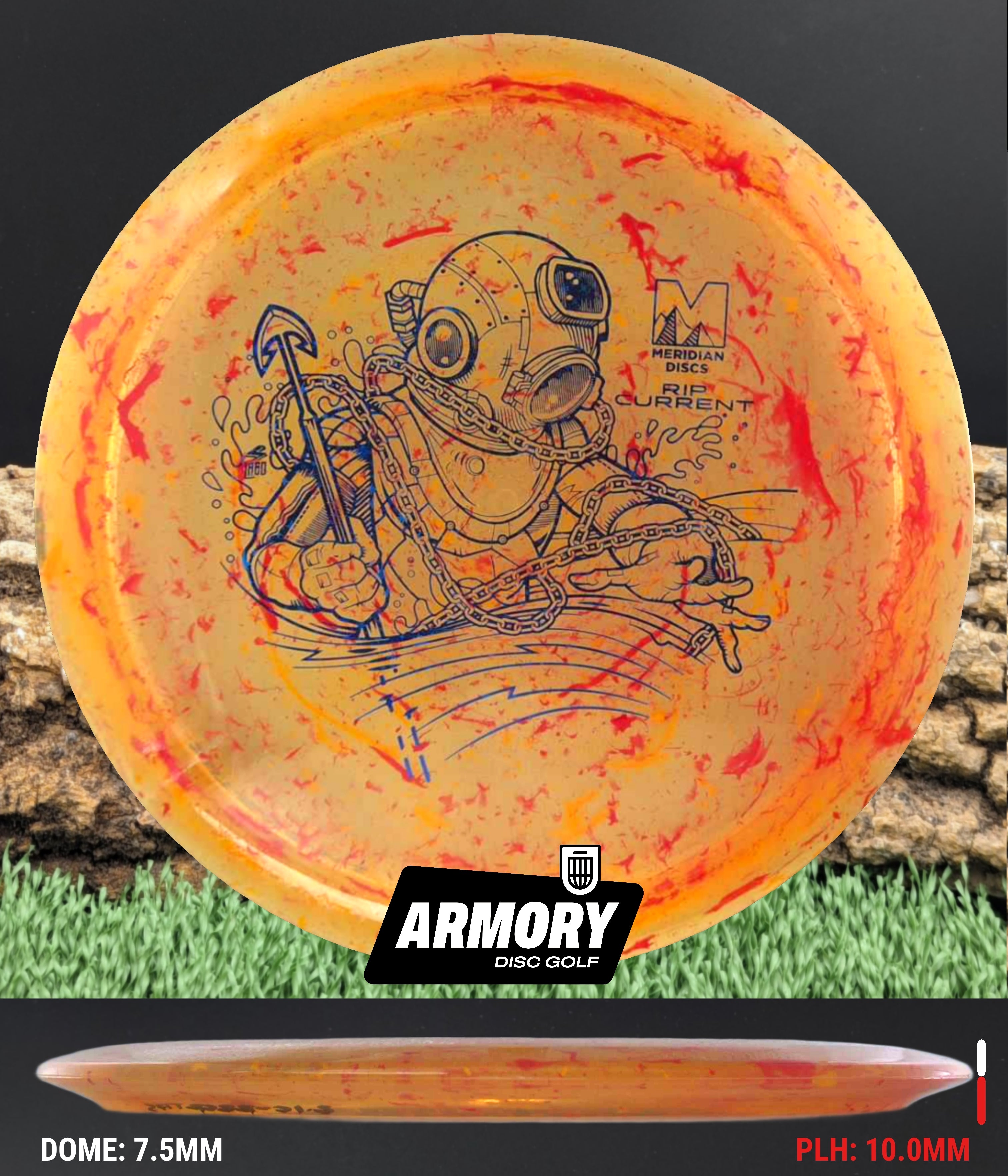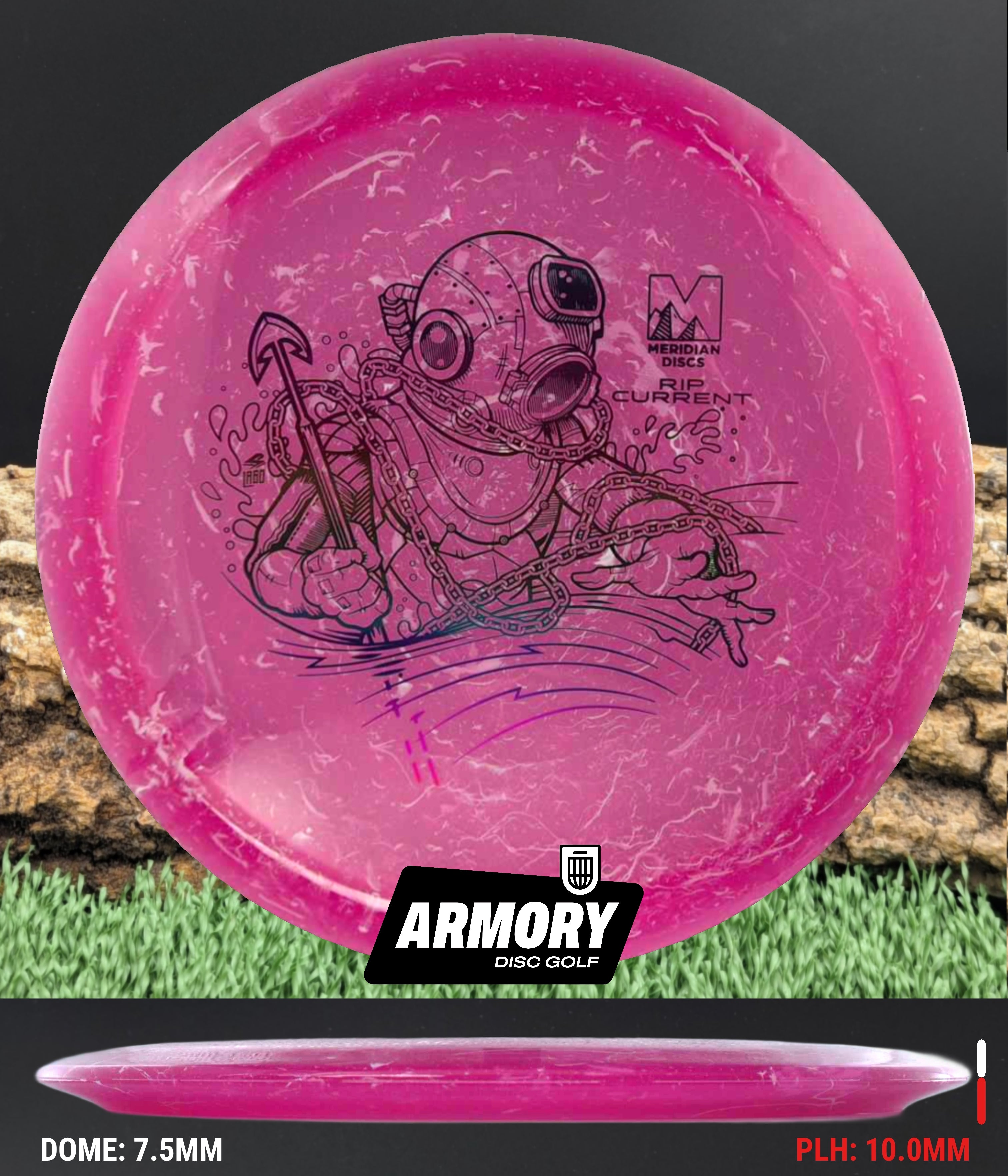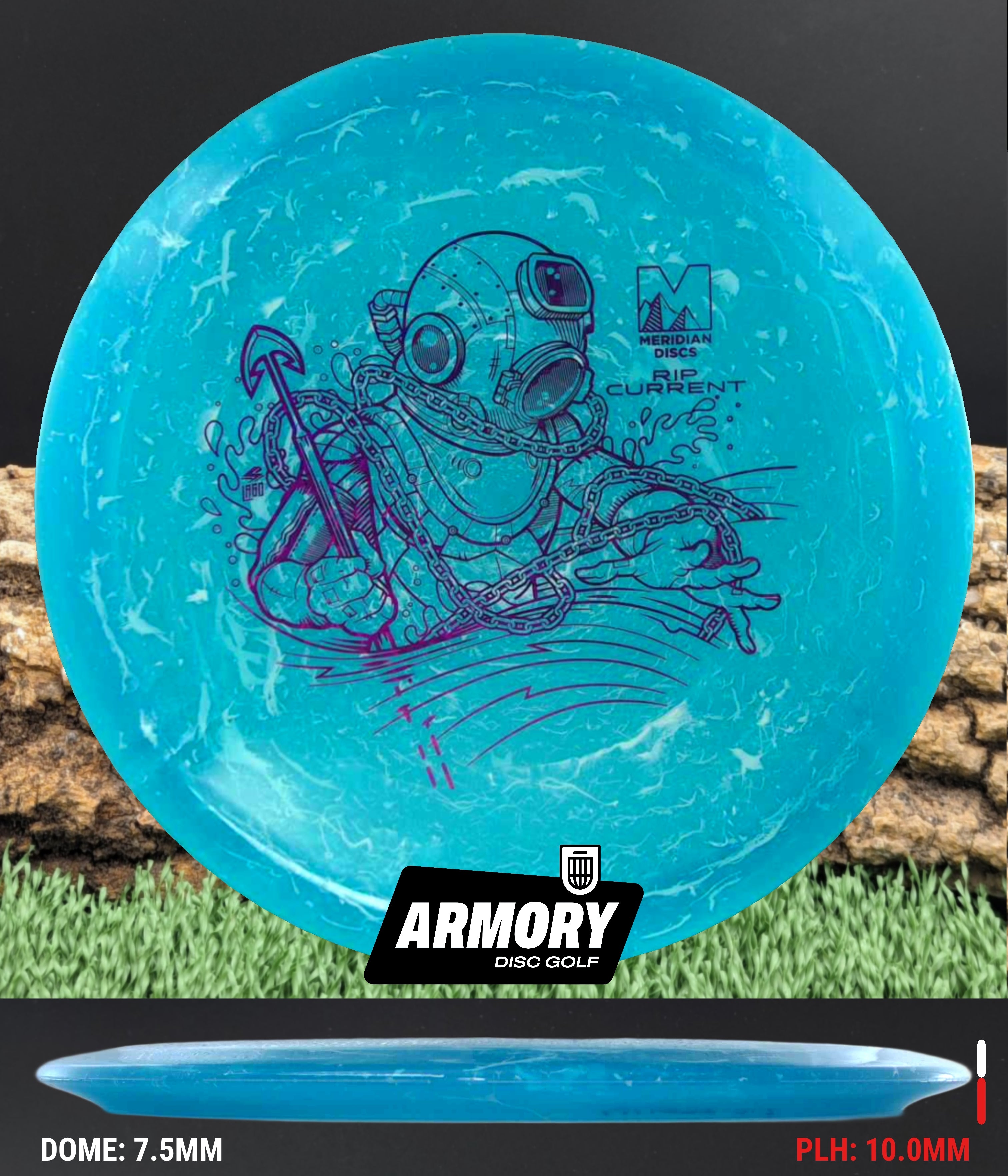 The Rip Current is Meridian’s understable 7 speed fairway driver—an easy-turning, shot-shaping complement to the popular Current. With flight numbers 7 | 5 | -2 | 1, the Rip Current offers smooth hyzer flips, long-gliding turnovers, and roller potential straight out of the box.