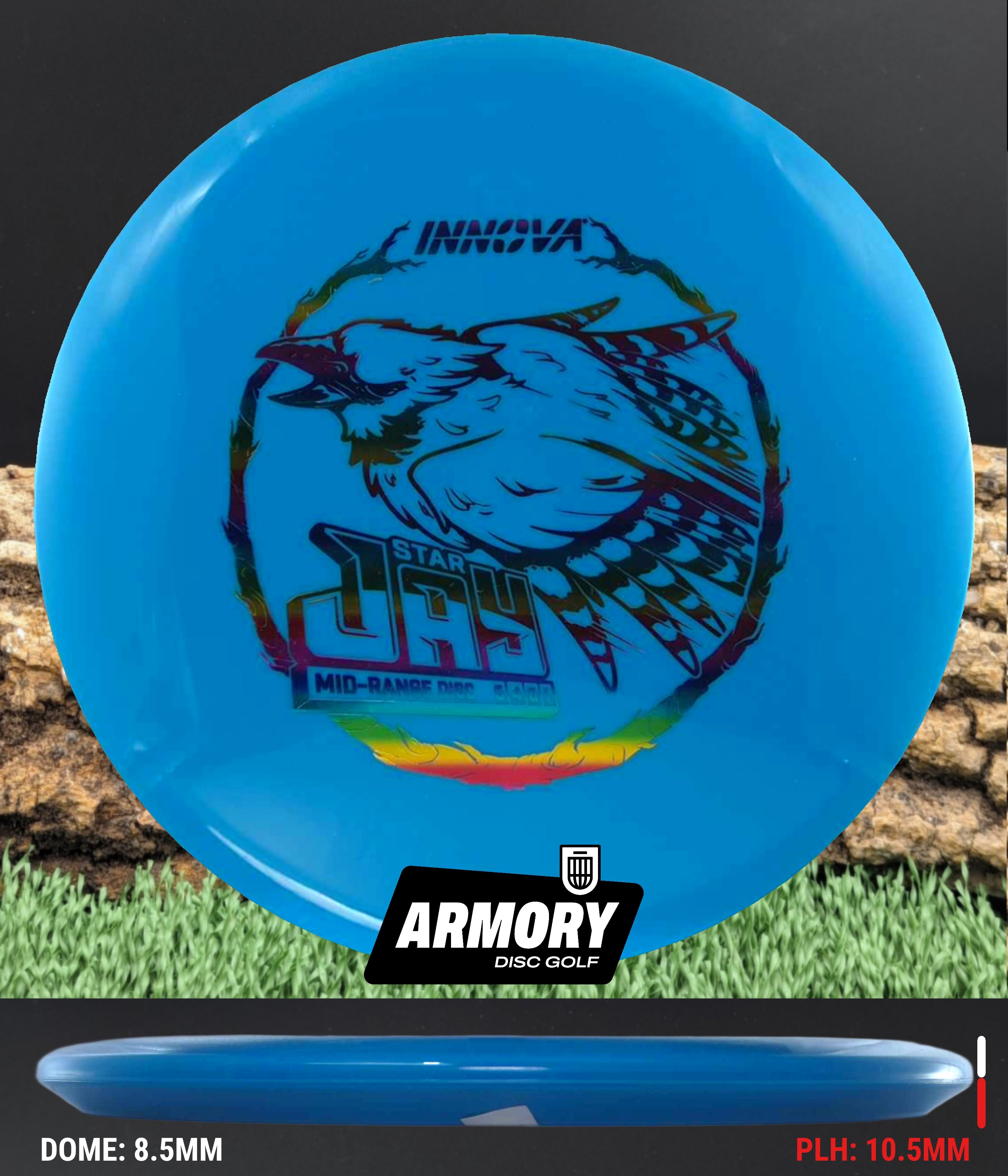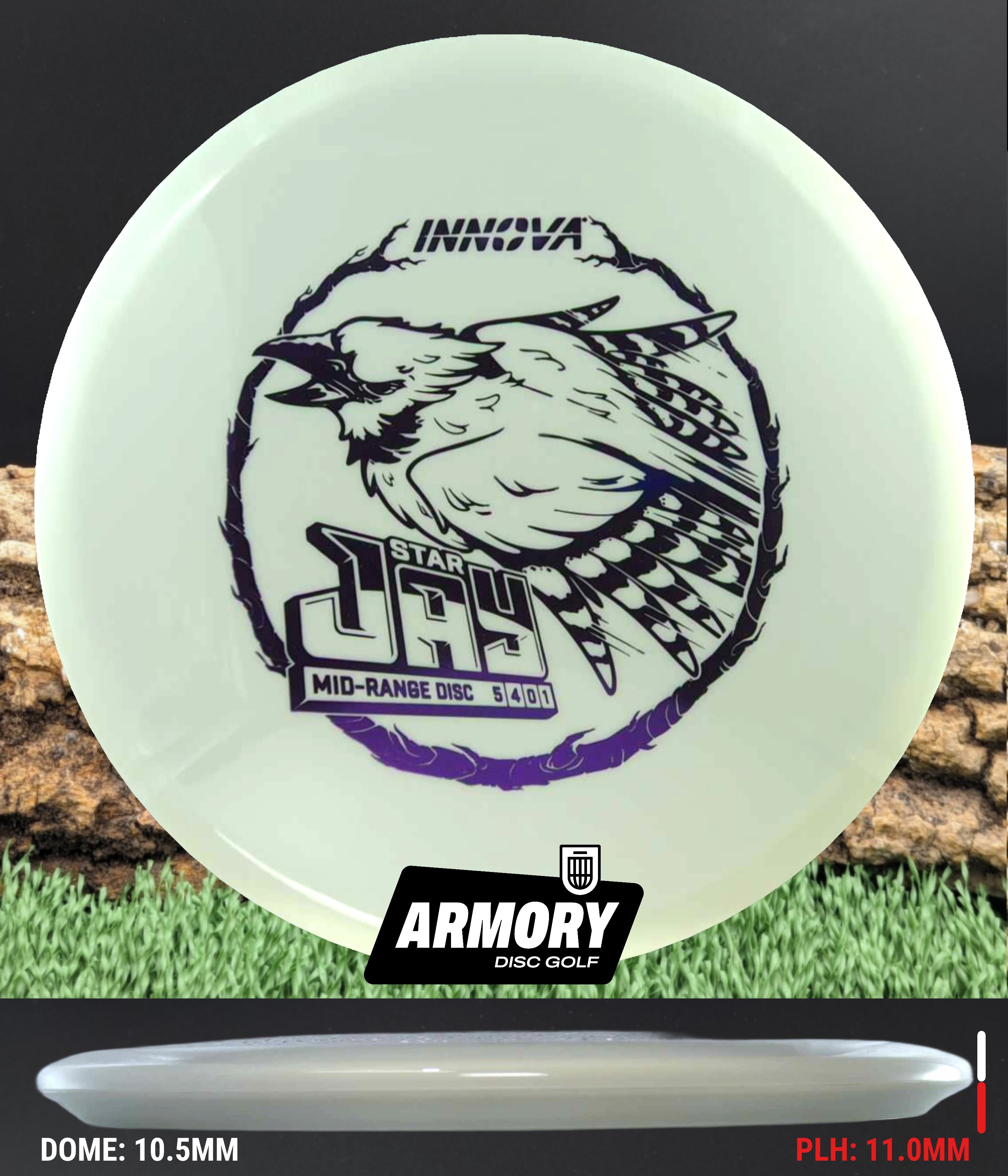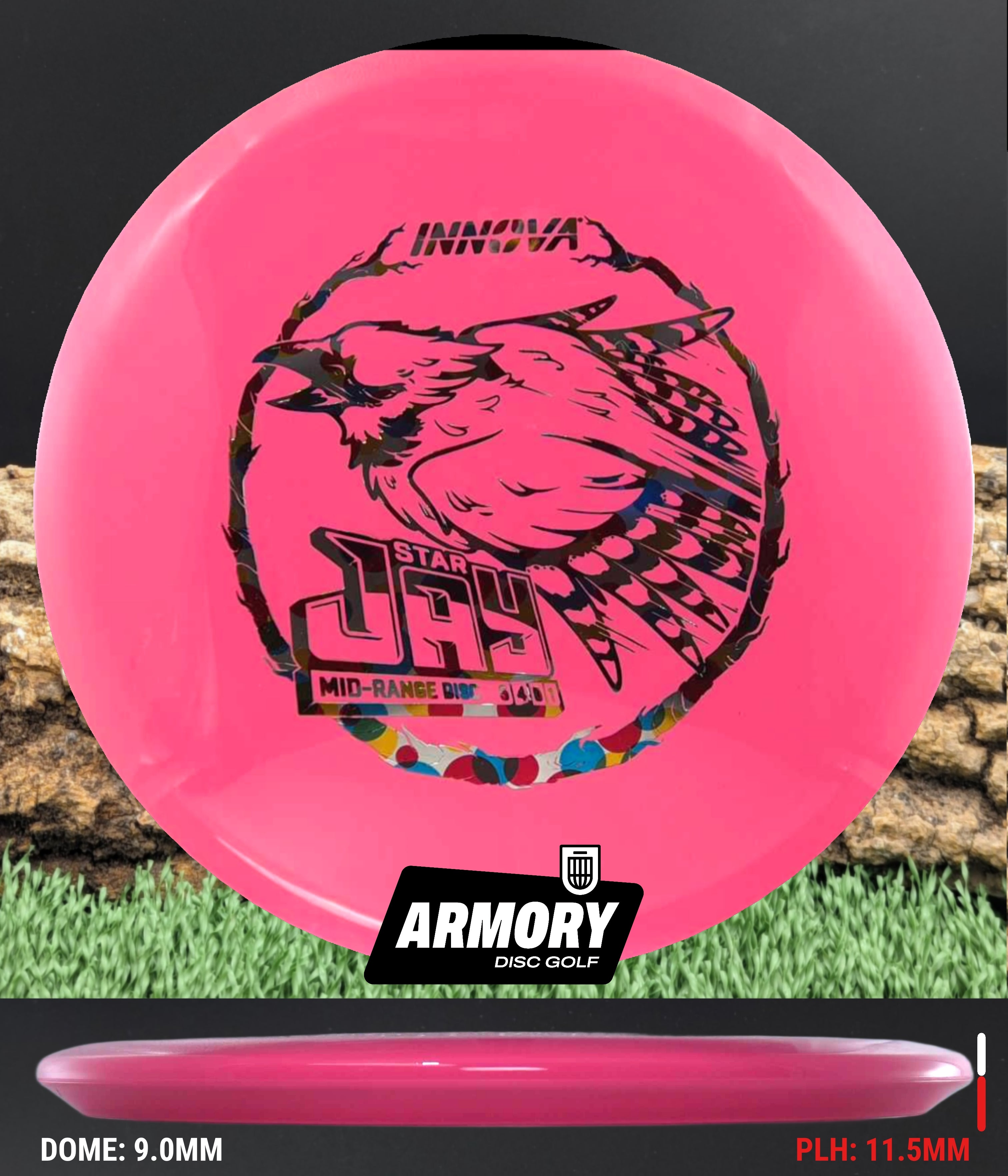A micro-beaded Mid-Range with a true-to-release flight, the Innova Jay will be a staple in bags everywhere. This all-purpose disc can handle power or be finessed. It has better torque-resistance than most Mid-Ranges, but still finishes straight. It is one of our most point-and-shoot discs on the market. The Jay’s low-profile design fits comfortably in your hand for a clean release every throw. Get yours in Champion and Star plastics today.