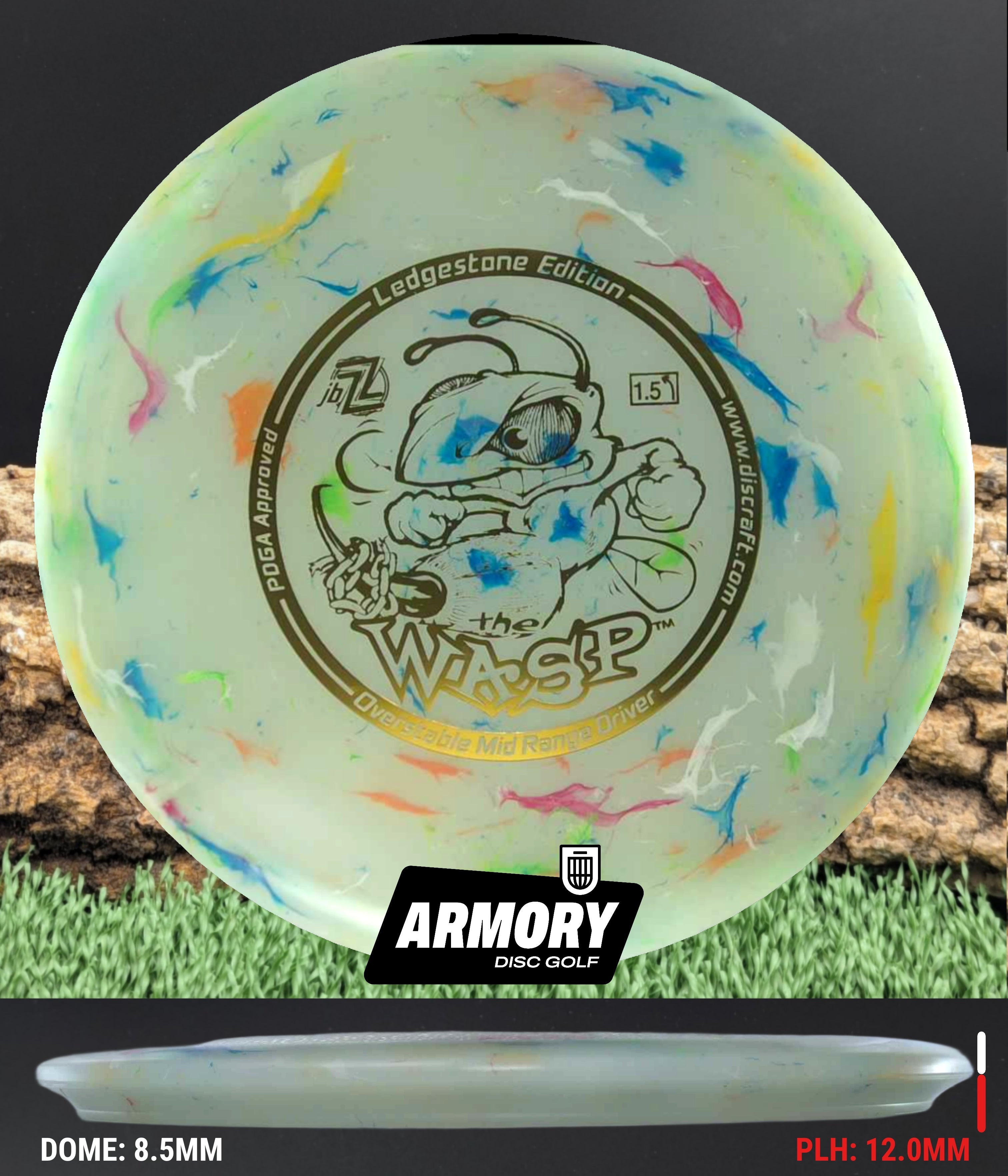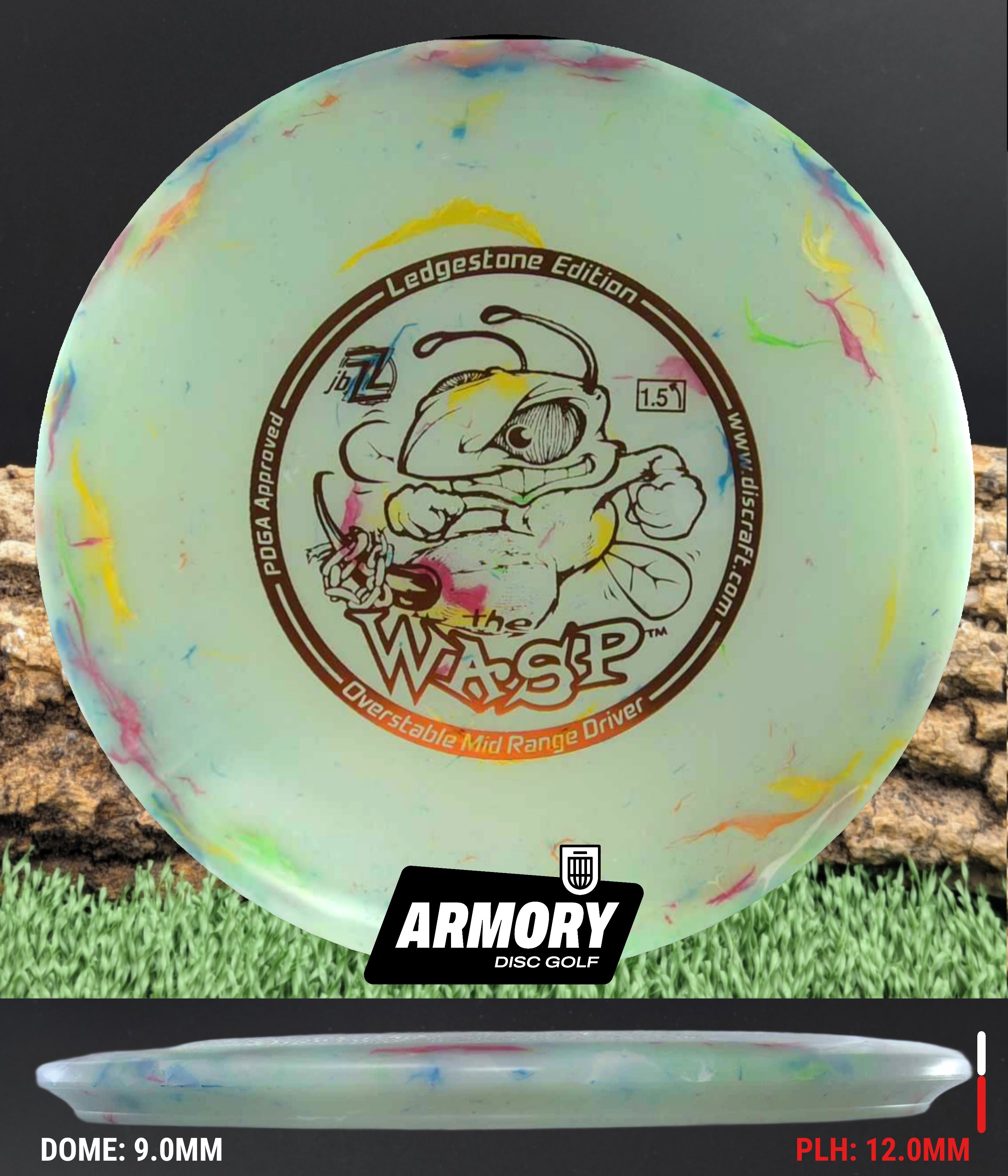 In this release, the Wasp comes in Jawbreaker Z FLX plastic—a blend that combines the unique marbled look and tacky grip of Jawbreaker with the flexibility and durability of Z FLX. The result is a disc that feels great in the hand, offers excellent control, and maintains performance even in cold weather. The slightly gummy flexibility also provides extra confidence on release and smoother landings with less ground play.