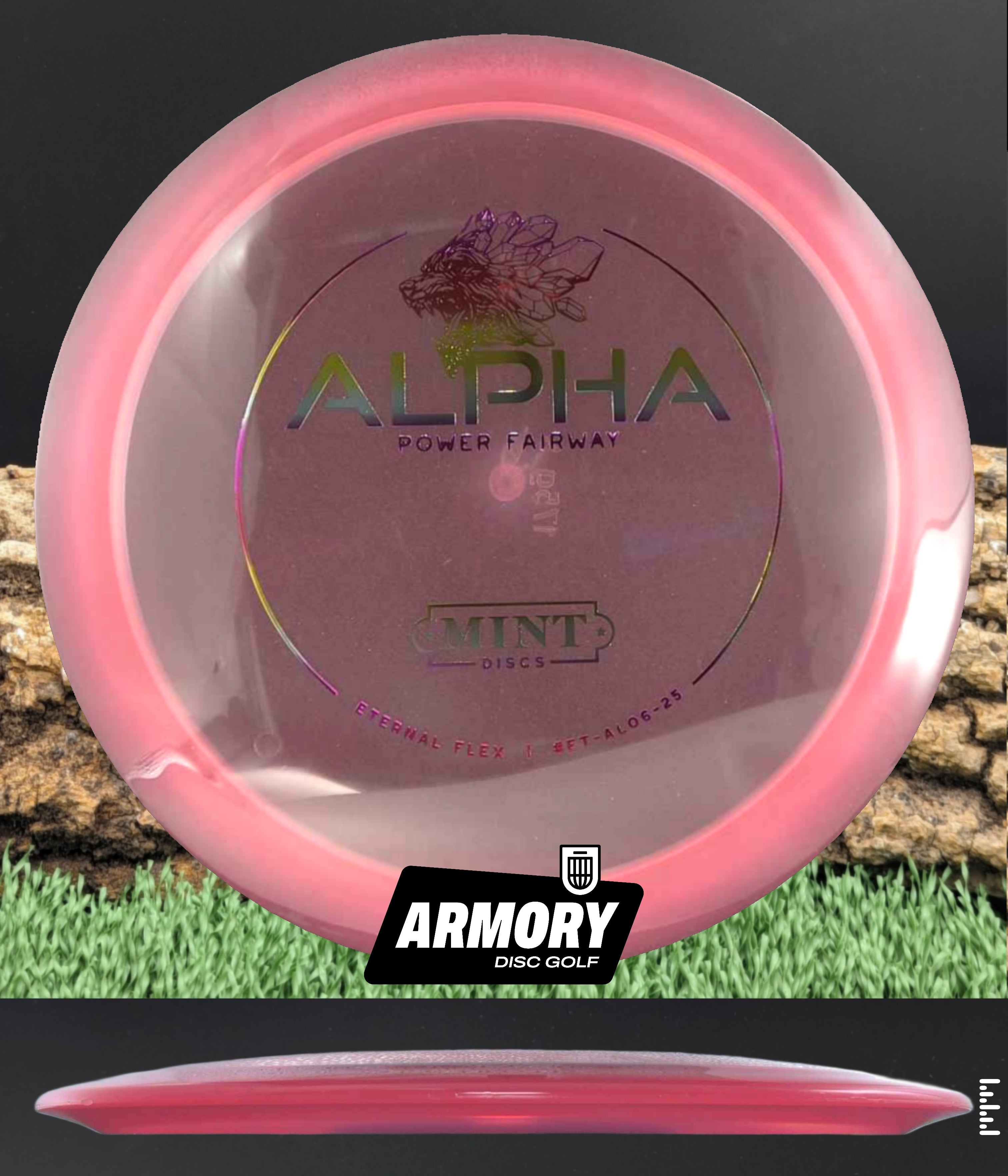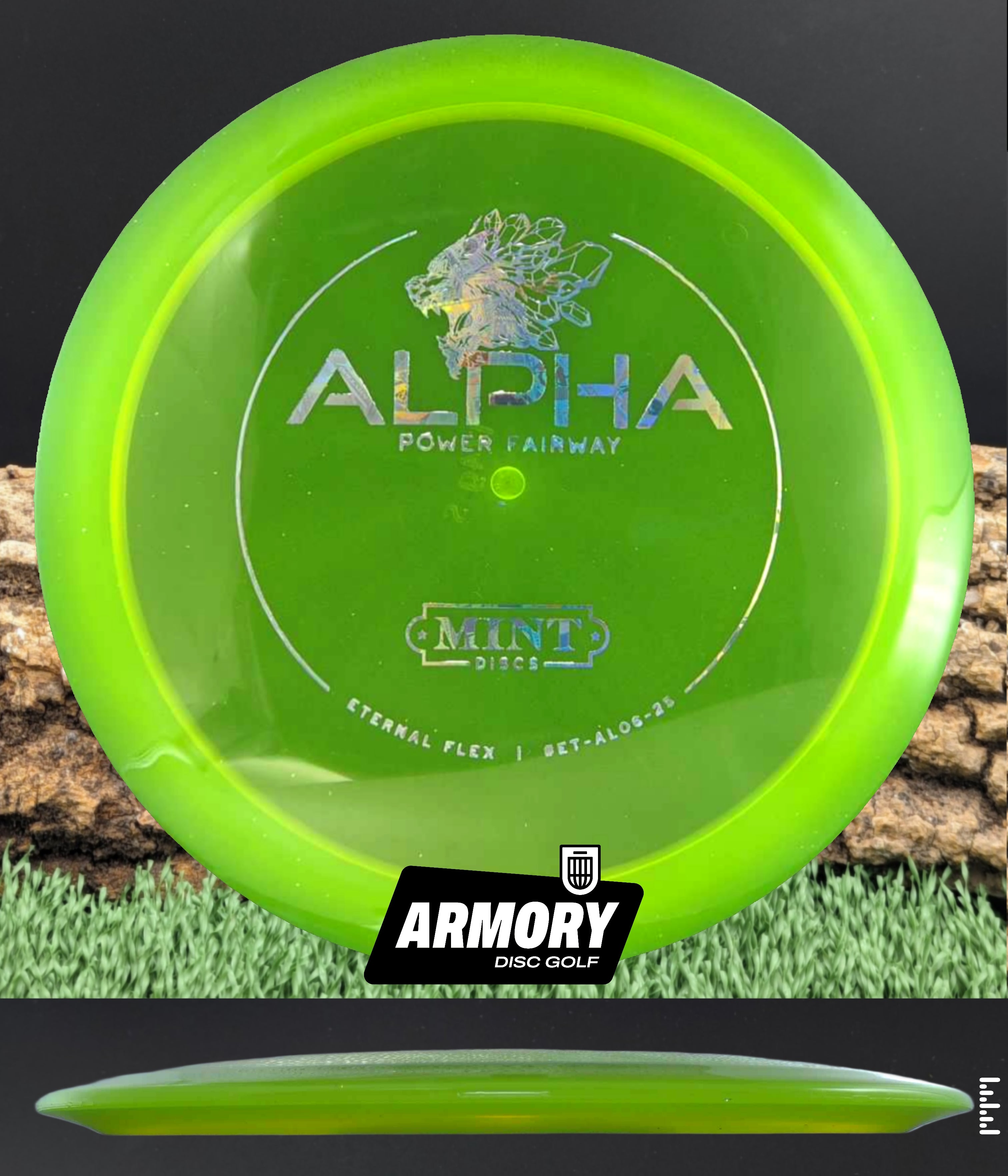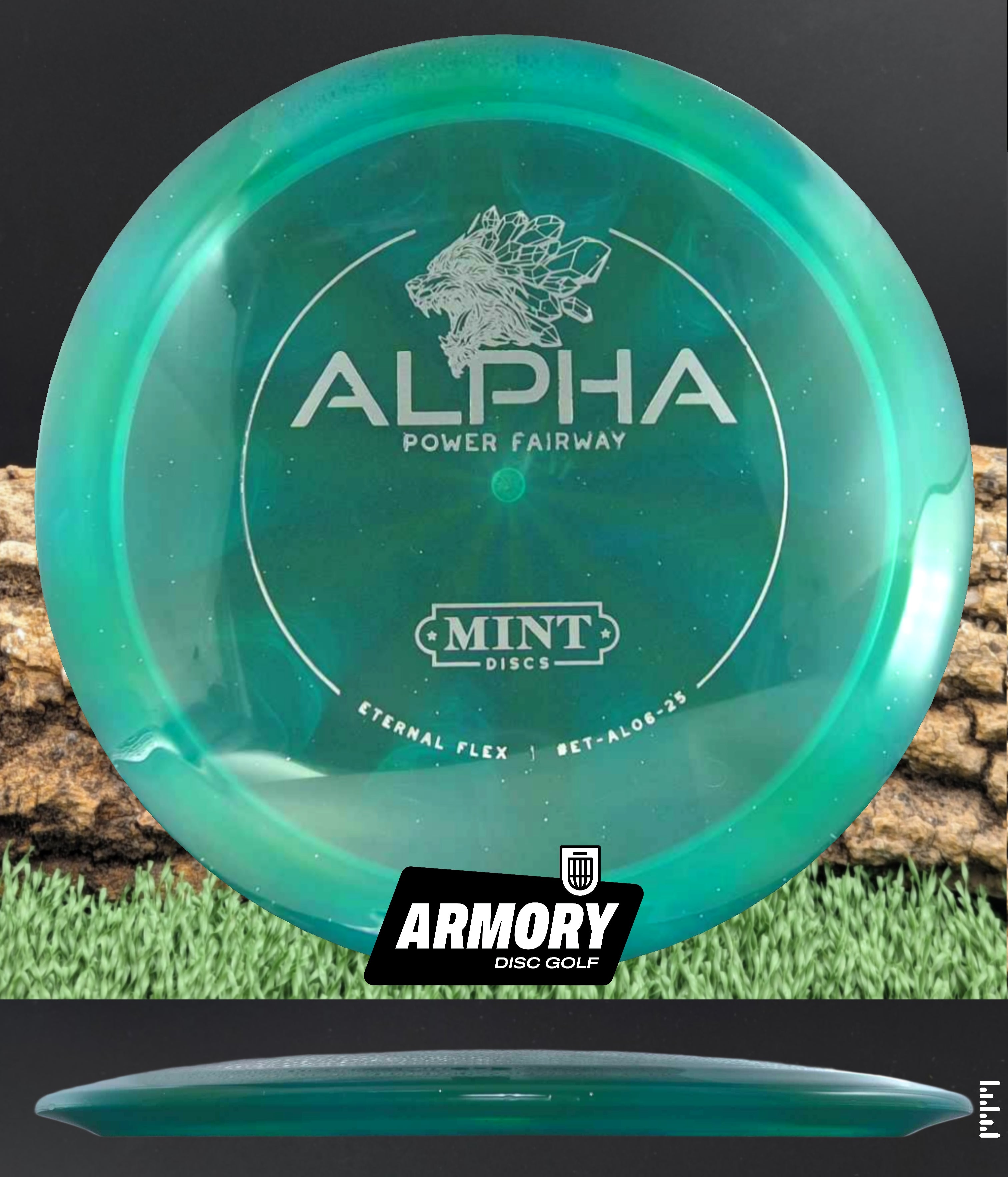 The Alpha is Mint’s go-to power fairway — a straight-flying workhorse built to respond exactly to the line and power you give it. The 3rd run Eternal Flex Alpha brings a transparent, slightly gummy feel that’s grippy out of the box and seasons into smooth, predictable releases over time. Capable of fighting headwinds or carving tight wooded lines, the Alpha is stable enough for powerful throws while remaining intuitive for controlled placement.