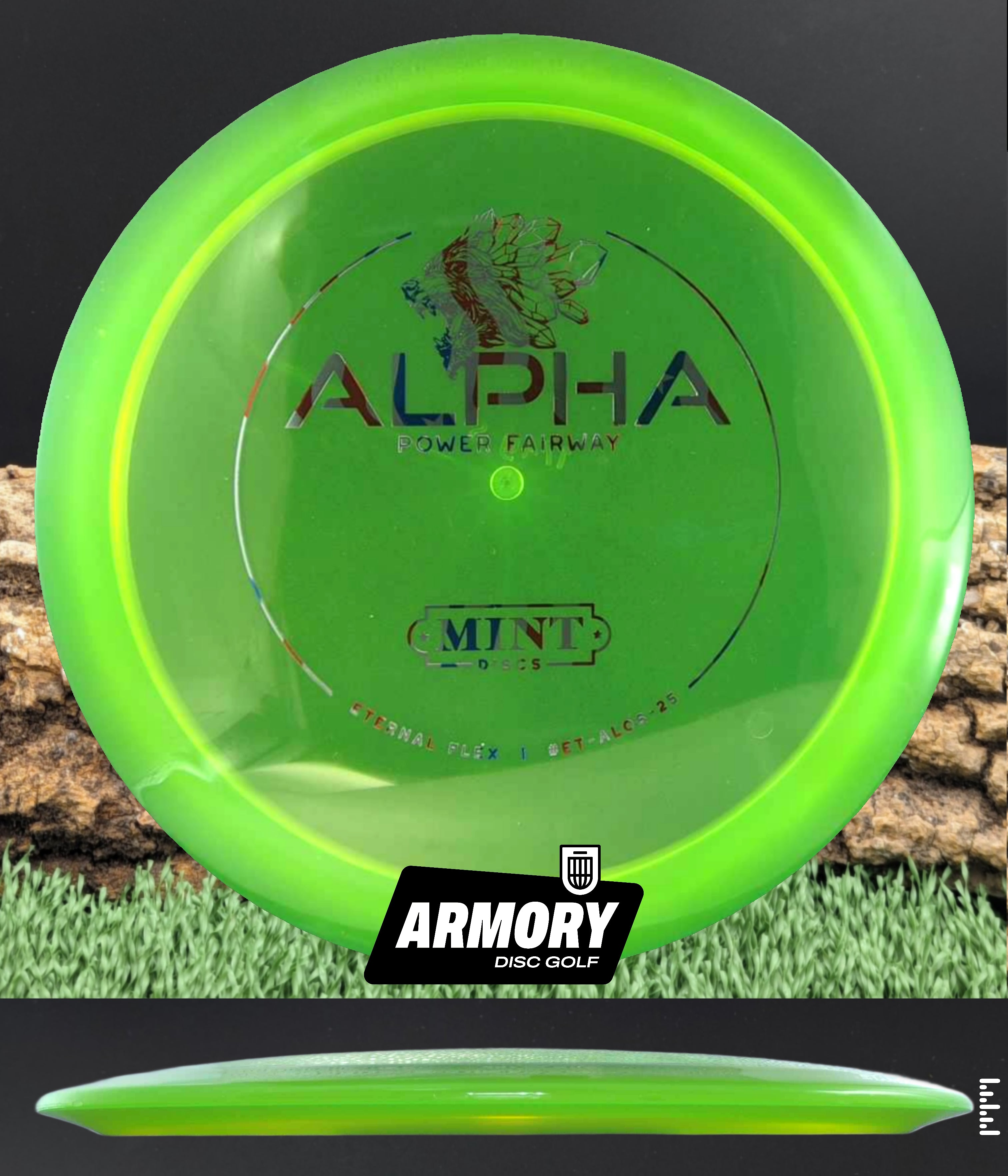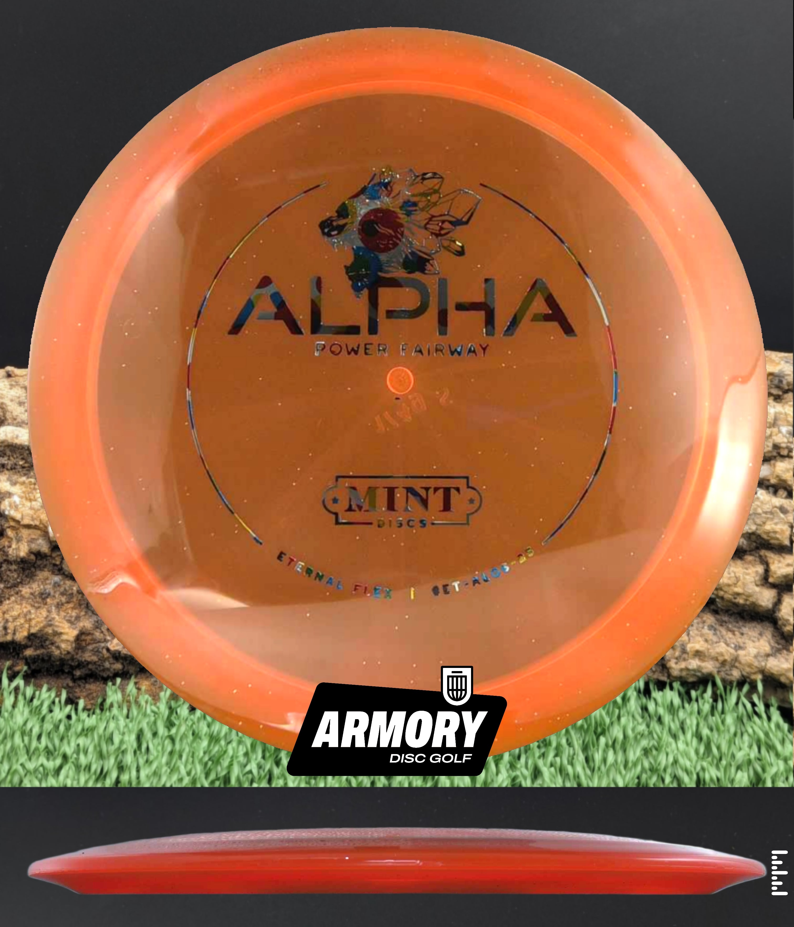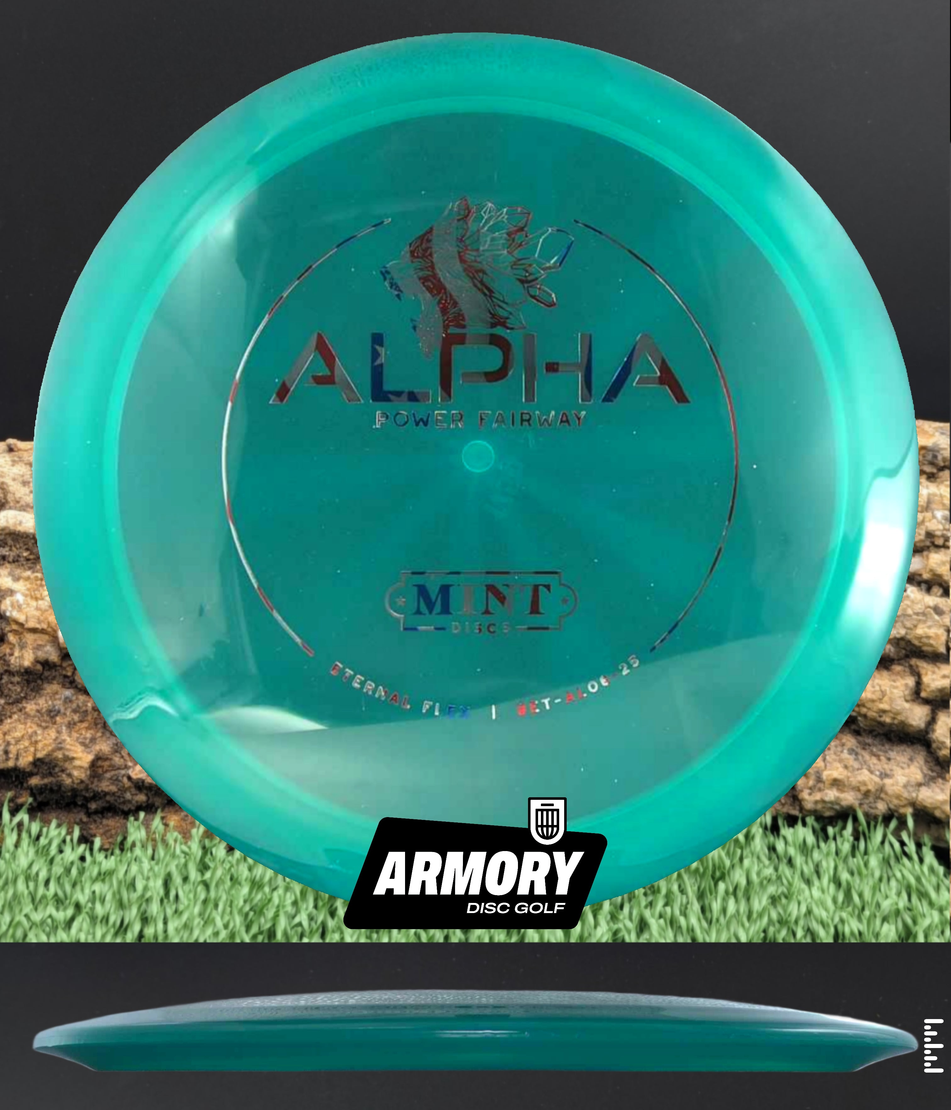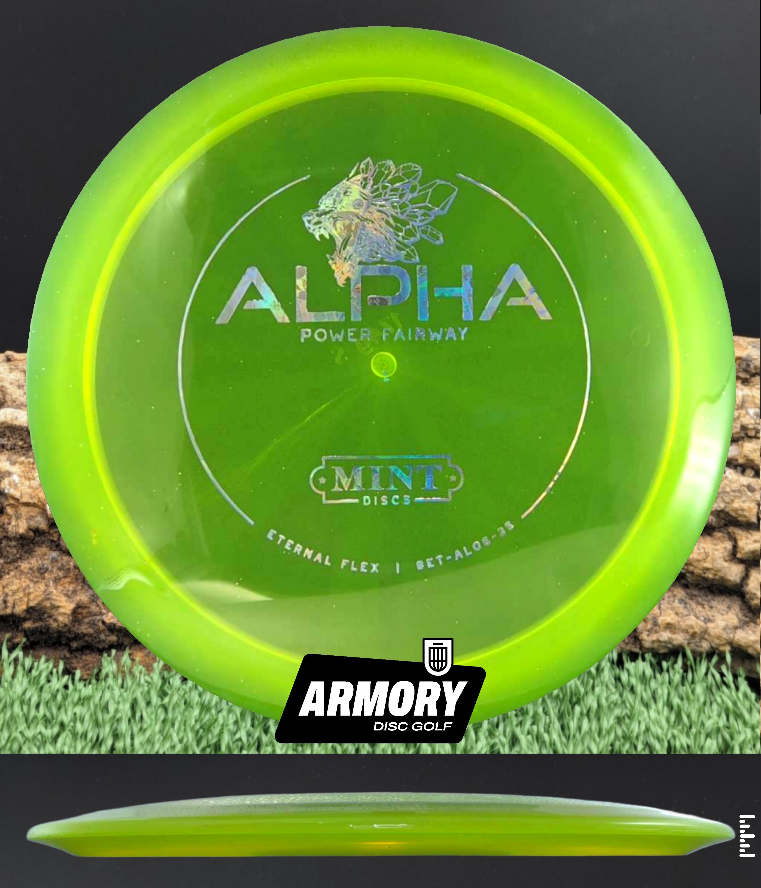 The Alpha is Mint’s go-to power fairway — a straight-flying workhorse built to respond exactly to the line and power you give it. The 3rd run Eternal Flex Alpha brings a transparent, slightly gummy feel that’s grippy out of the box and seasons into smooth, predictable releases over time. Capable of fighting headwinds or carving tight wooded lines, the Alpha is stable enough for powerful throws while remaining intuitive for controlled placement.
