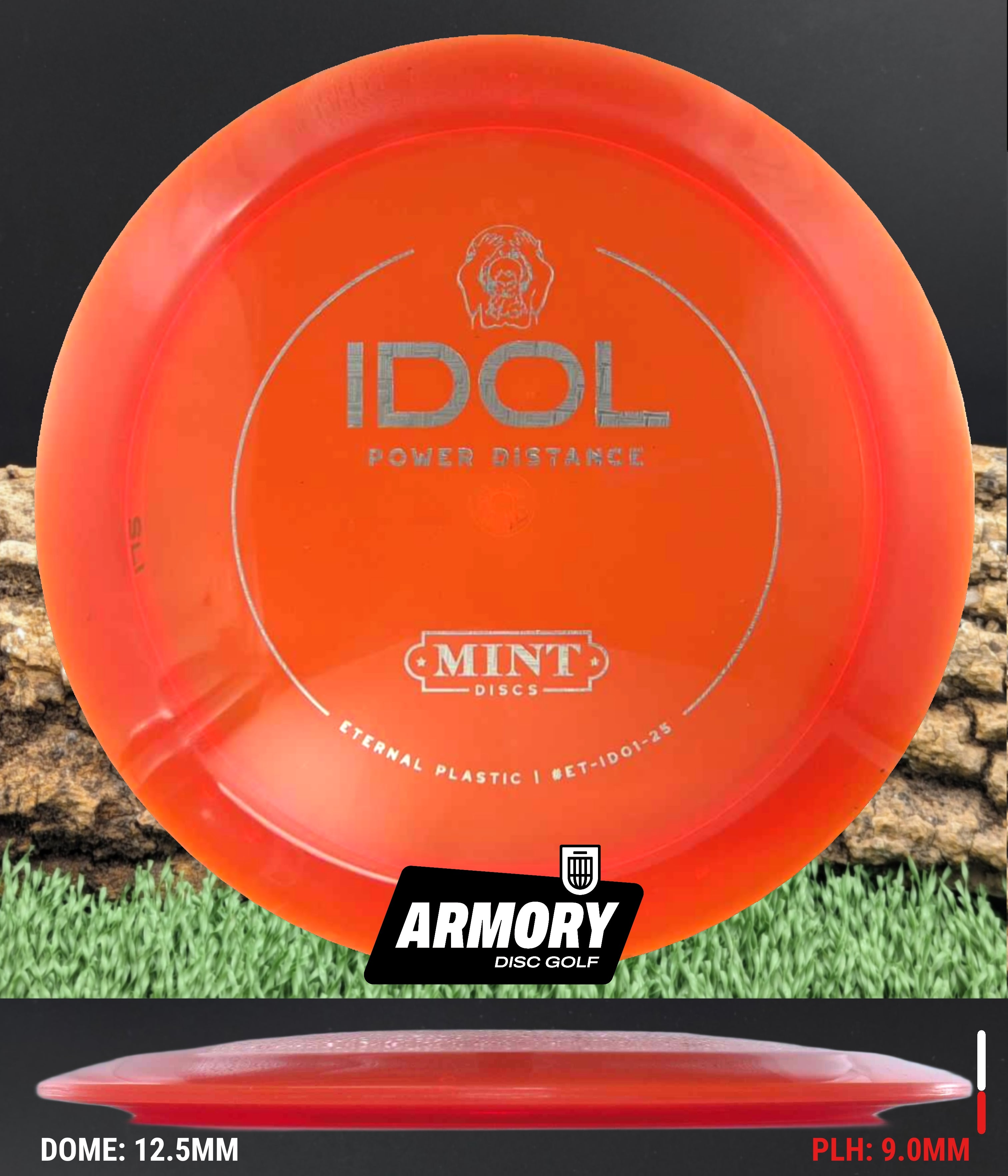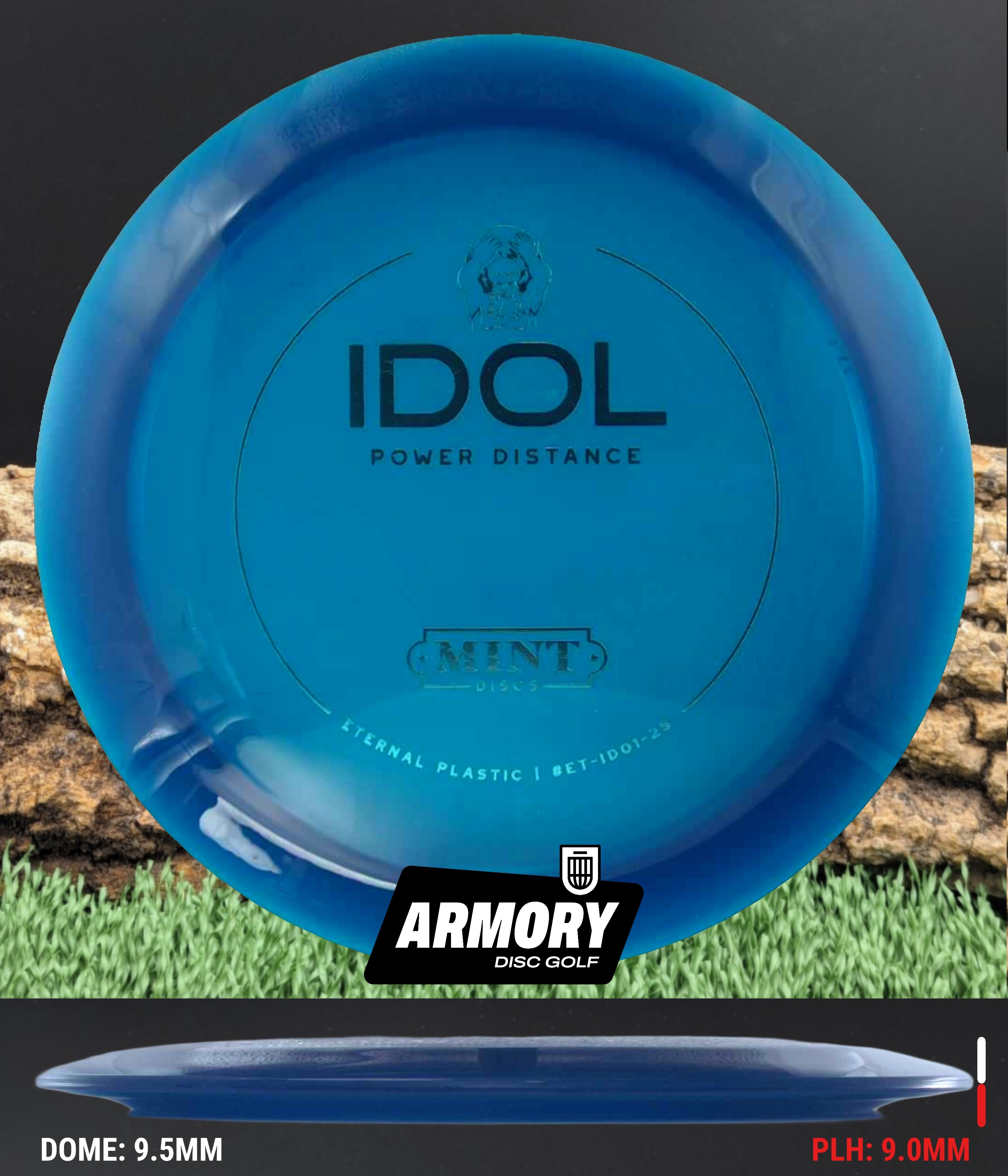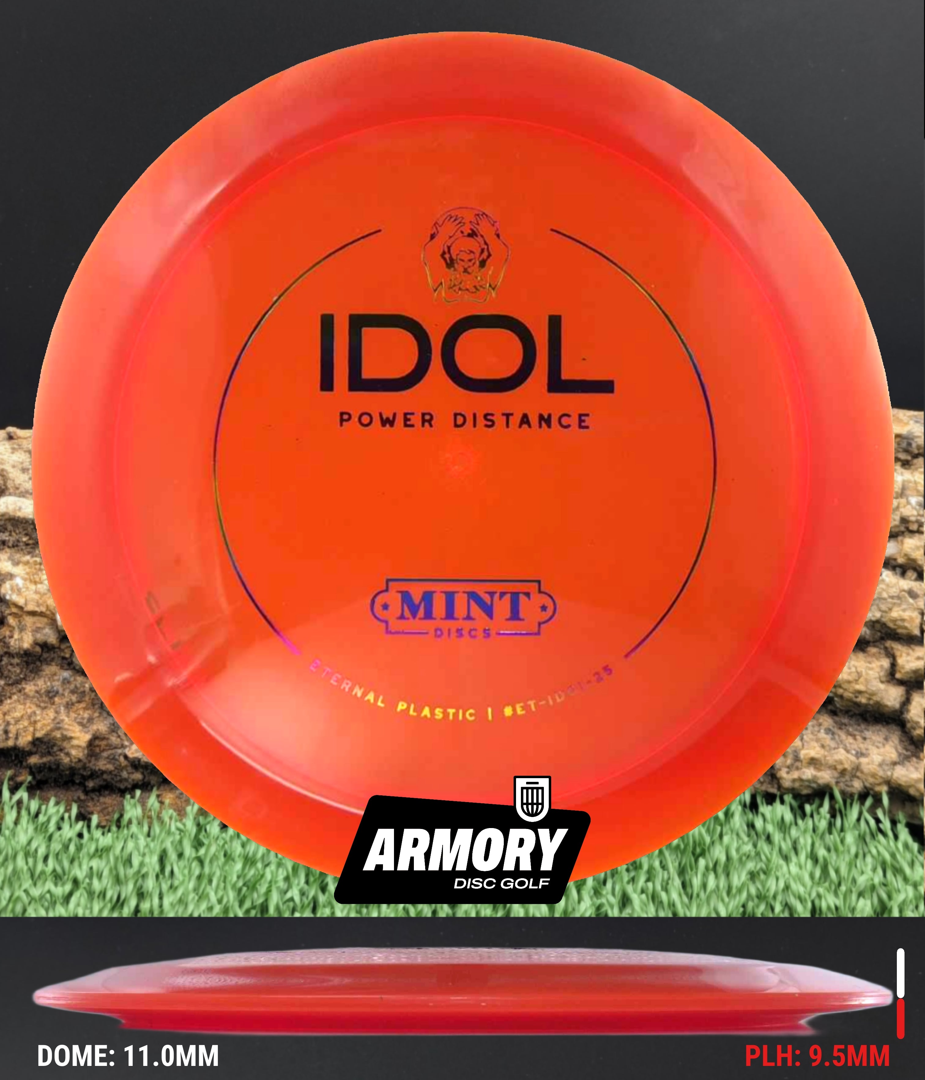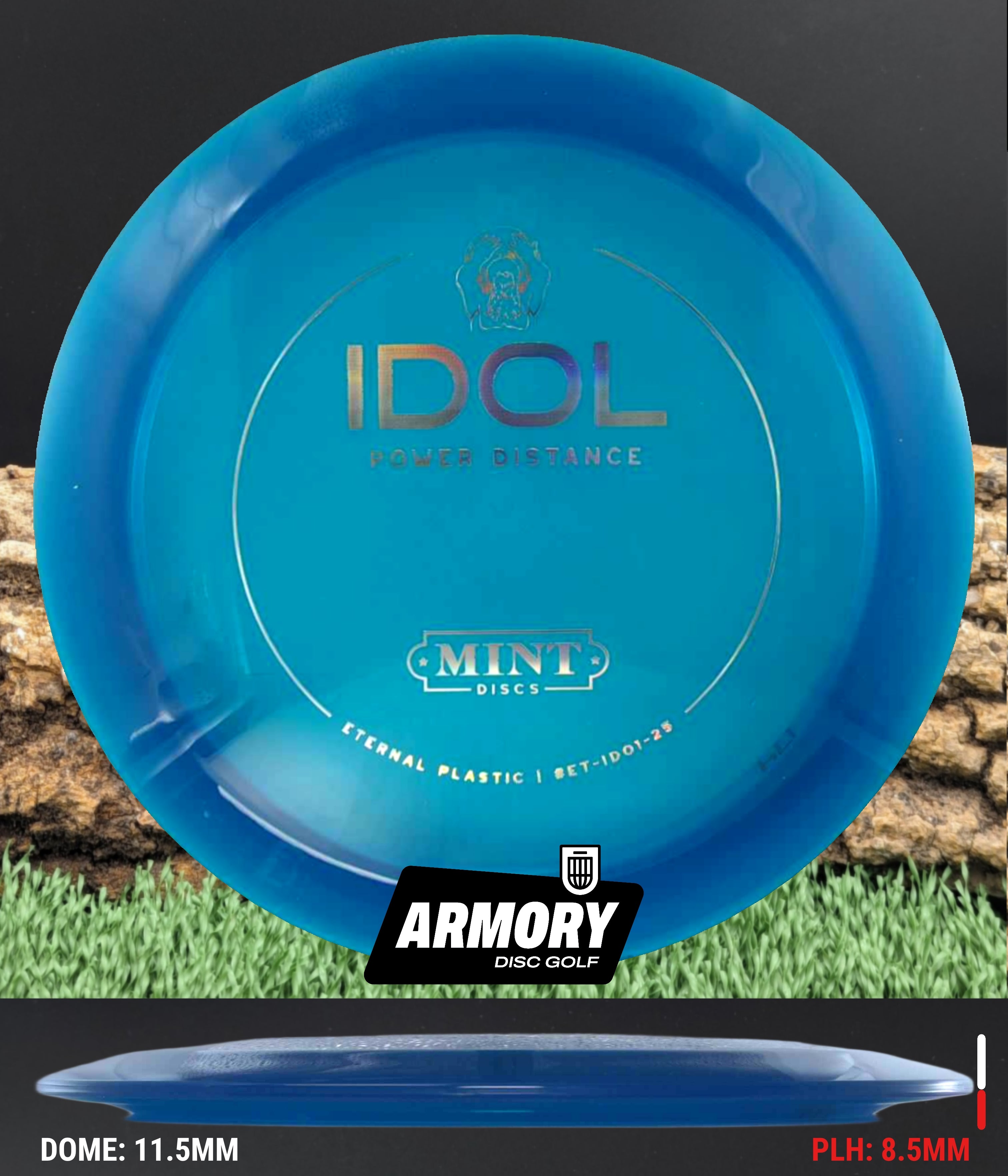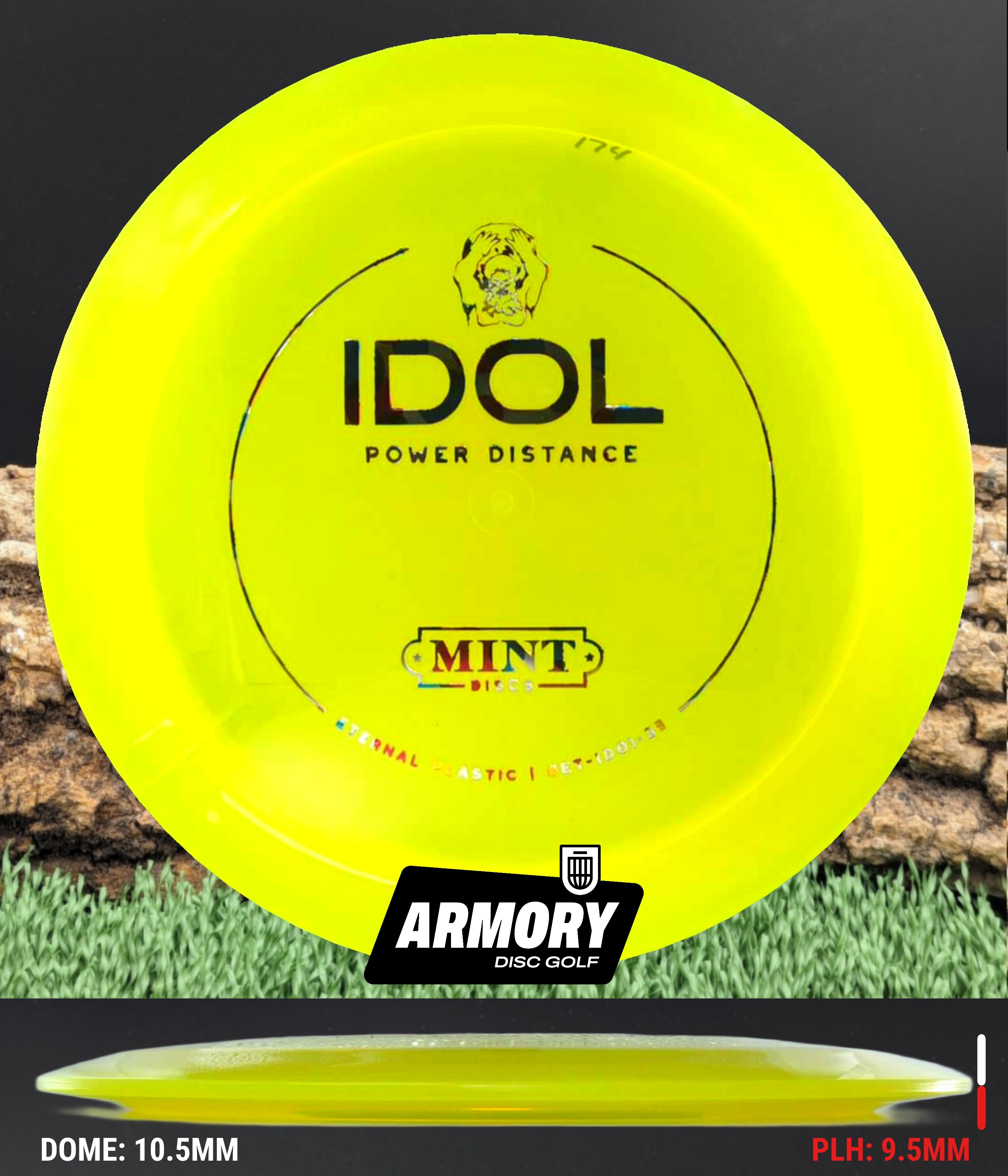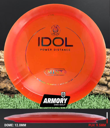 Armory Disc Golf believes the Idol is a modified take on the Prodigy Falcor. Both discs share nearly identical PDGA technical specs, and visually, they’re nearly twins. The difference? Neither Mint nor Prodigy has confirmed this, and we're also betting that there’s a degree of manufacturing differences that make them unique.