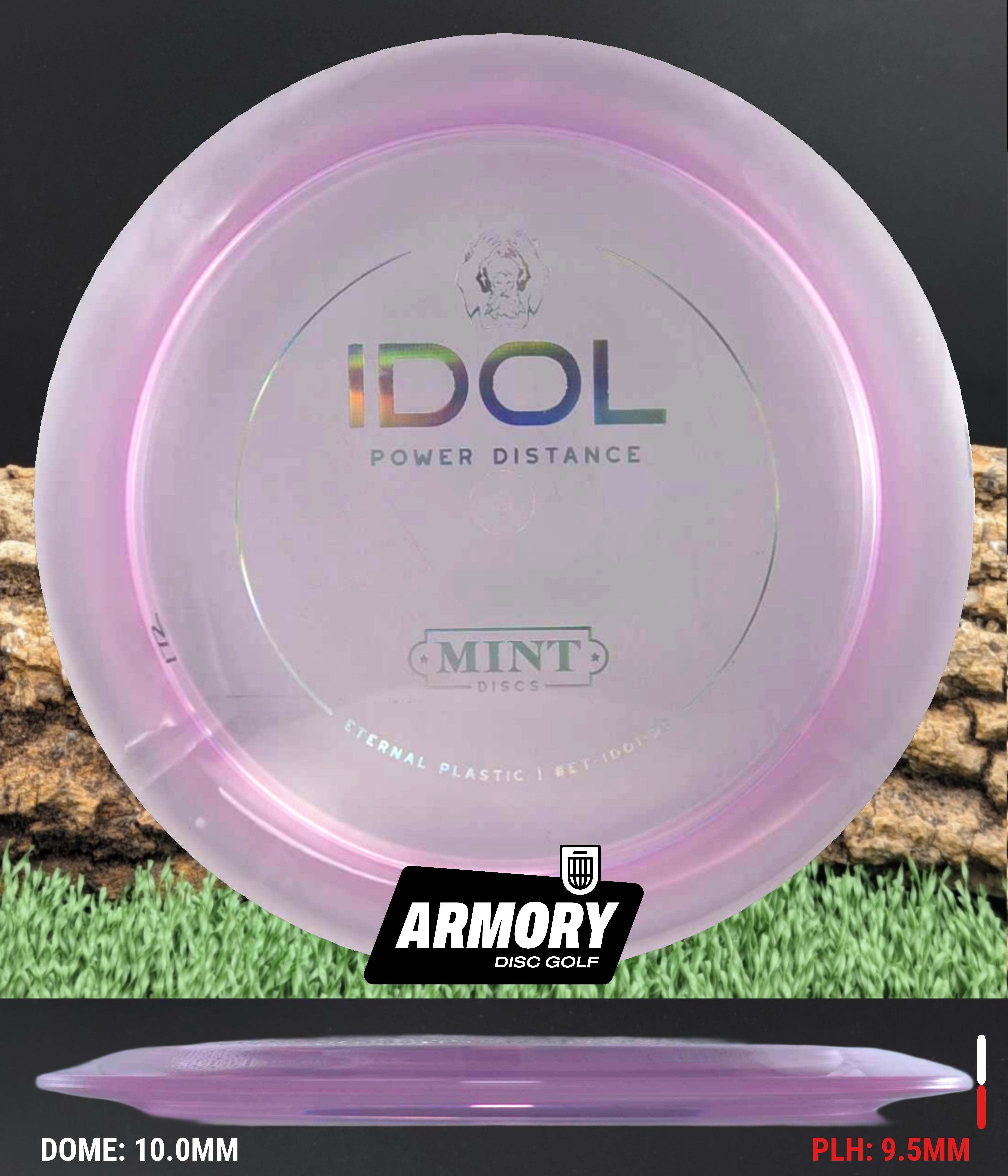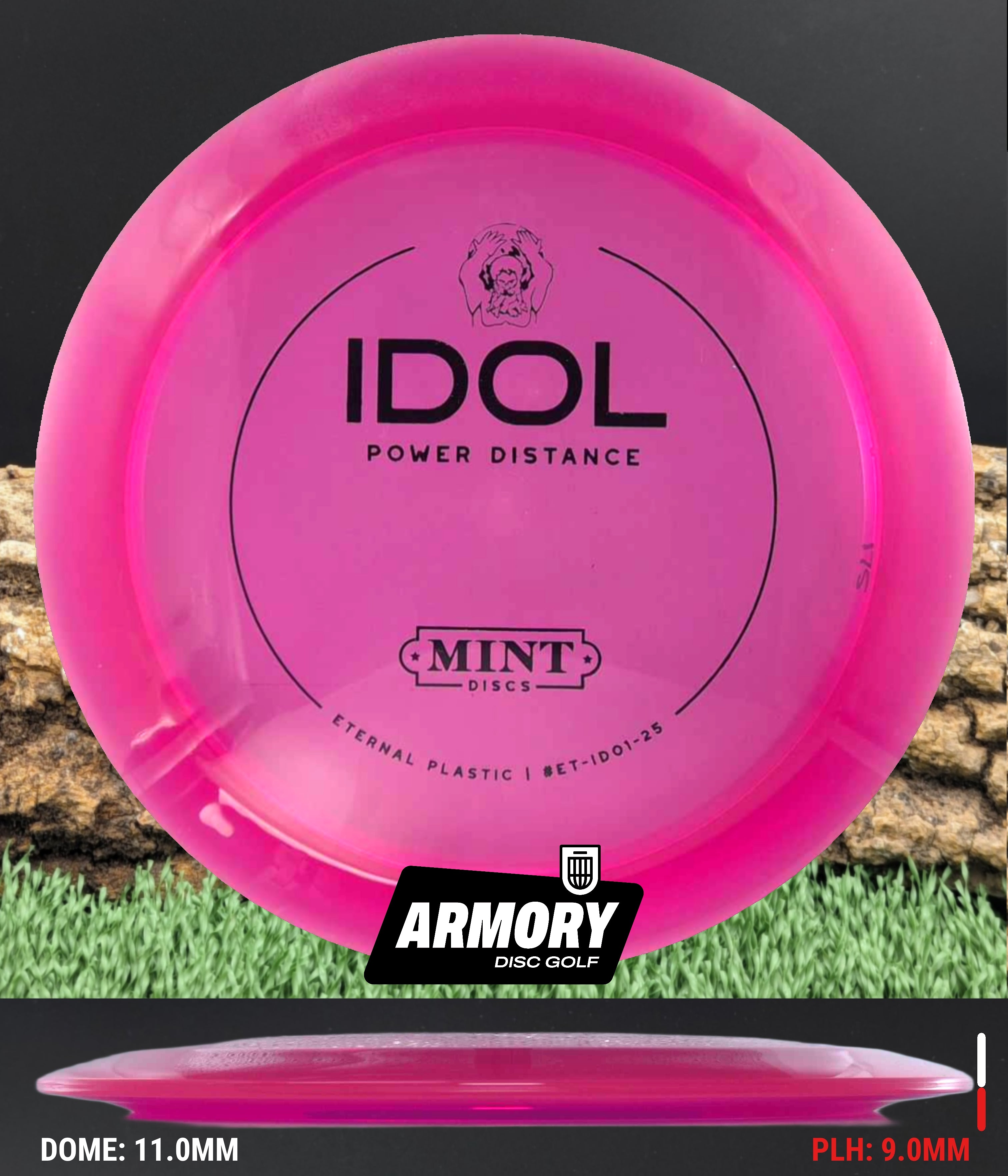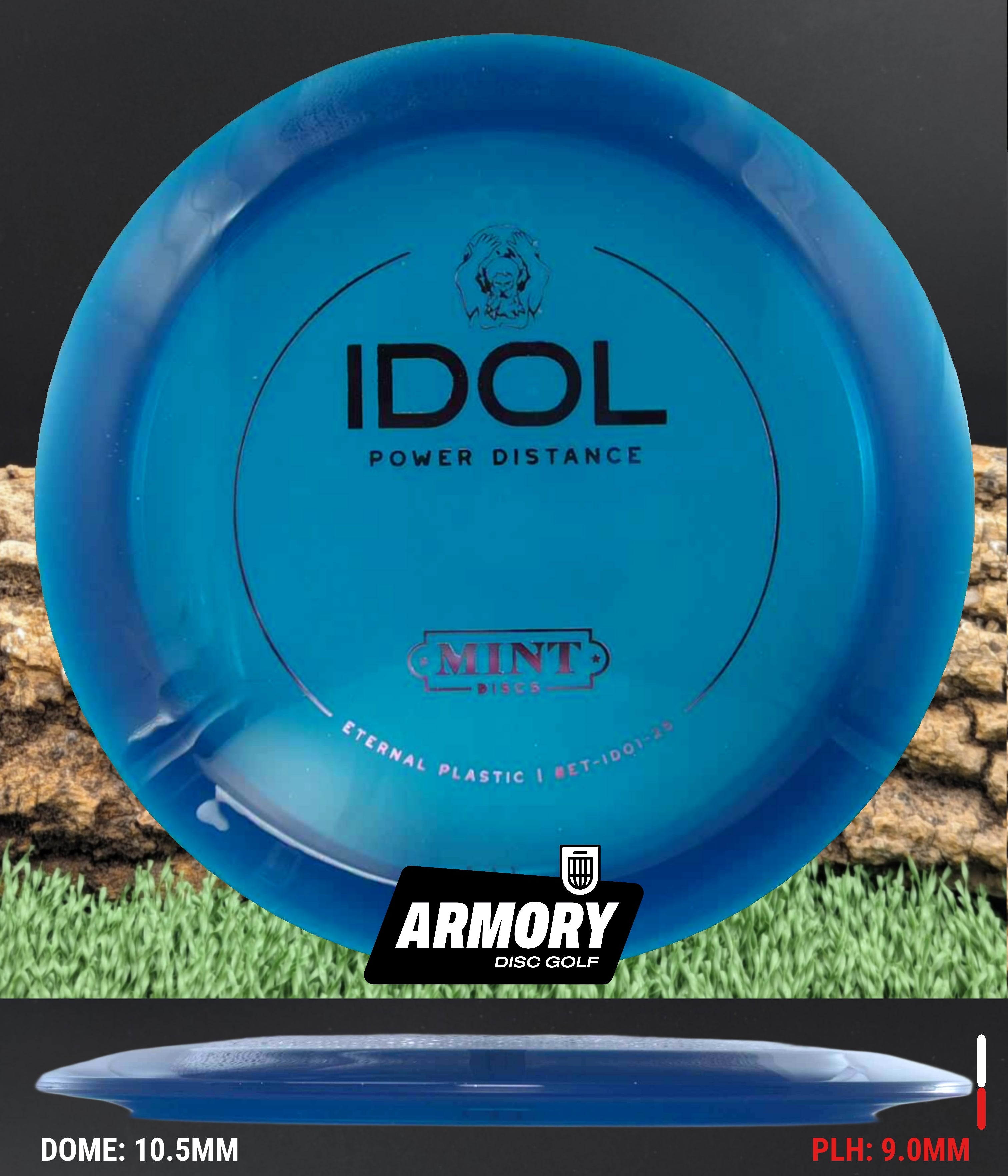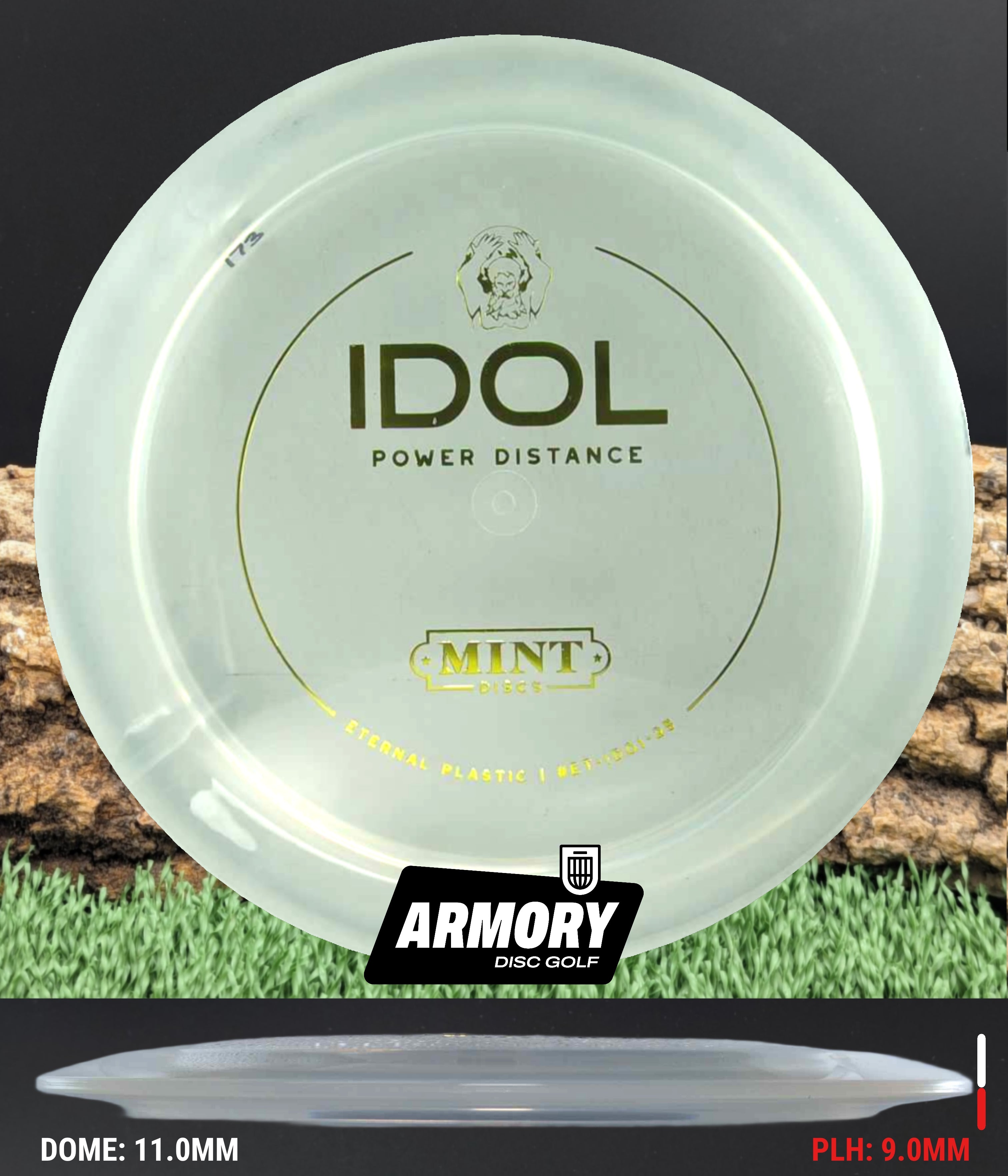 Armory Disc Golf believes the Idol is a modified take on the Prodigy Falcor. Both discs share nearly identical PDGA technical specs, and visually, they’re nearly twins. The difference? Neither Mint nor Prodigy has confirmed this, and we're also betting that there’s a degree of manufacturing differences that make them unique.